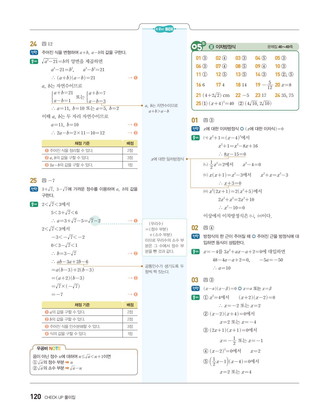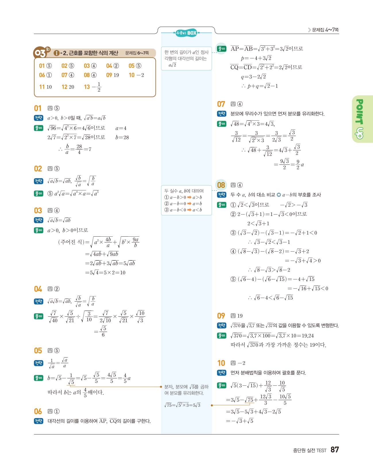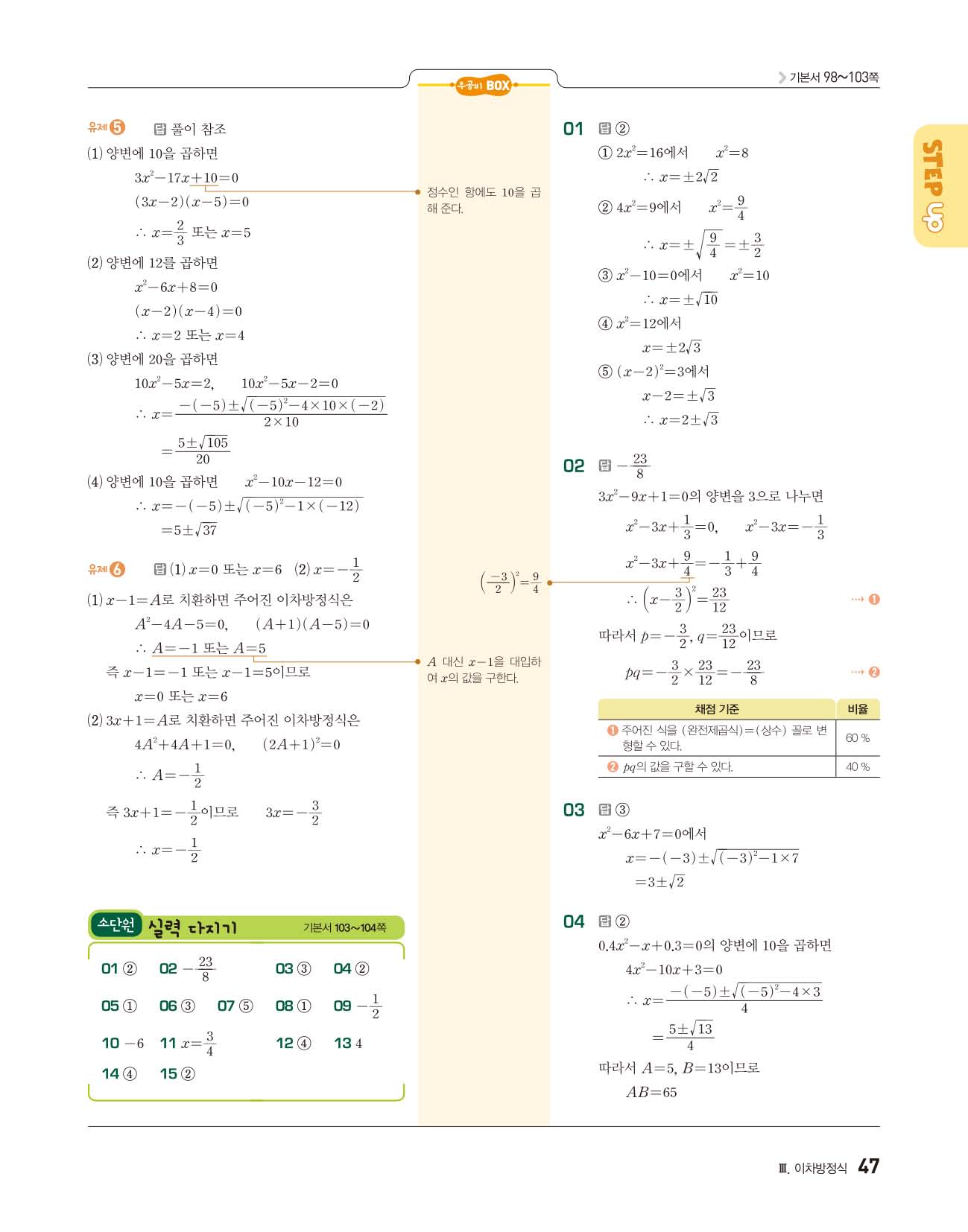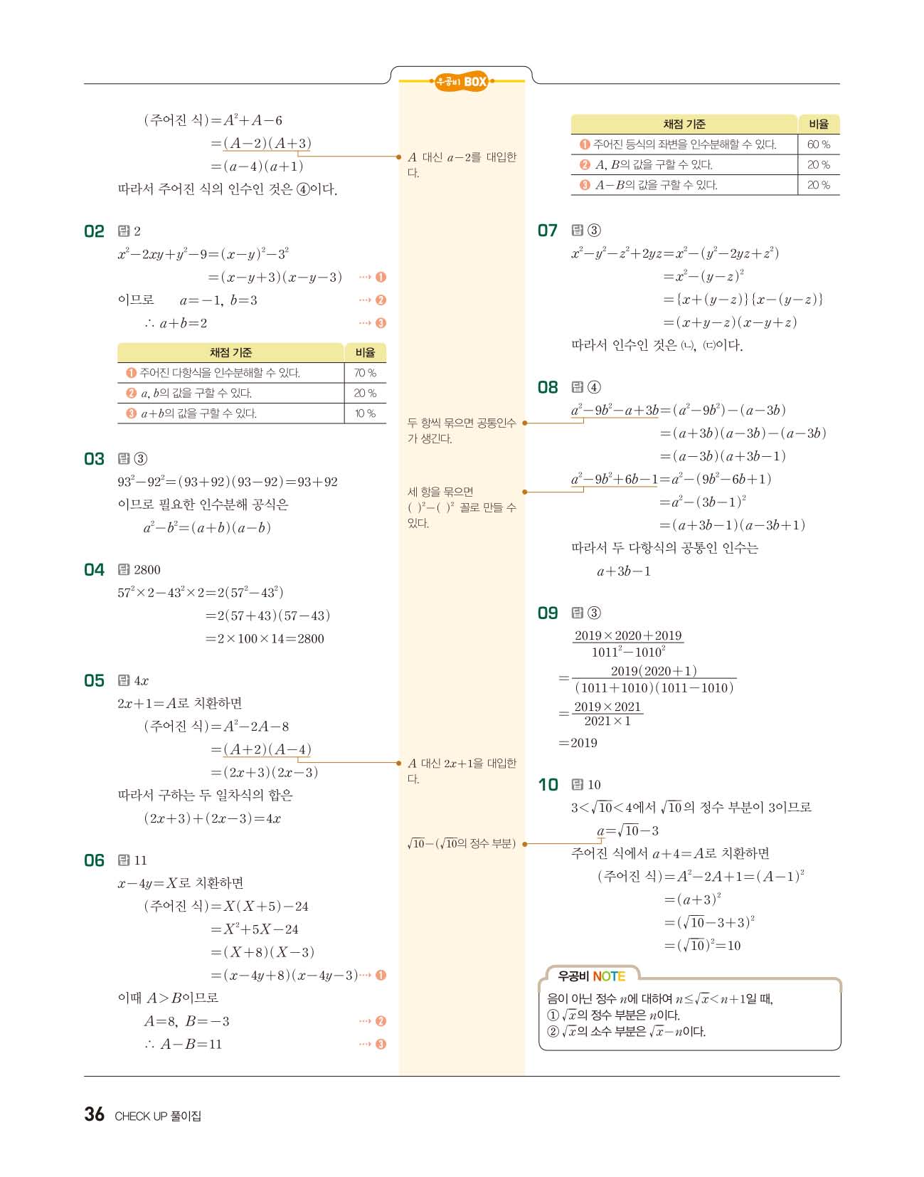 우공비 중등수학 중3상 3-1 답지 해설지 사진답지 빠른답지 모바일최적화