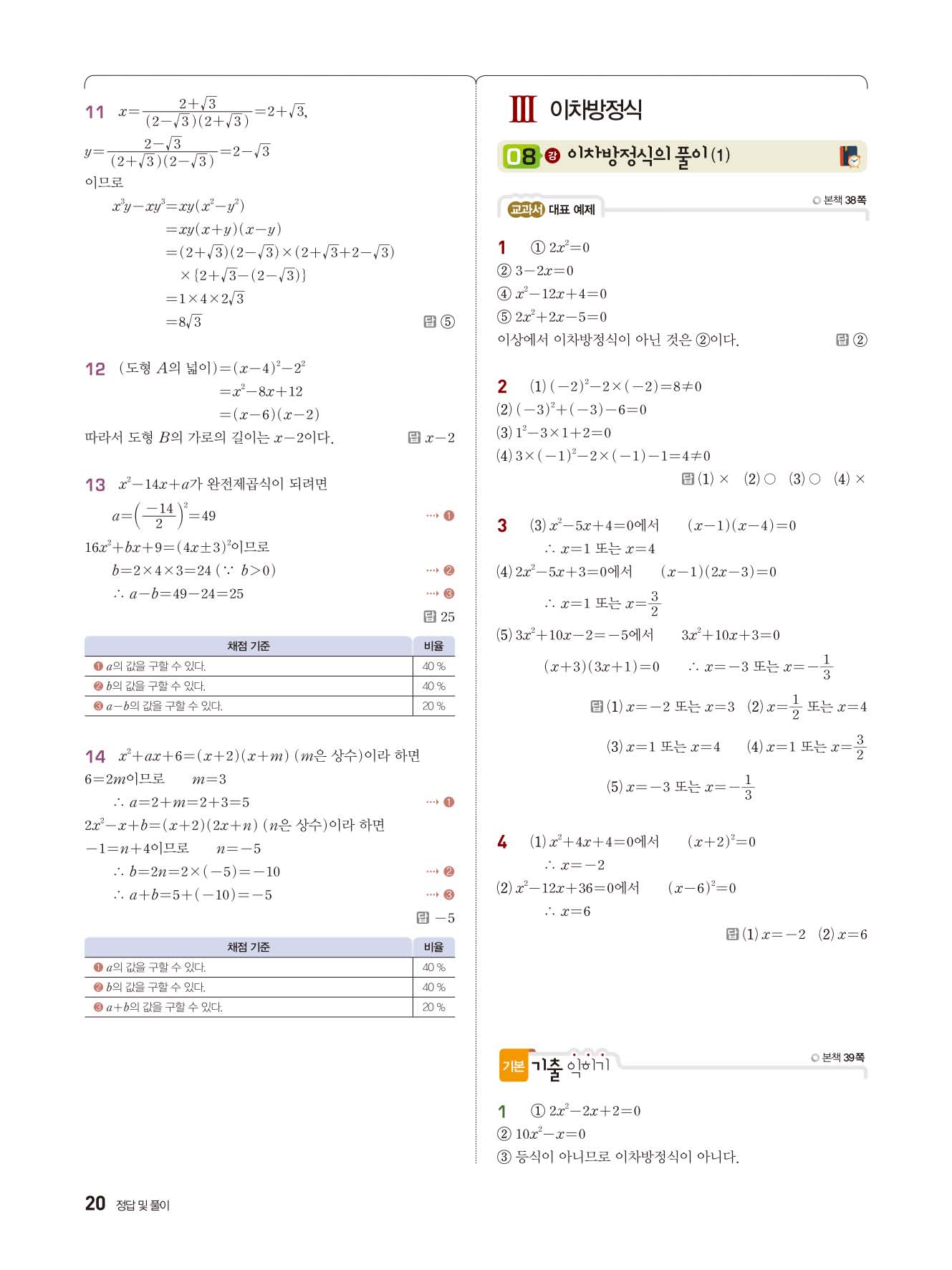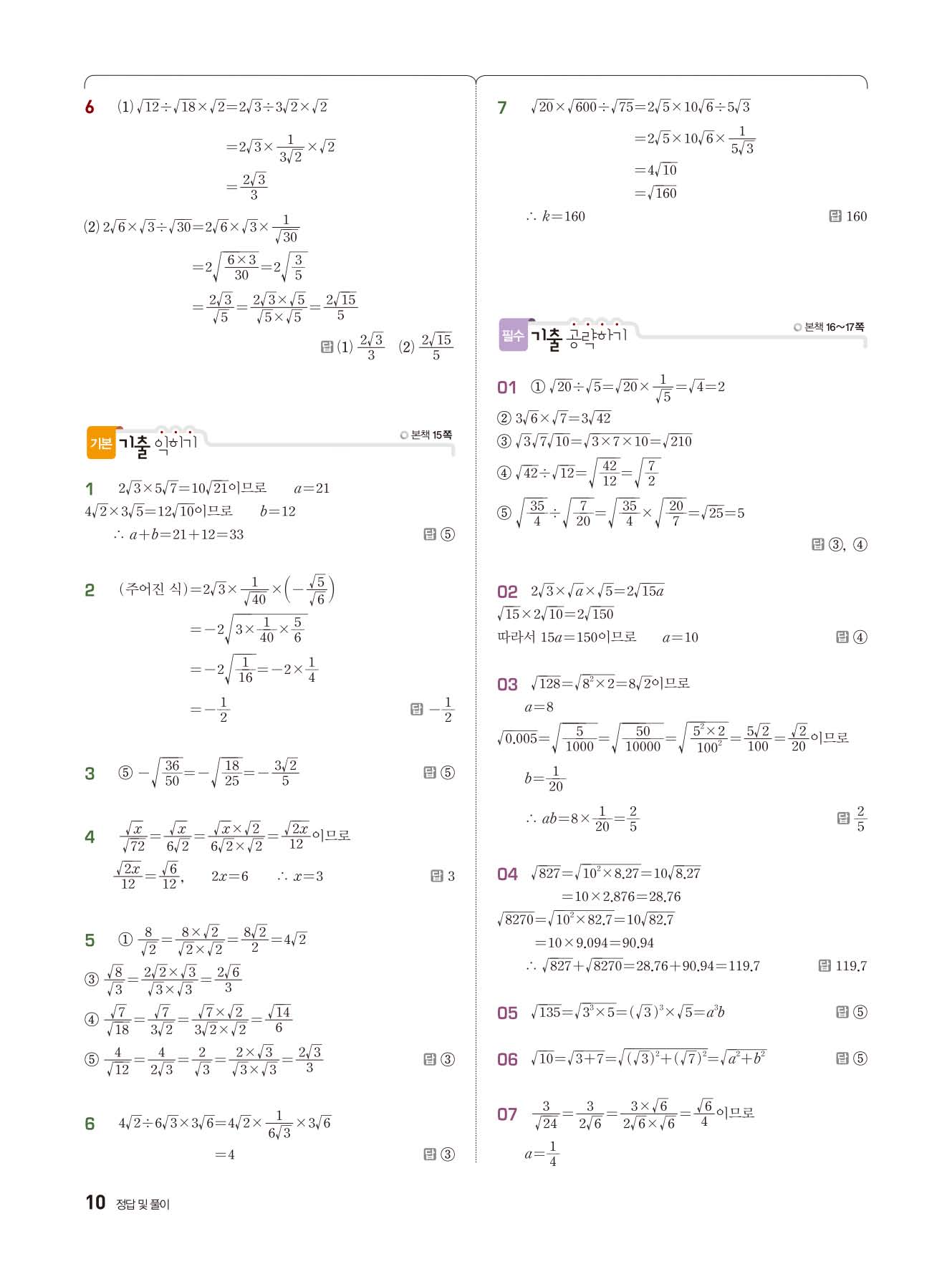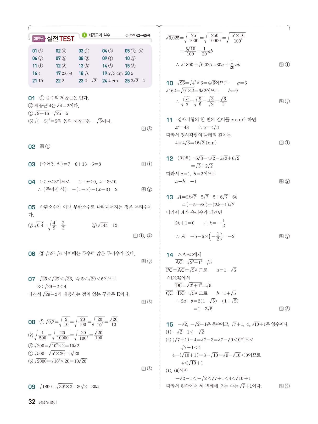 우공비큐 기출특강편 중3상 3-1 답지 해설지 사진답지 빠른답지 모바일최적화