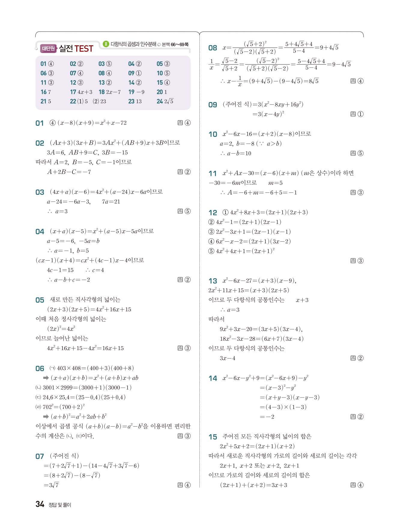 다운로드 받을필요 없이 바로 볼수 있는 모바일에 최적화된 답지 입니다