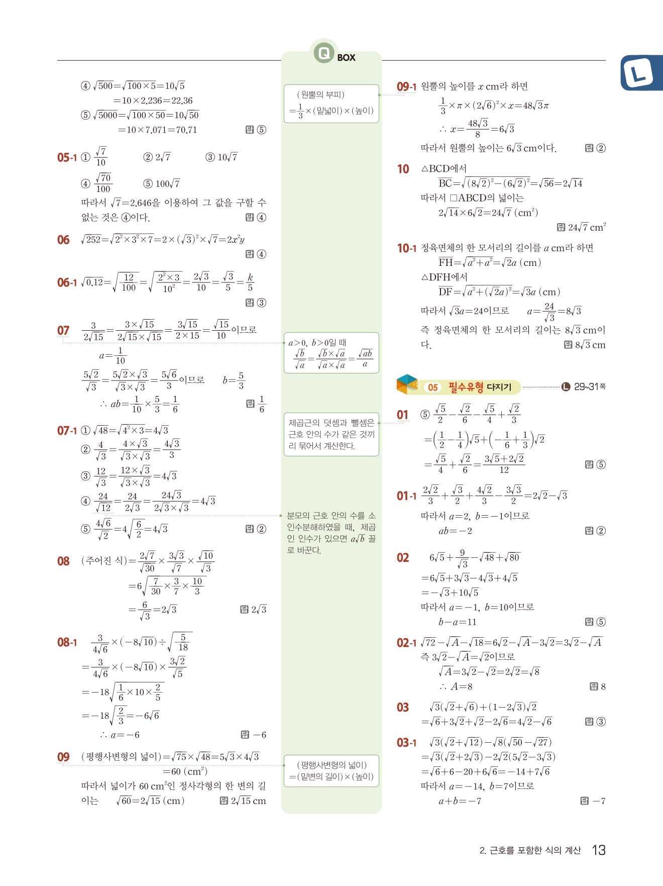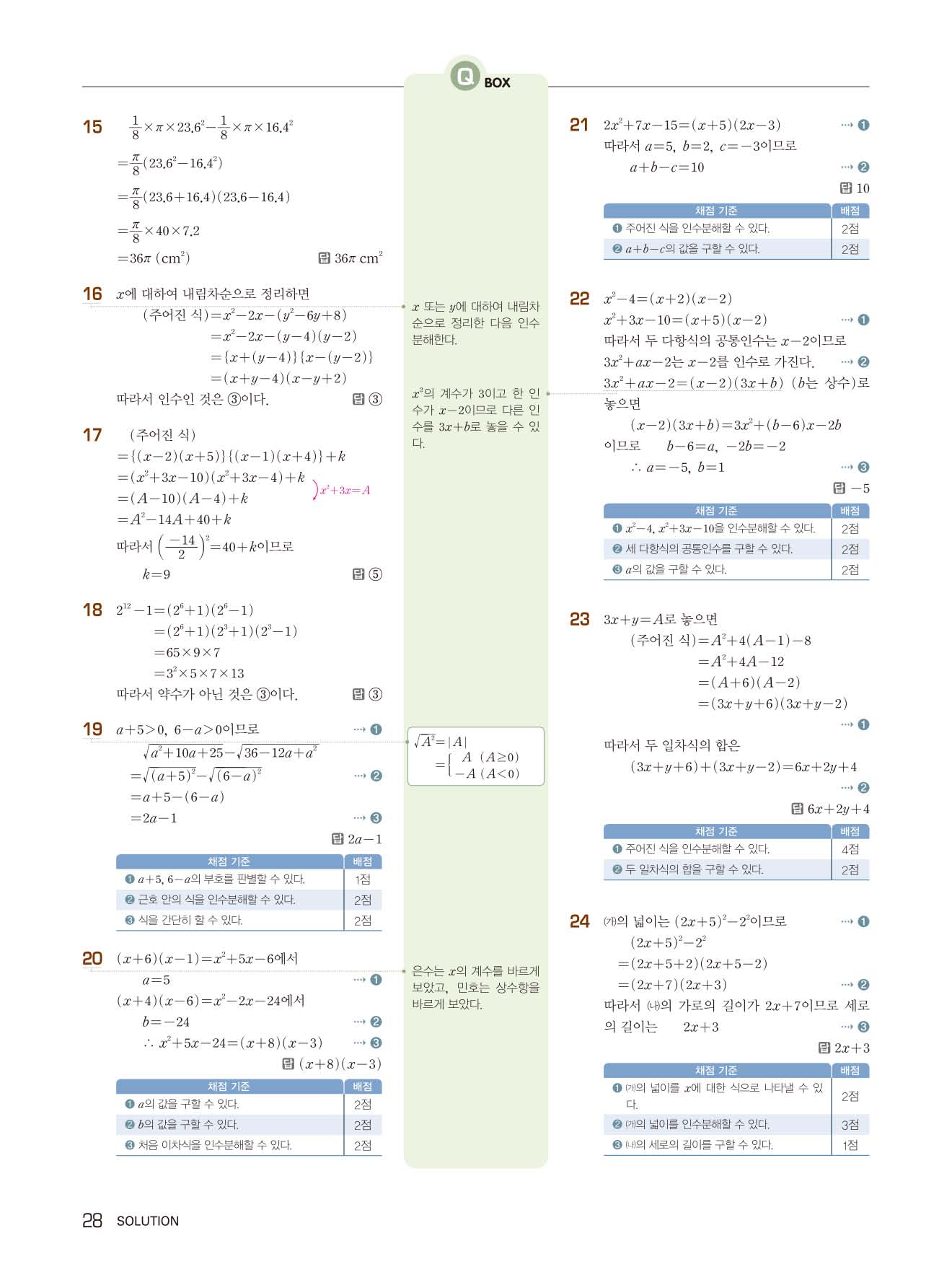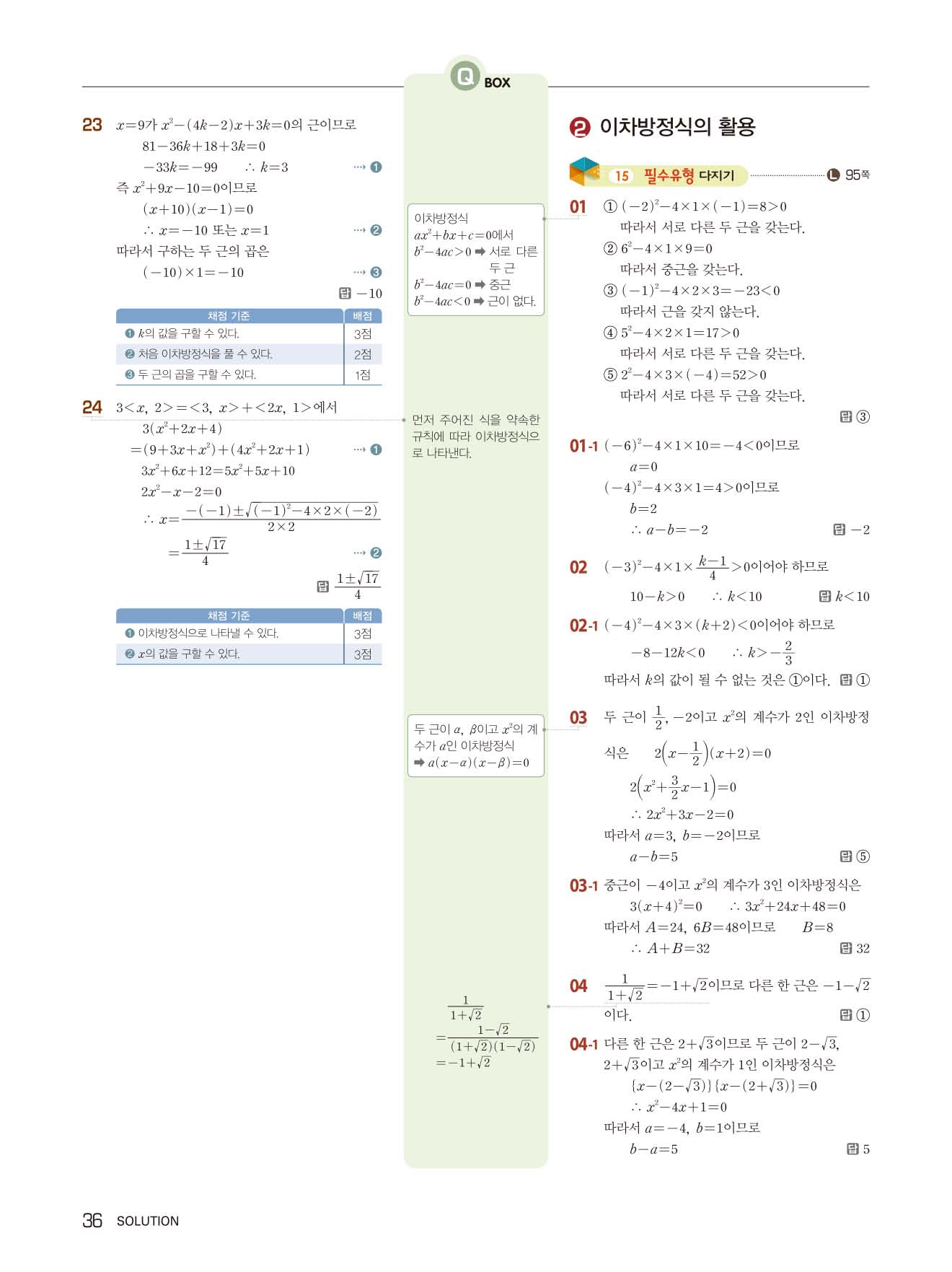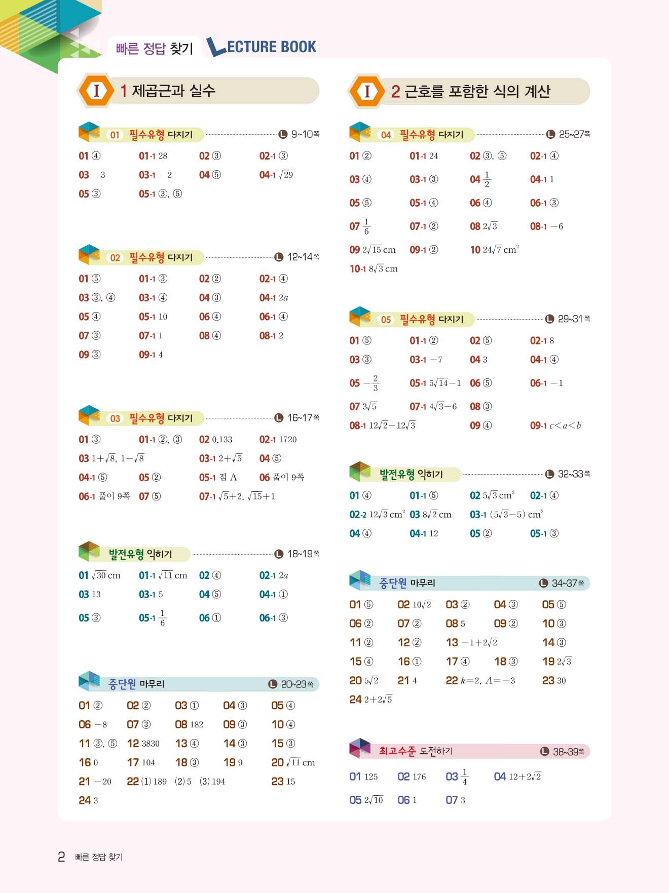 | 천재교육 이준열 중3 수학교과서 답지 | |