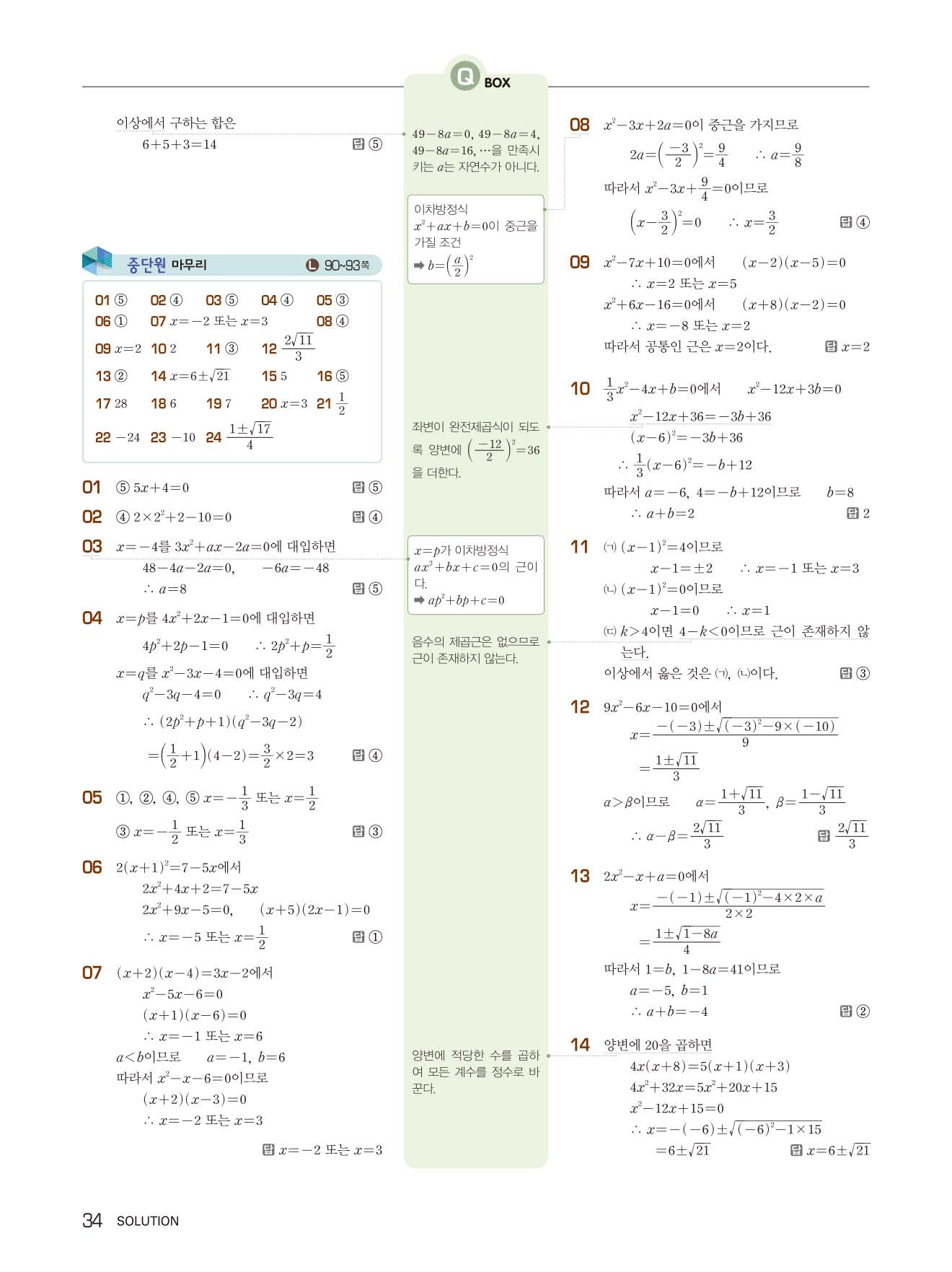 | 교학사 고호경 중3 수학교과서 답지 | |