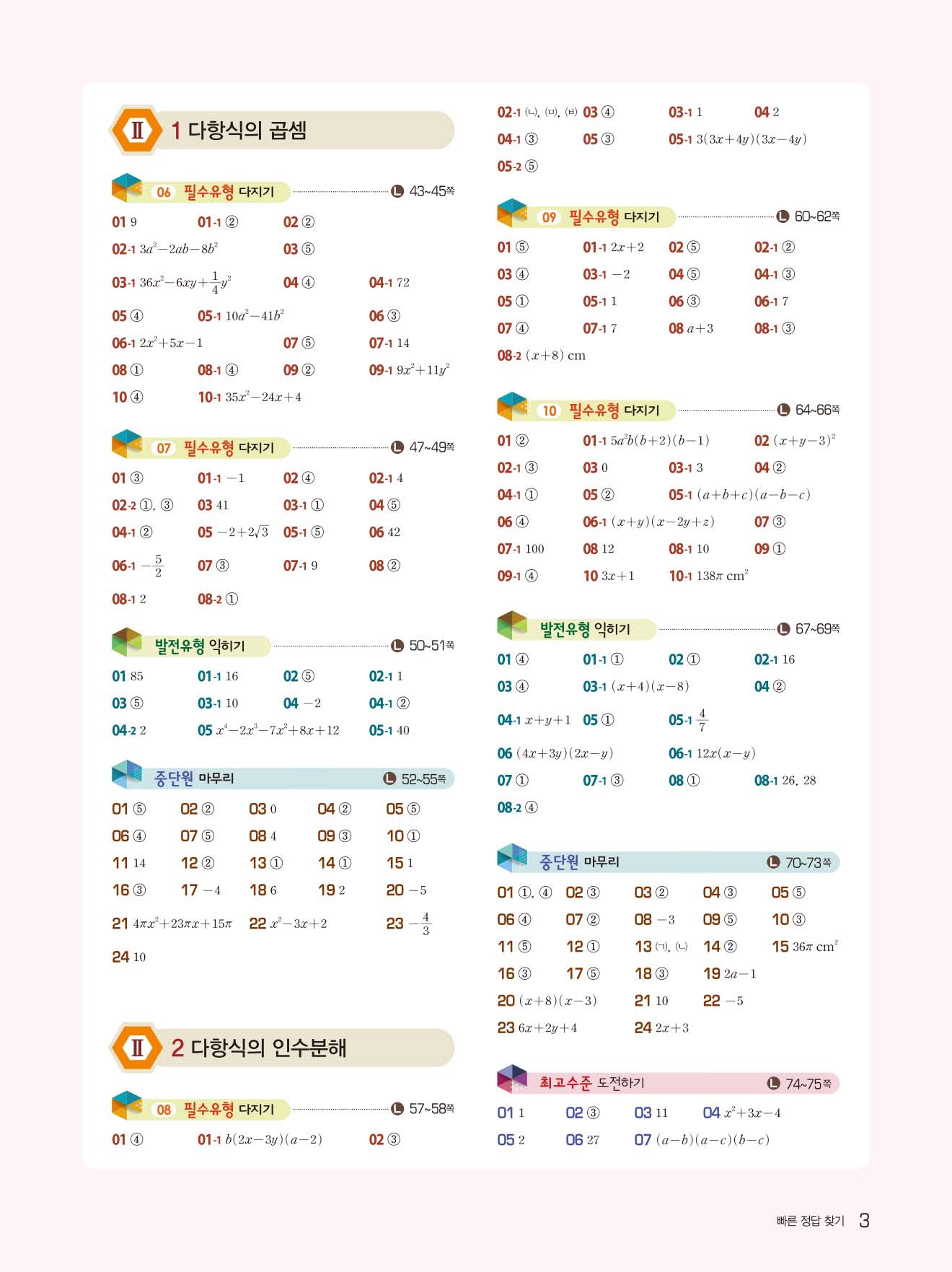 우공비큐 발전편 중3상 3-1 답지 해설지 사진답지 빠른답지 모바일최적화