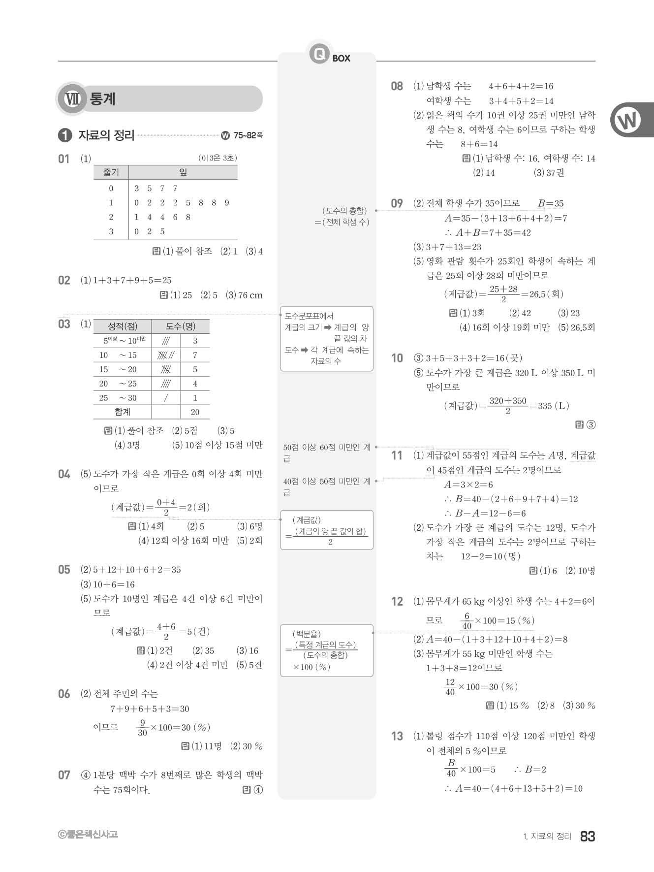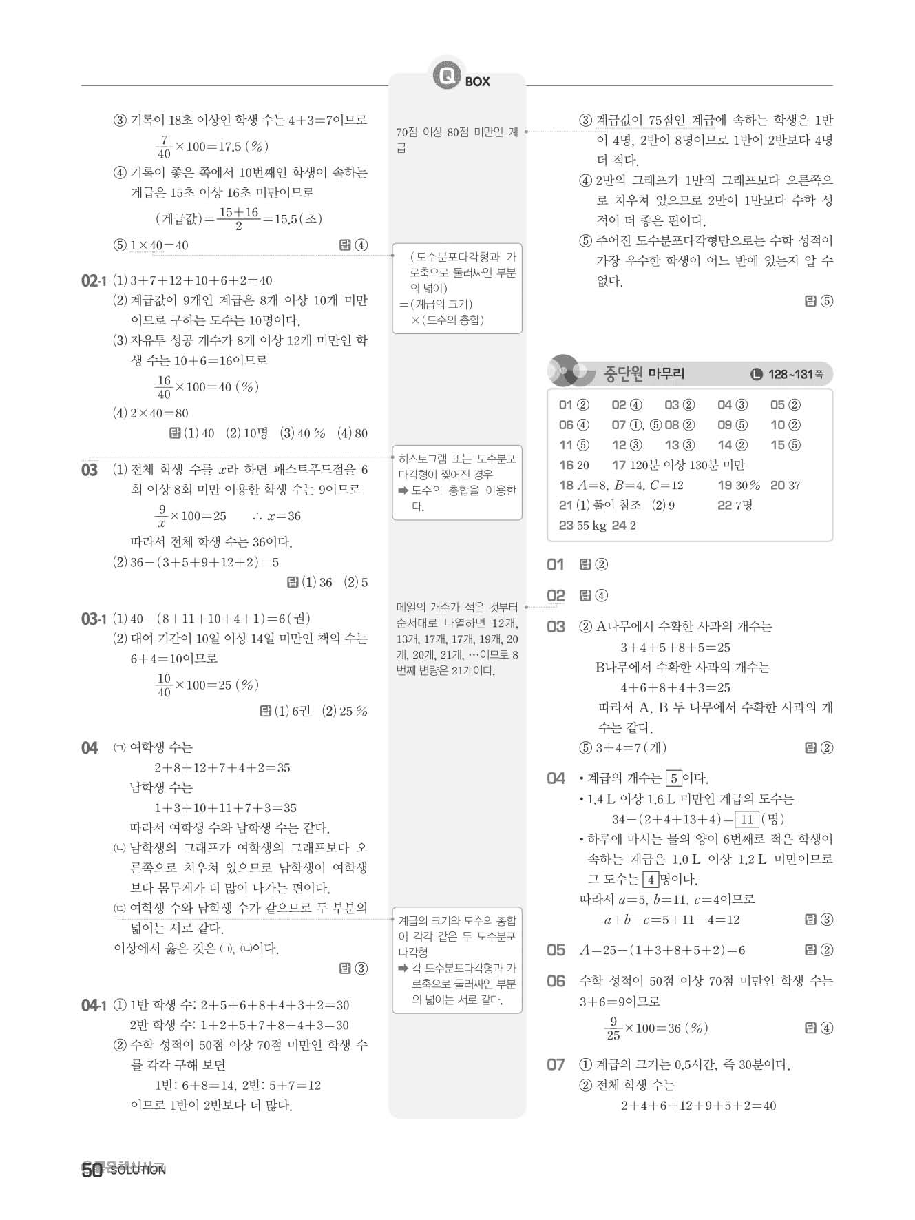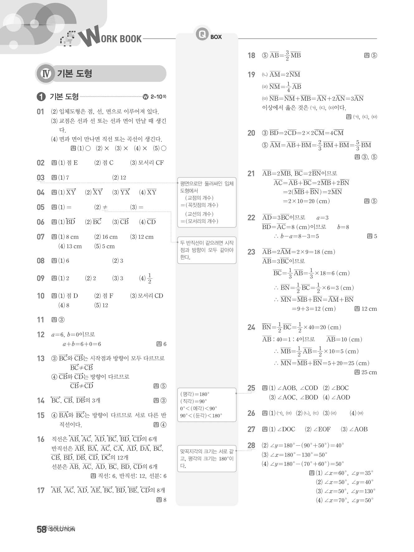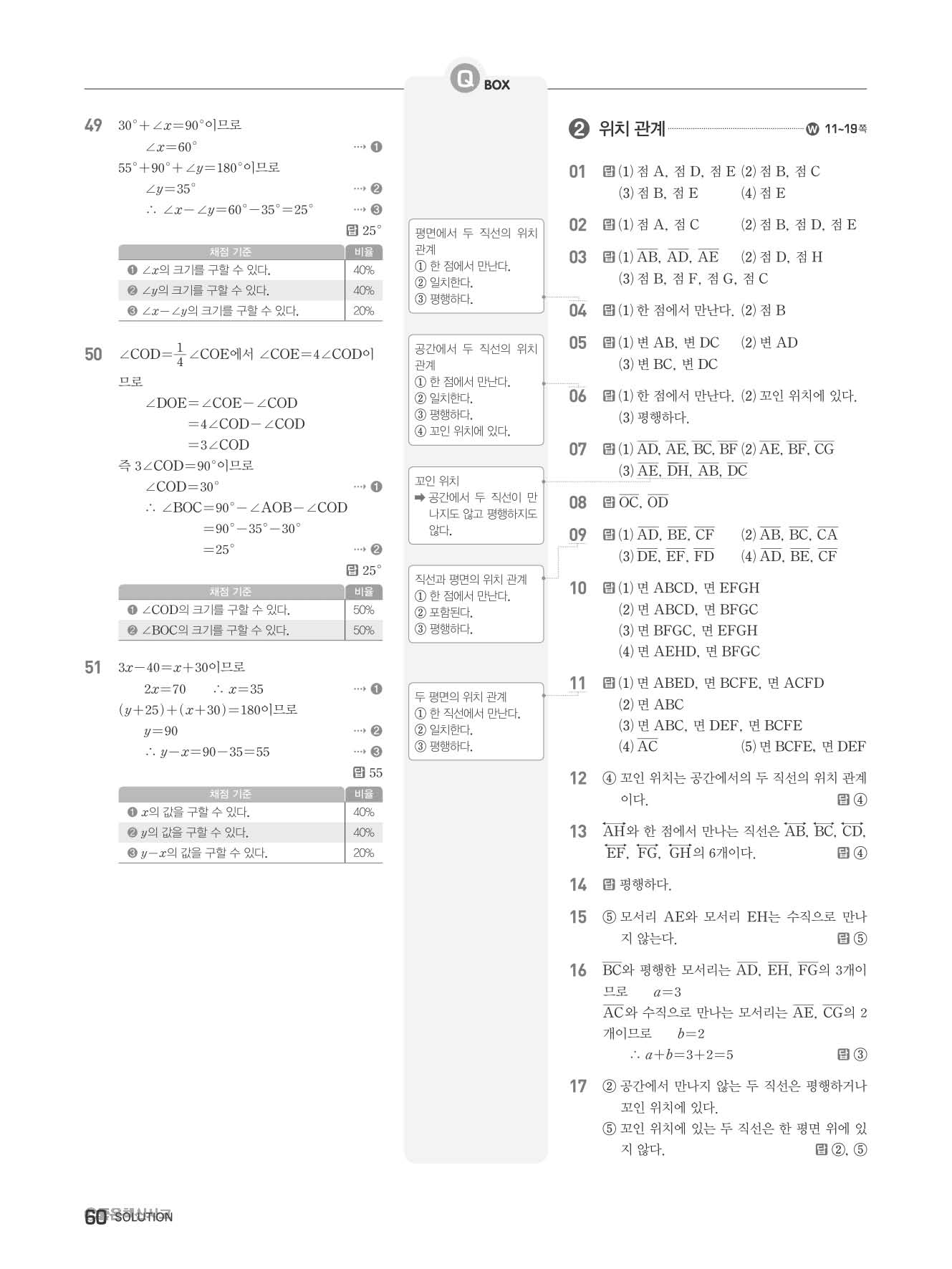 비상 우공비큐 표준편 중등수학1-2 답지 모바일최적화 사진답지 해설지