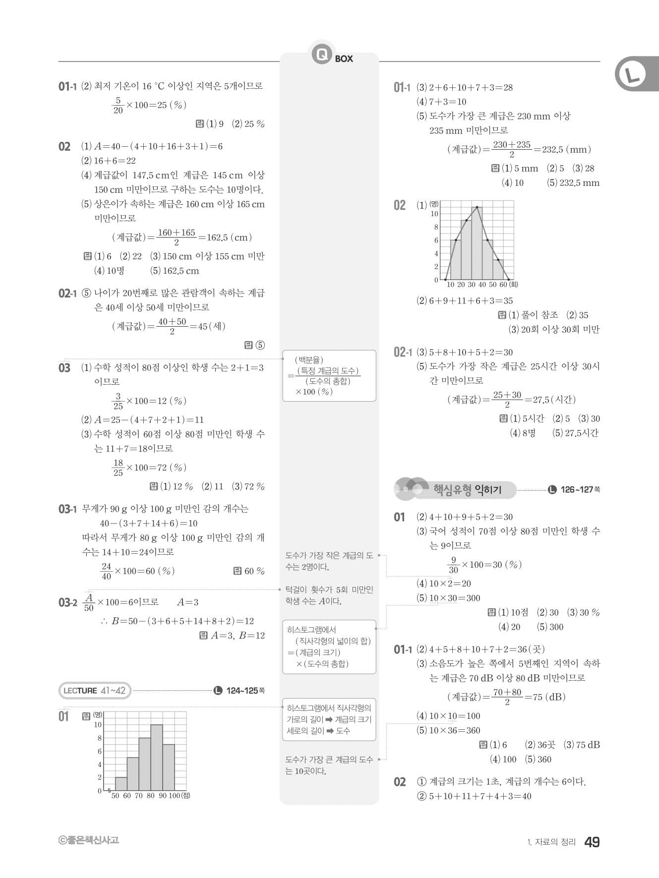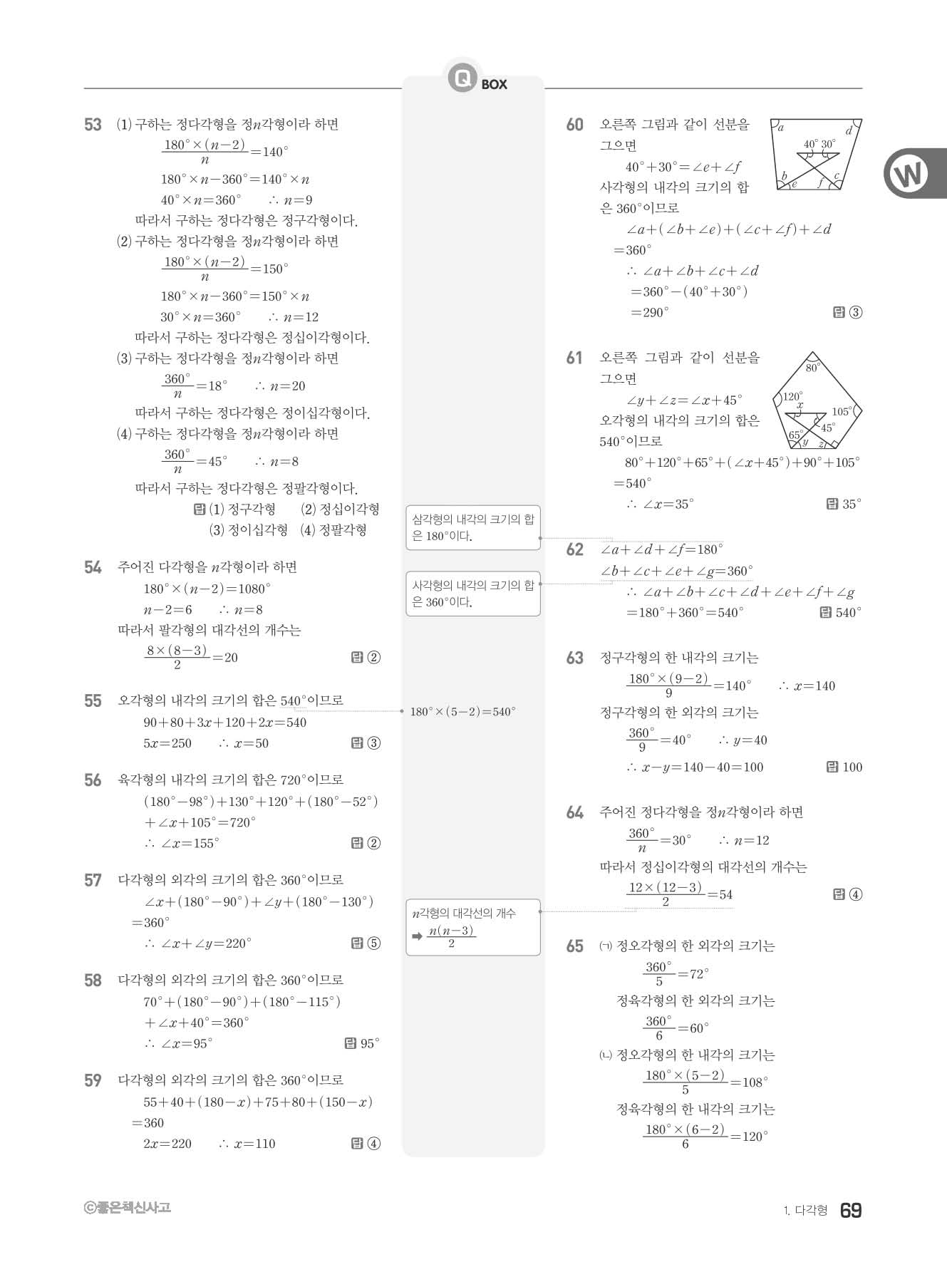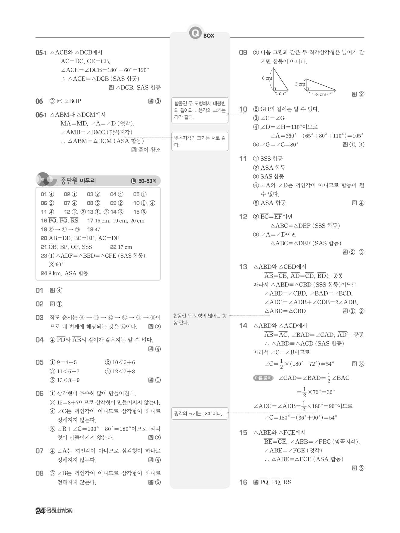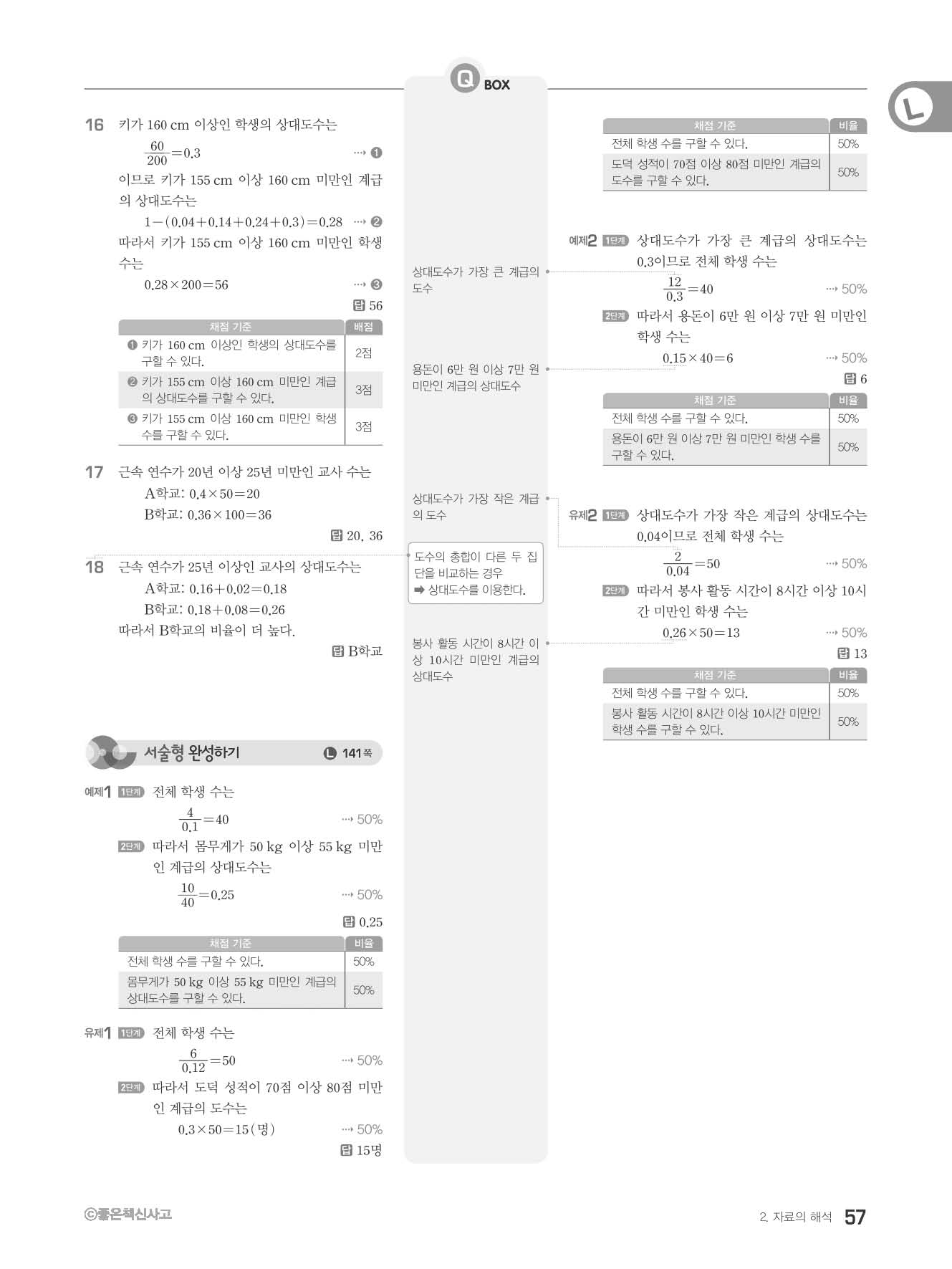 비상 우공비큐 표준편 중등수학1-2 답지 모바일최적화 사진답지 해설지