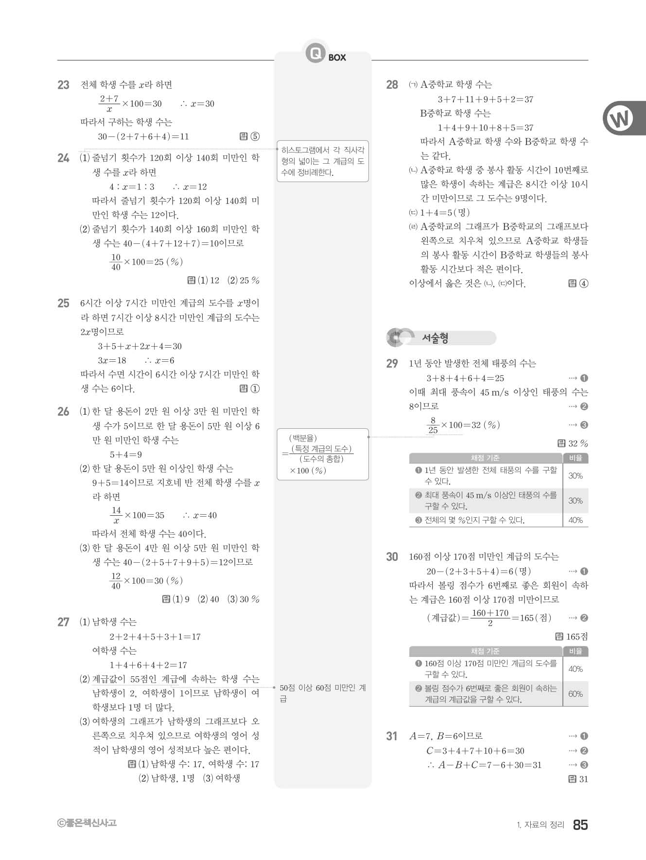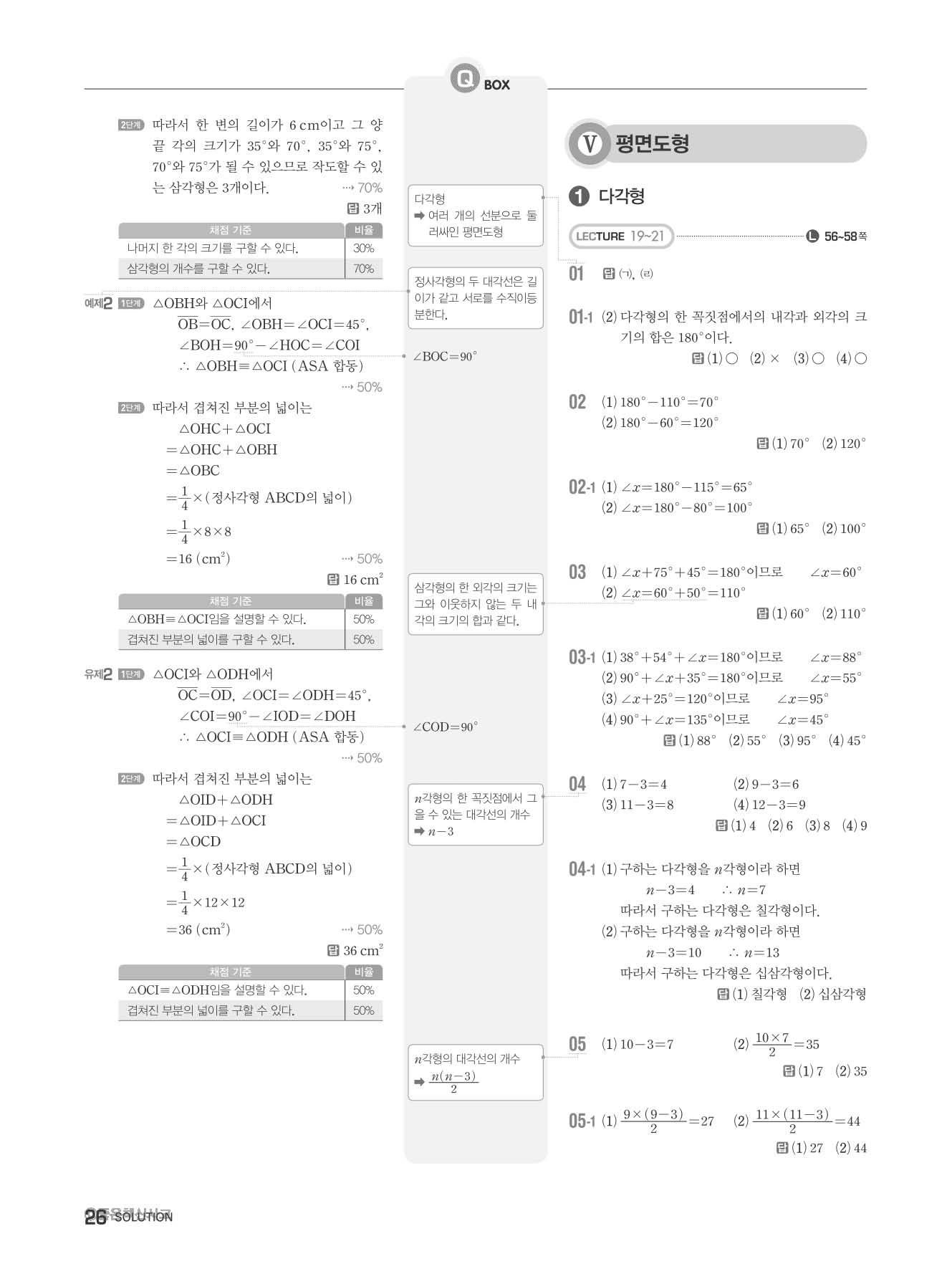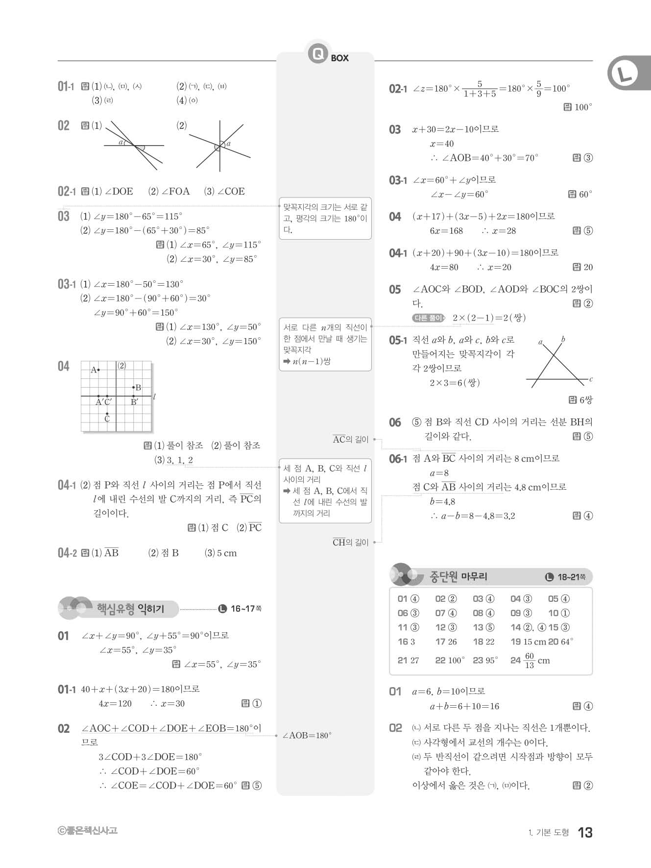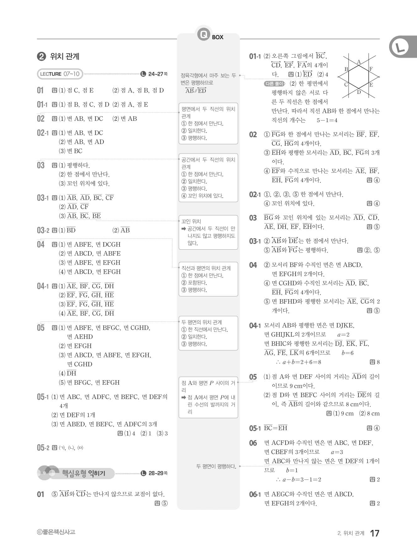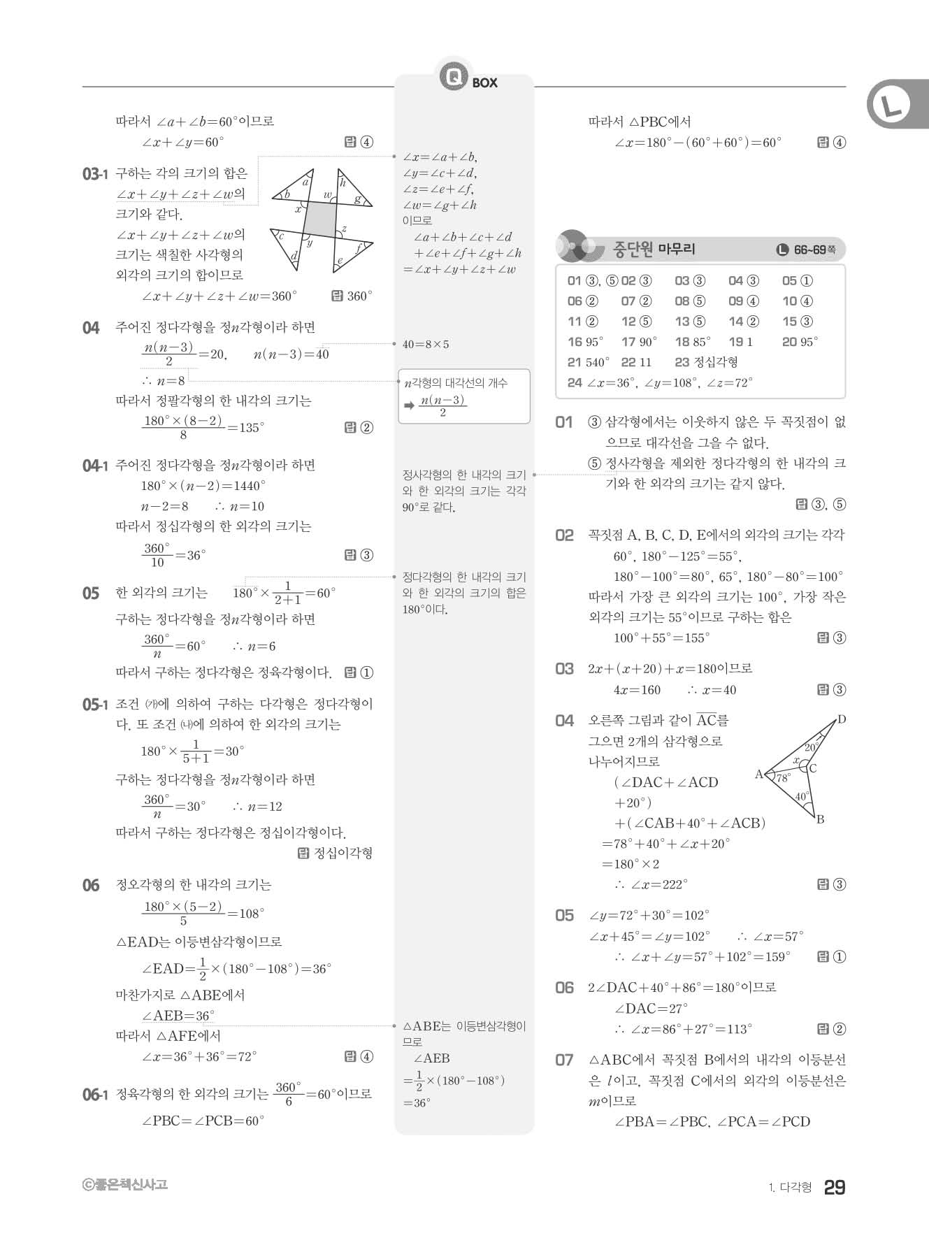 비상 우공비큐 표준편 중등수학1-2 답지 모바일최적화 사진답지 해설지