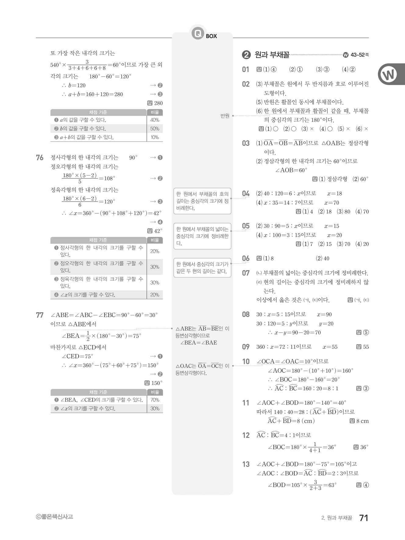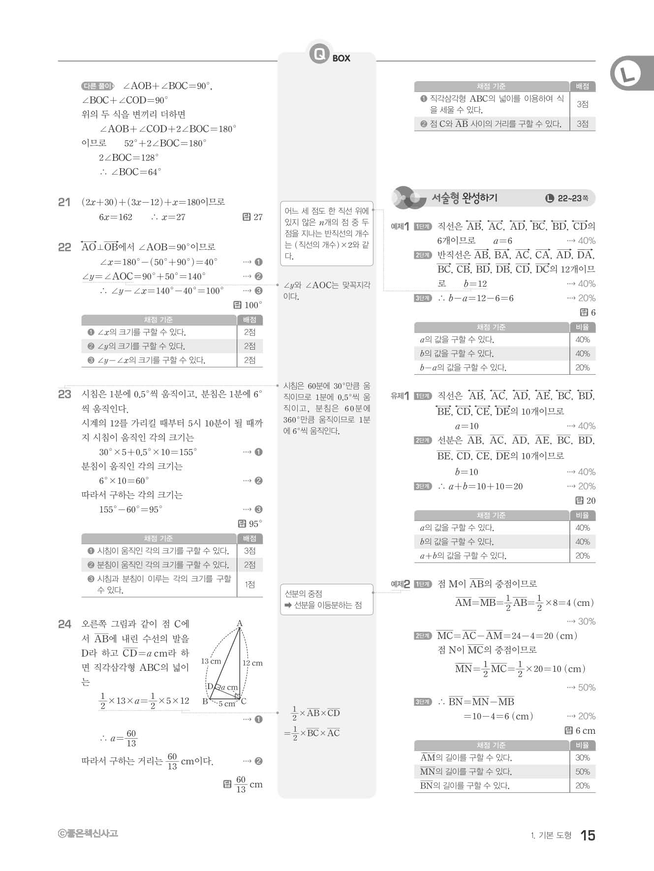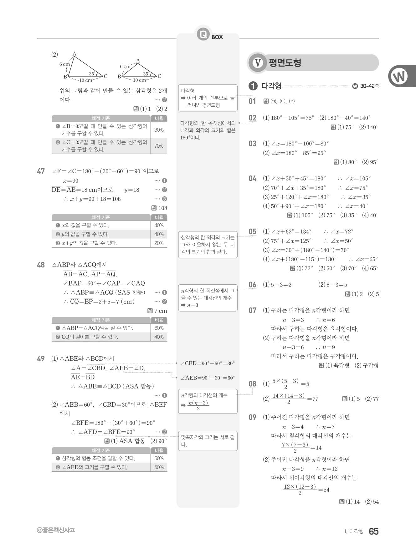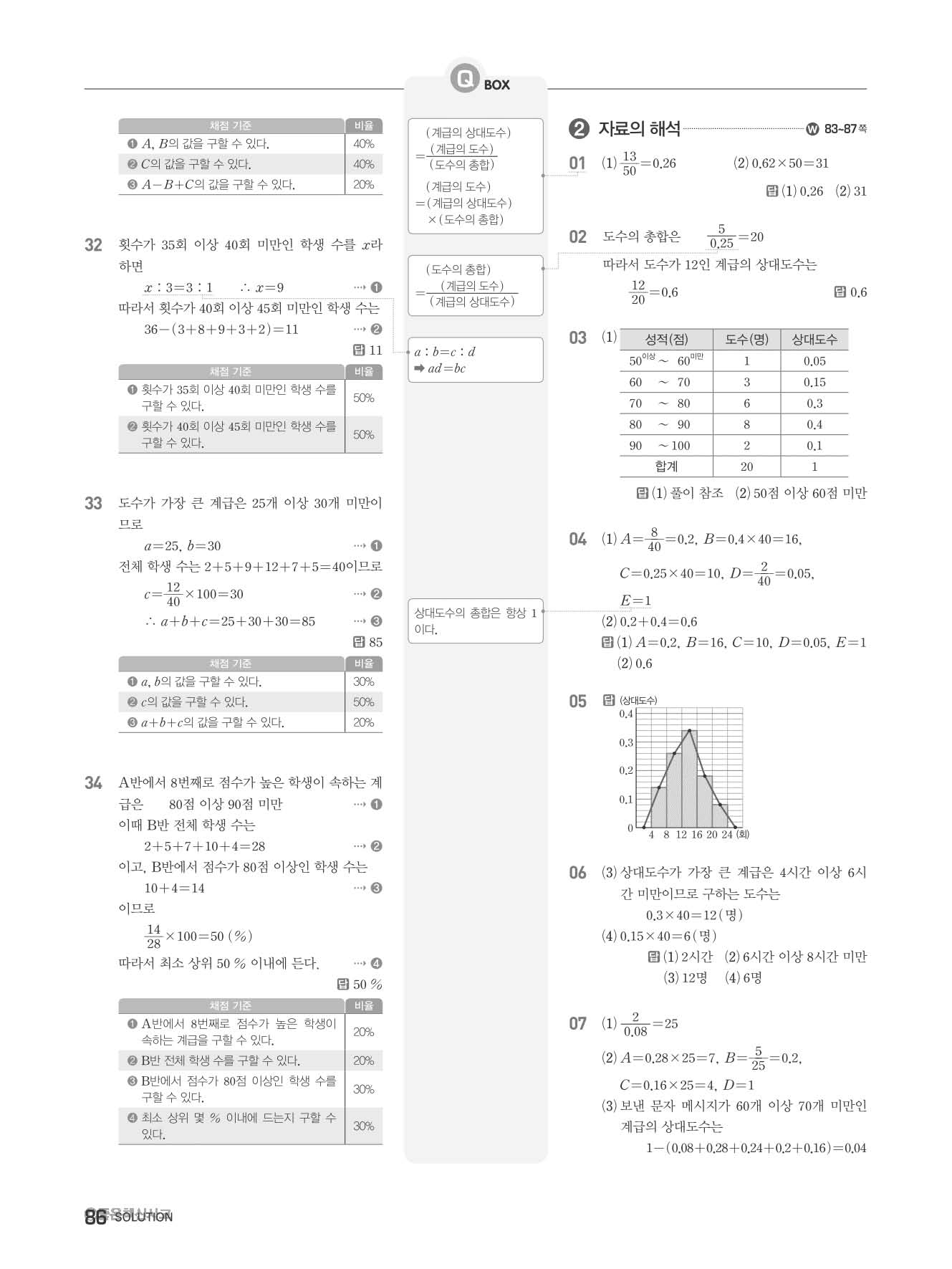 비상 우공비큐 표준편 중등수학1-2 답지 모바일최적화 사진답지 해설지