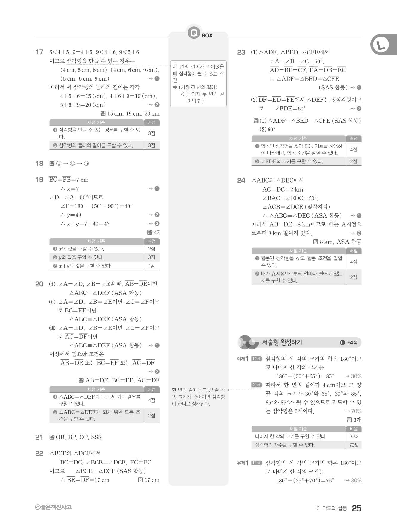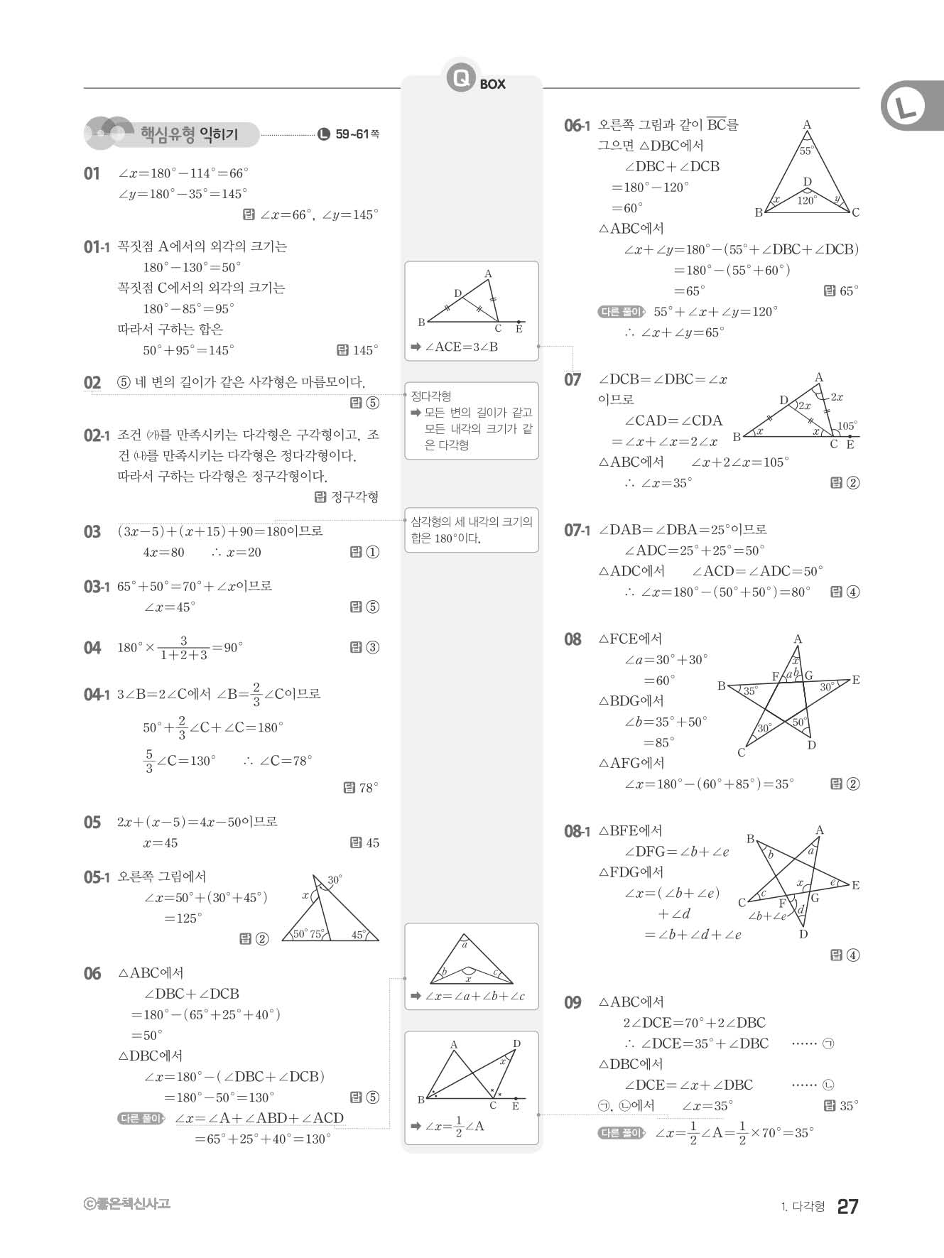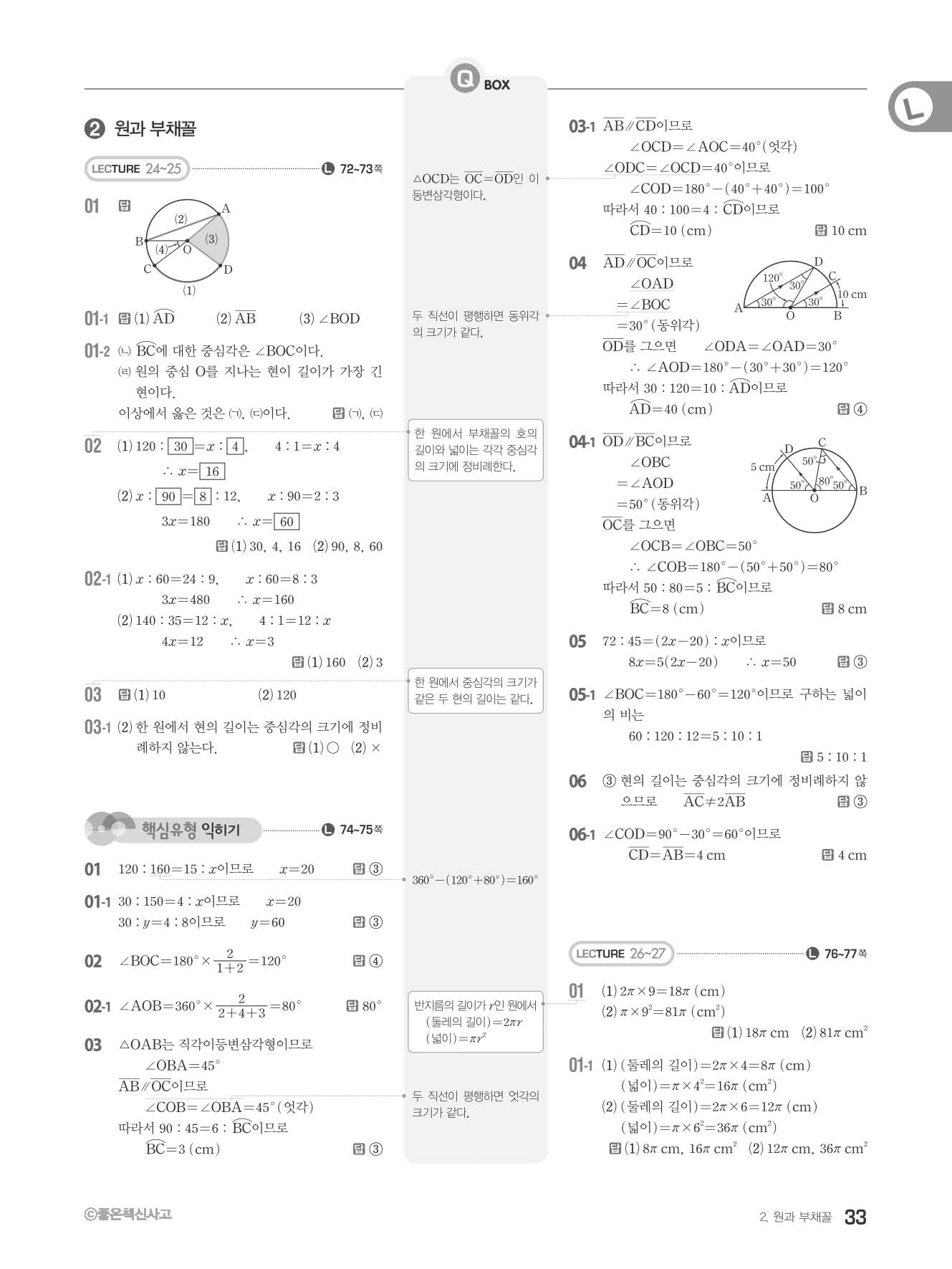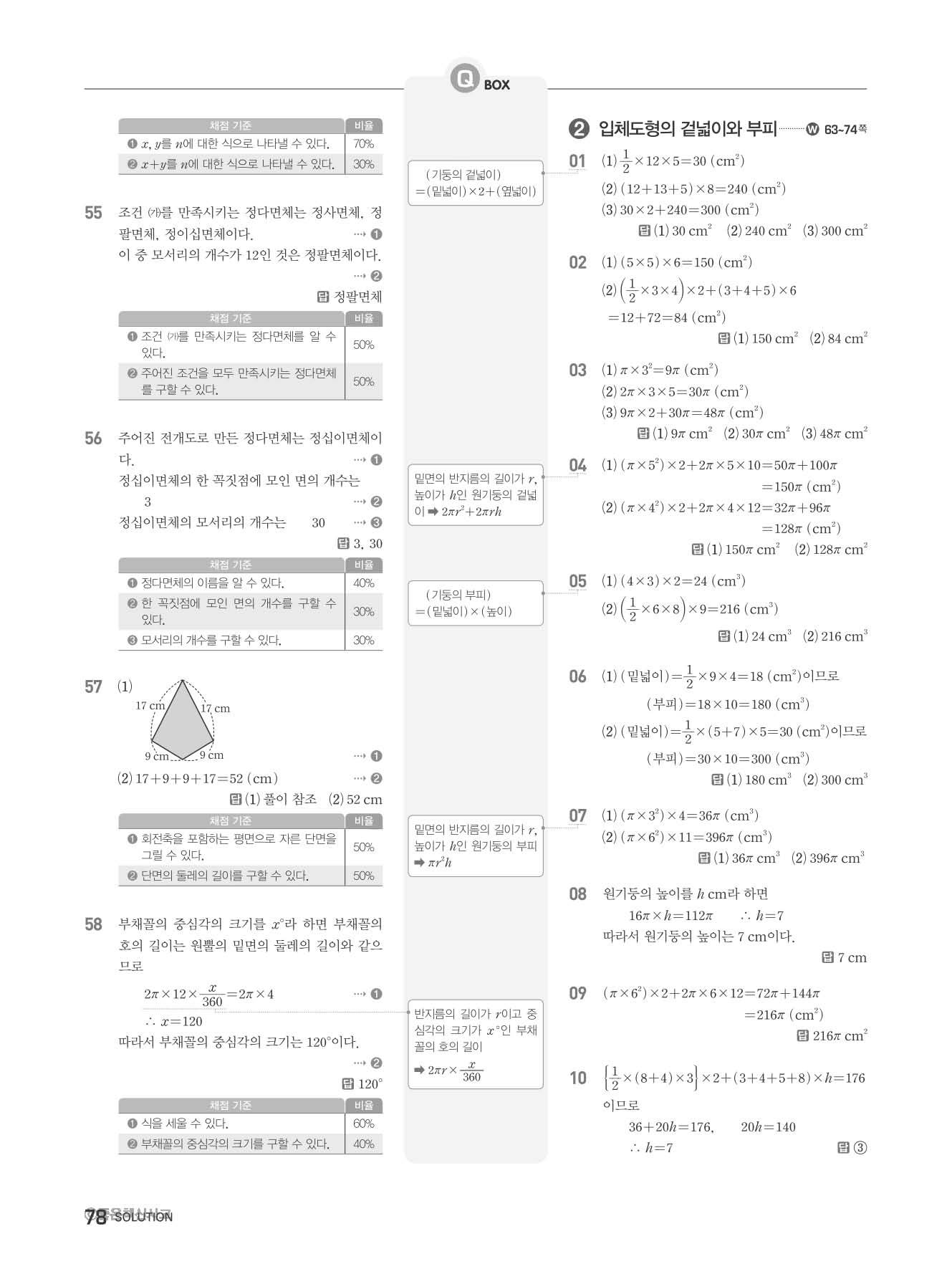 비상 우공비큐 표준편 중등수학1-2 답지 모바일최적화 사진답지 해설지