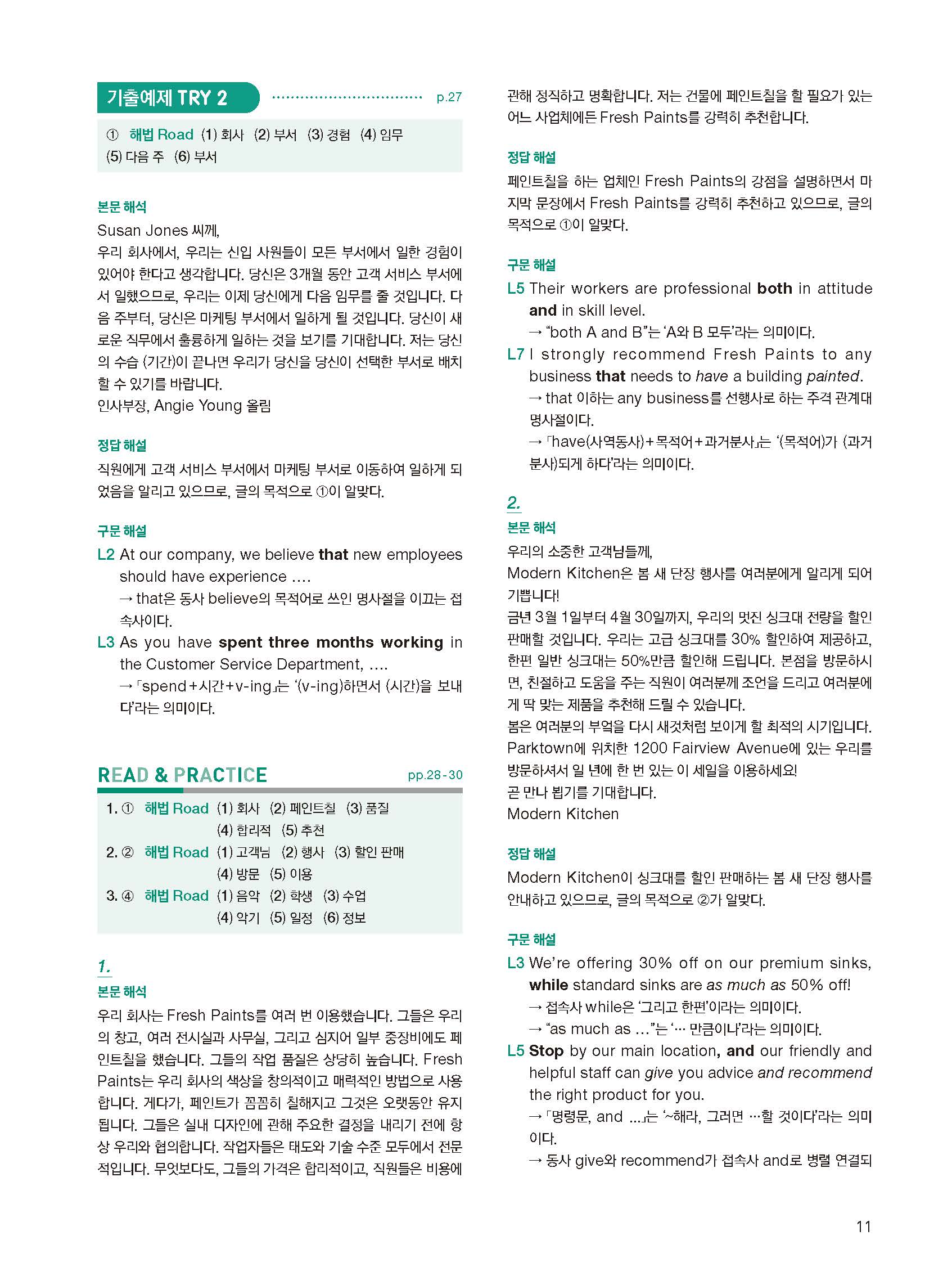 능률 중학생을 위한 첫번째 수능영어 유형편 사진답지 빠른답지 모바일최적화