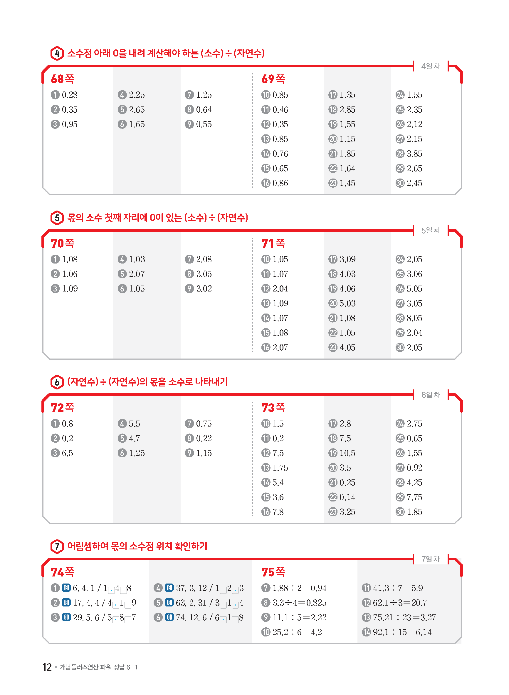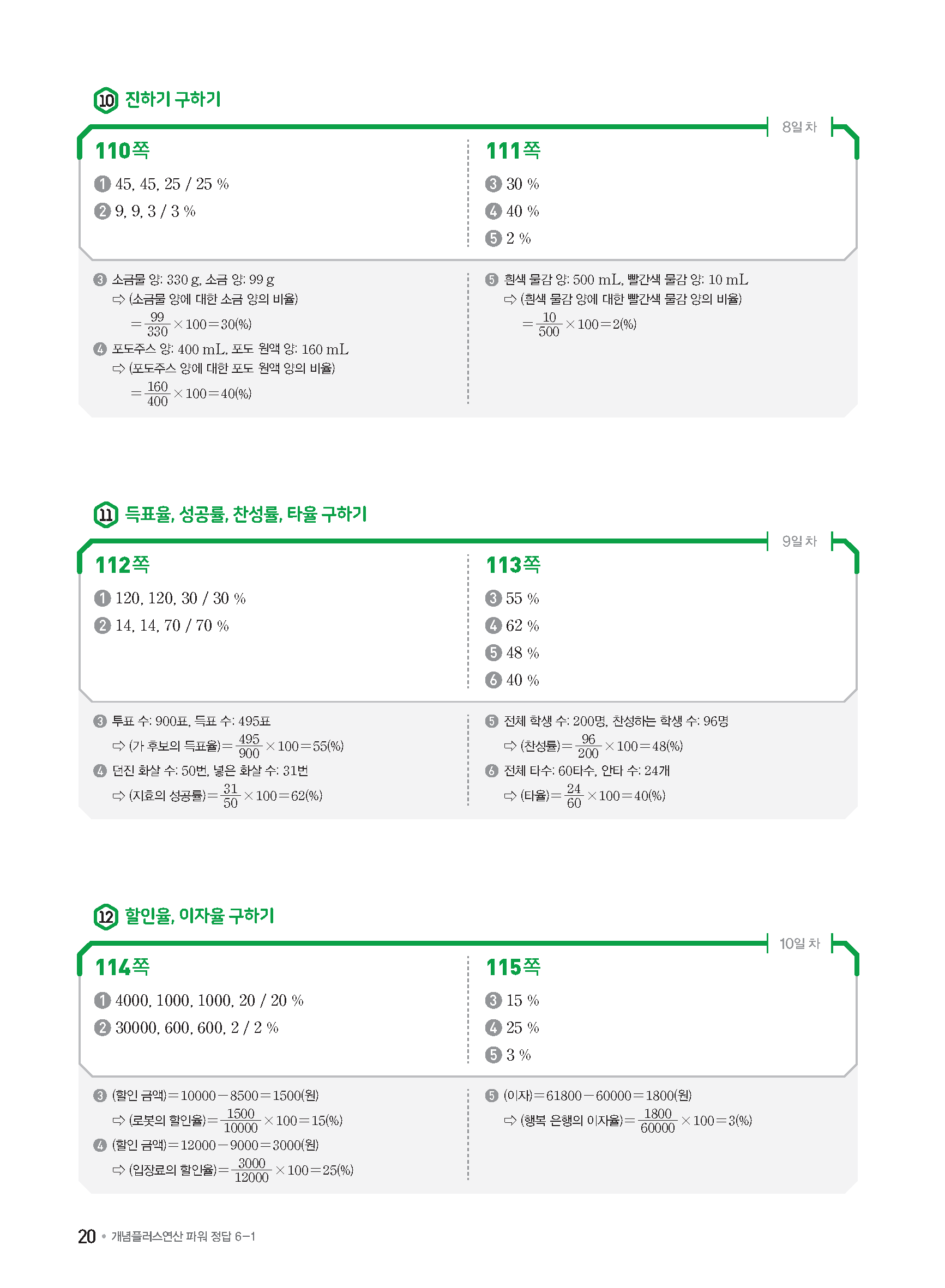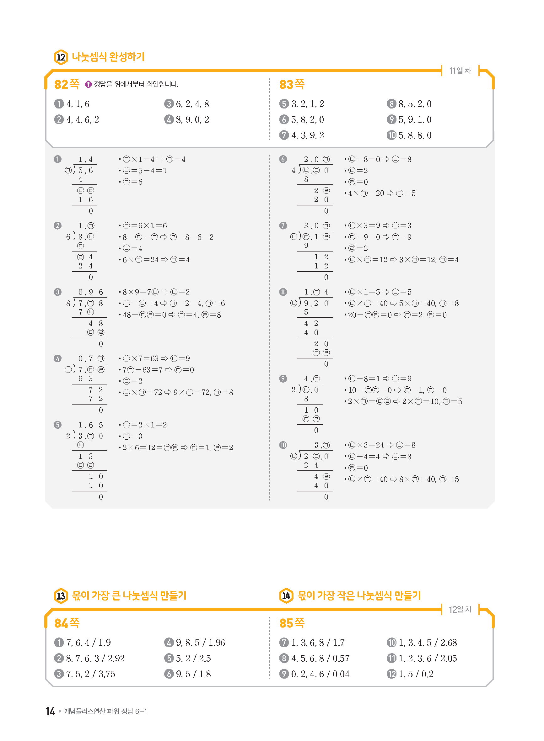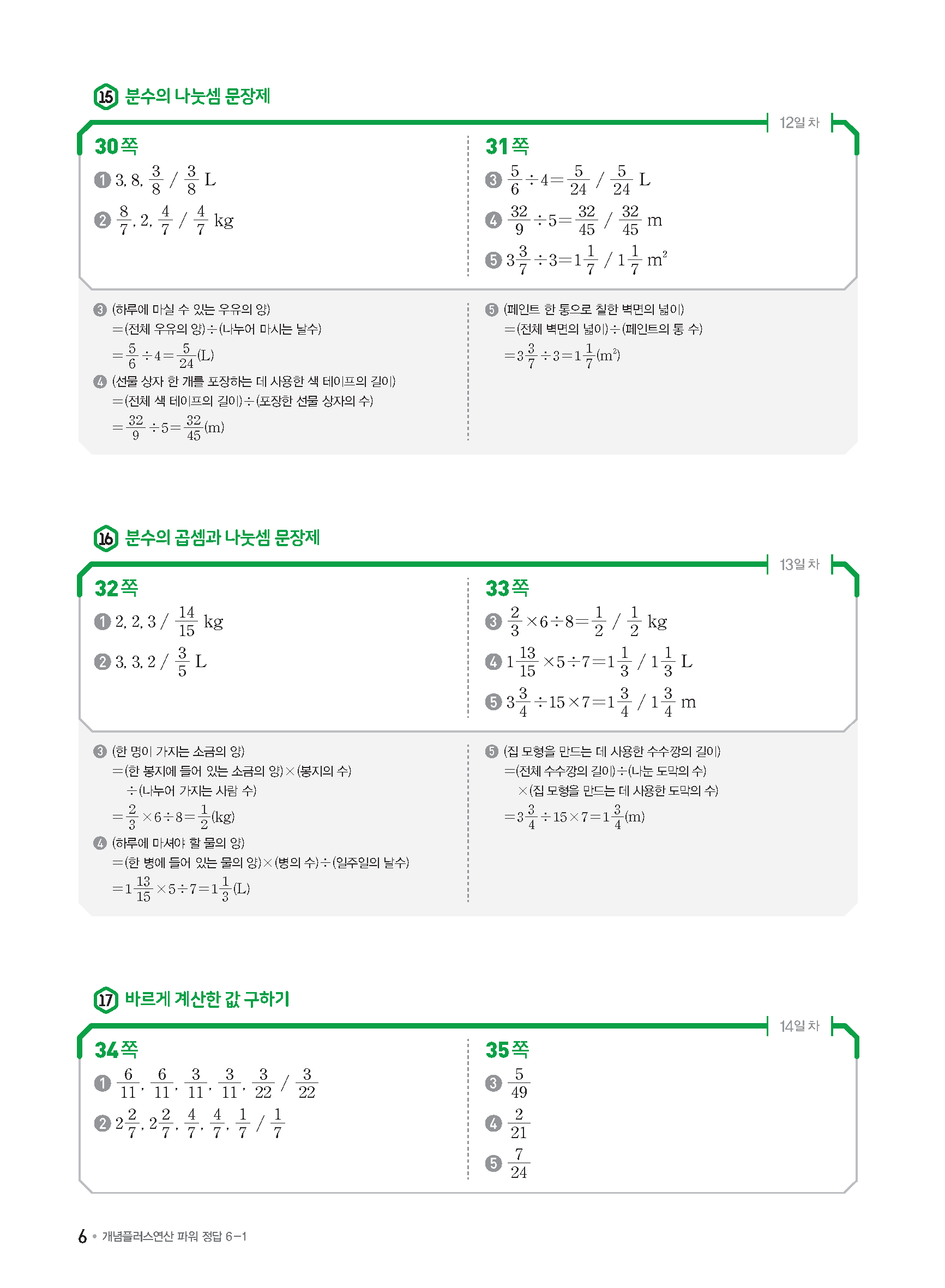 2021 개념플러스연산파워 초등수학답지 6-1 답지 사진답지 빠른답지 모바일최적화