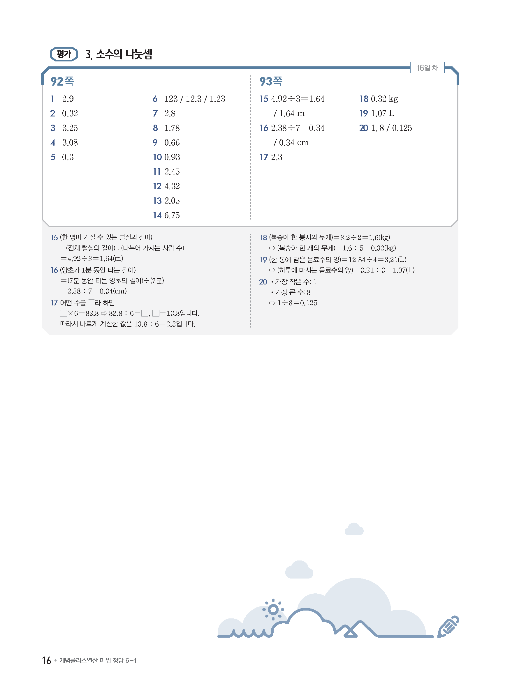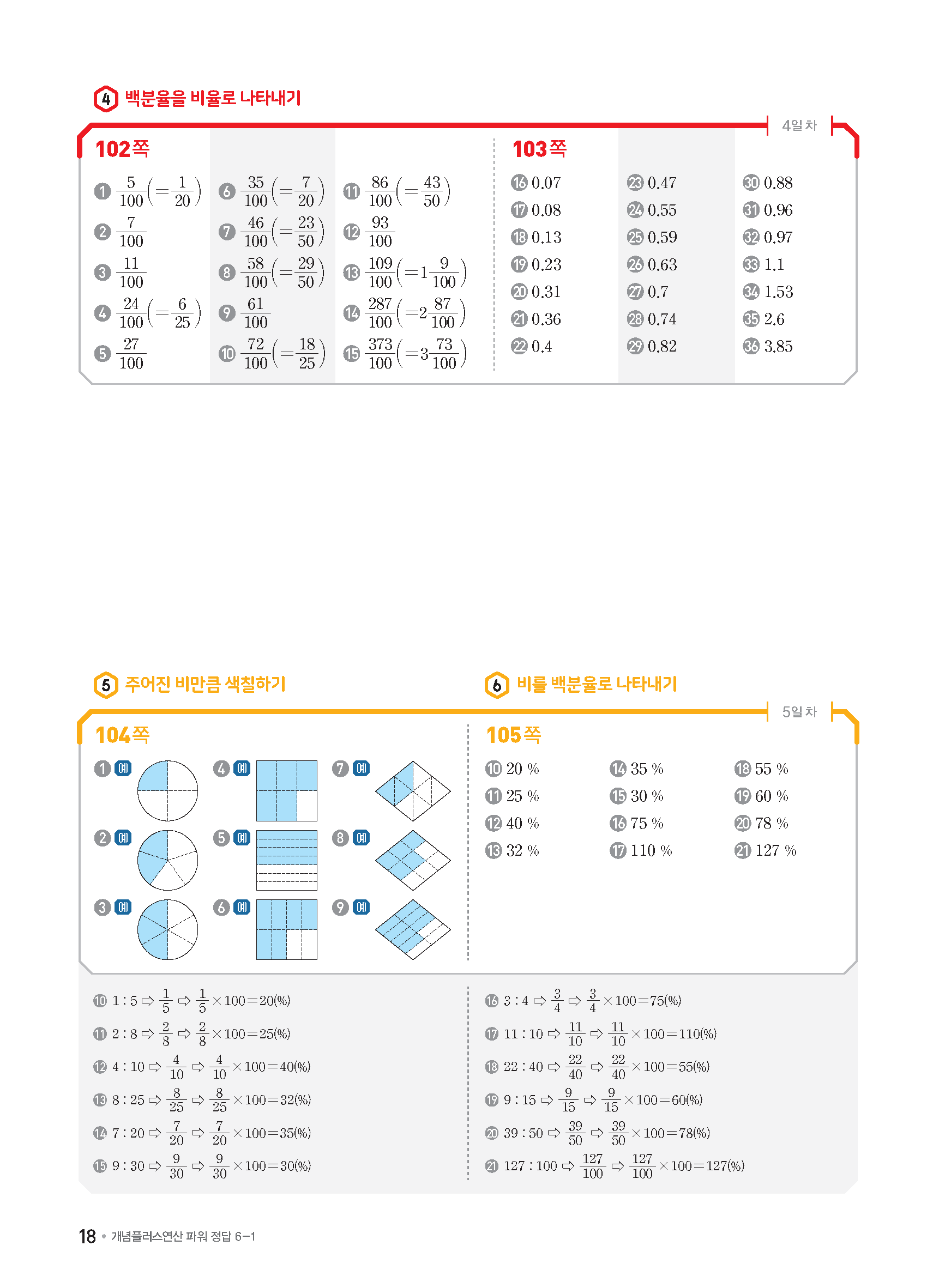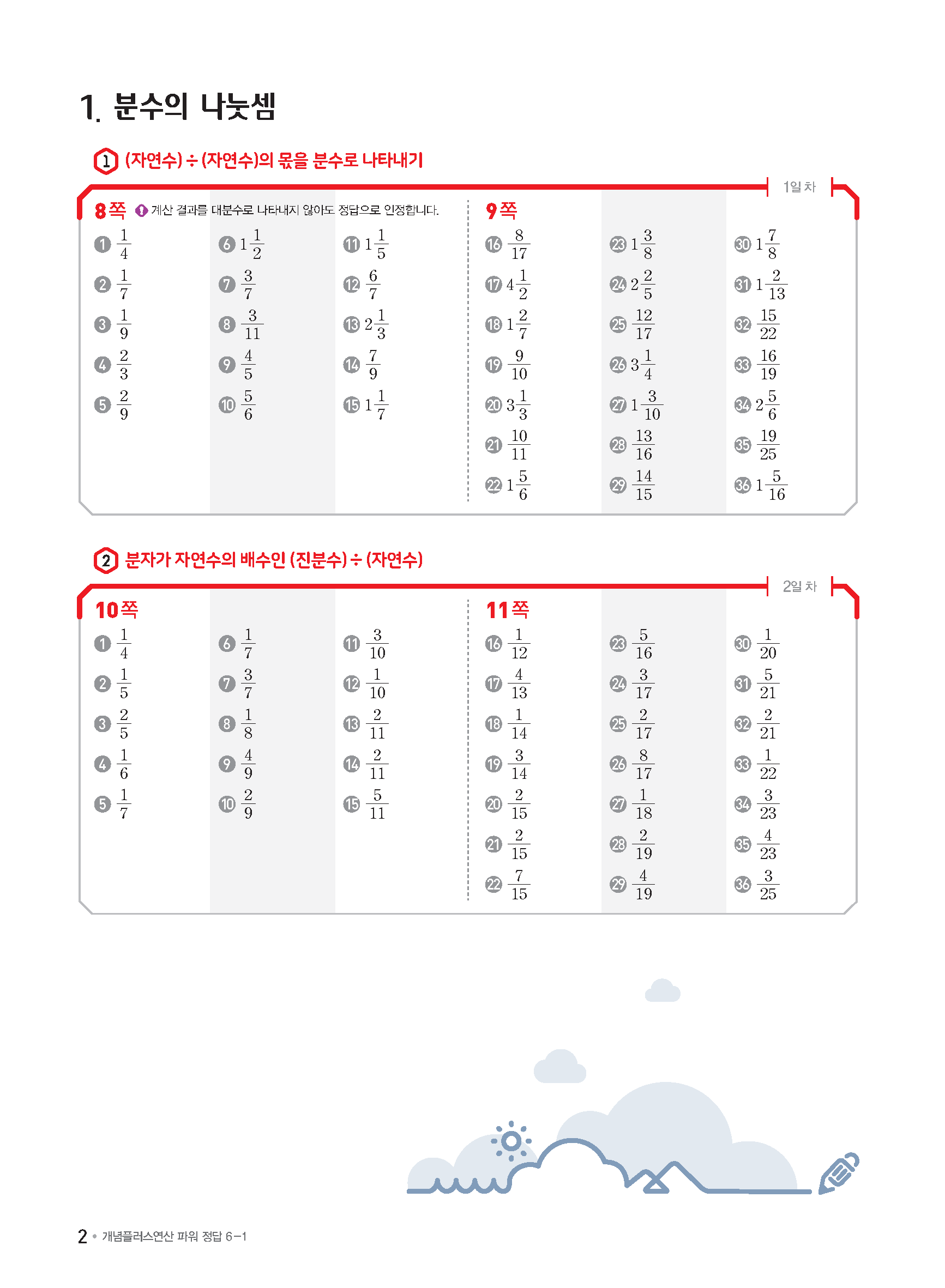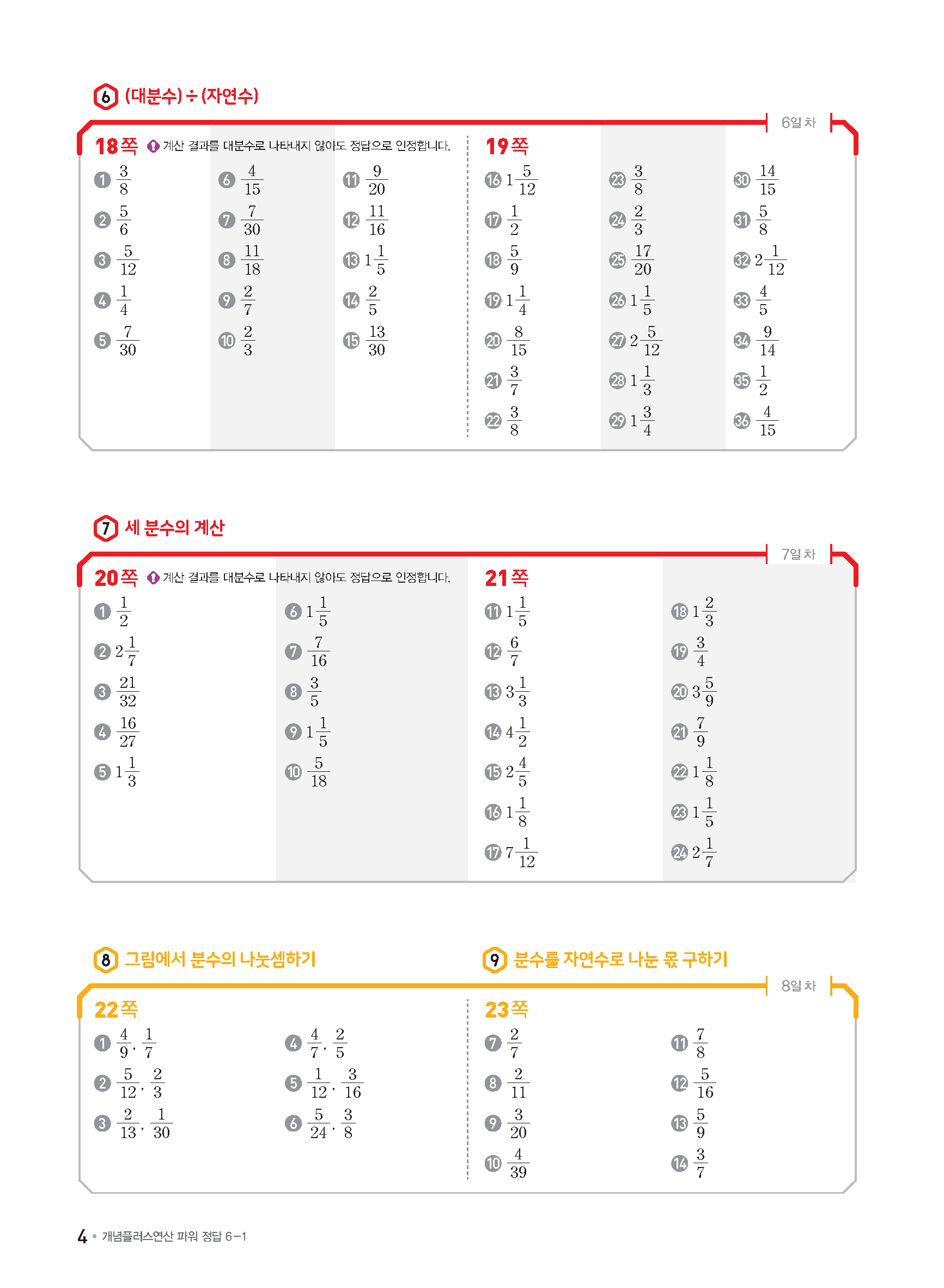 2021 개념플러스연산파워 초등수학답지 6-1 답지 사진답지 빠른답지 모바일최적화