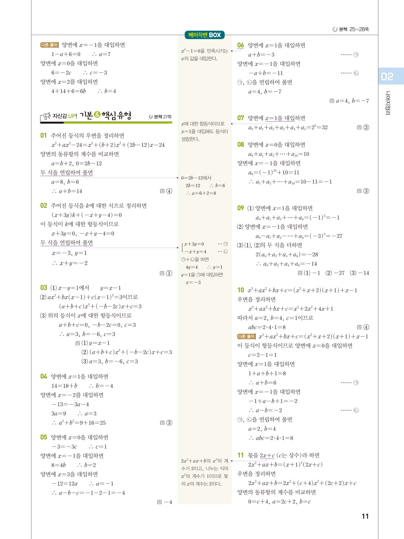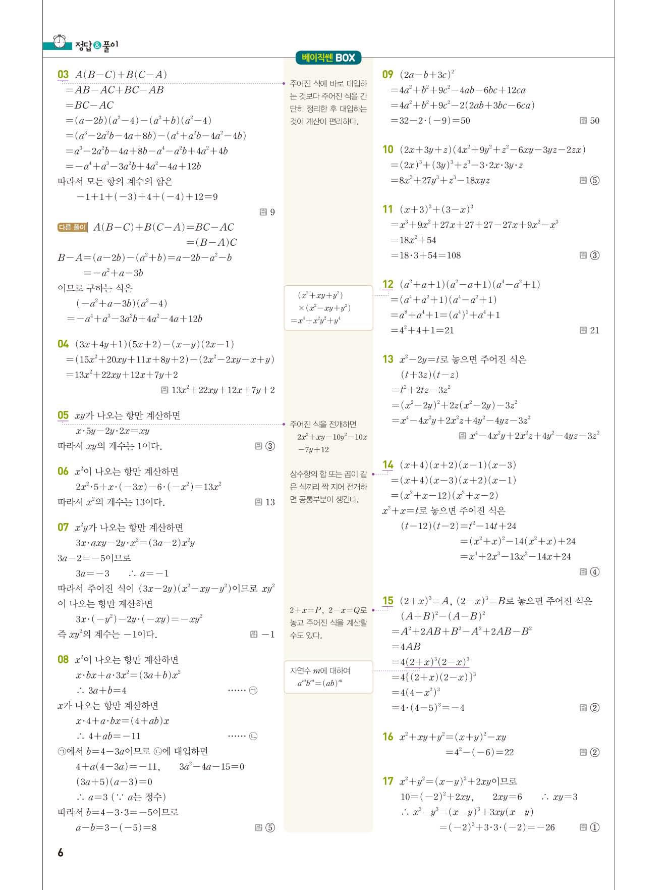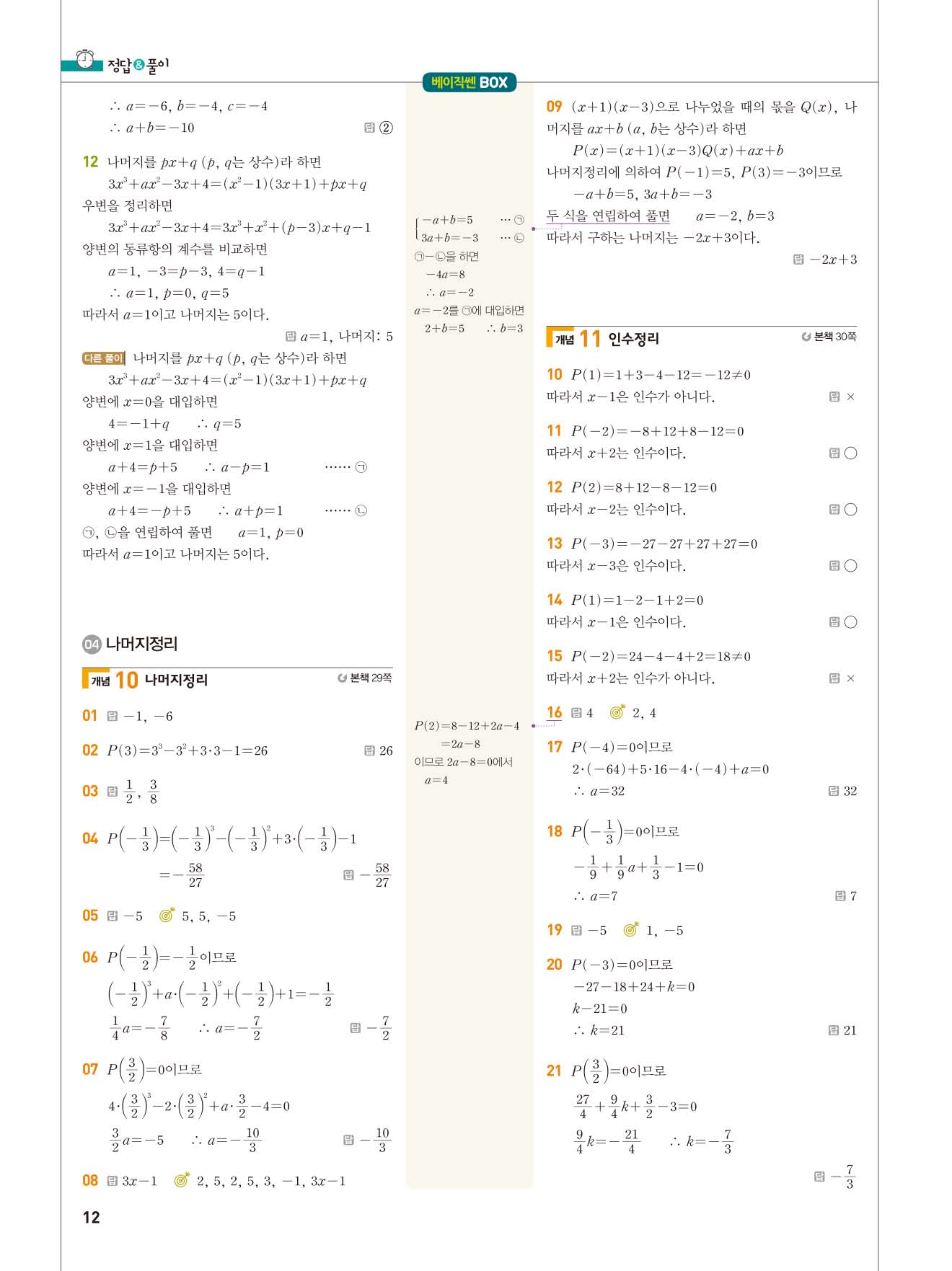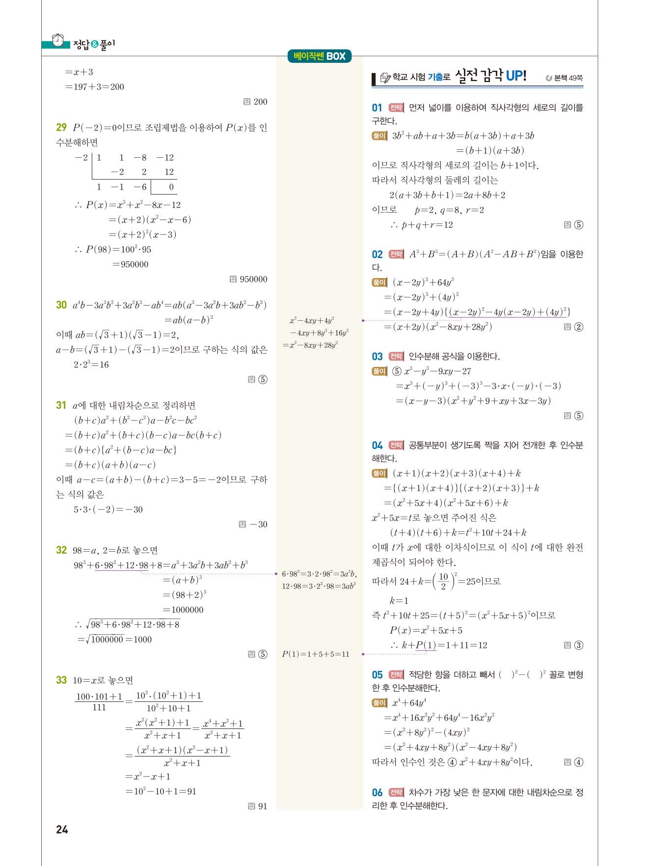 베이직쎈 고등수학상 사진답지 빠른답지 모바일최적화