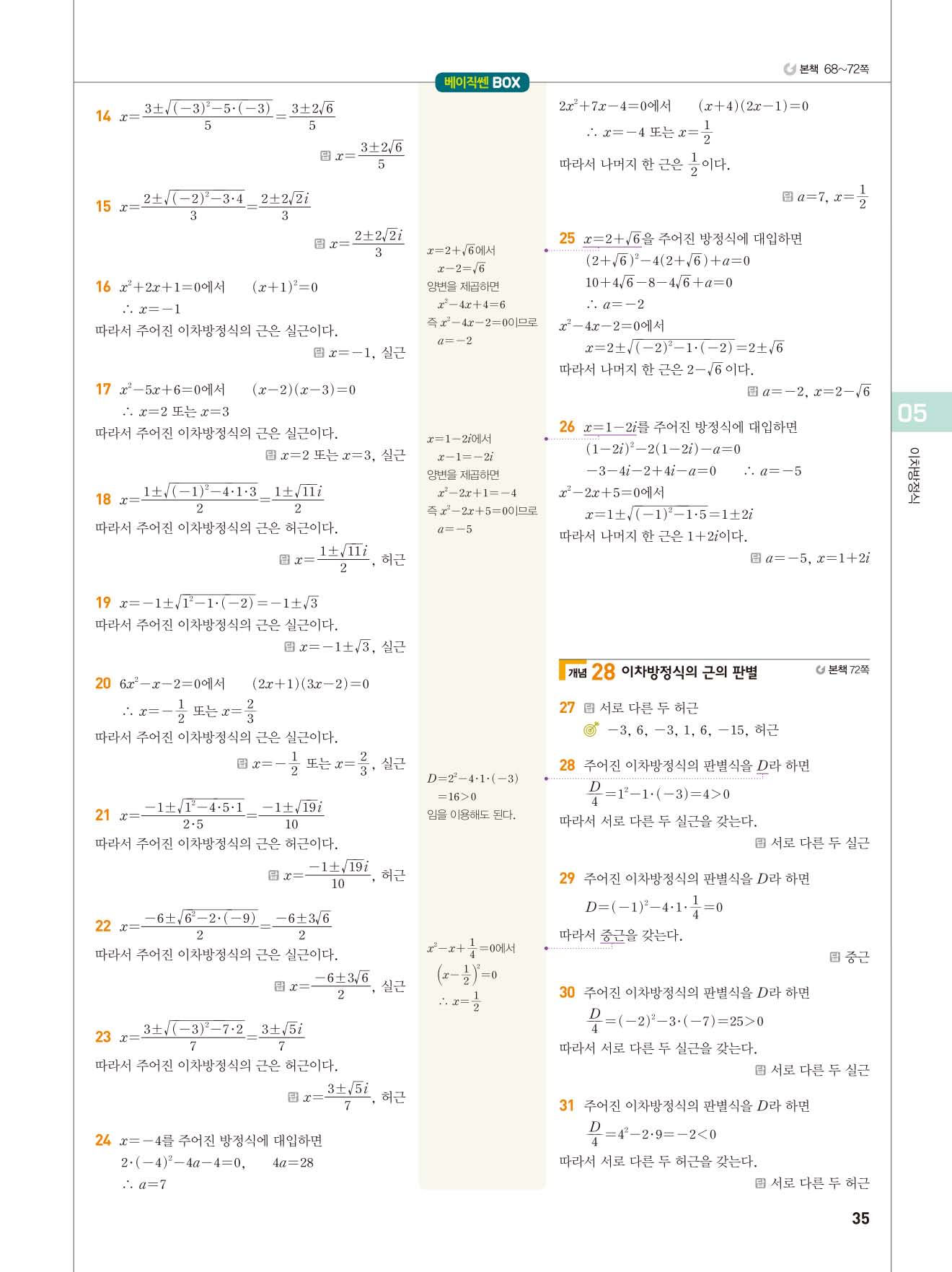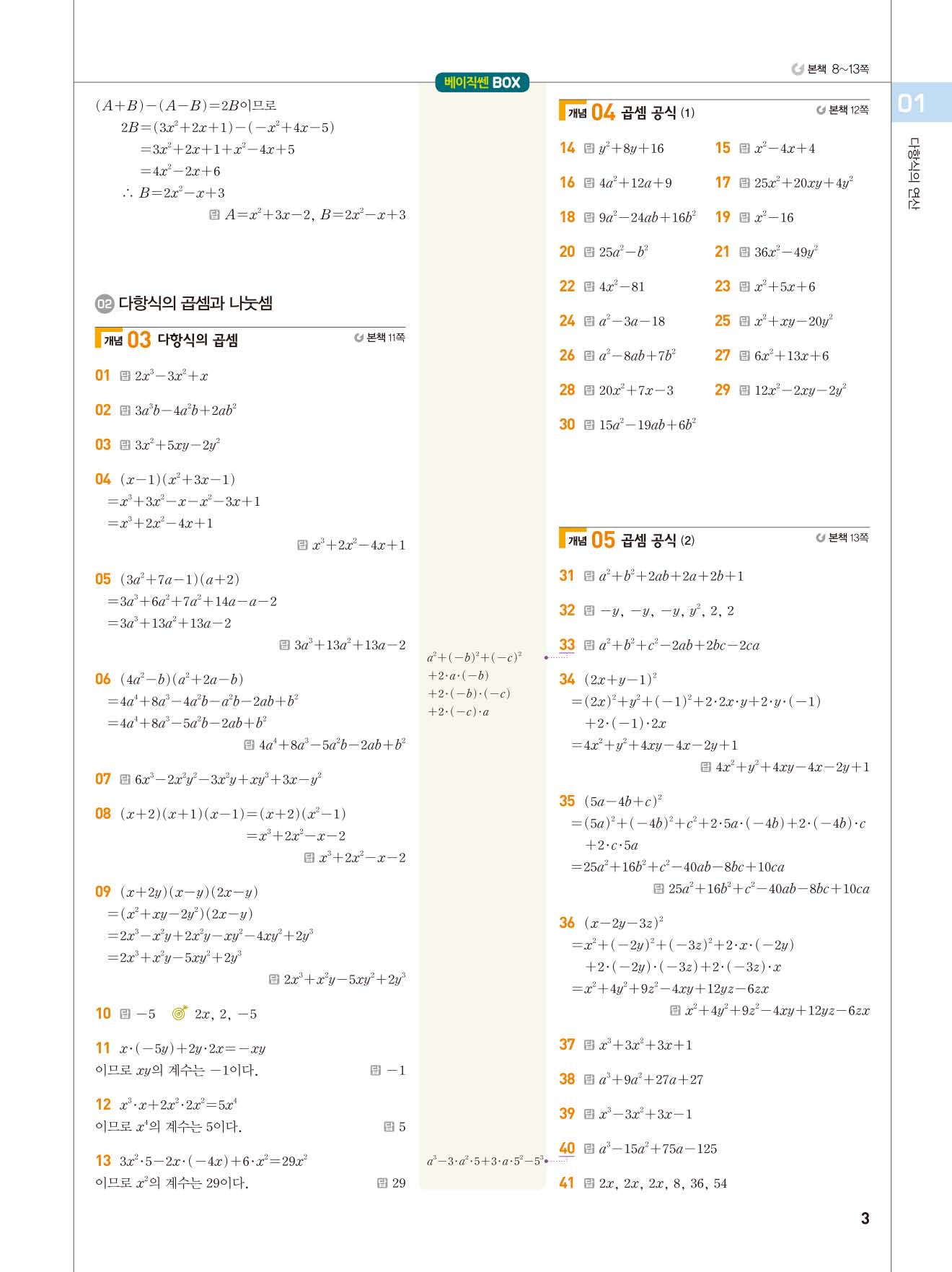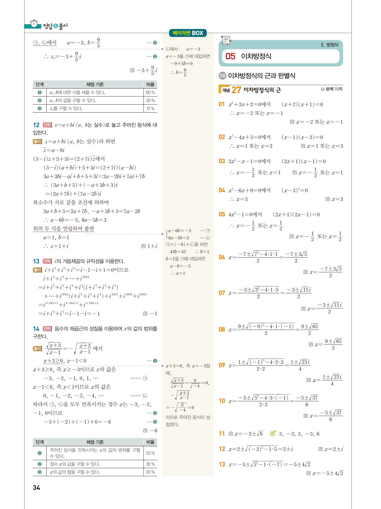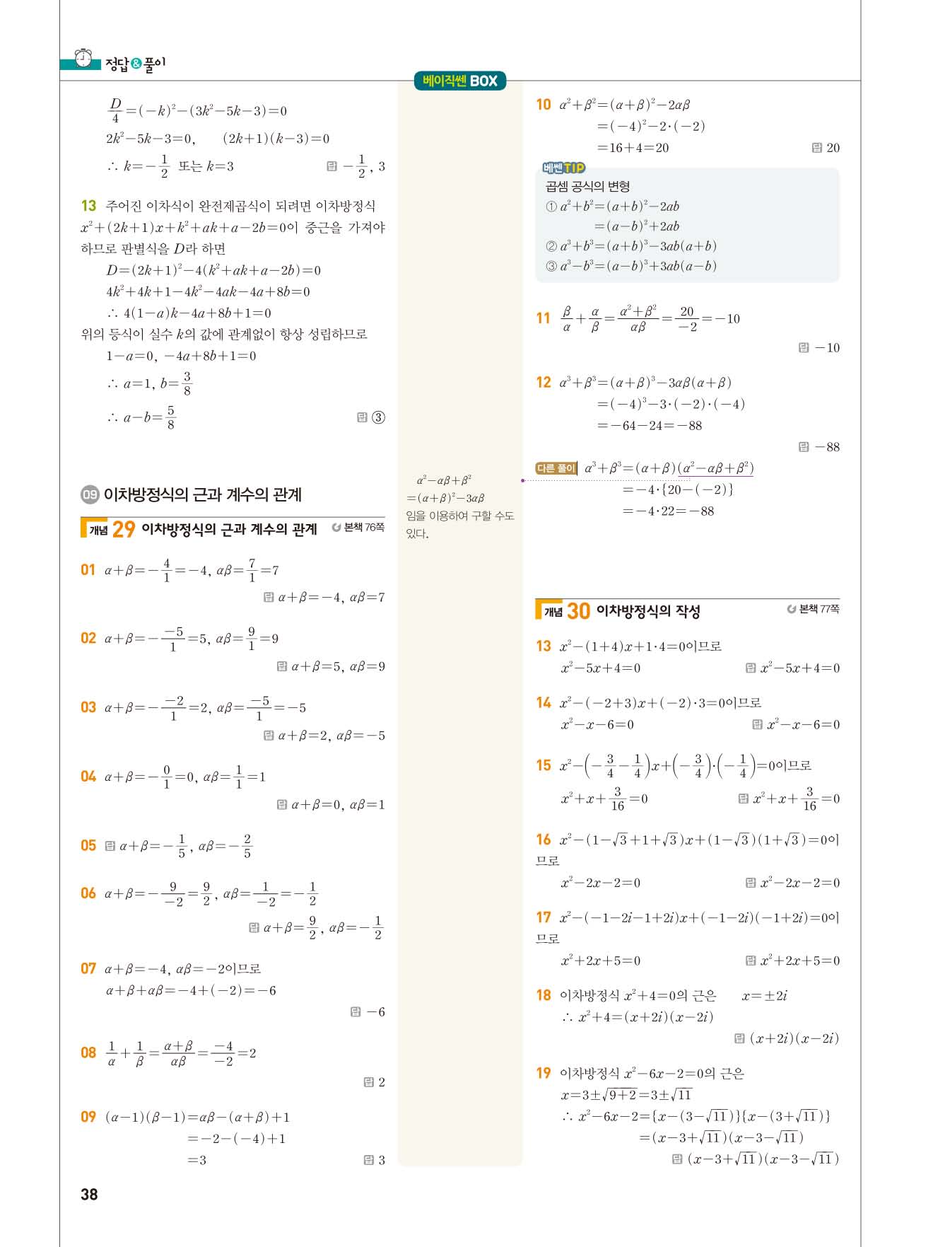 베이직쎈 고등수학상 사진답지 빠른답지 모바일최적화