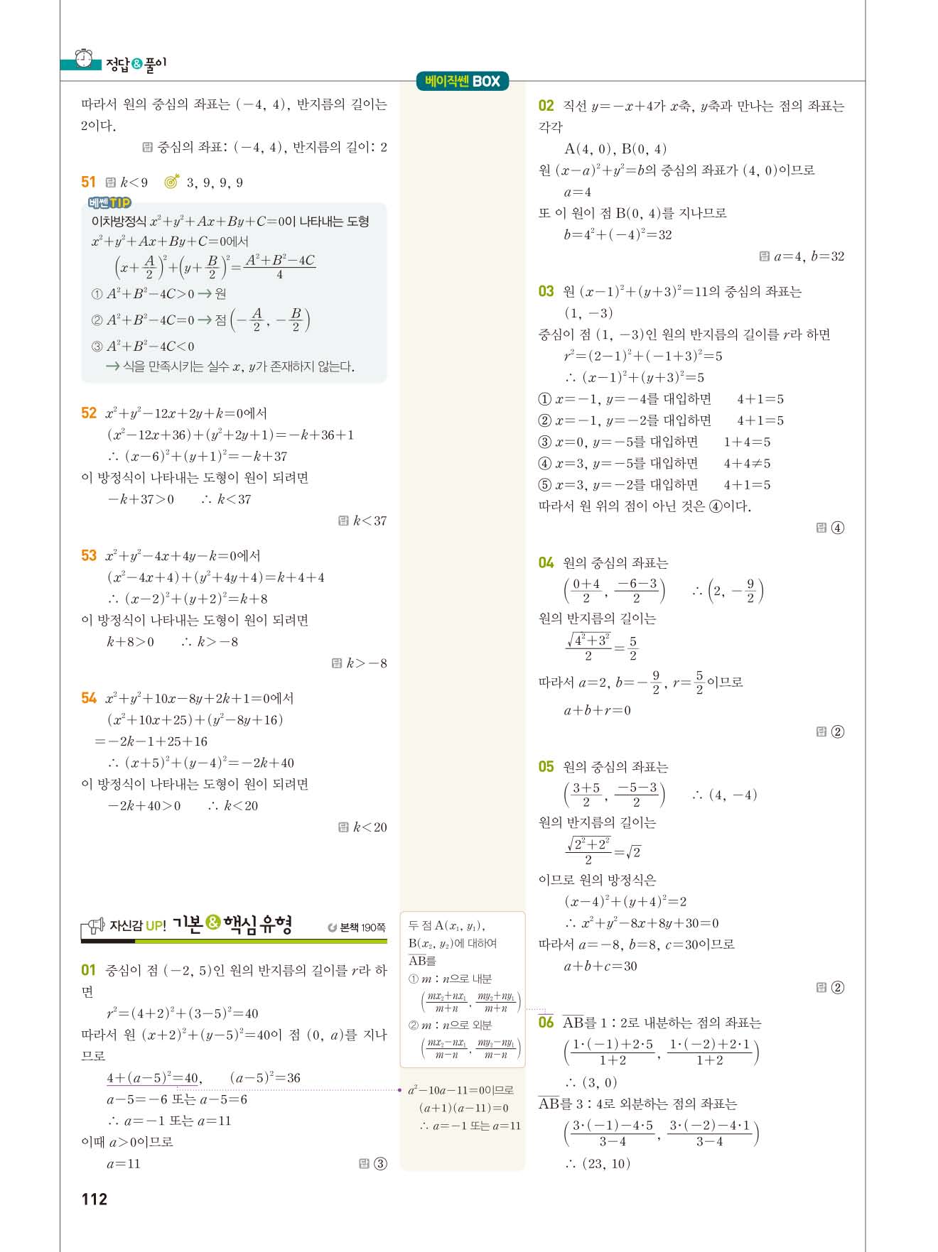 | 베이직쎈 고등수학하 | https://mathuncle.tistory.com/383 |