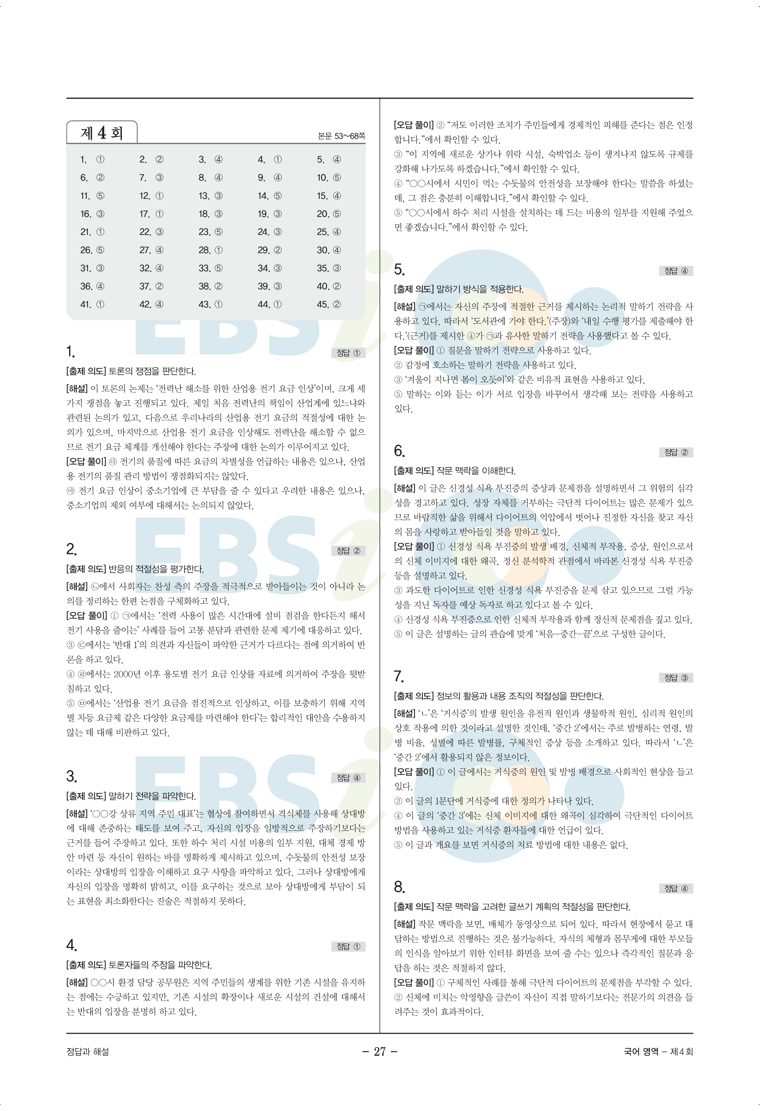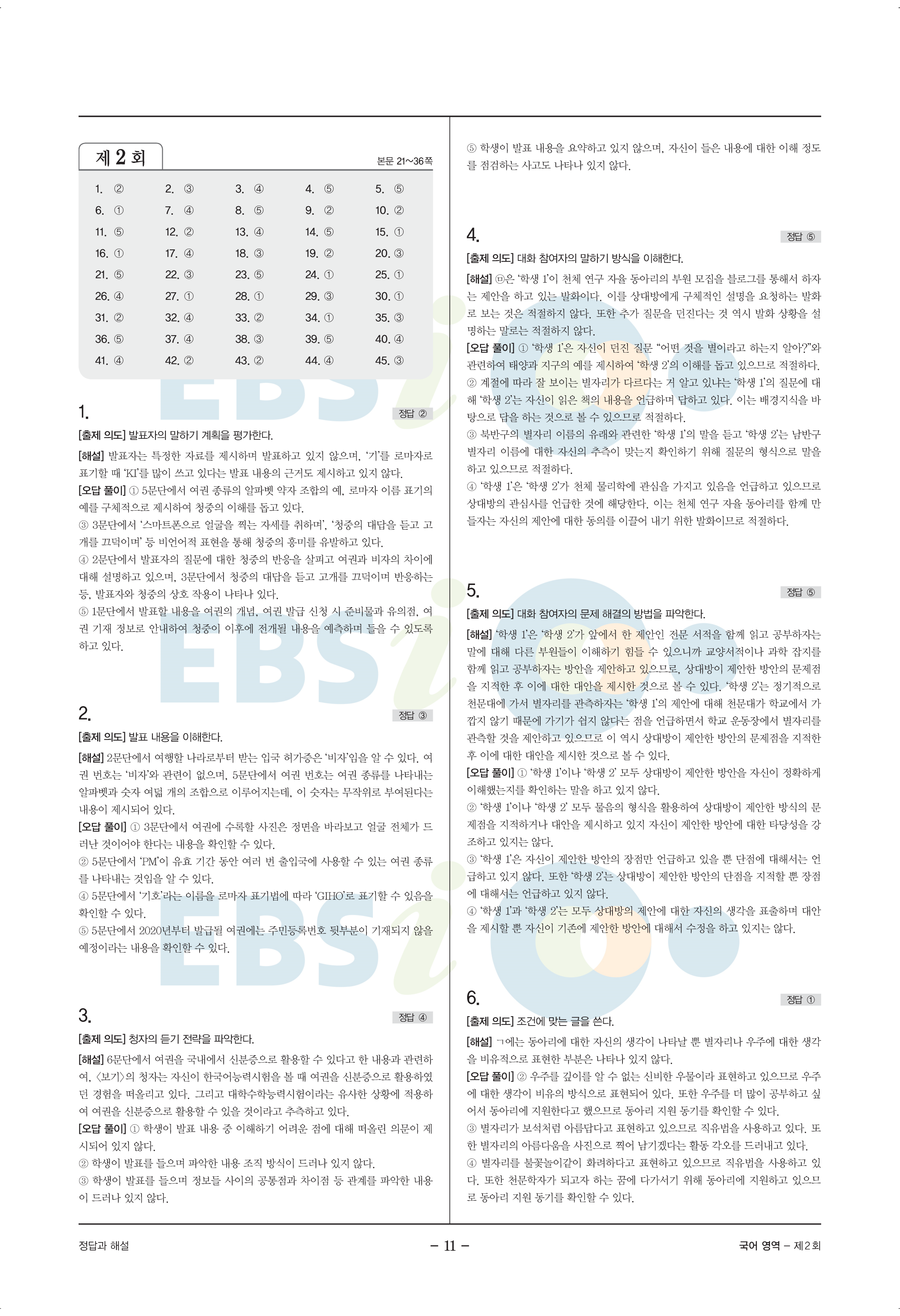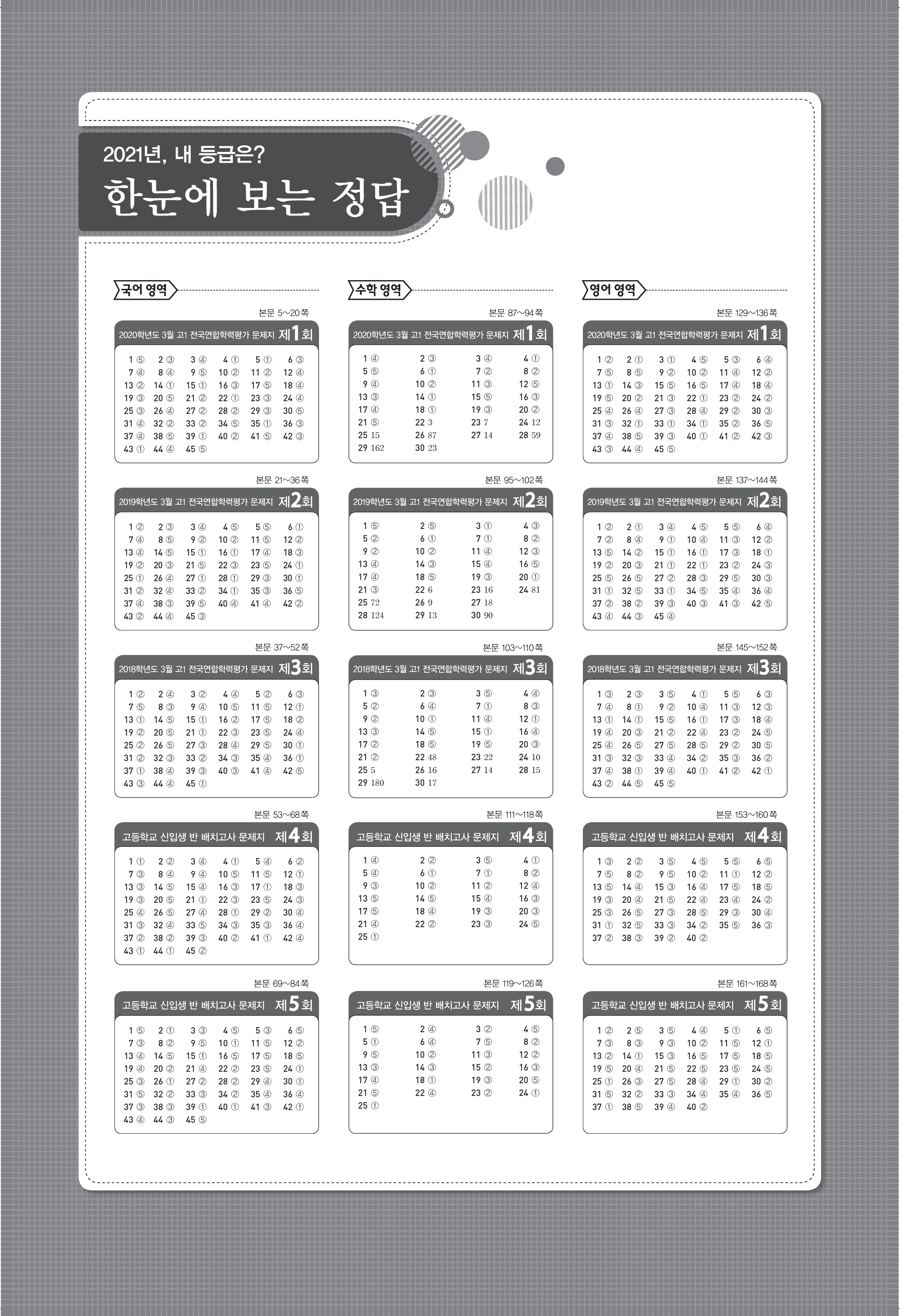 EBS 2021년 내 등급은 국어 영어 수학 빠른답지 사진답지 해설지 모바일최적화