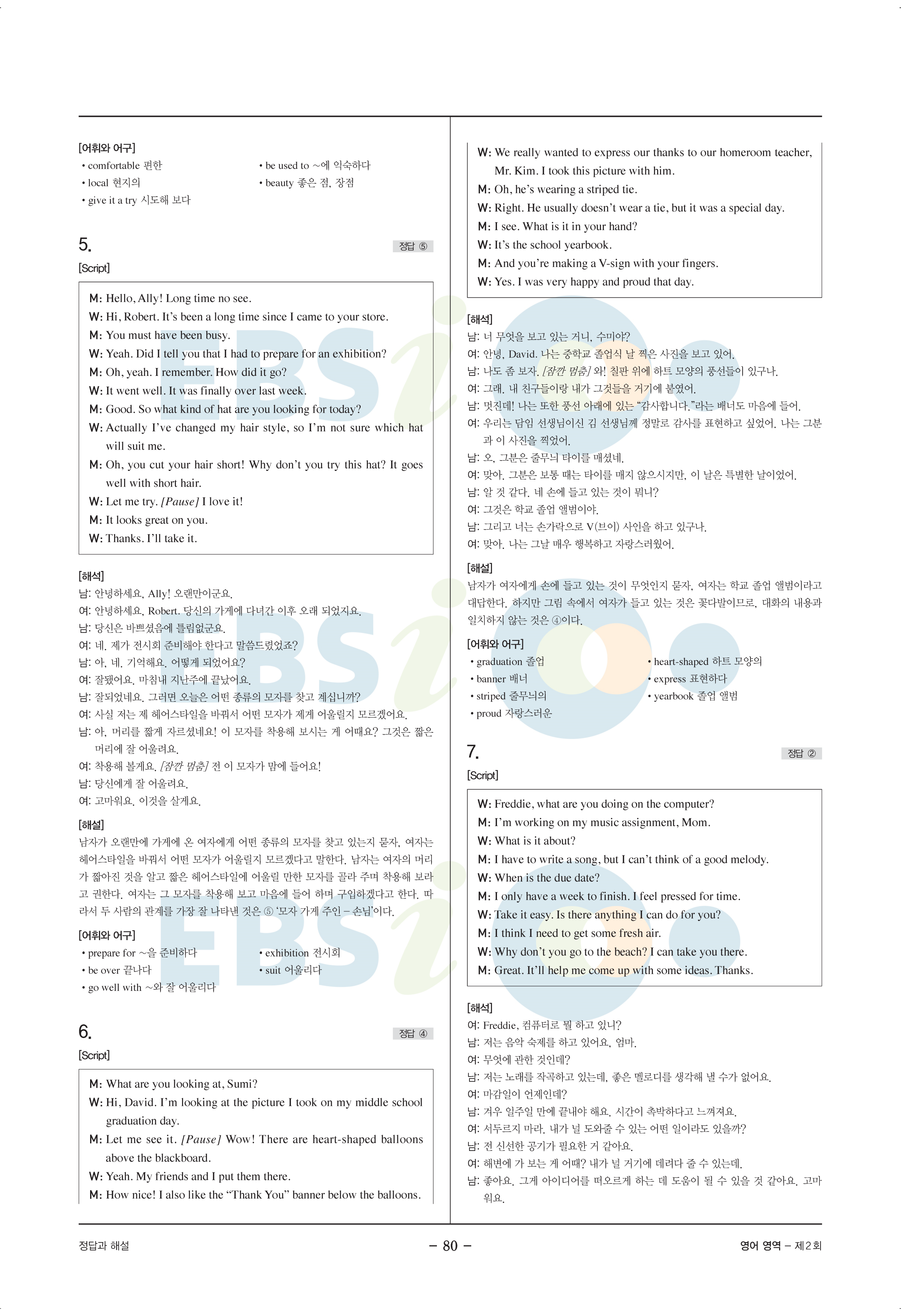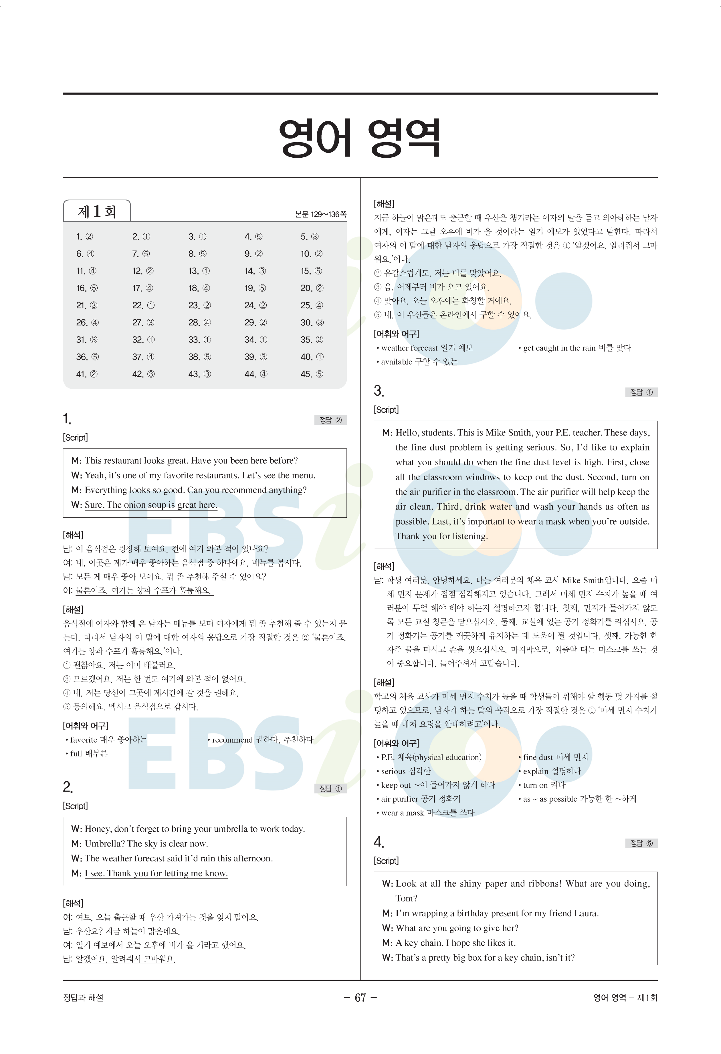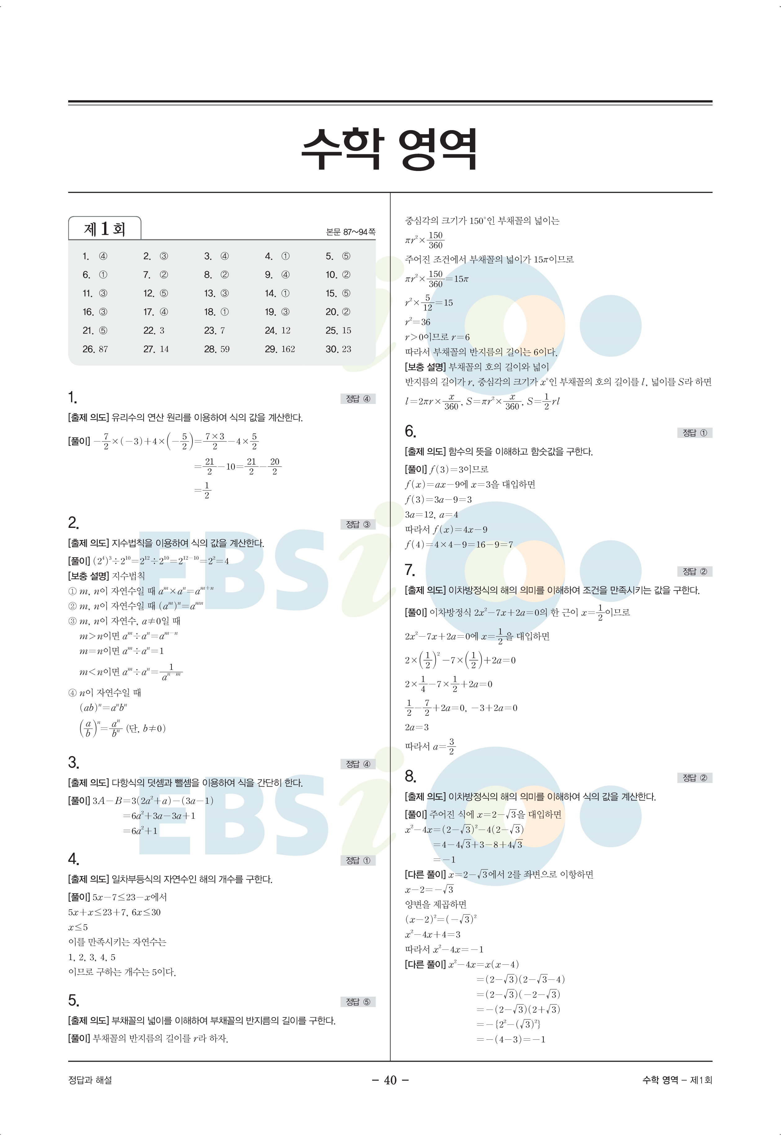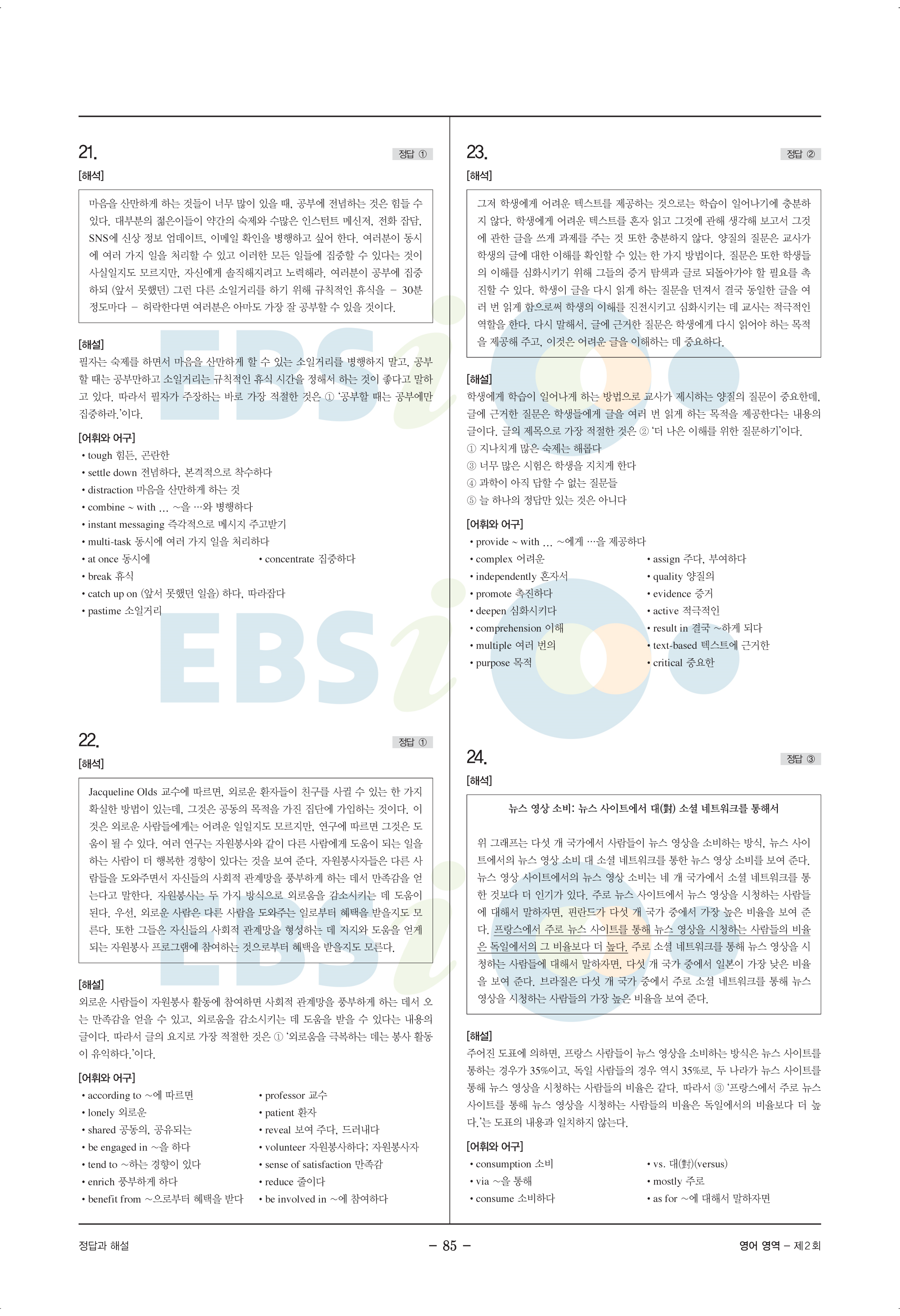 EBS 2021년 내 등급은 국어 영어 수학 빠른답지 사진답지 해설지 모바일최적화