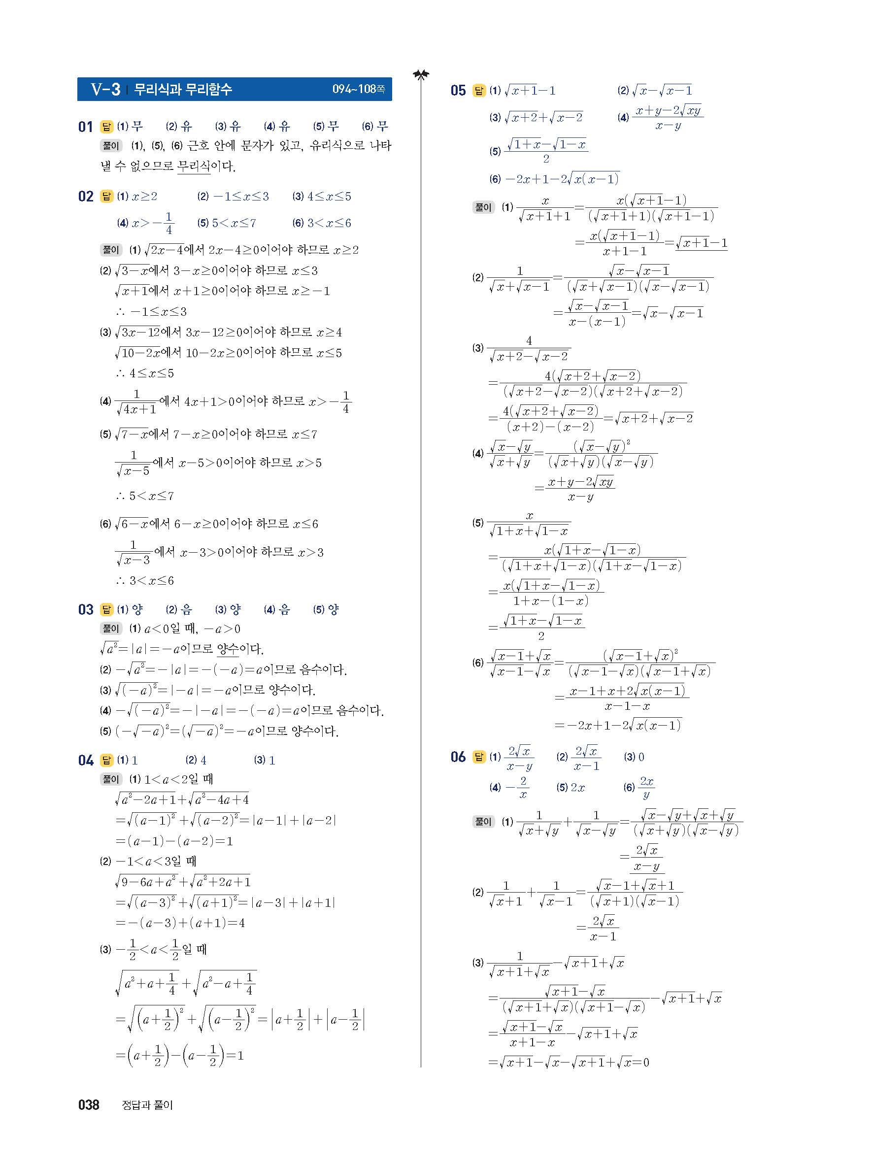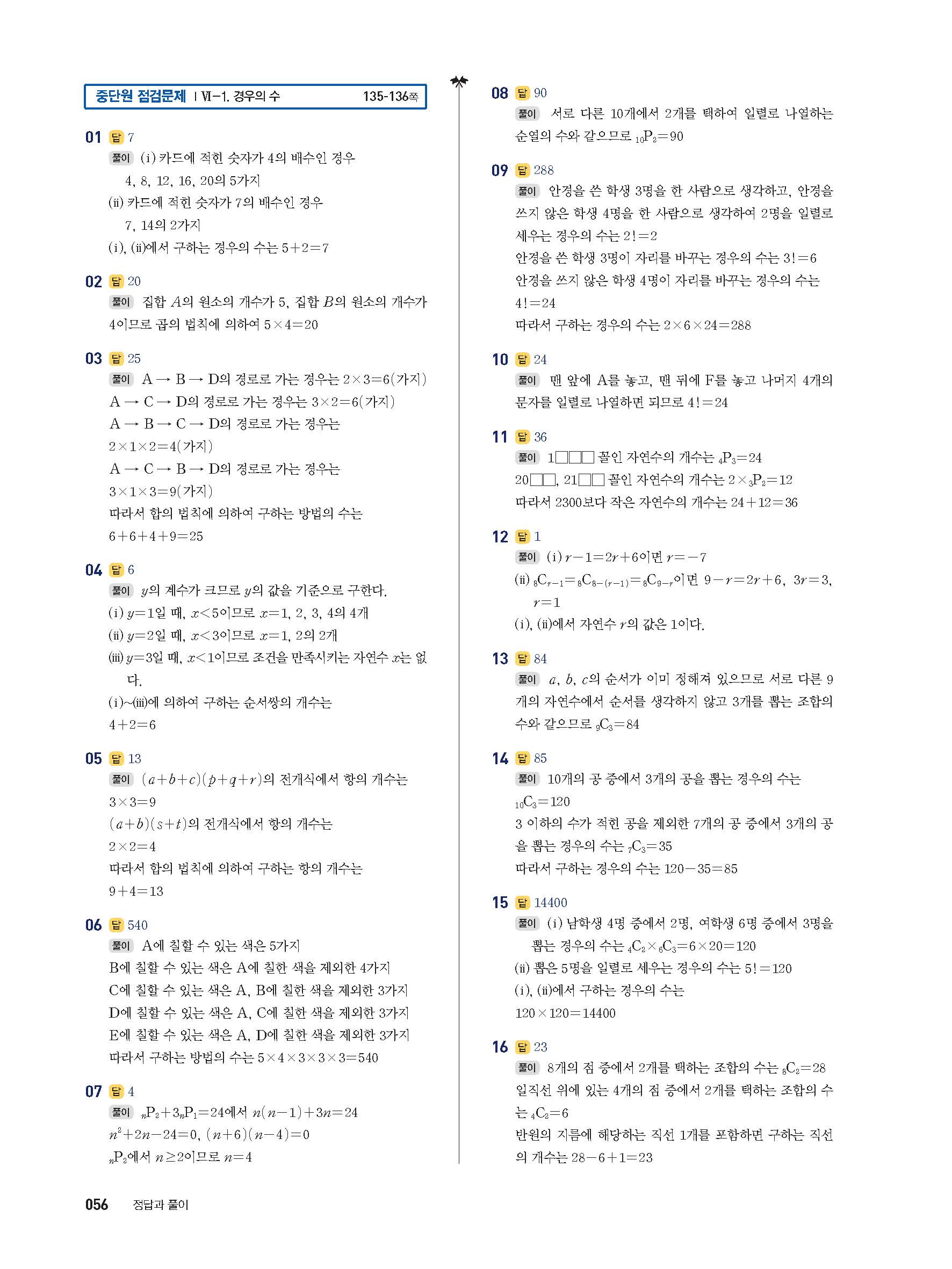 풍산자반복수학 수학하 사진답지 빠른답지 모바일최적화