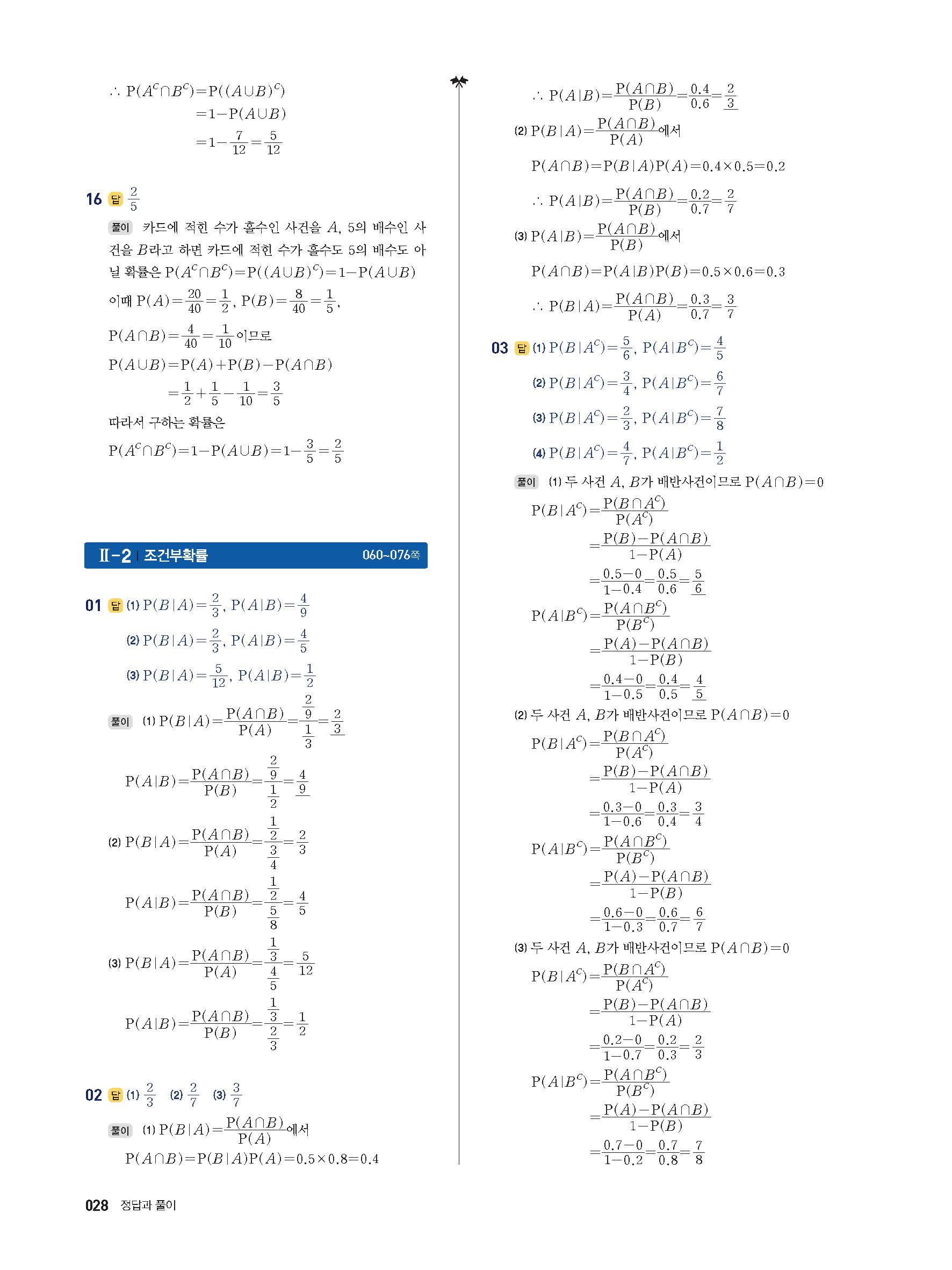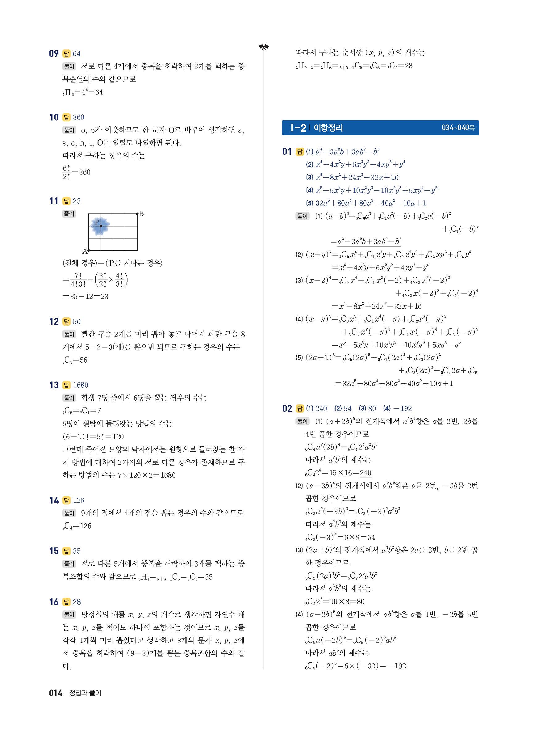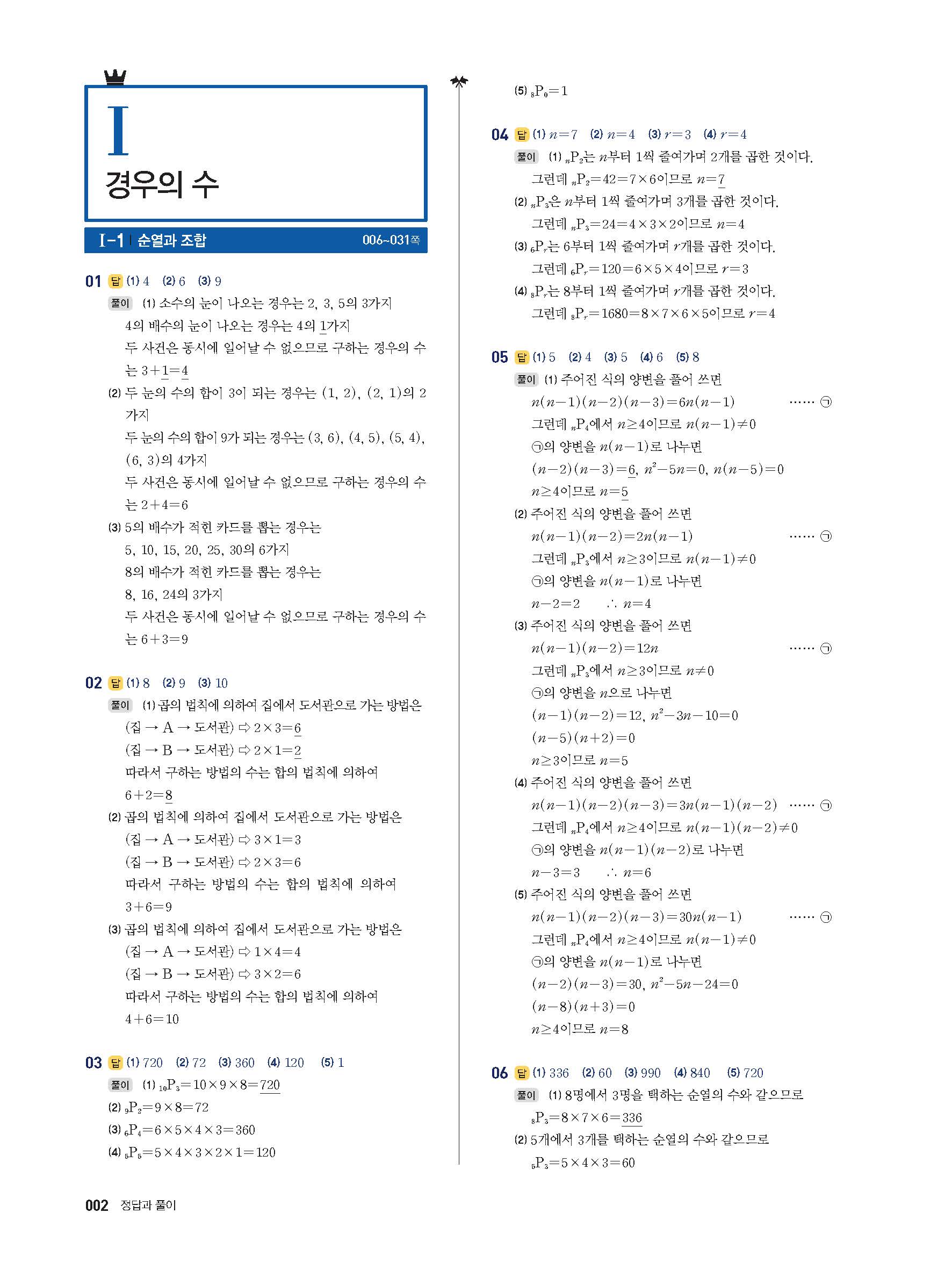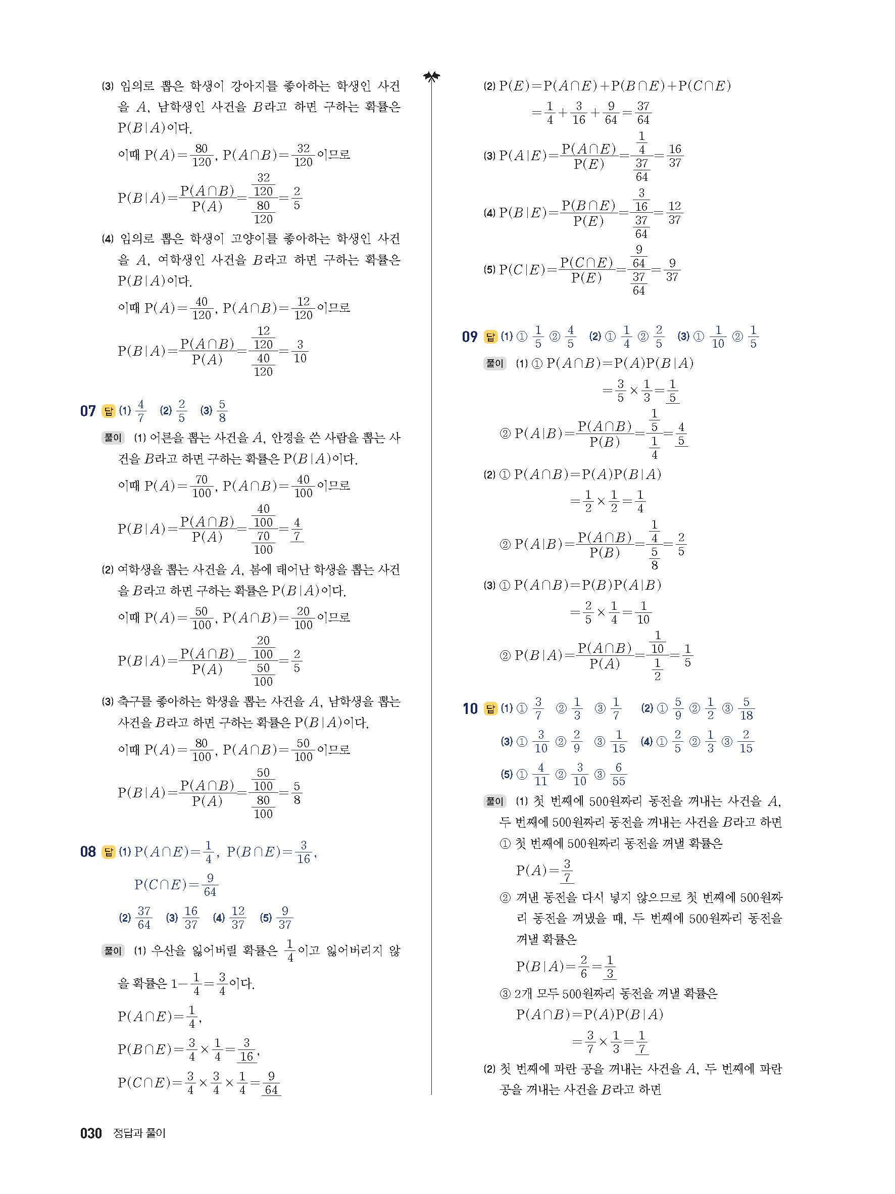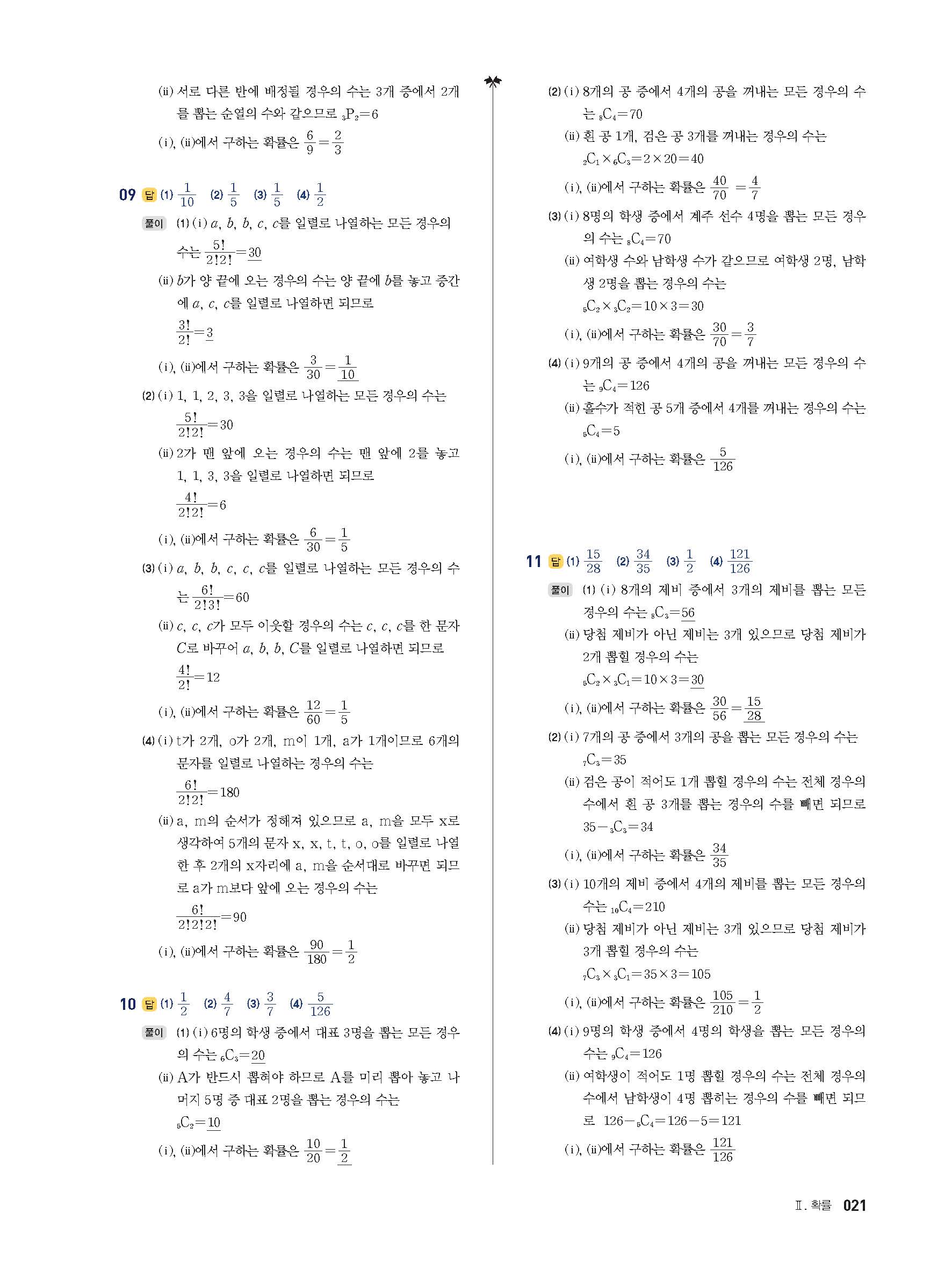 풍산자반복수학 확률과통계 사진답지 빠른답지 모바일최적화