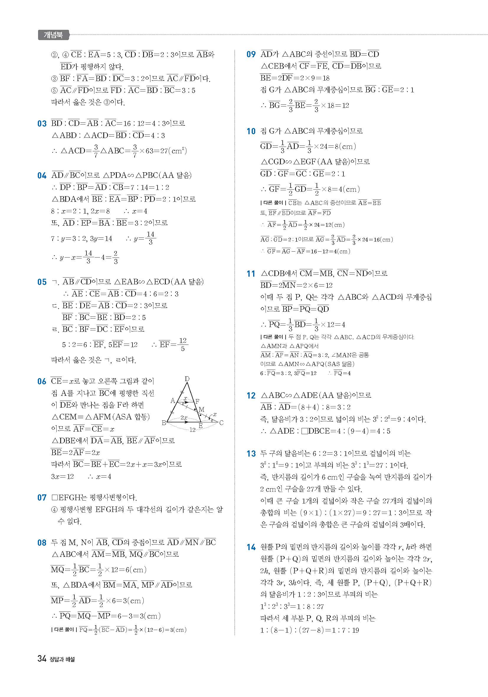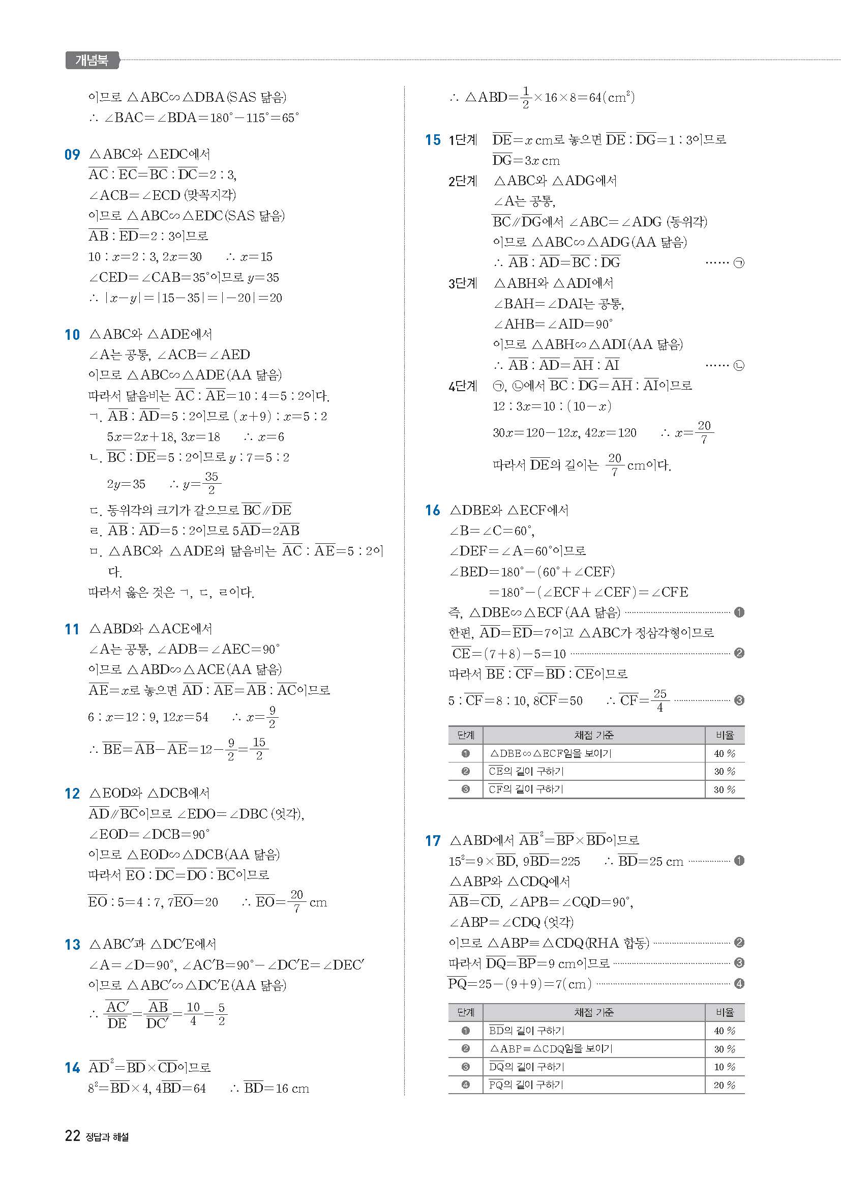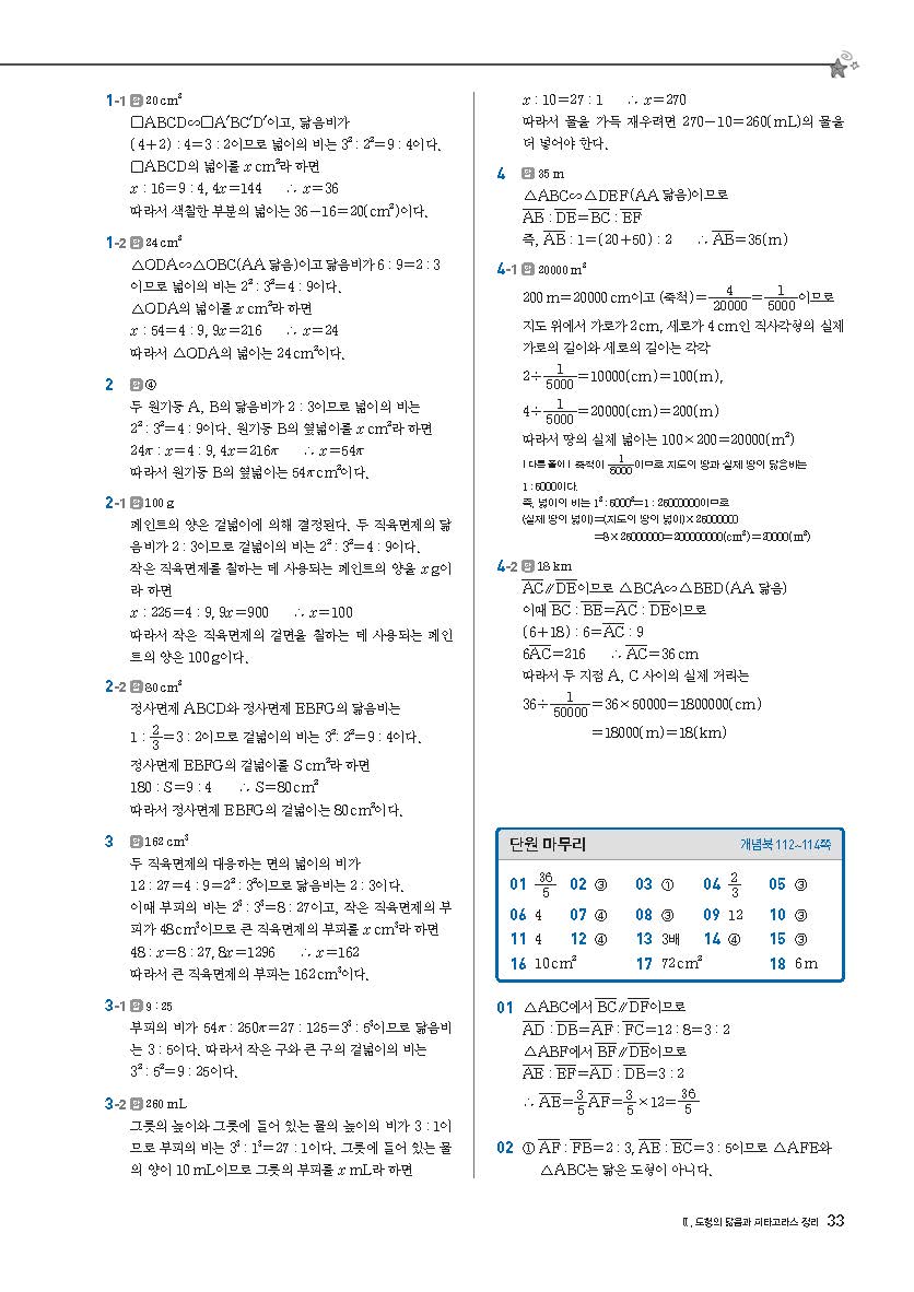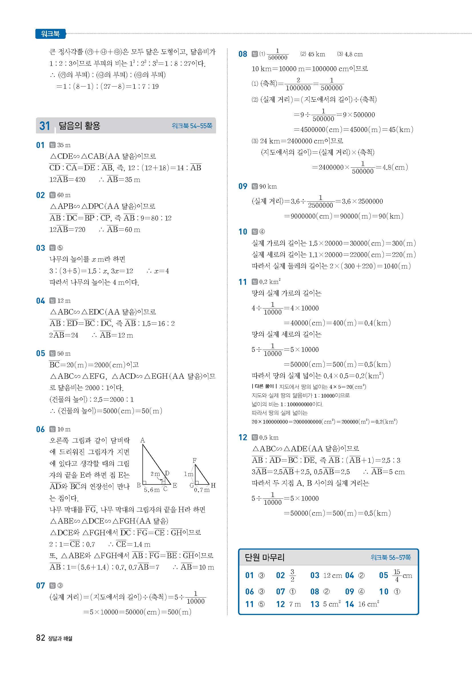 풍산자개념완성 중2하 중2-2 사진답지 빠른답지 모바일최적화