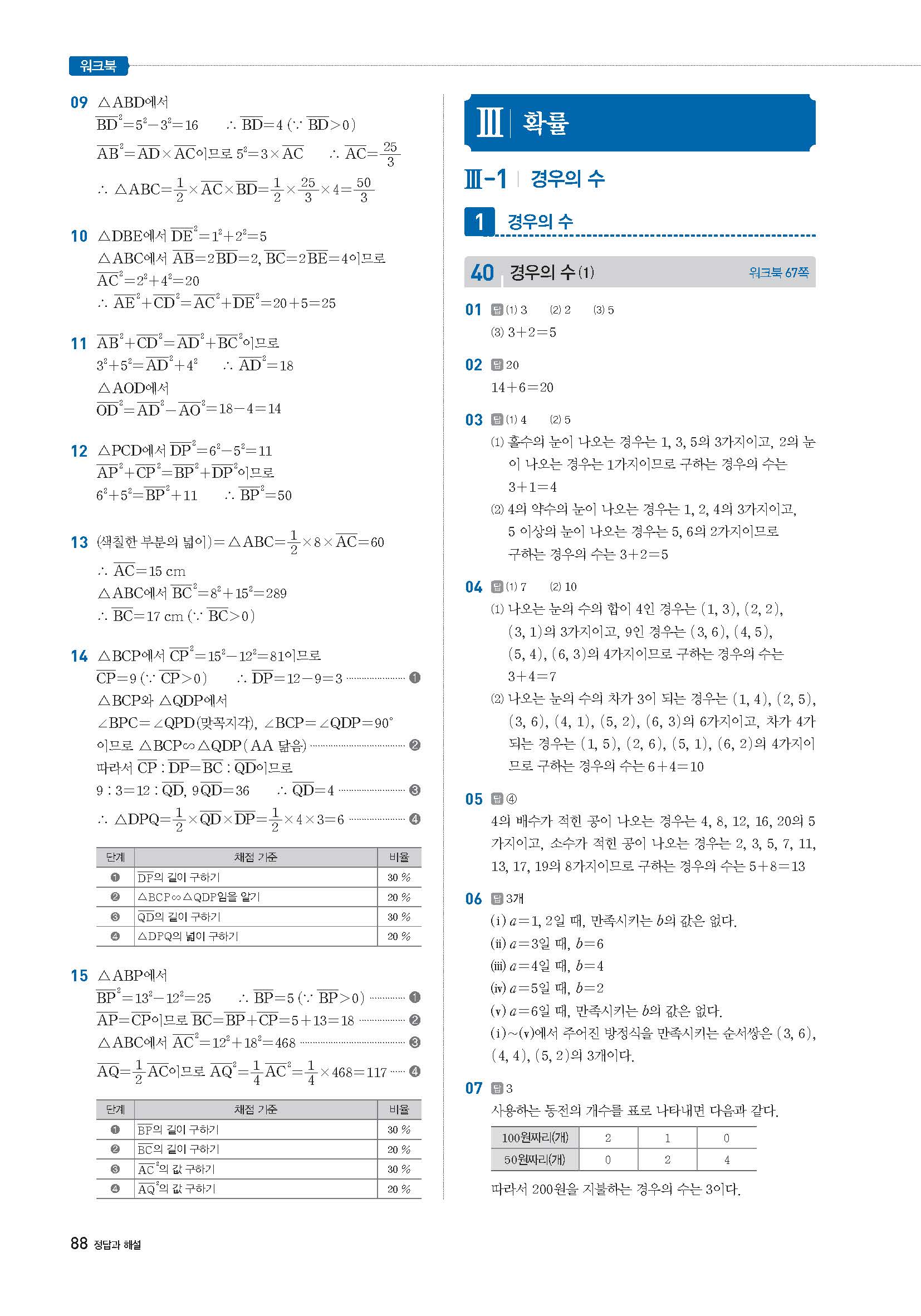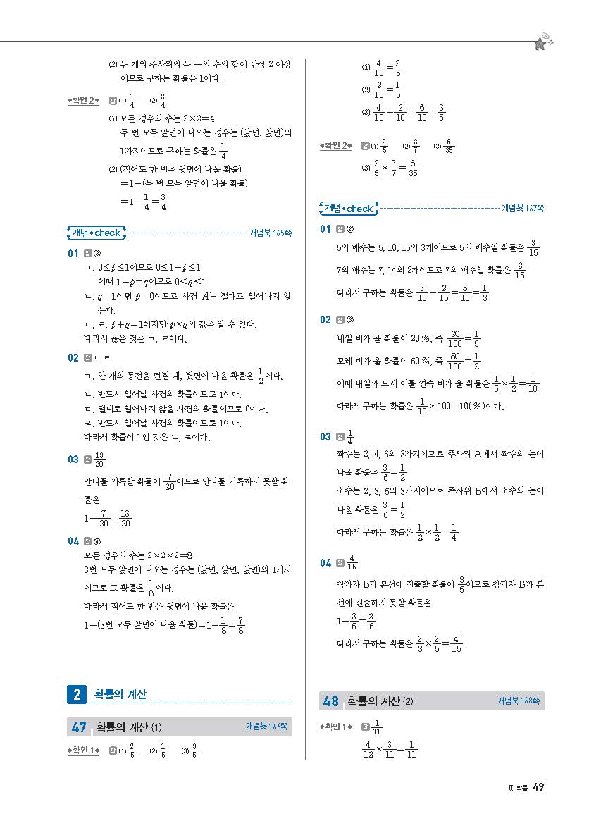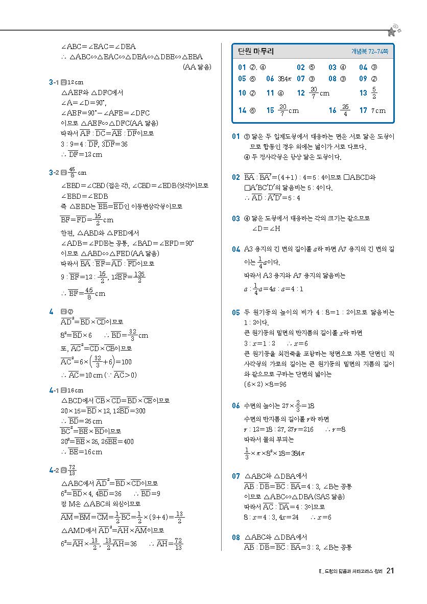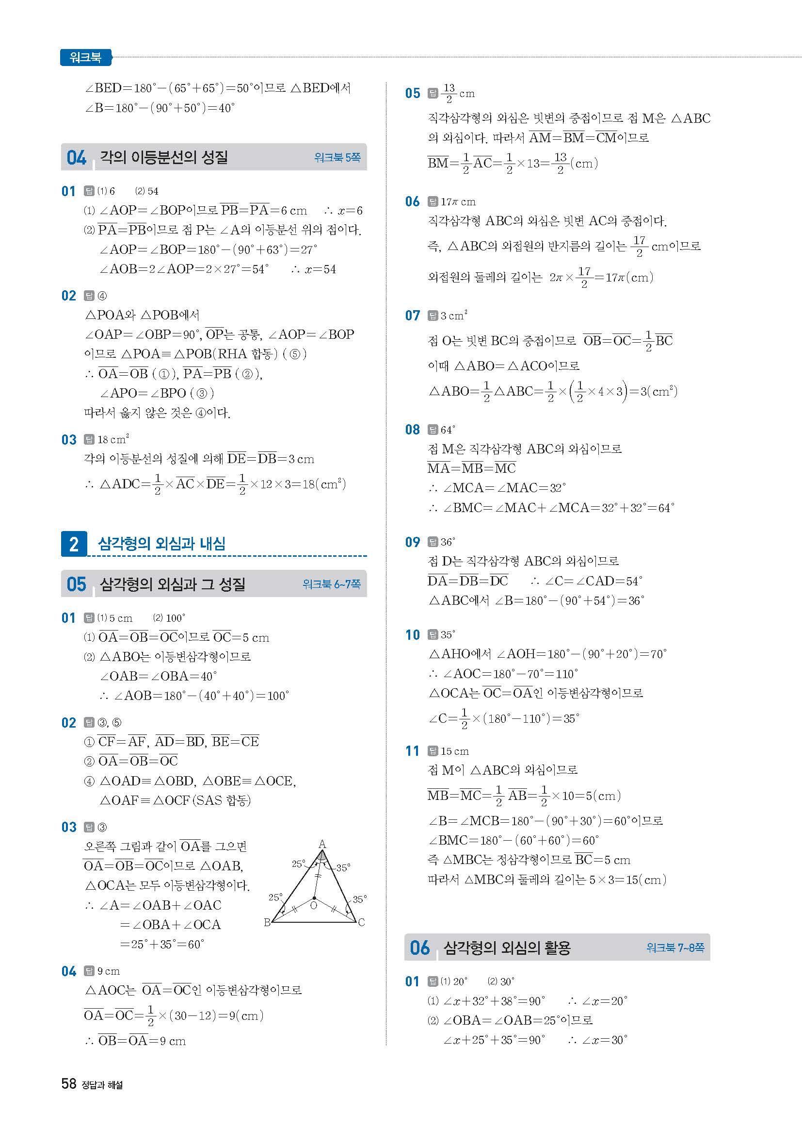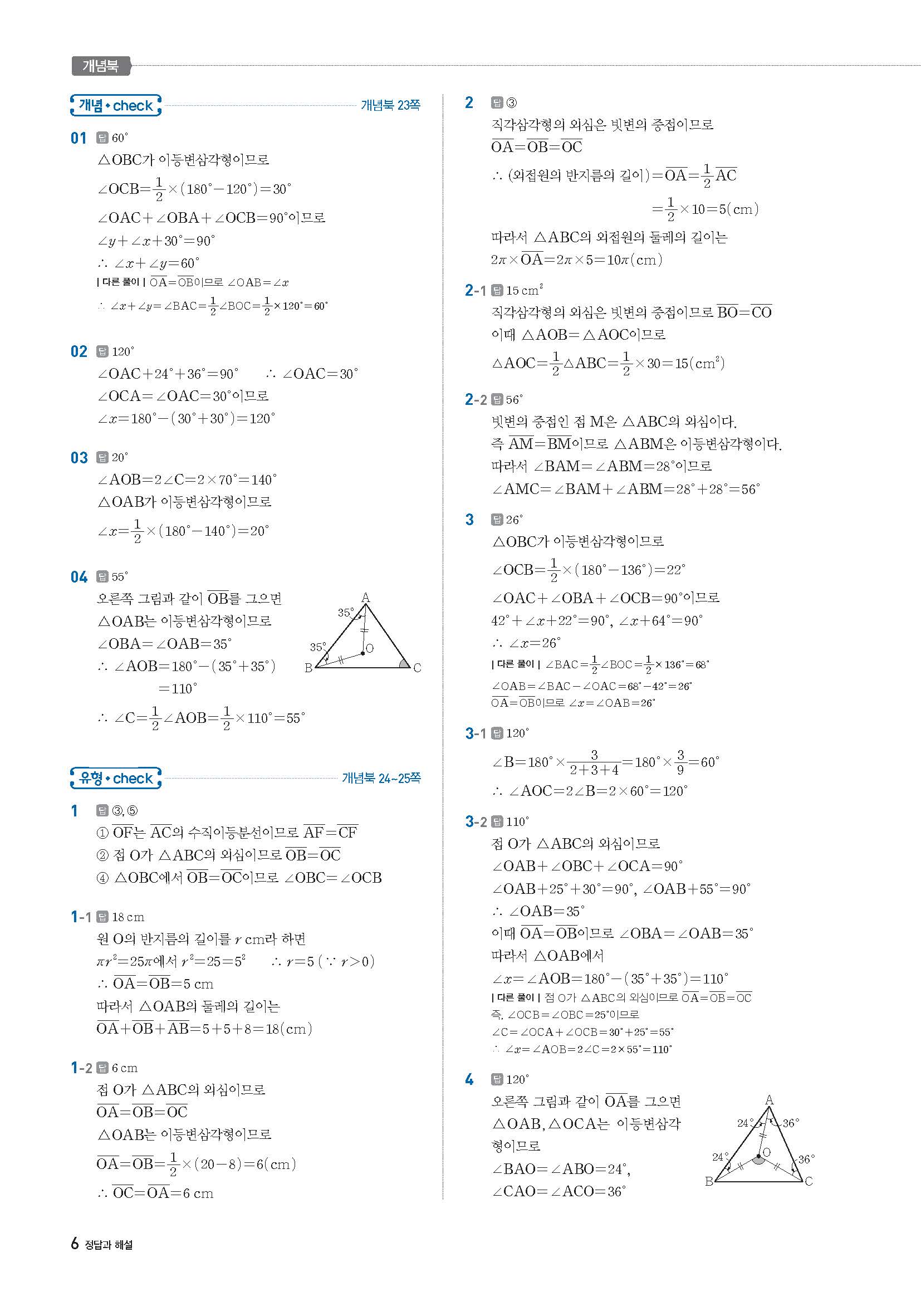 풍산자개념완성 중2하 중2-2 사진답지 빠른답지 모바일최적화