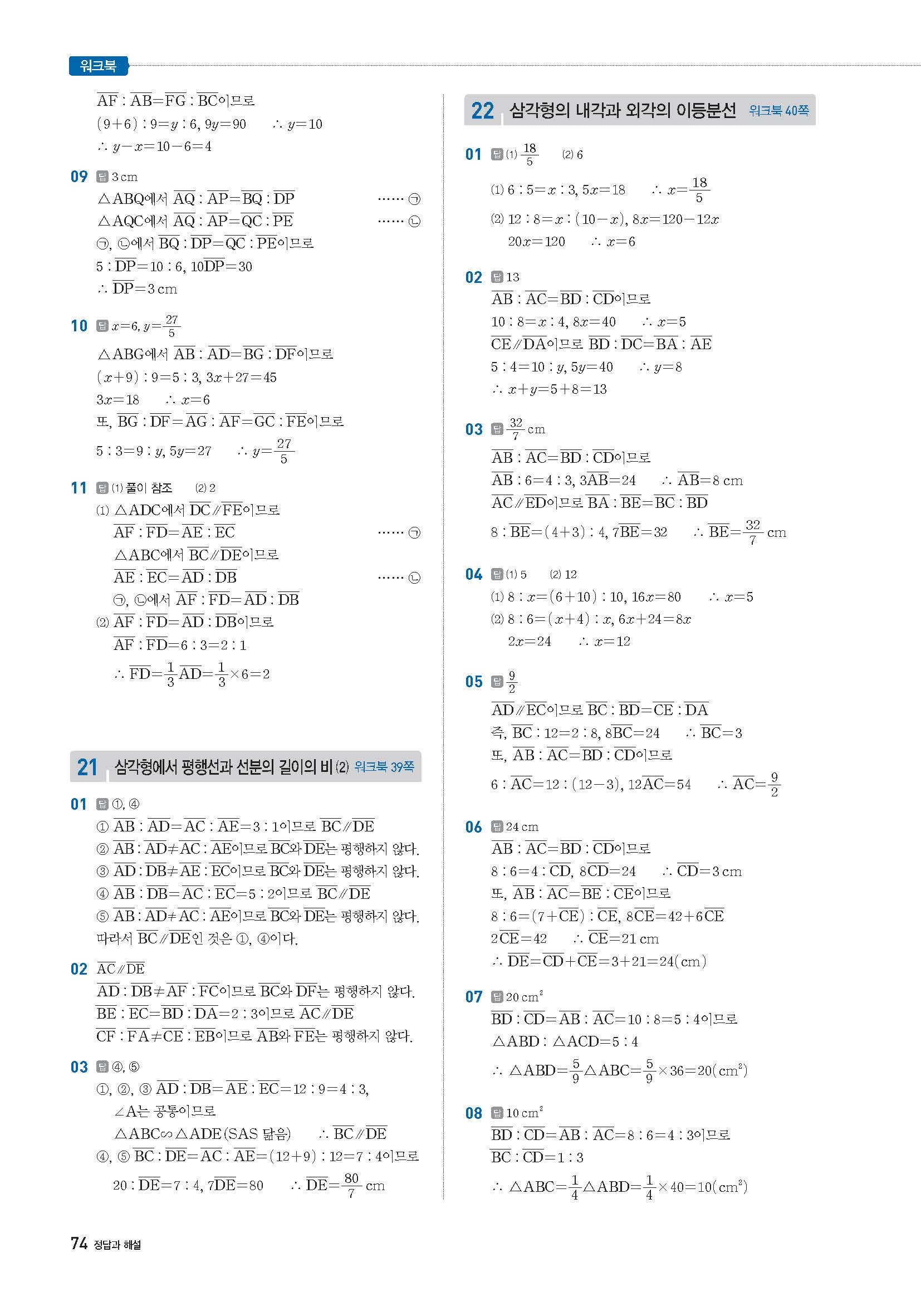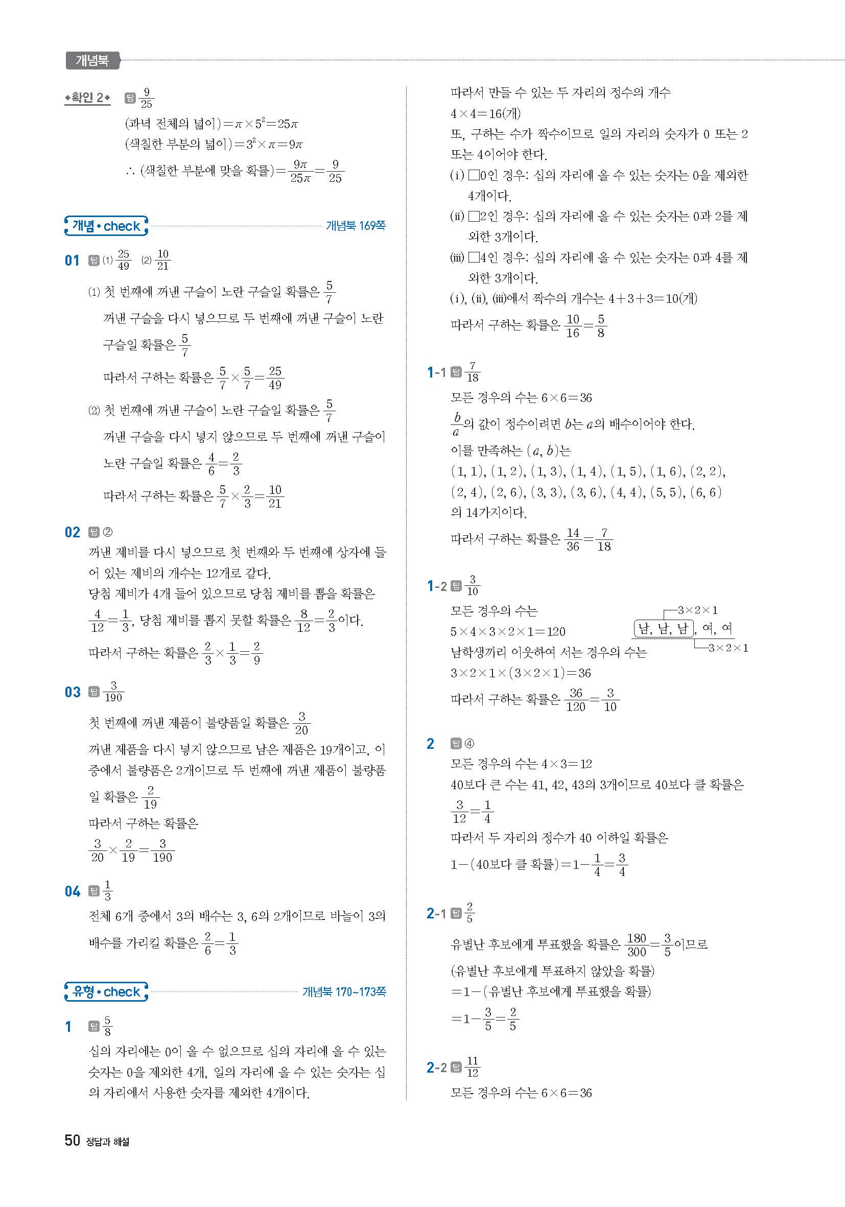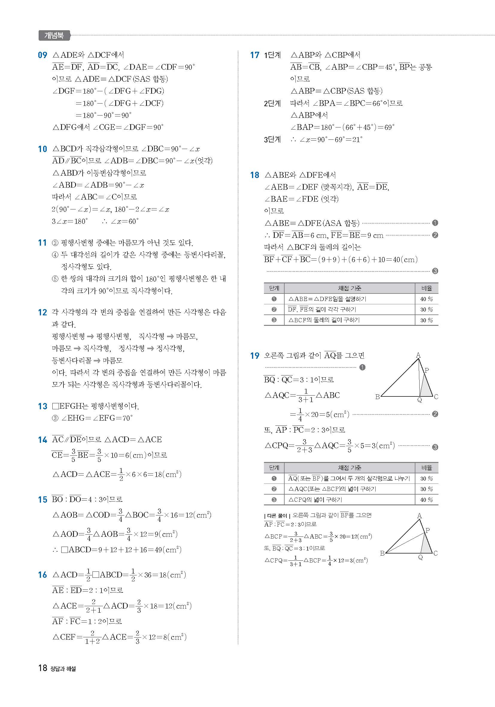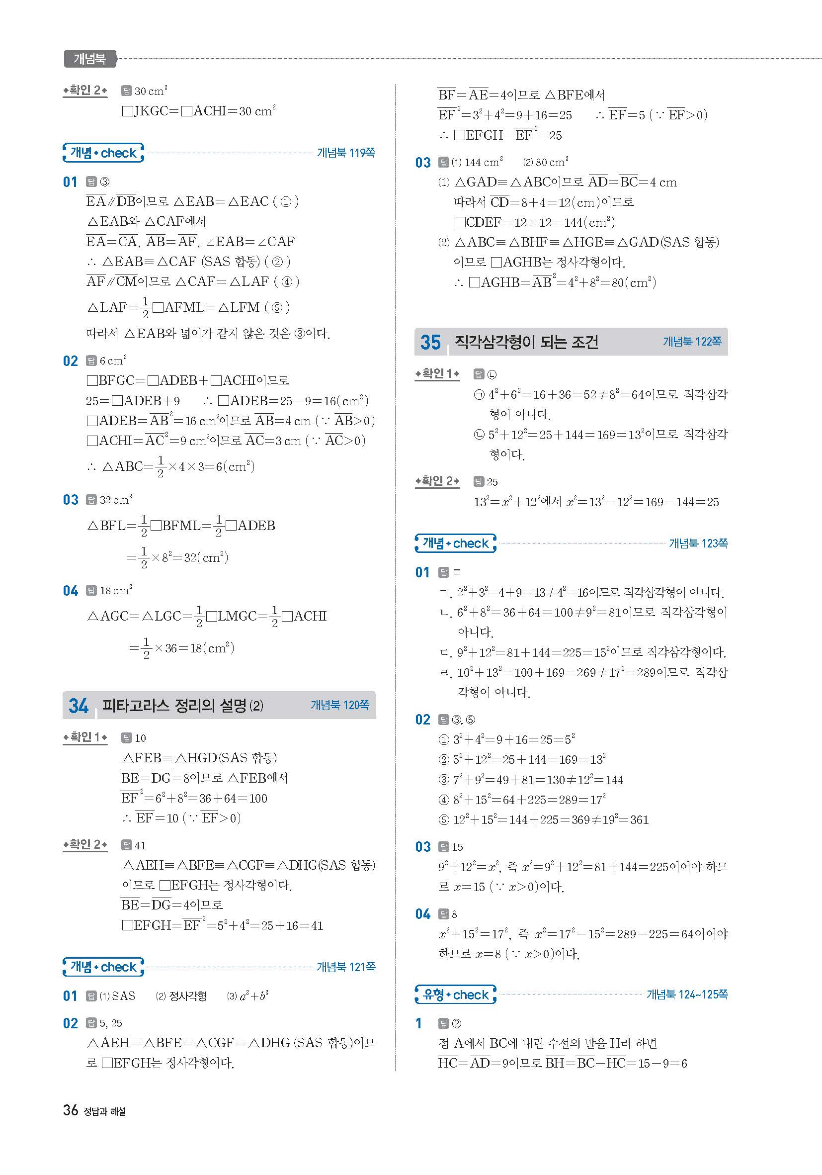 풍산자개념완성 중2하 중2-2 사진답지 빠른답지 모바일최적화