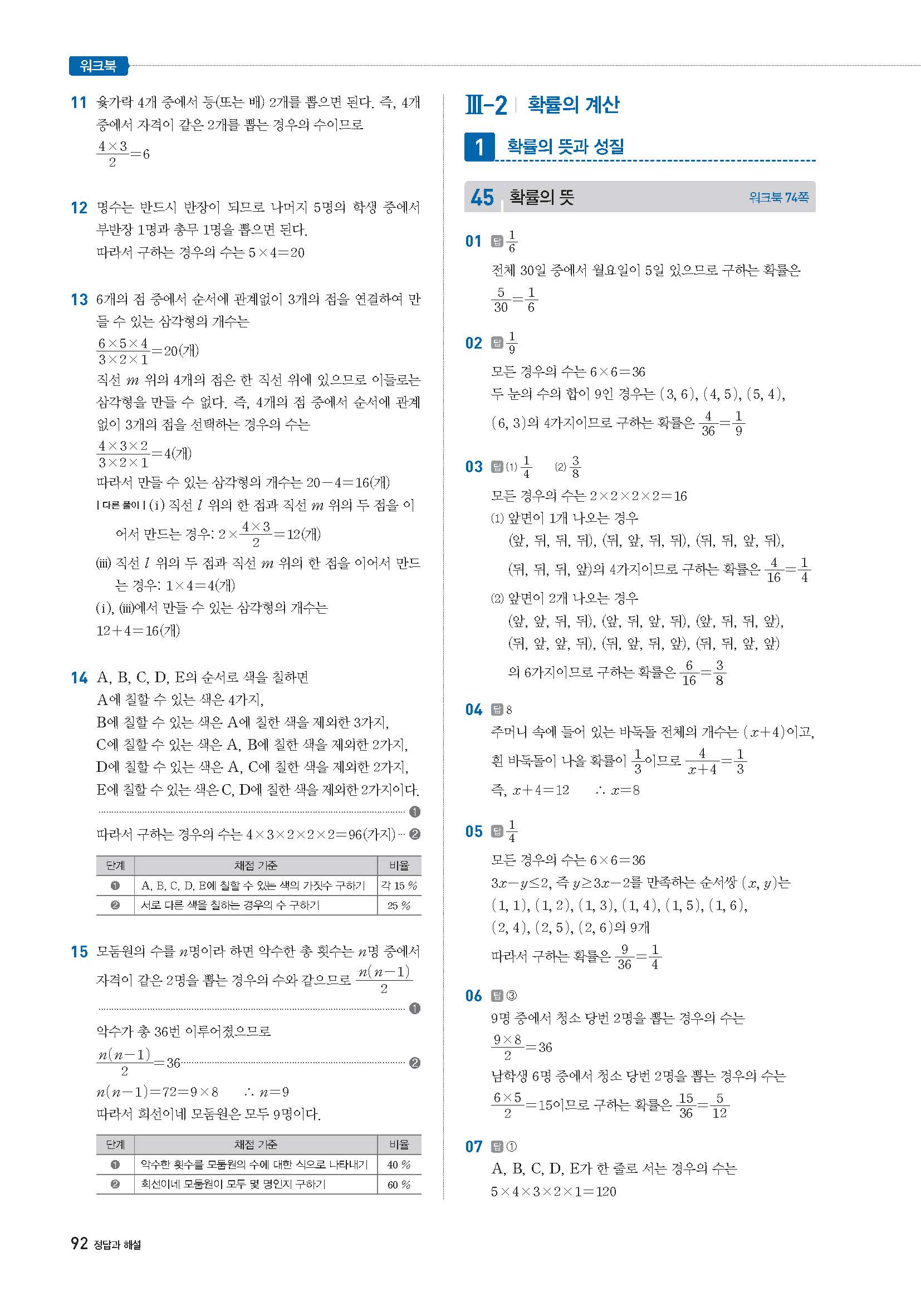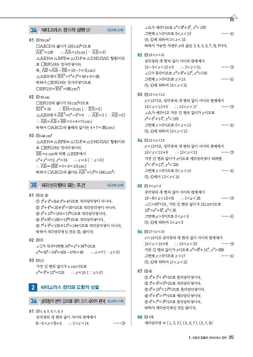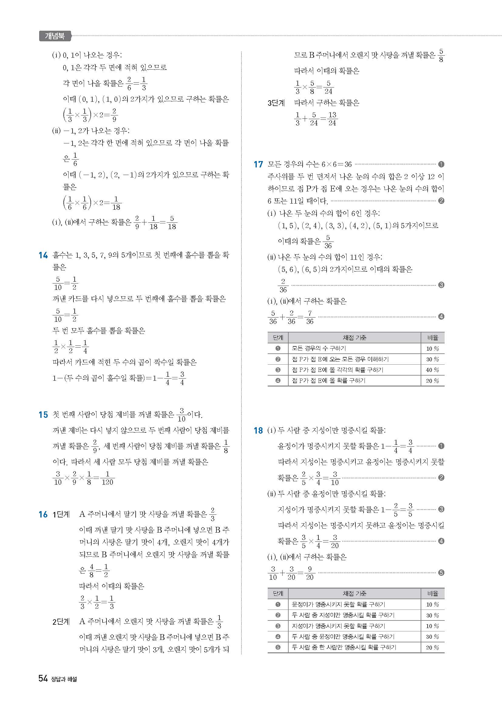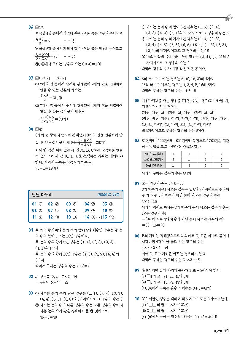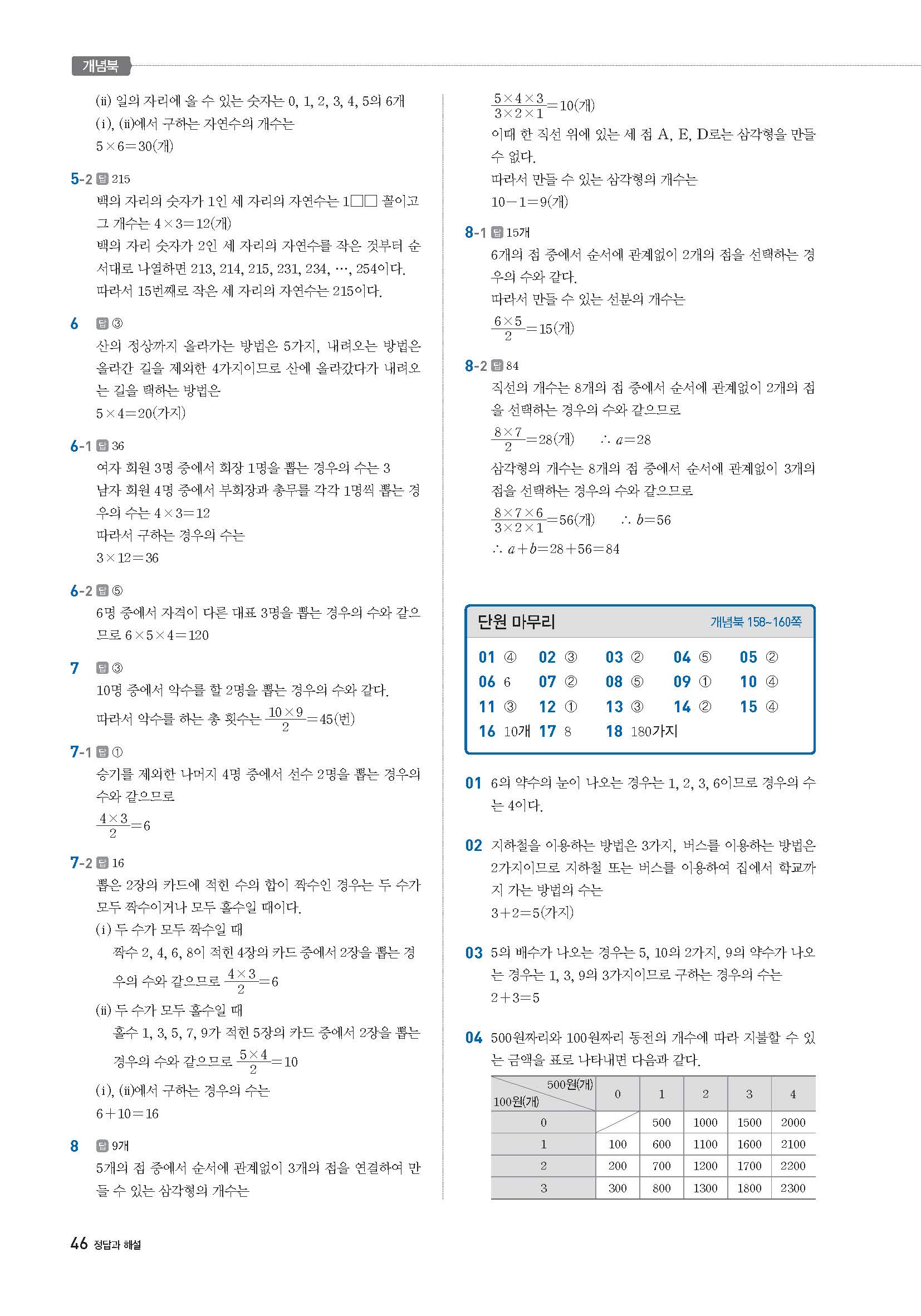 풍산자개념완성 중2하 중2-2 사진답지 빠른답지 모바일최적화