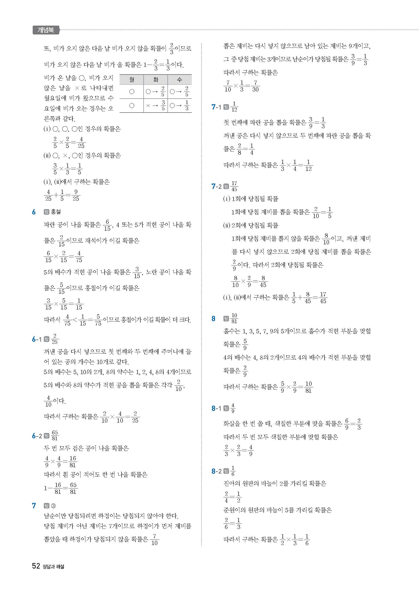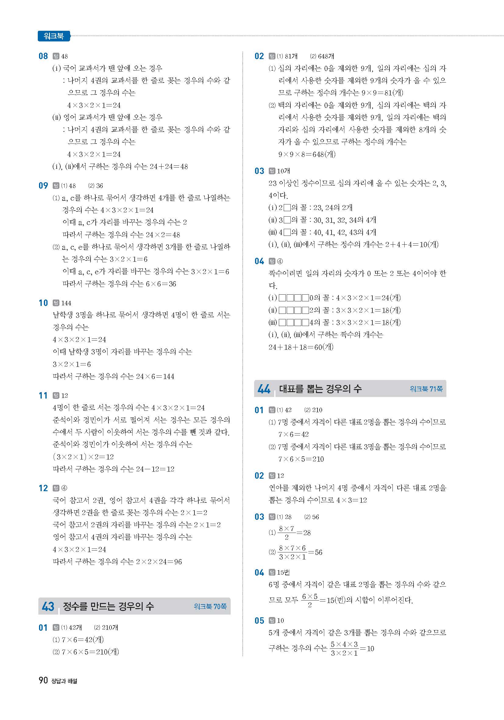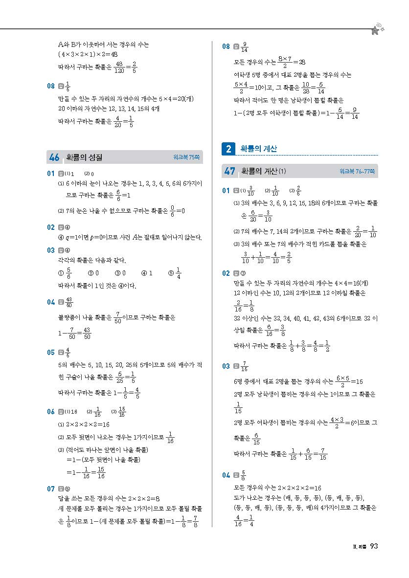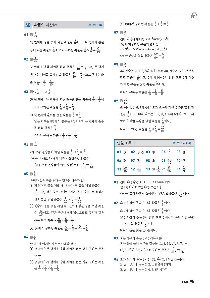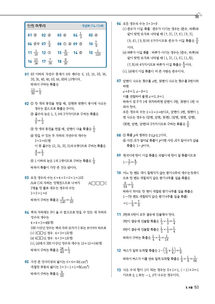 풍산자개념완성 중2하 중2-2 사진답지 빠른답지 모바일최적화