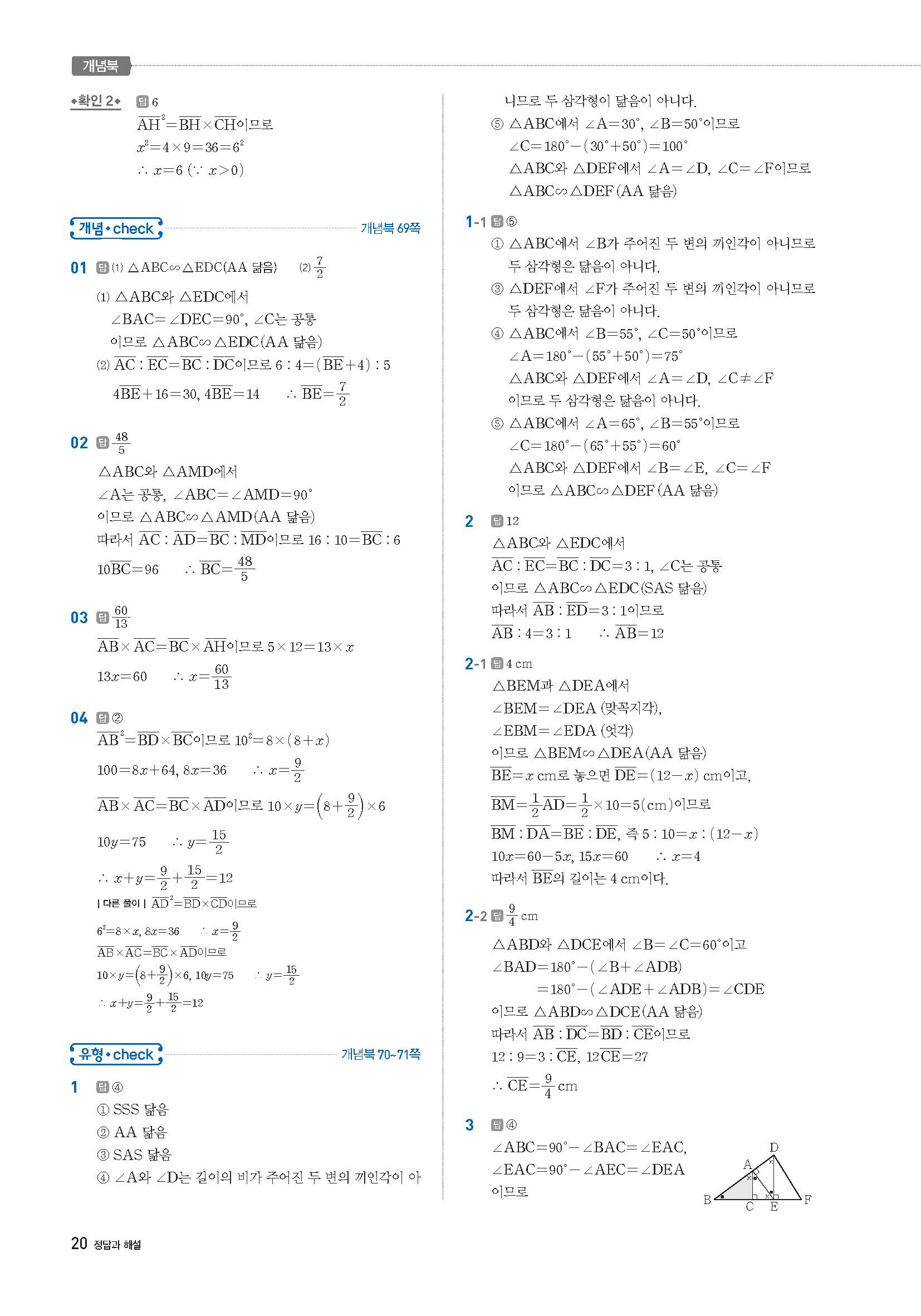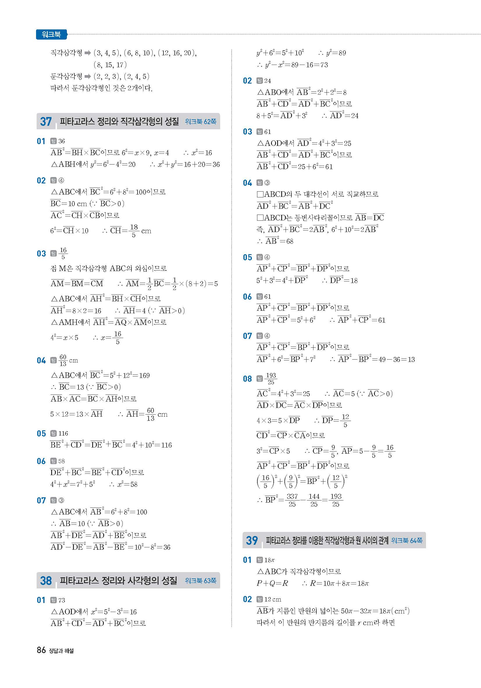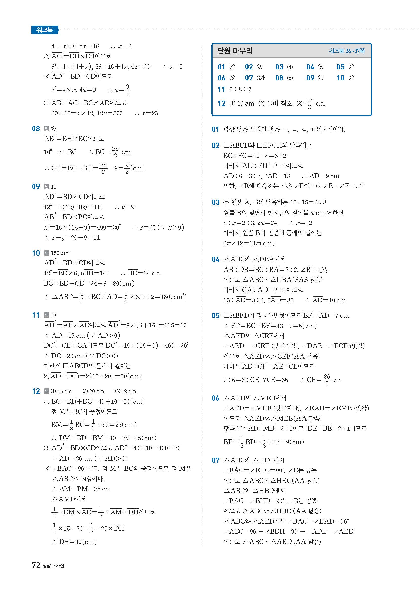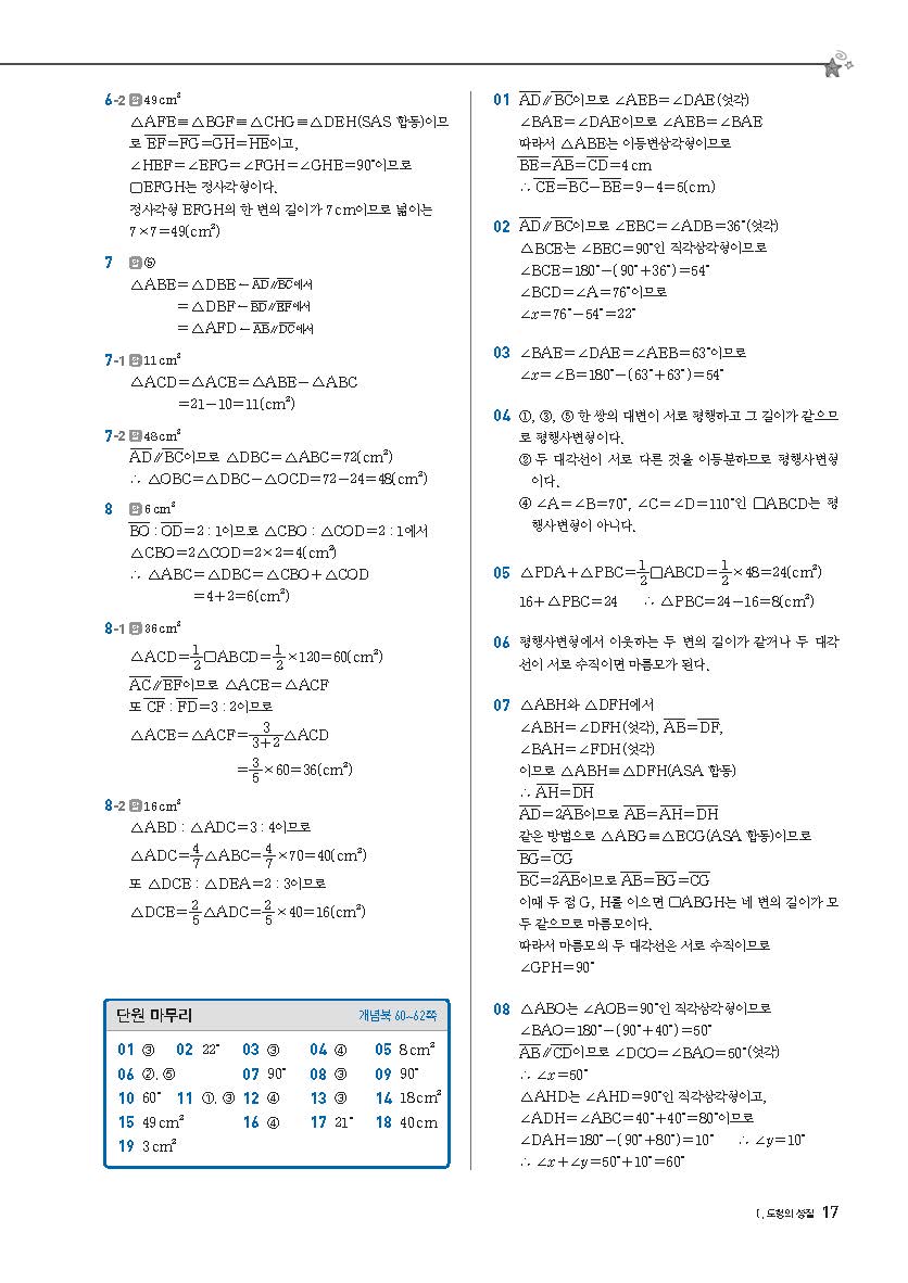 | 교학사 고호경 중2 수학교과서 답지 | |
