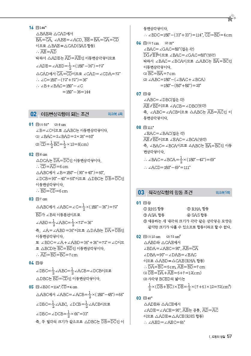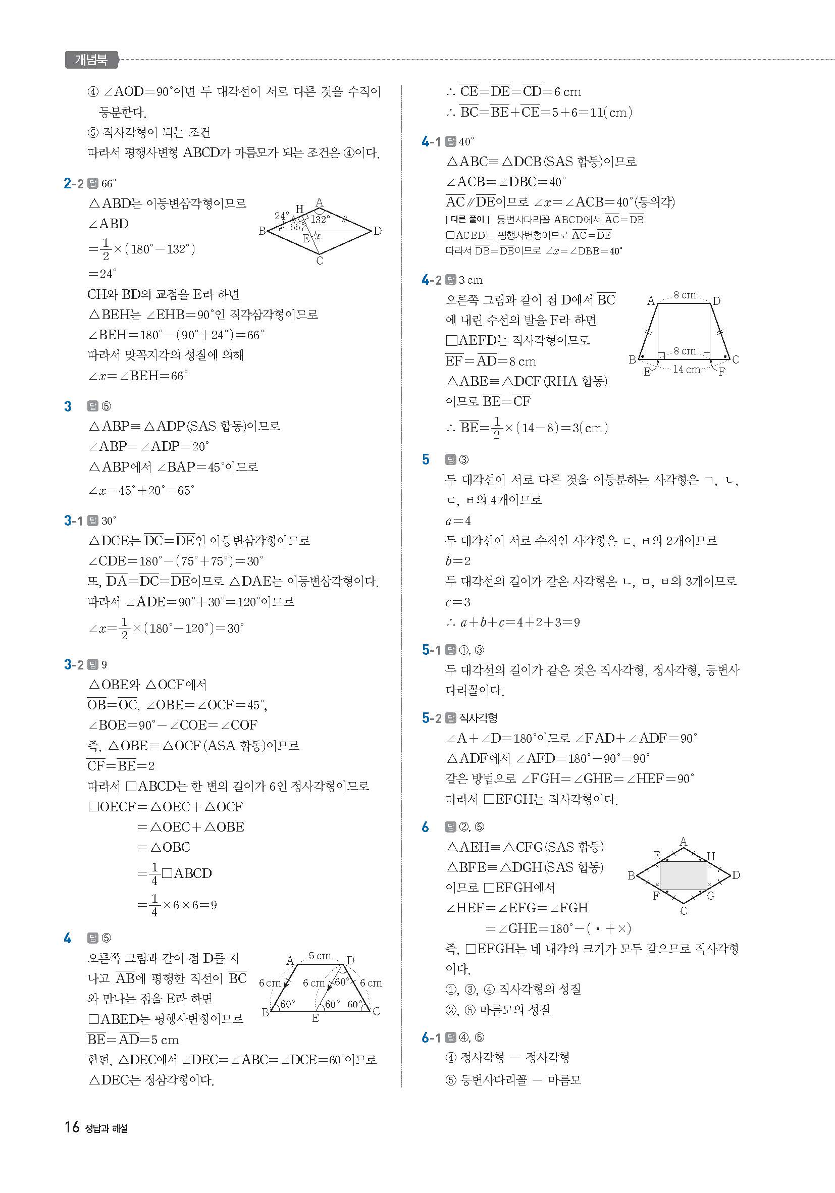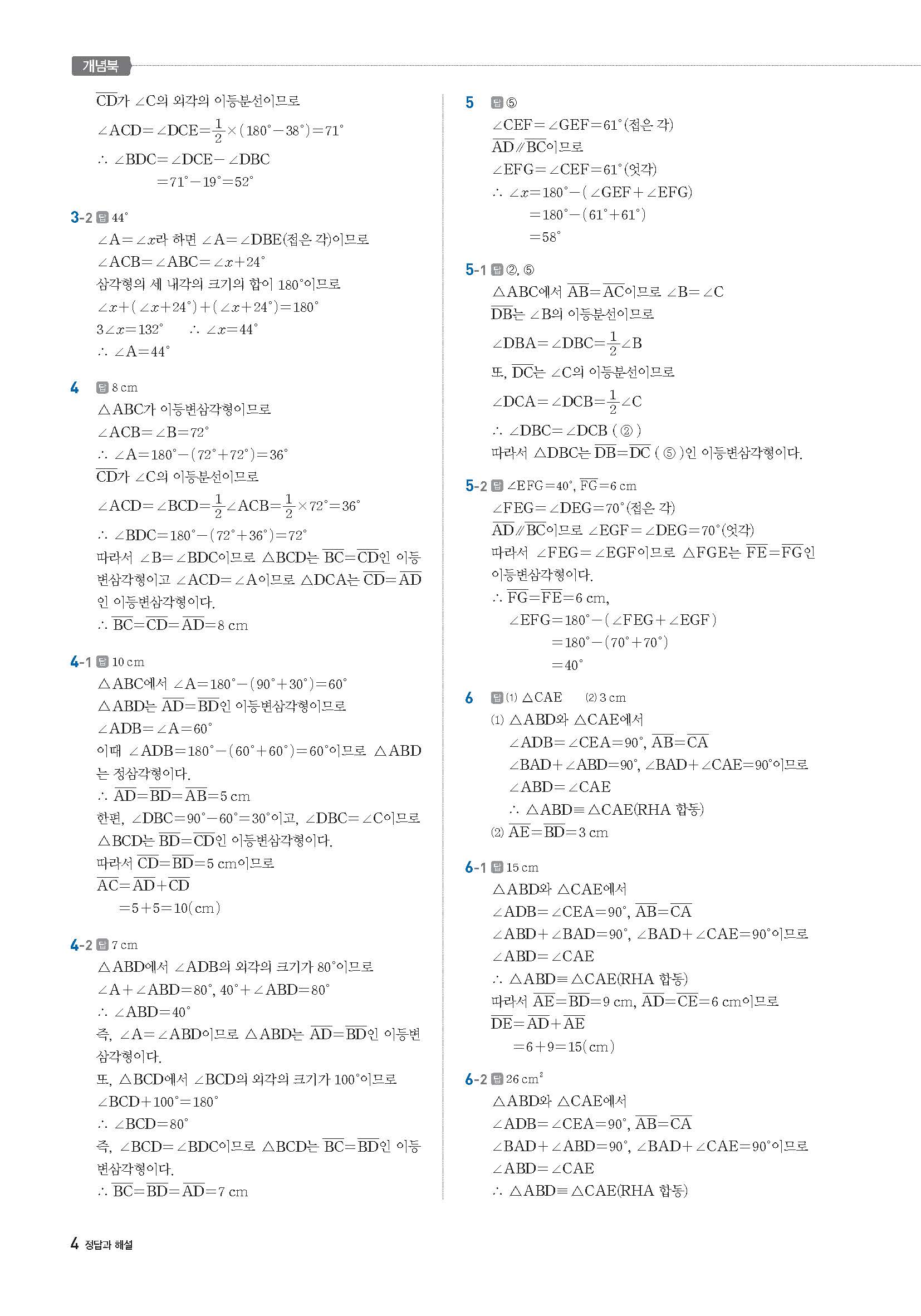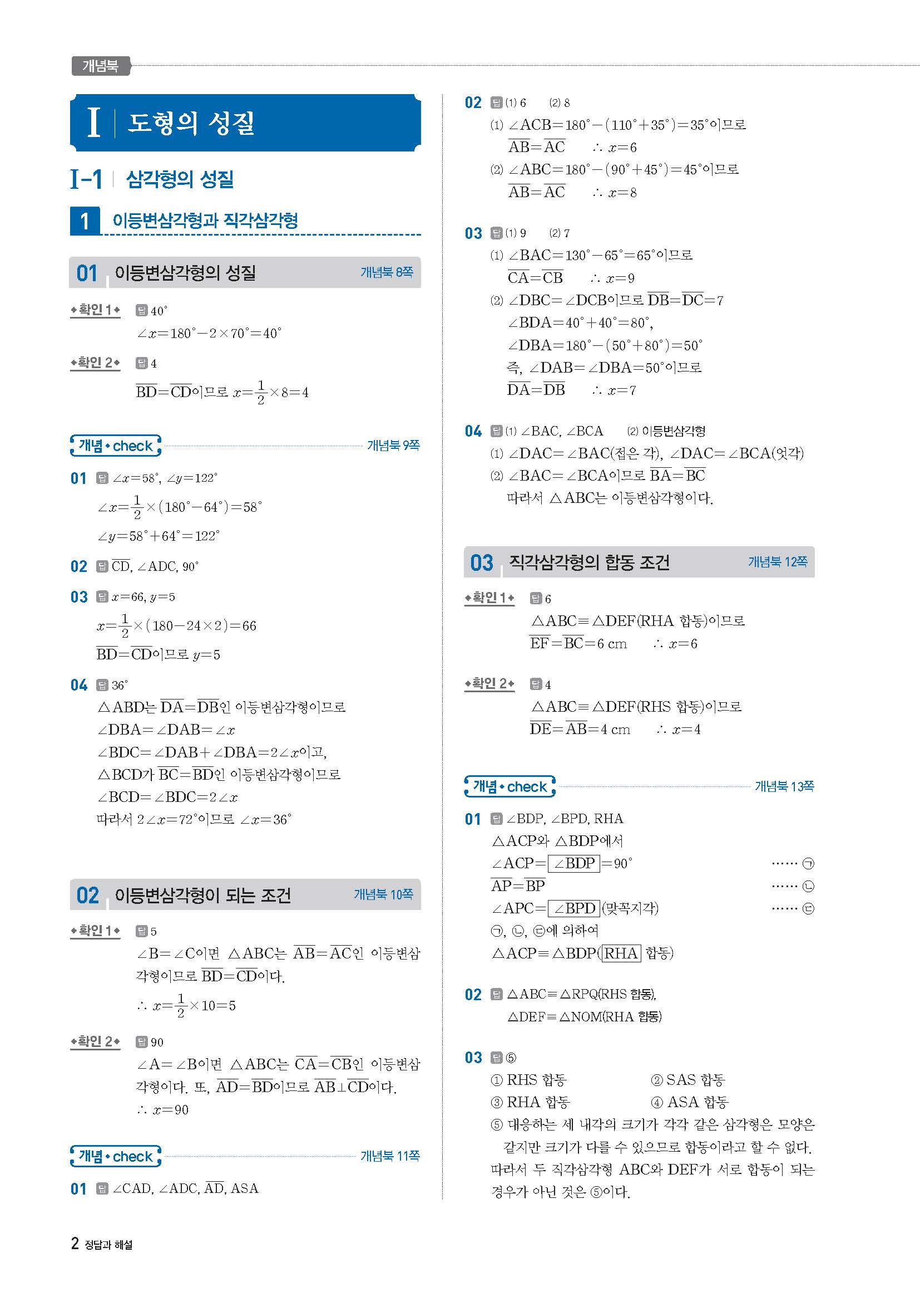 | 천재교육 이준열 중2 수학교과서 답지 | |