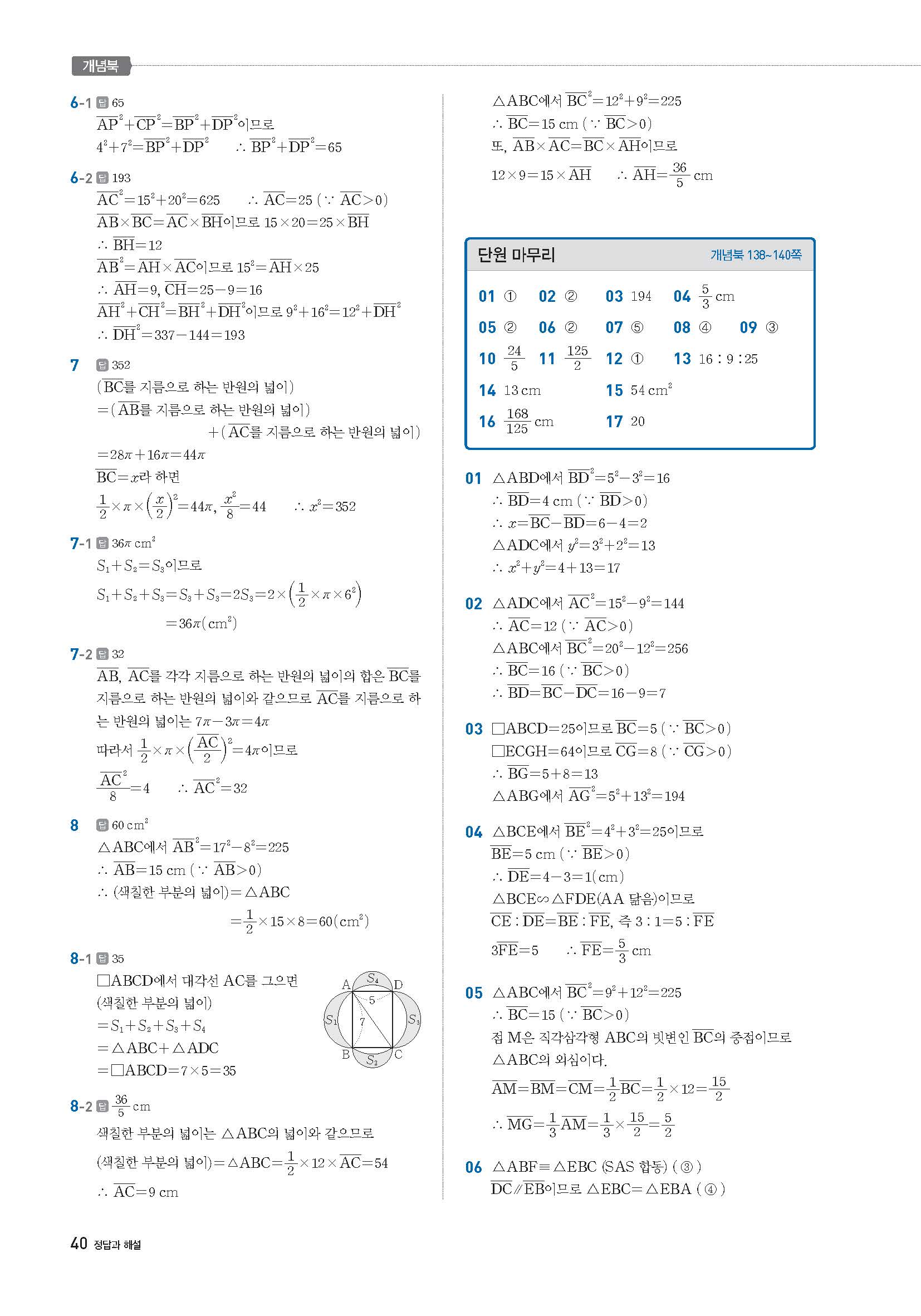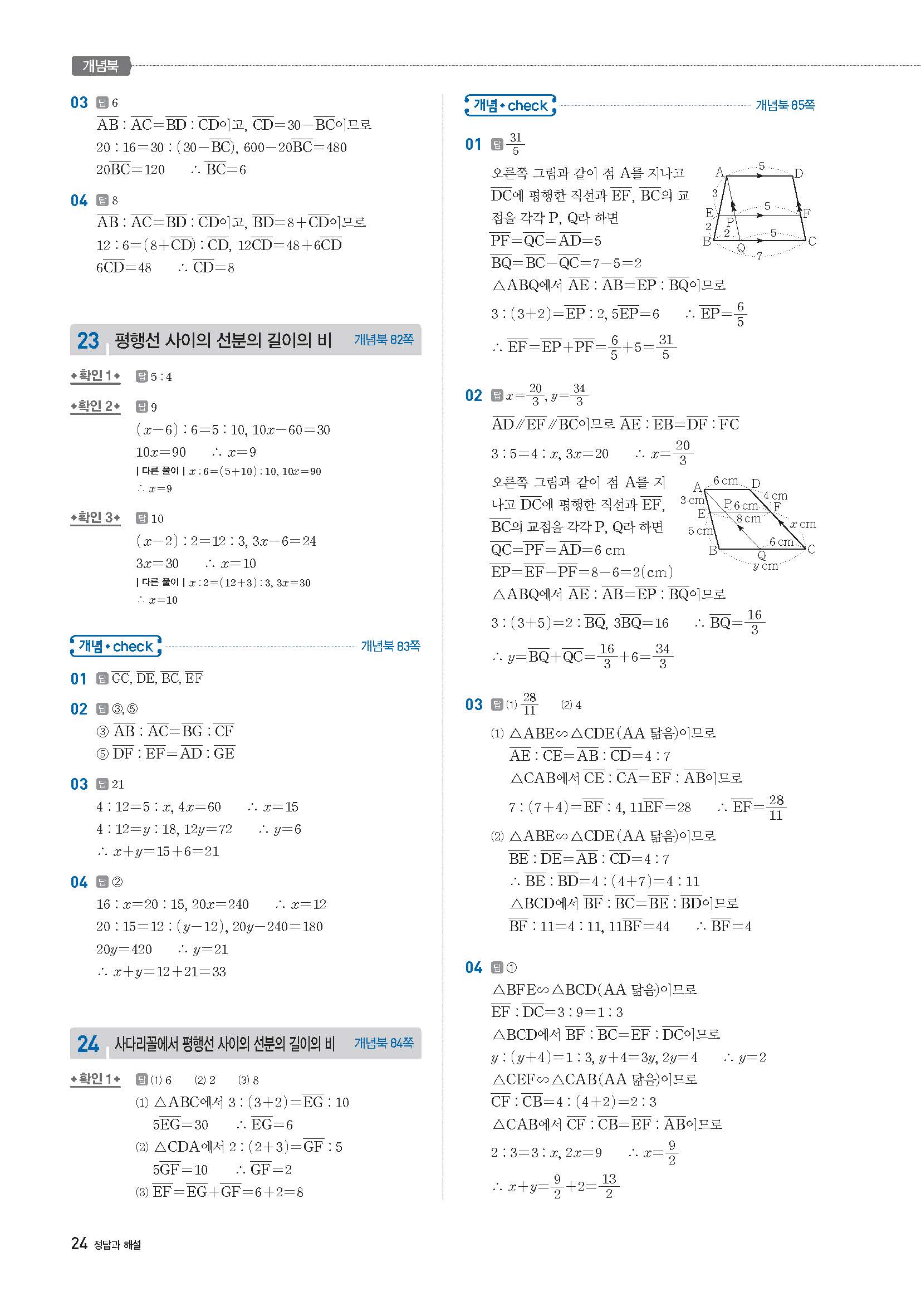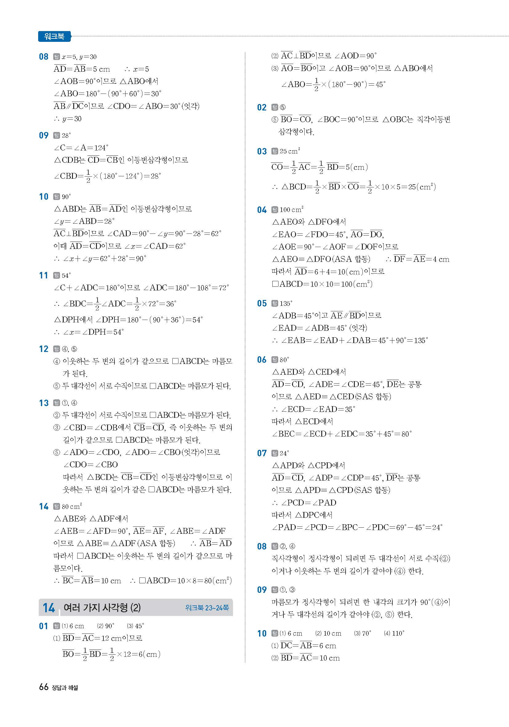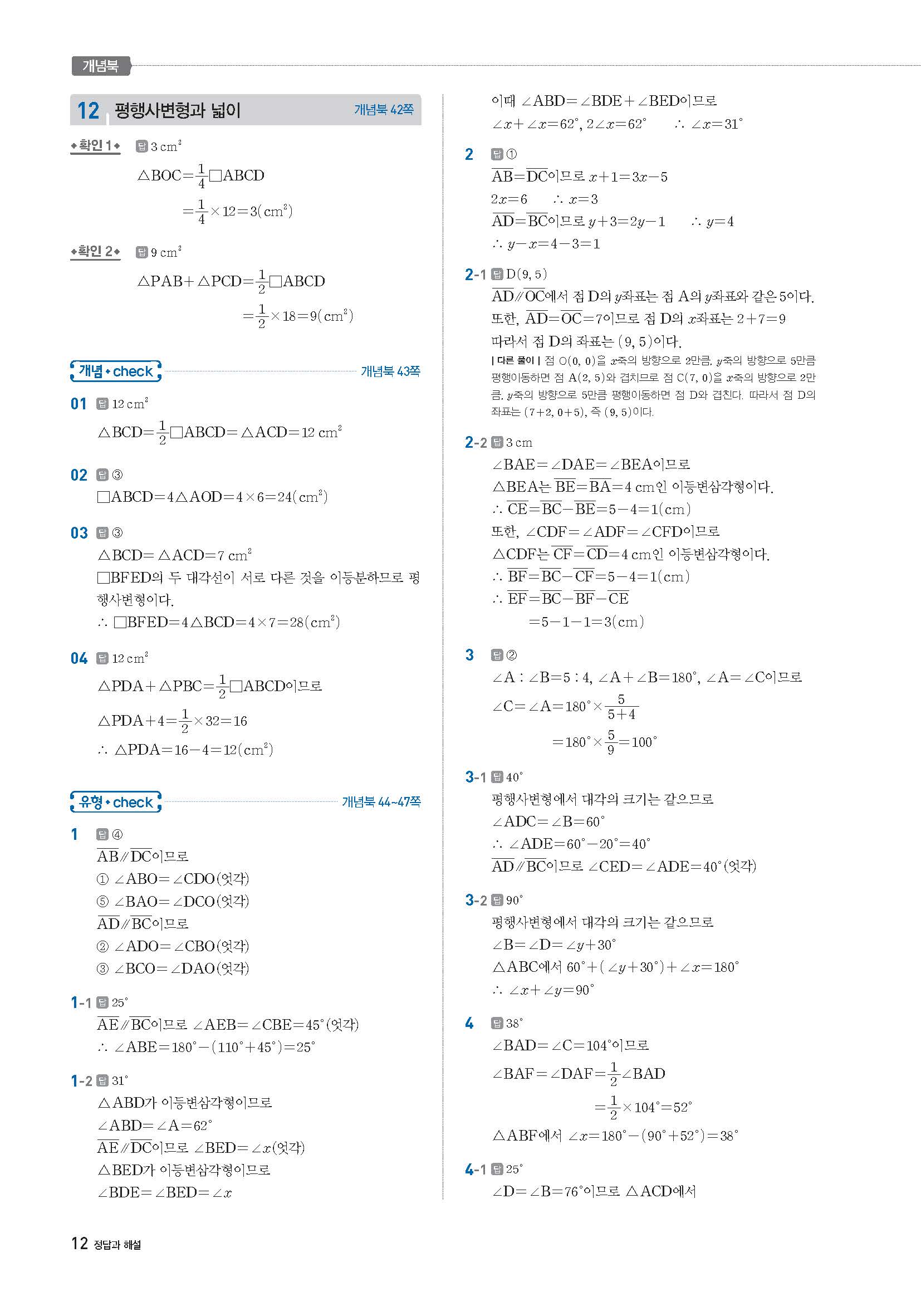 | 천재교육 이준열 중2 수학교과서 답지 | |