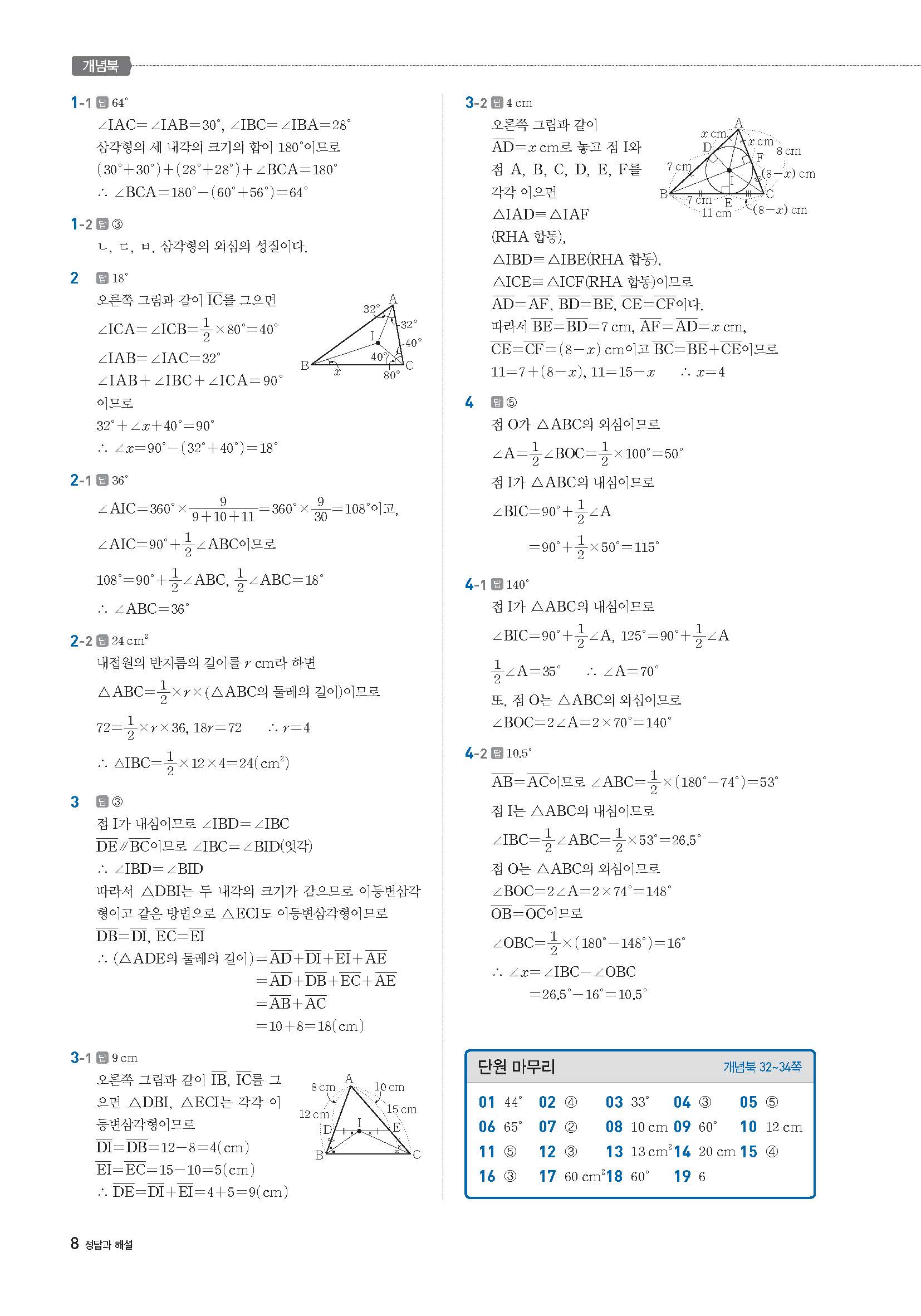 | 개념쎈 중2-1 답지 | https://mathuncle.tistory.com/191 |
