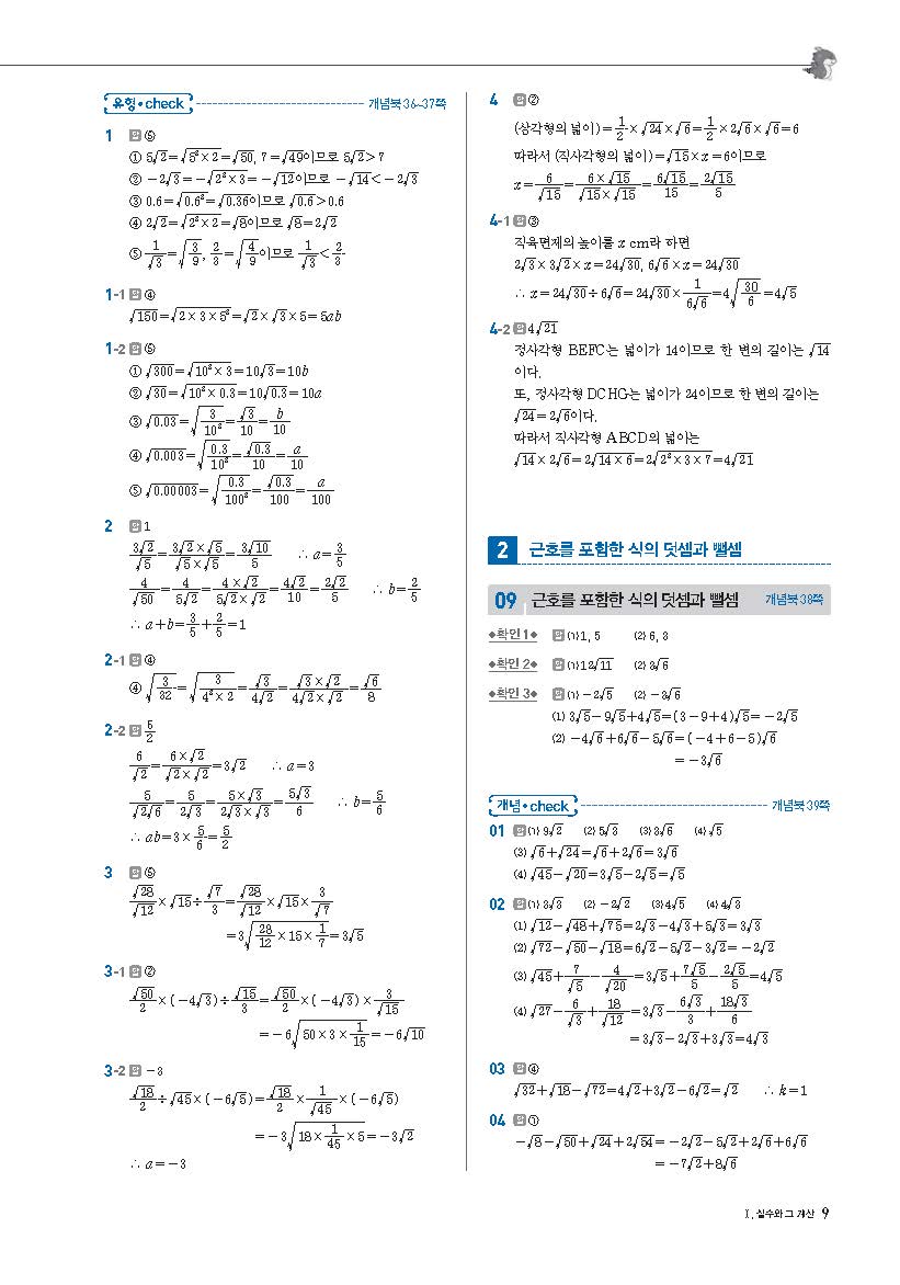 | 개념쎈 중3-1 답지 | https://mathuncle.tistory.com/193 |