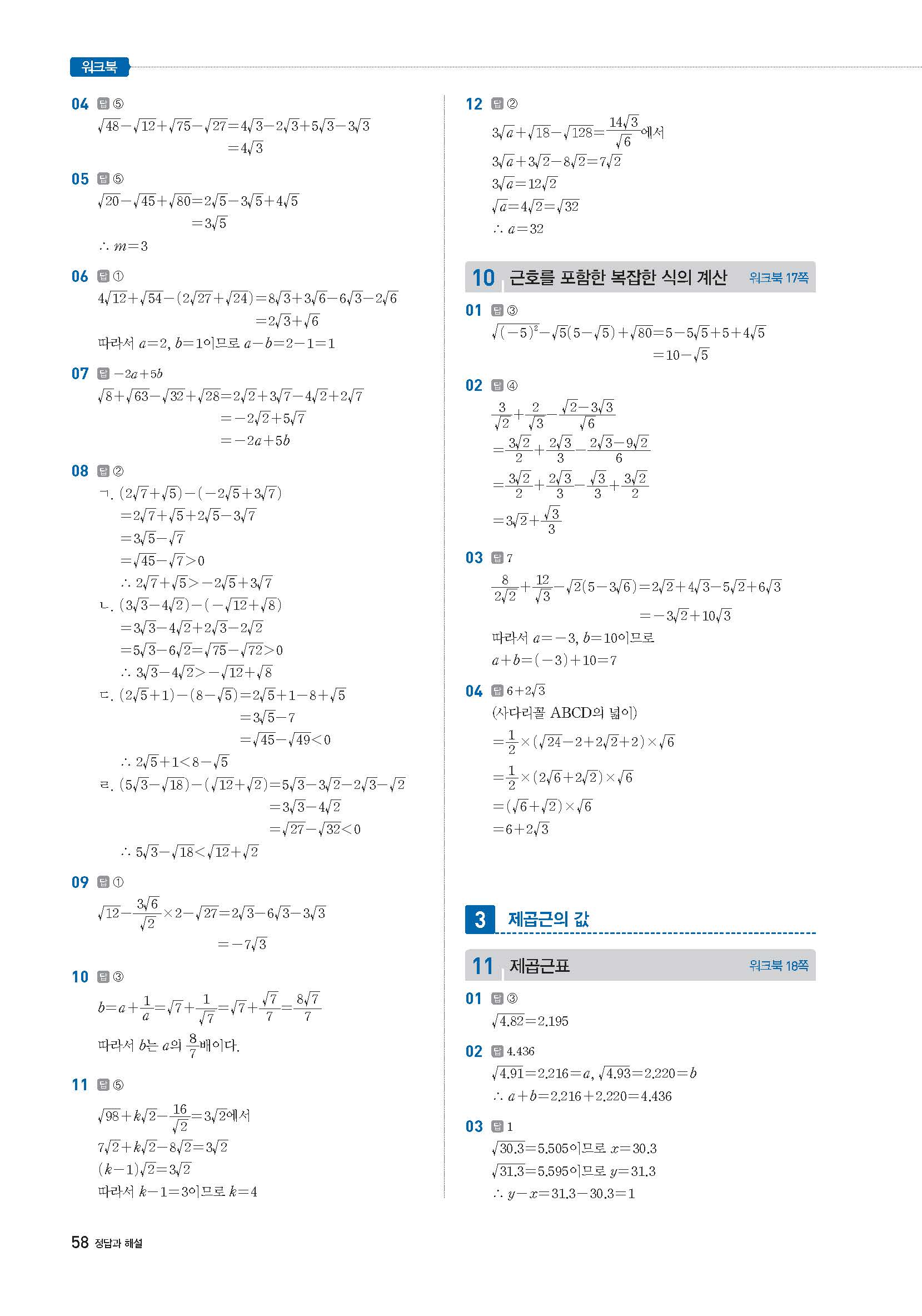 풍산자개념완성 중3상 중3-1 사진답지 빠른답지 모바일최적화