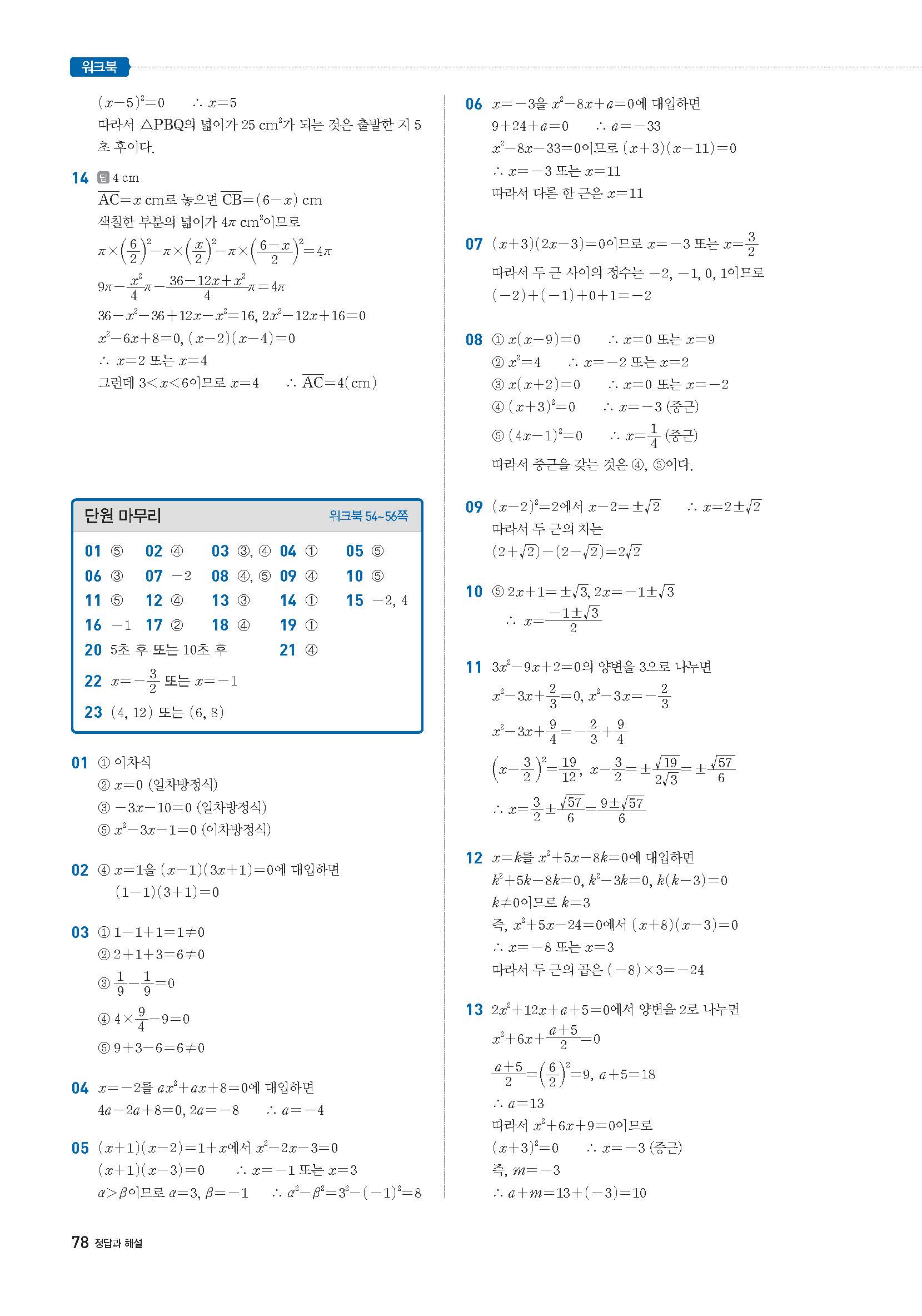 | 교학사 고호경 중3 수학교과서 답지 | |