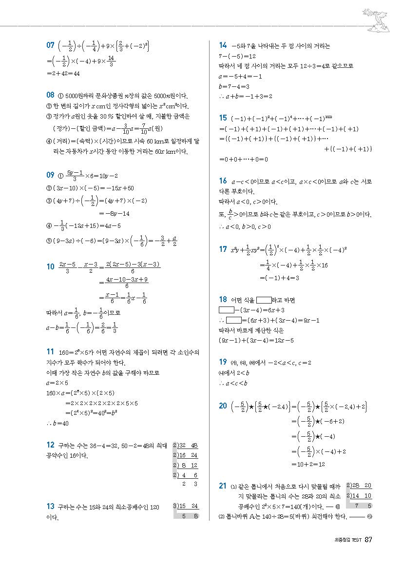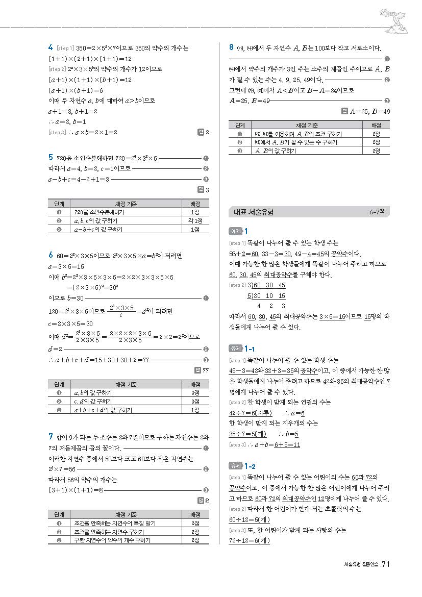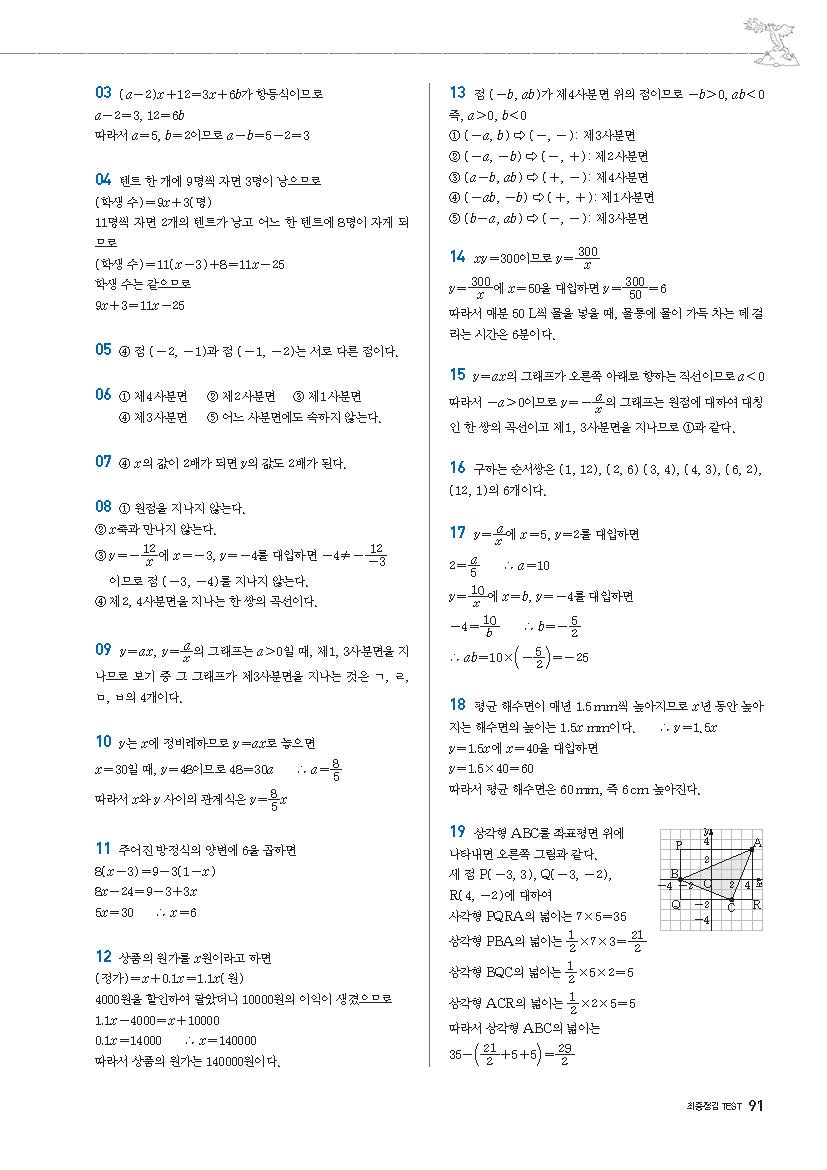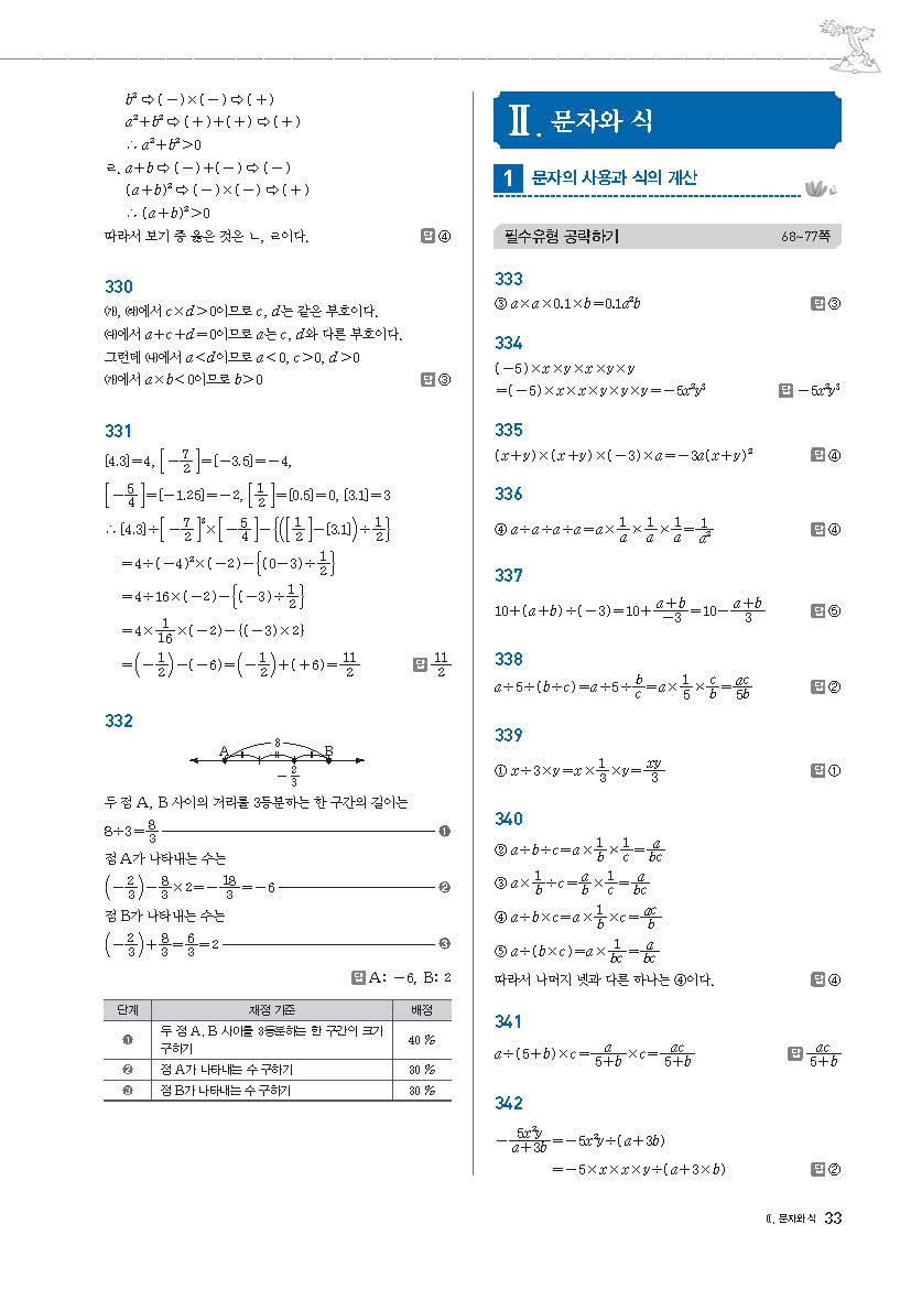 풍산자필수유형 중1상 중1-1 사진답지 빠른답지 모바일최적화