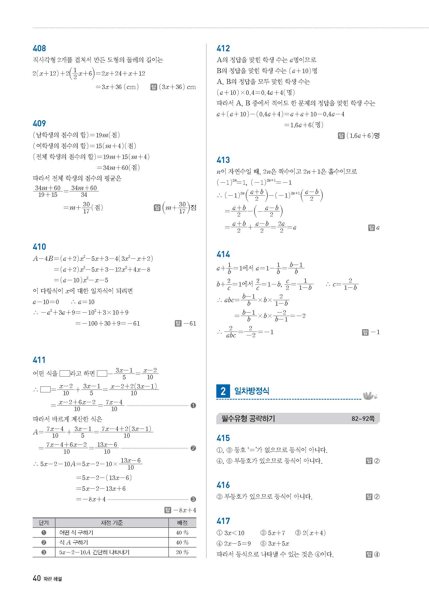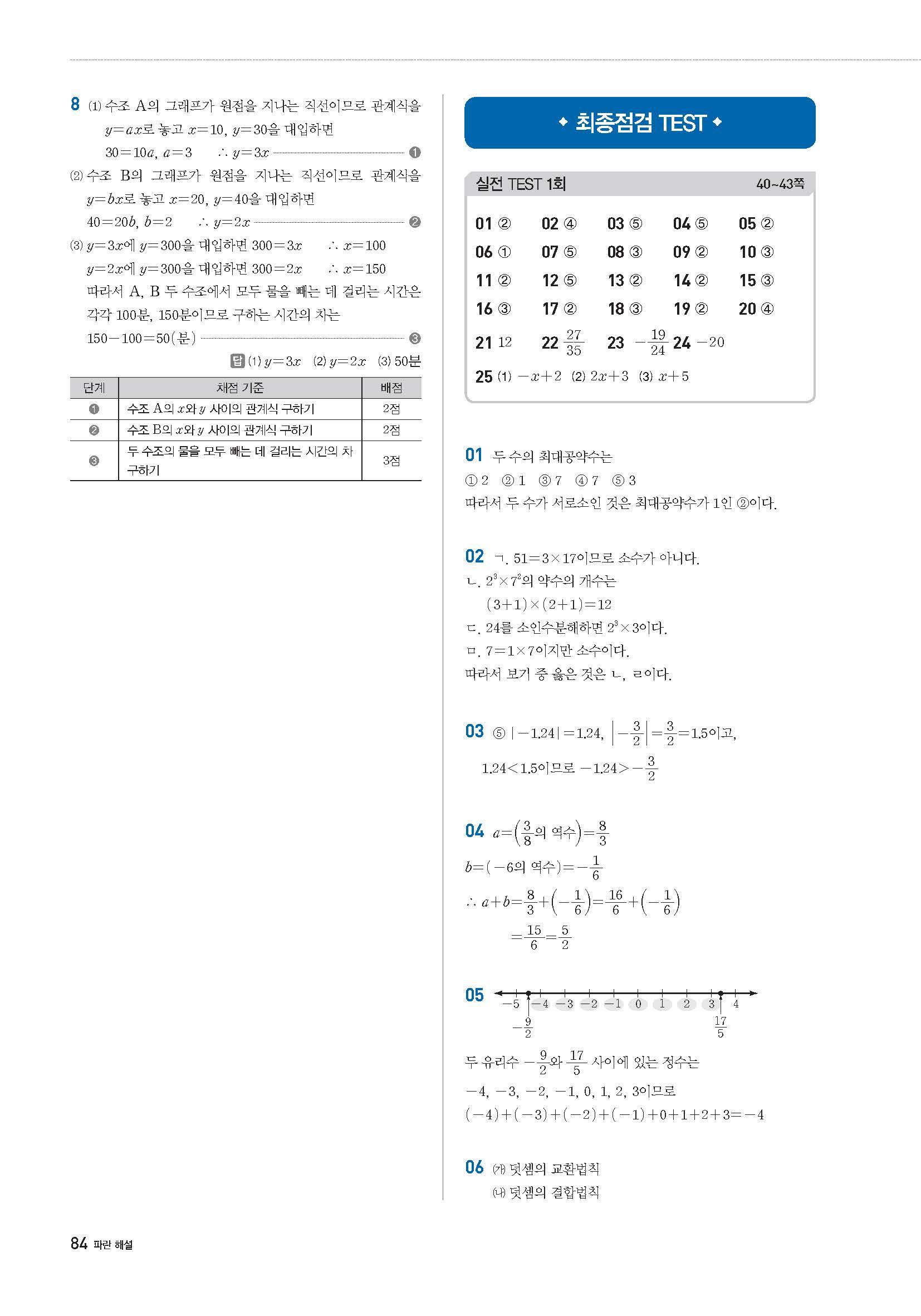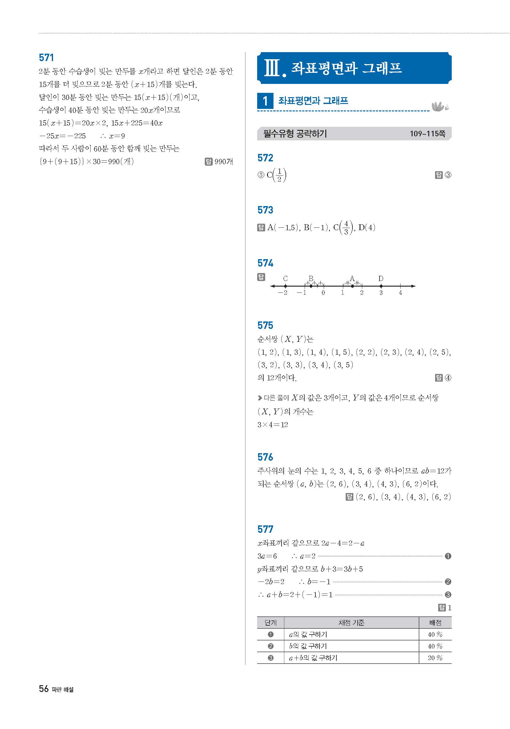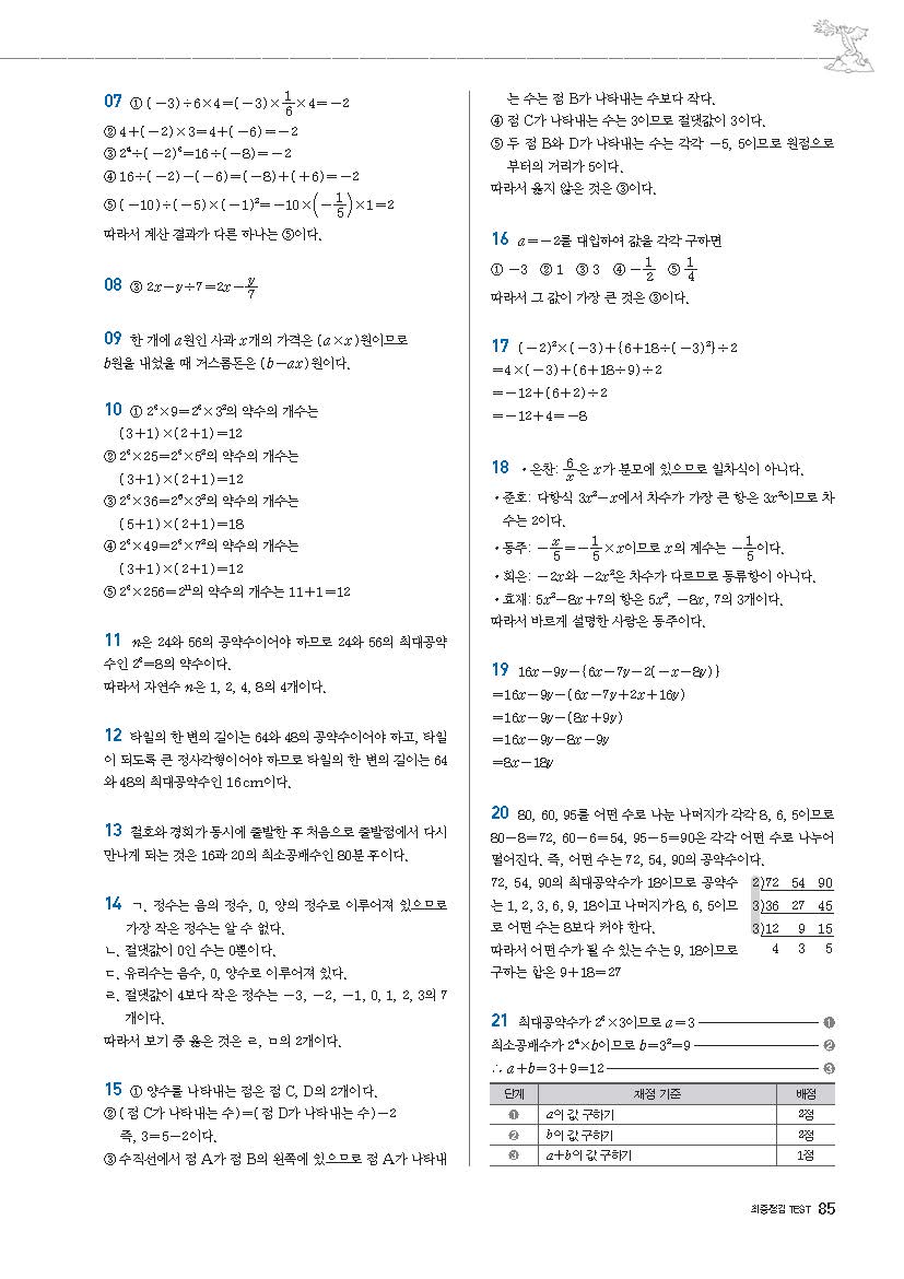 풍산자필수유형 중1상 중1-1 사진답지 빠른답지 모바일최적화