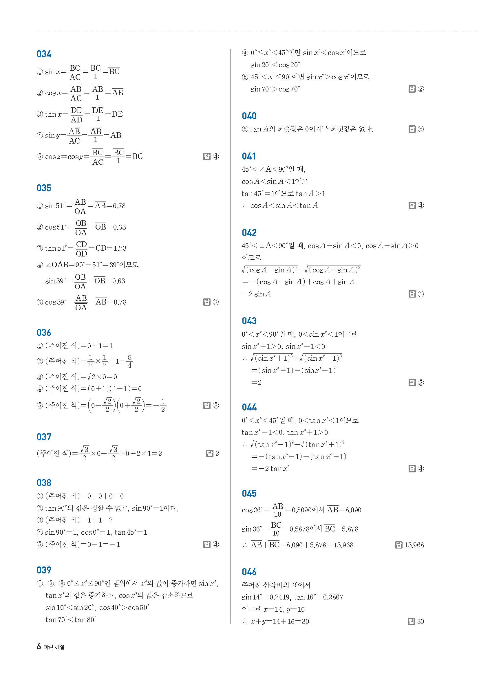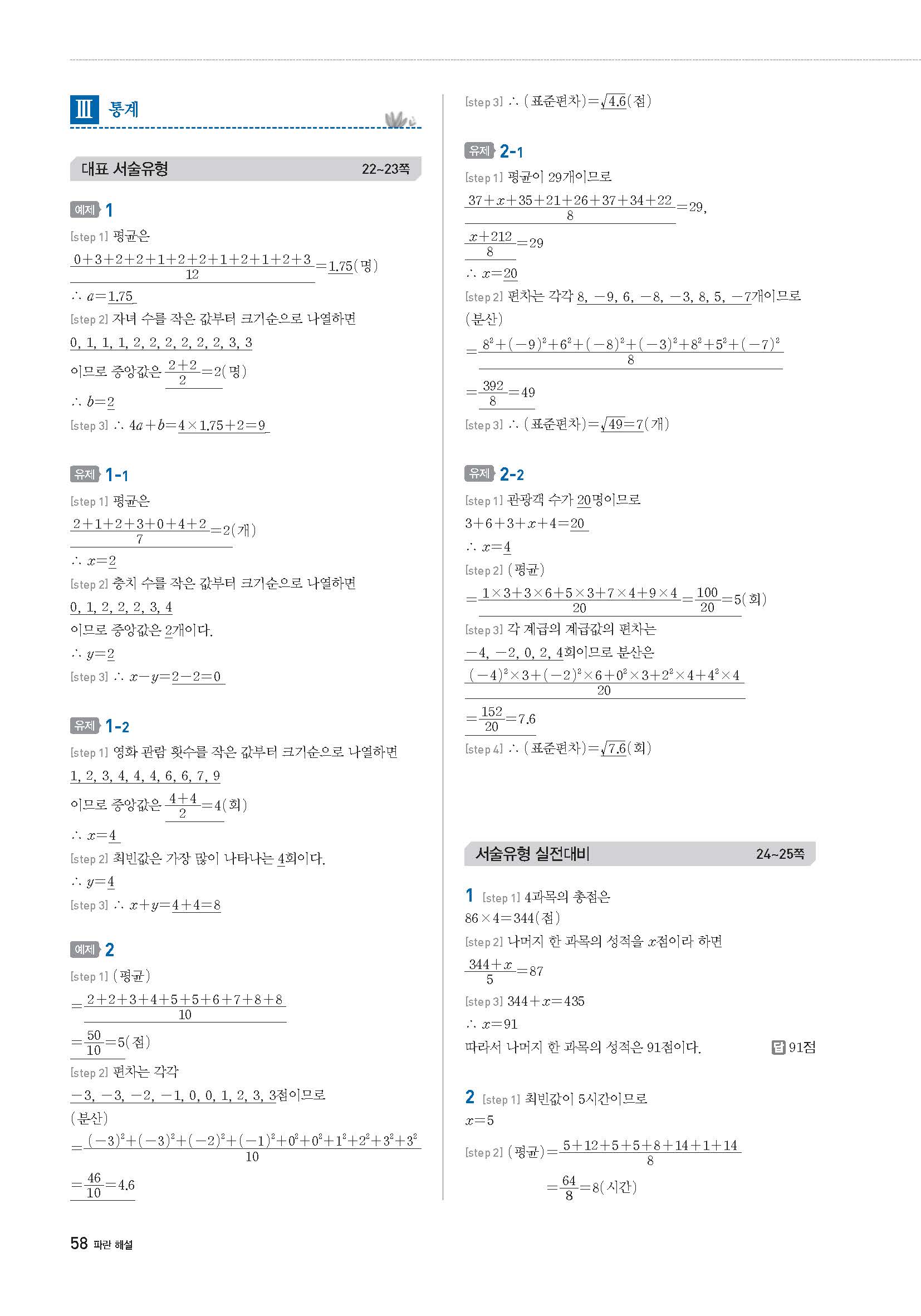 수학문제집 답지