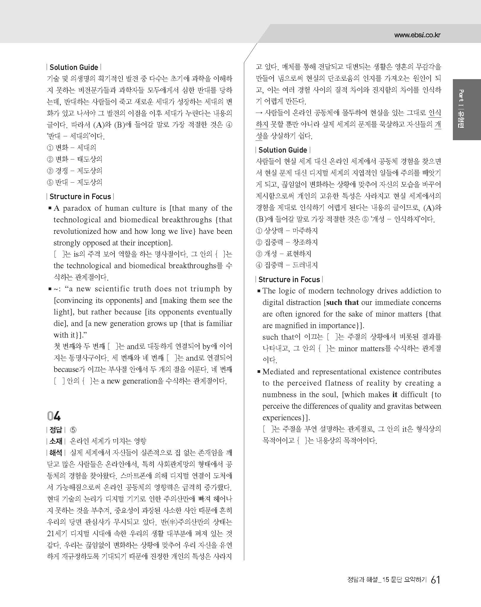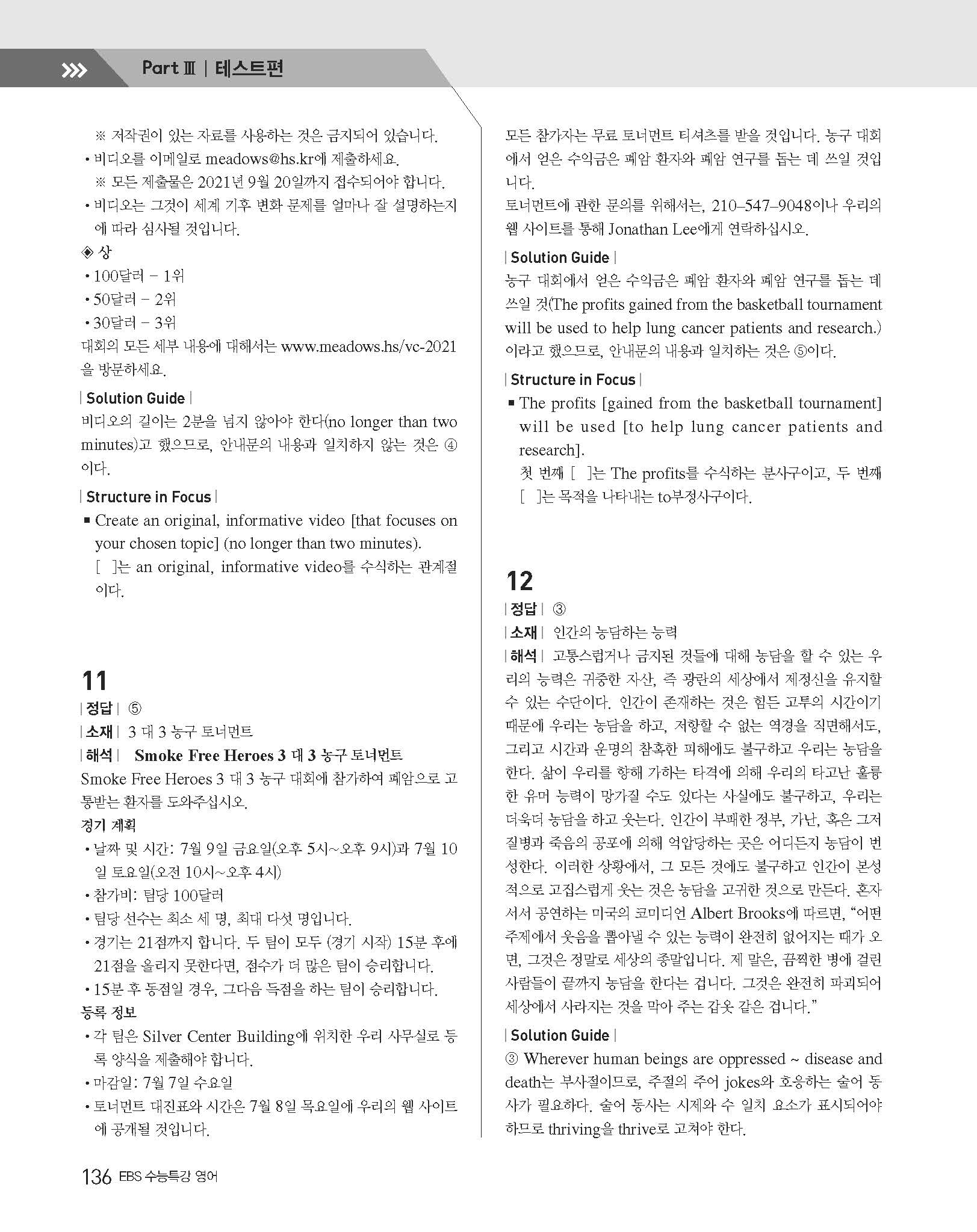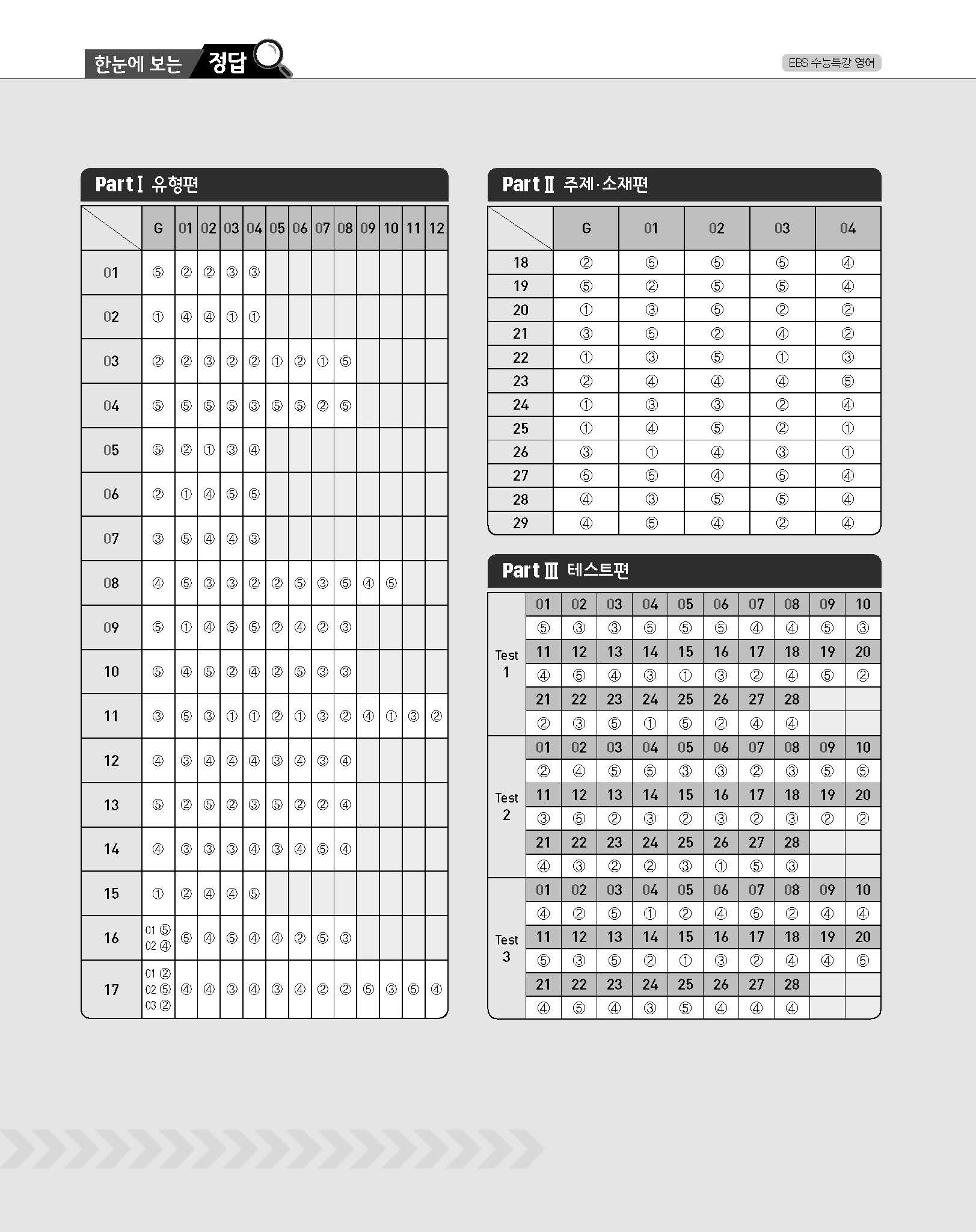 EBS 2022 수능특강 영어 사진답지 빠른답지 모바일최적화