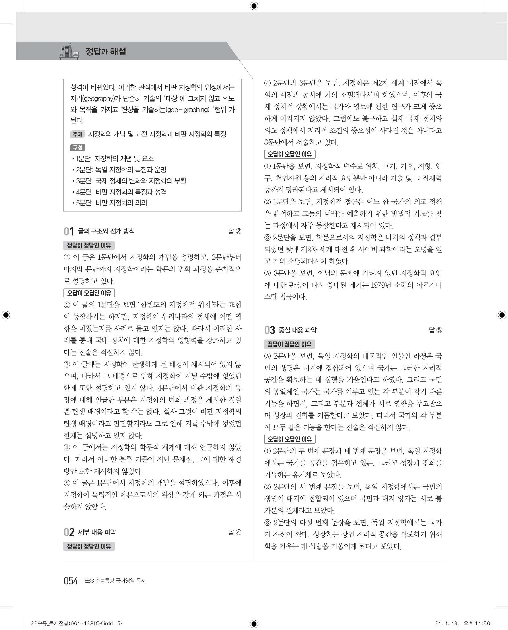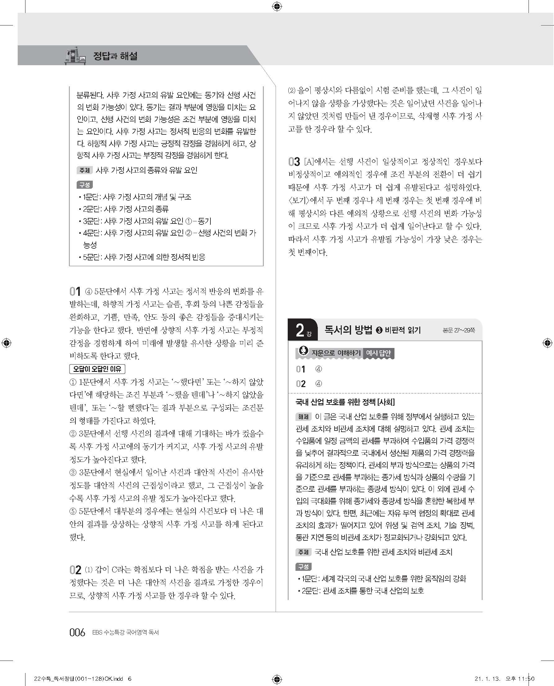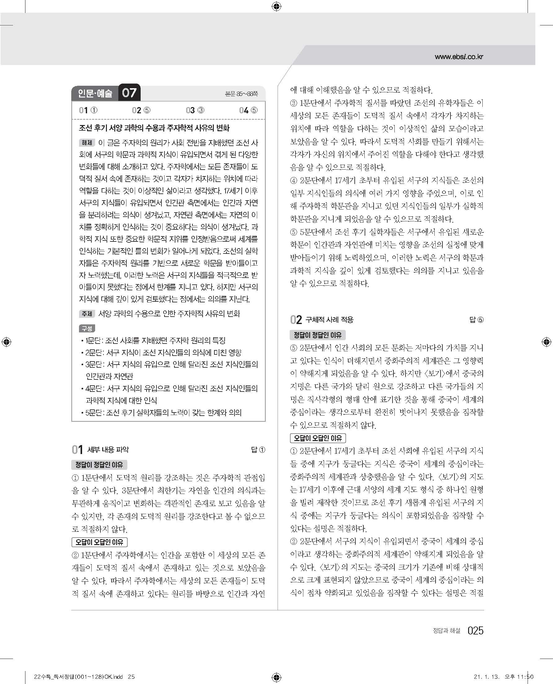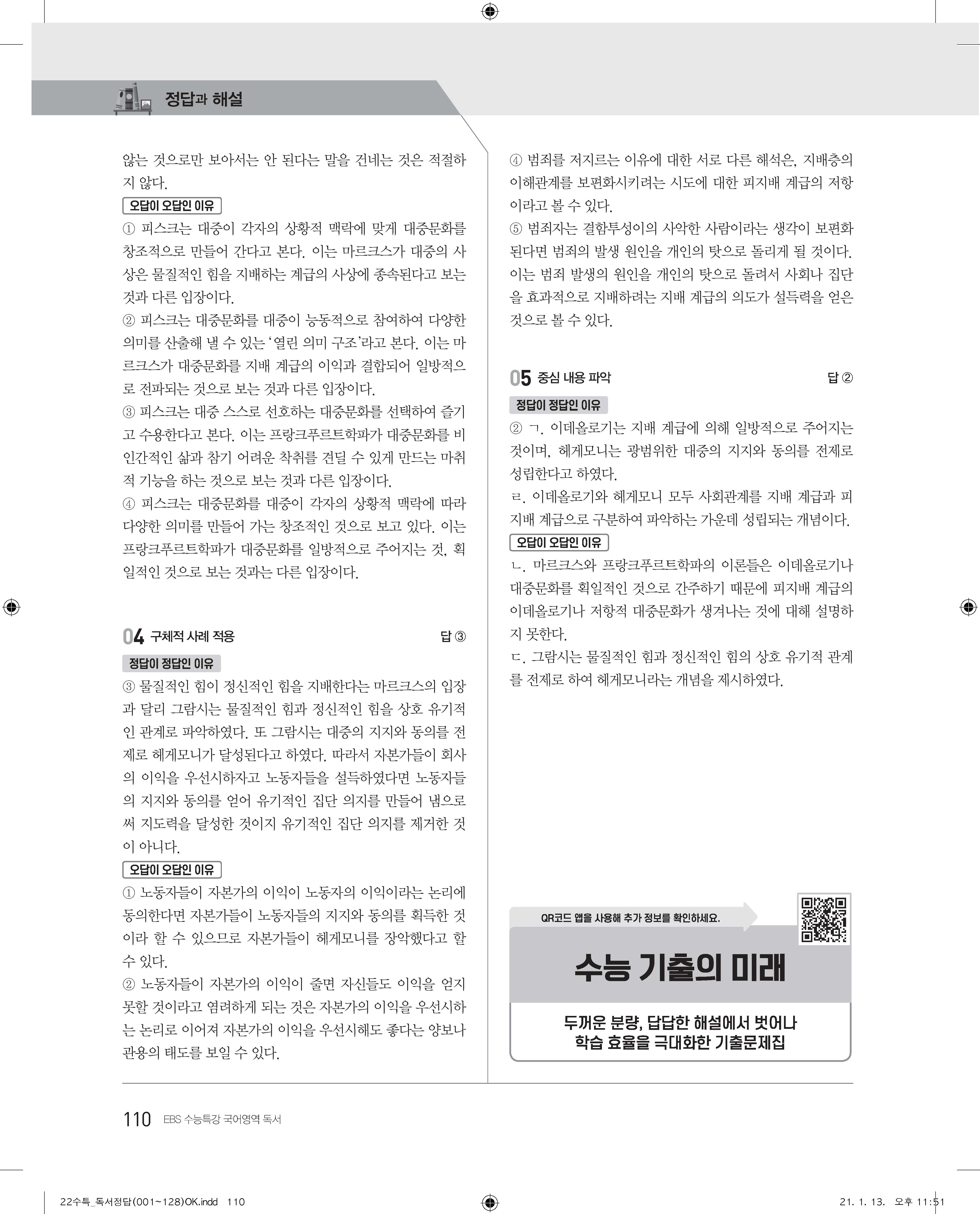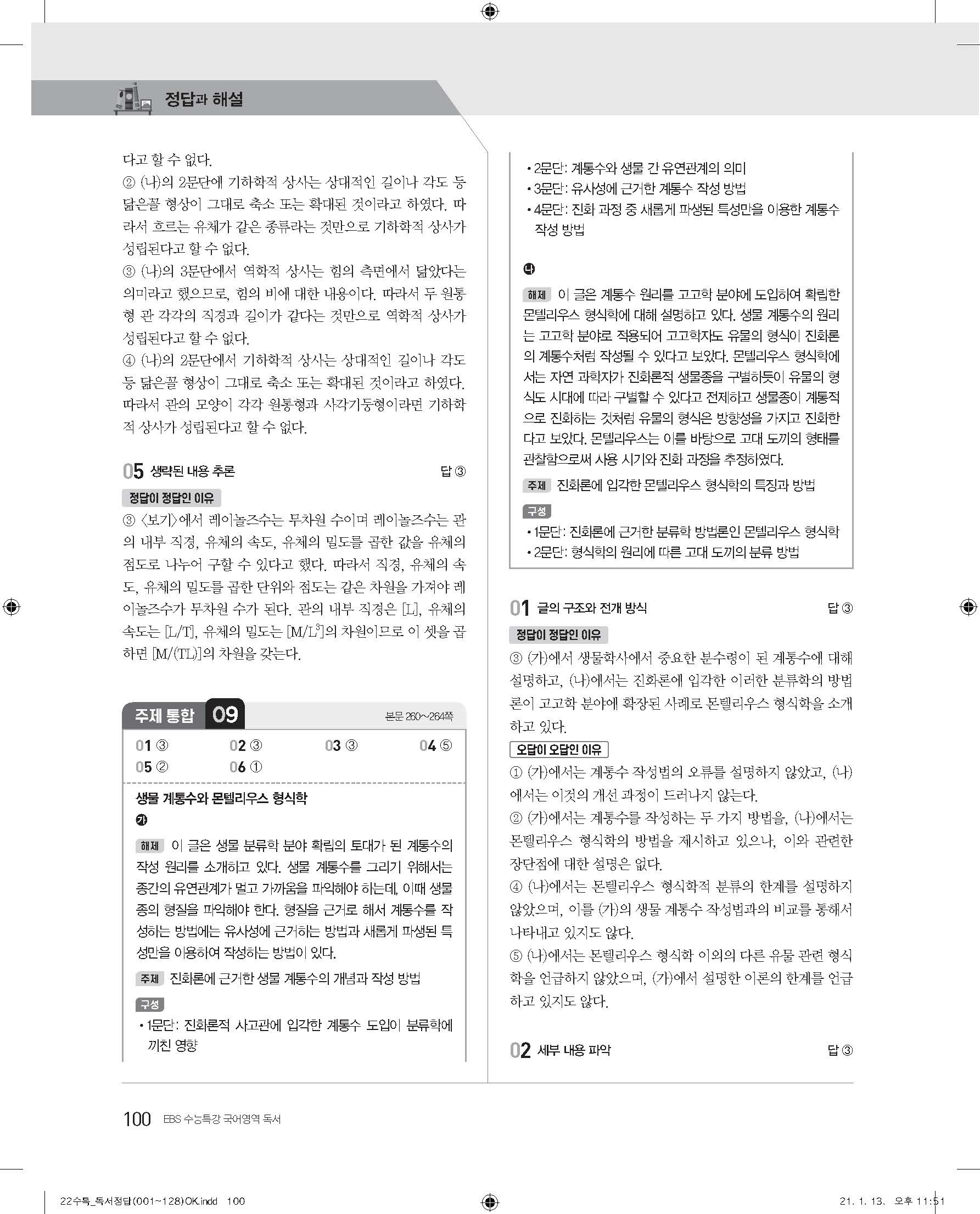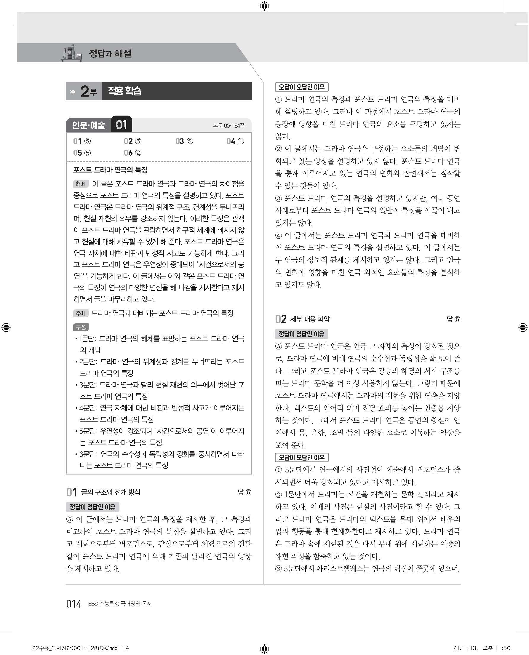 EBS 2022 수능특강 독서 사진답지 빠른답지 모바일최적화