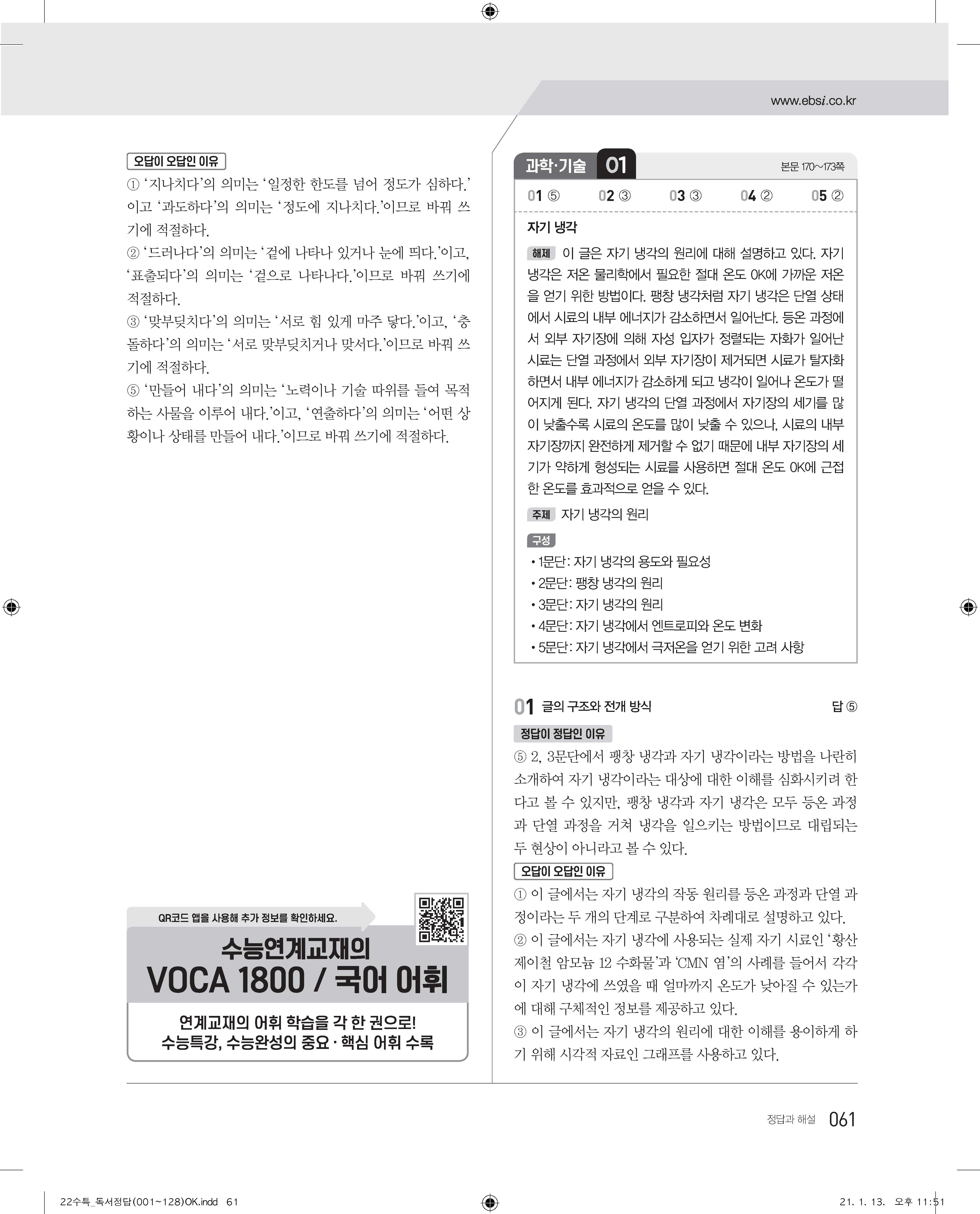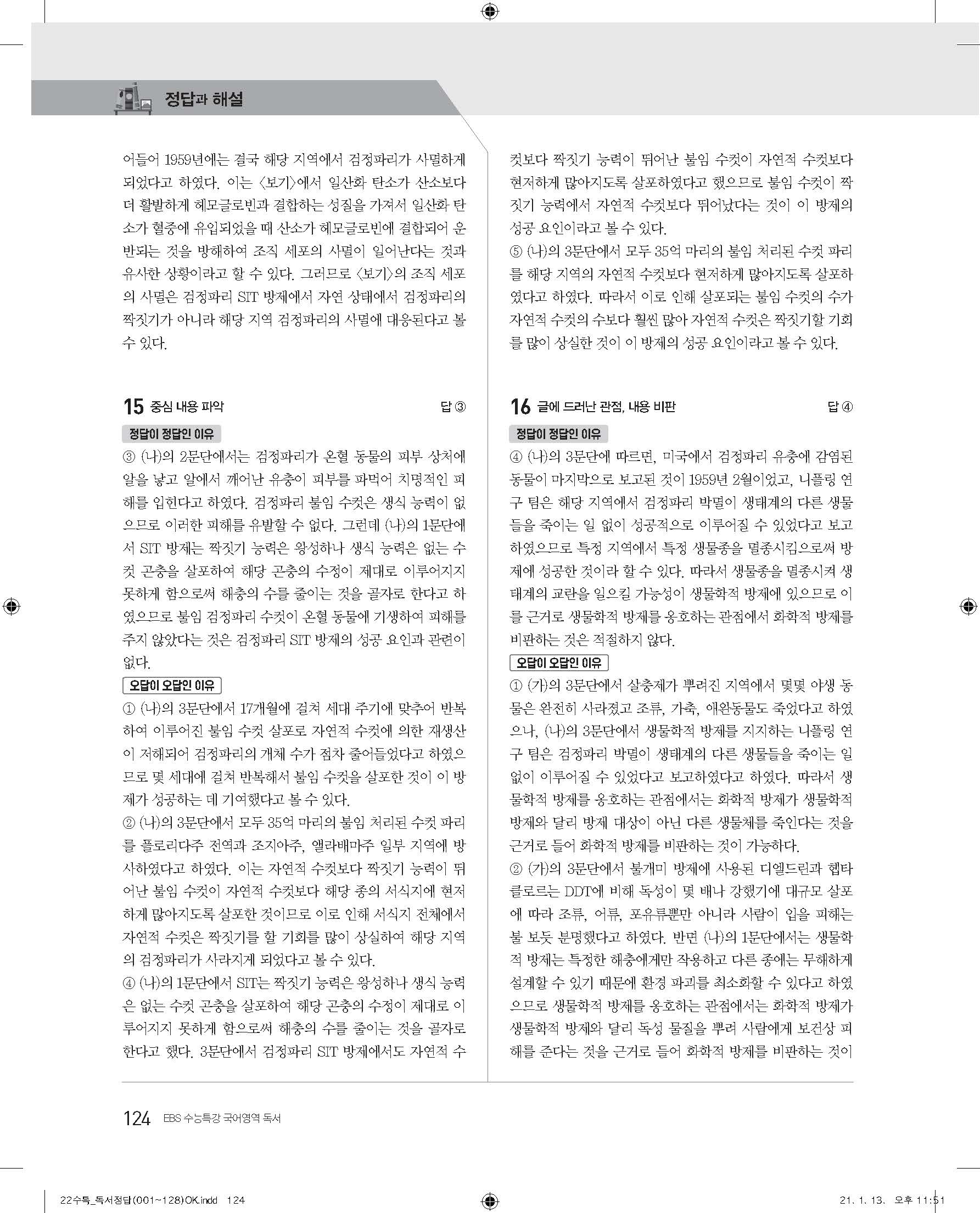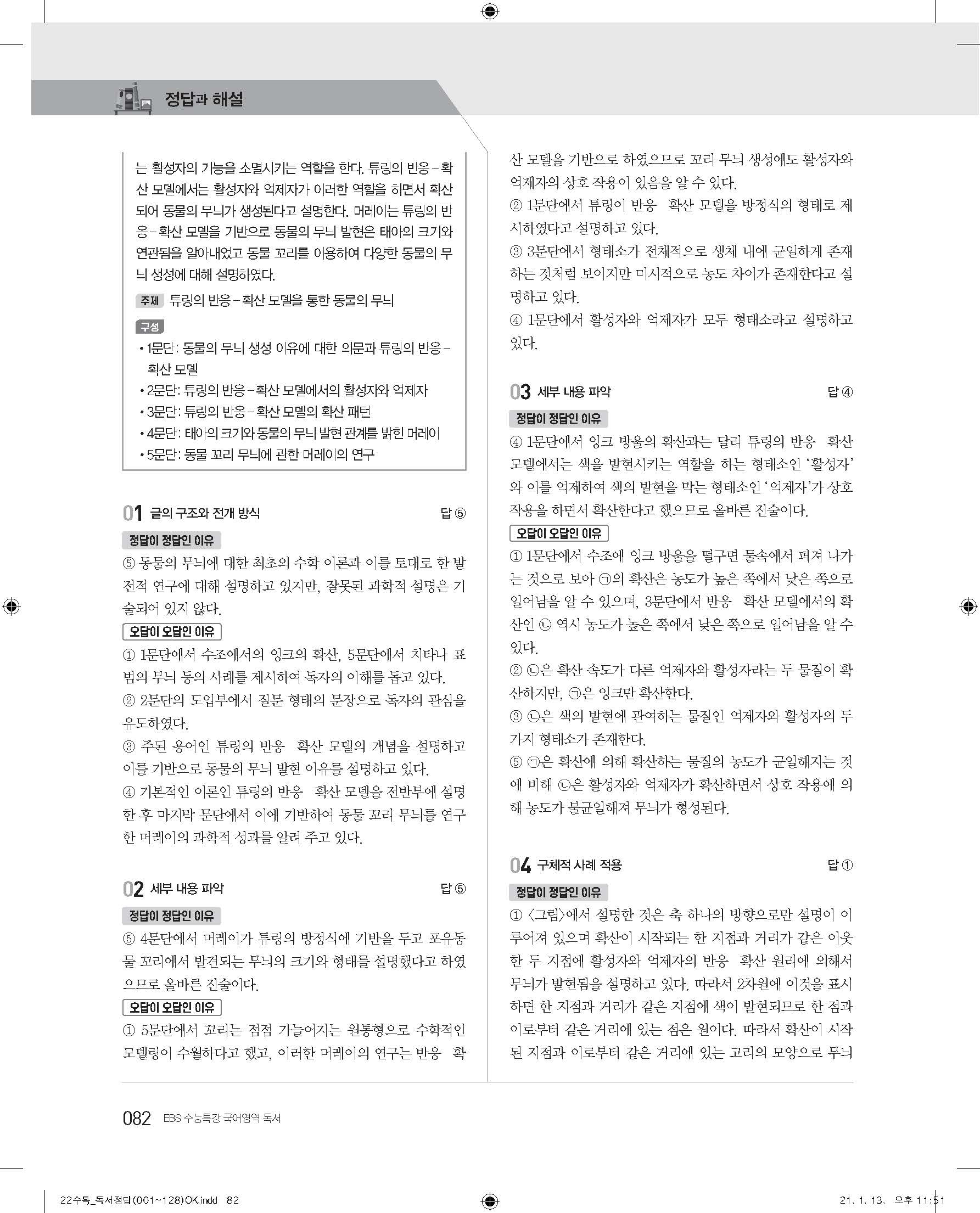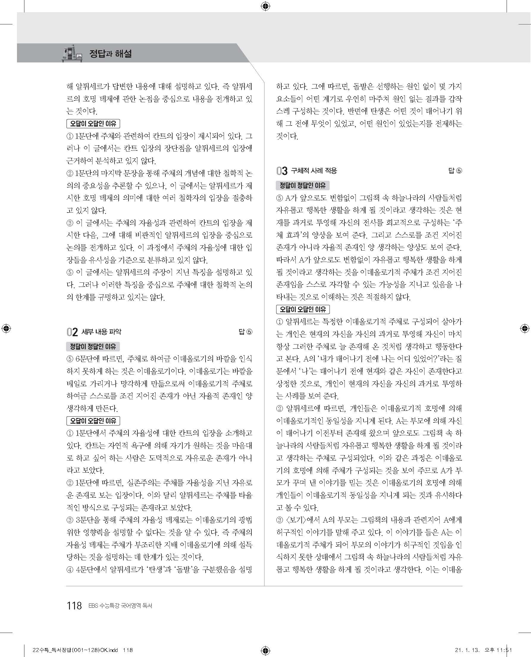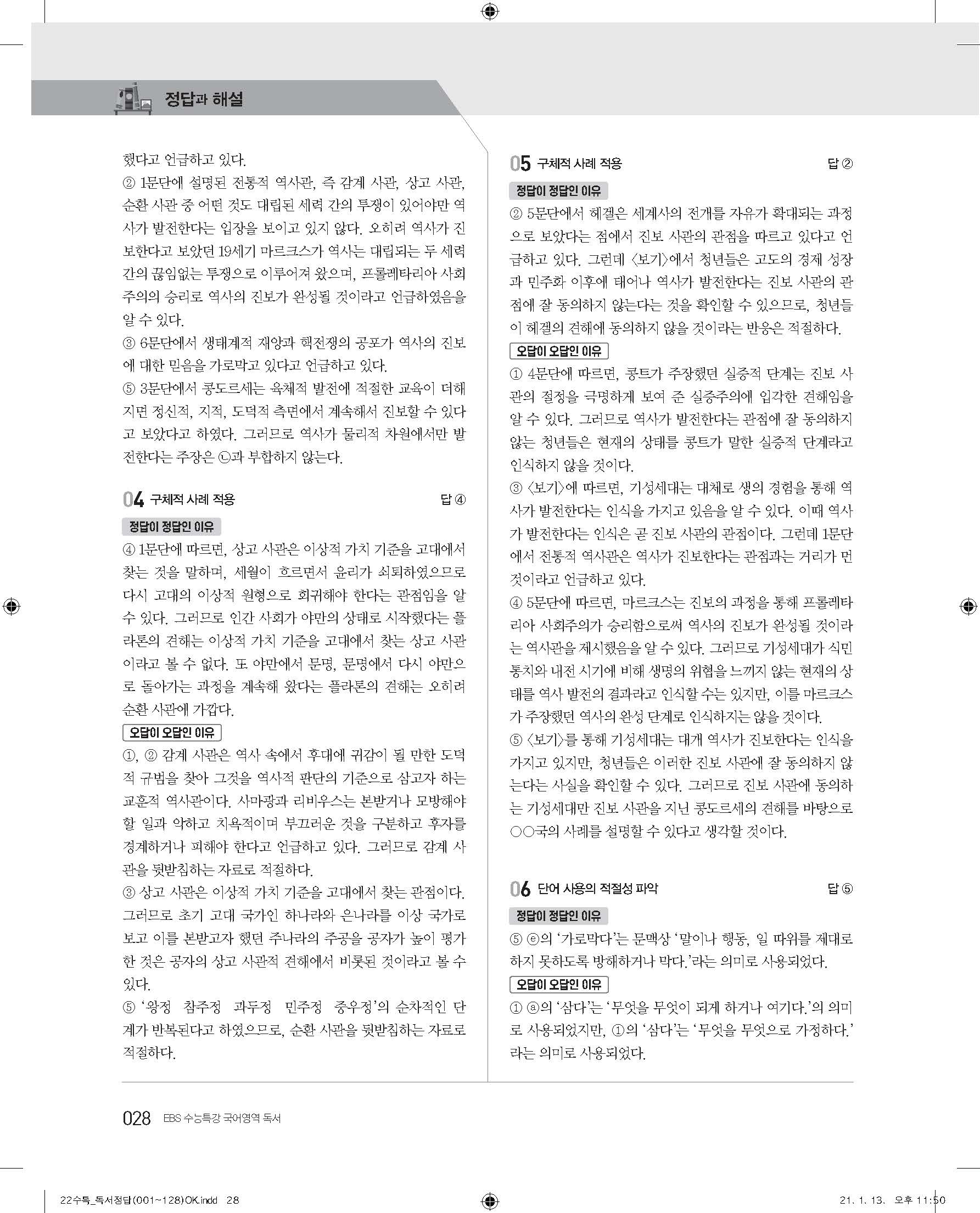 EBS 2022 수능특강 독서 사진답지 빠른답지 모바일최적화