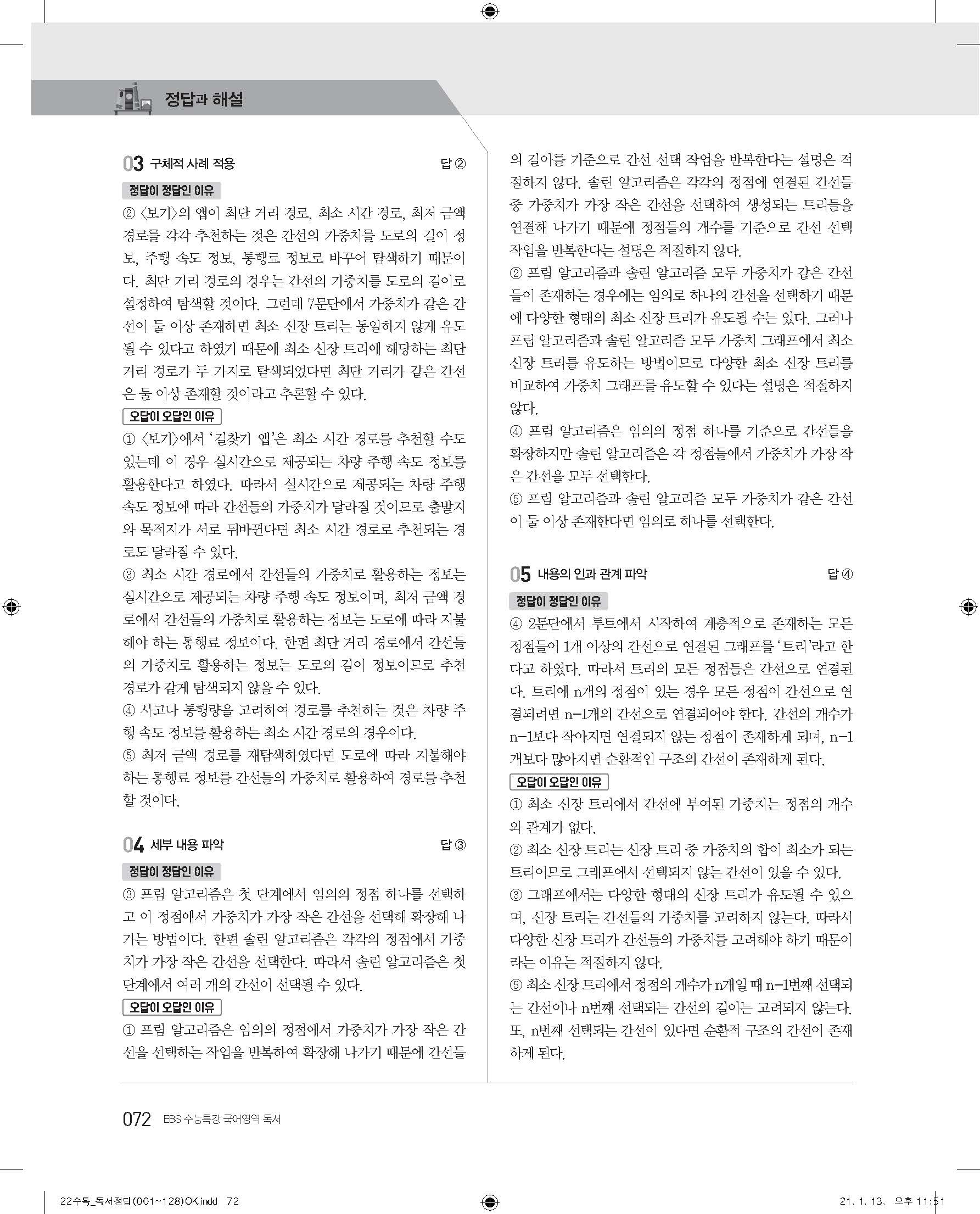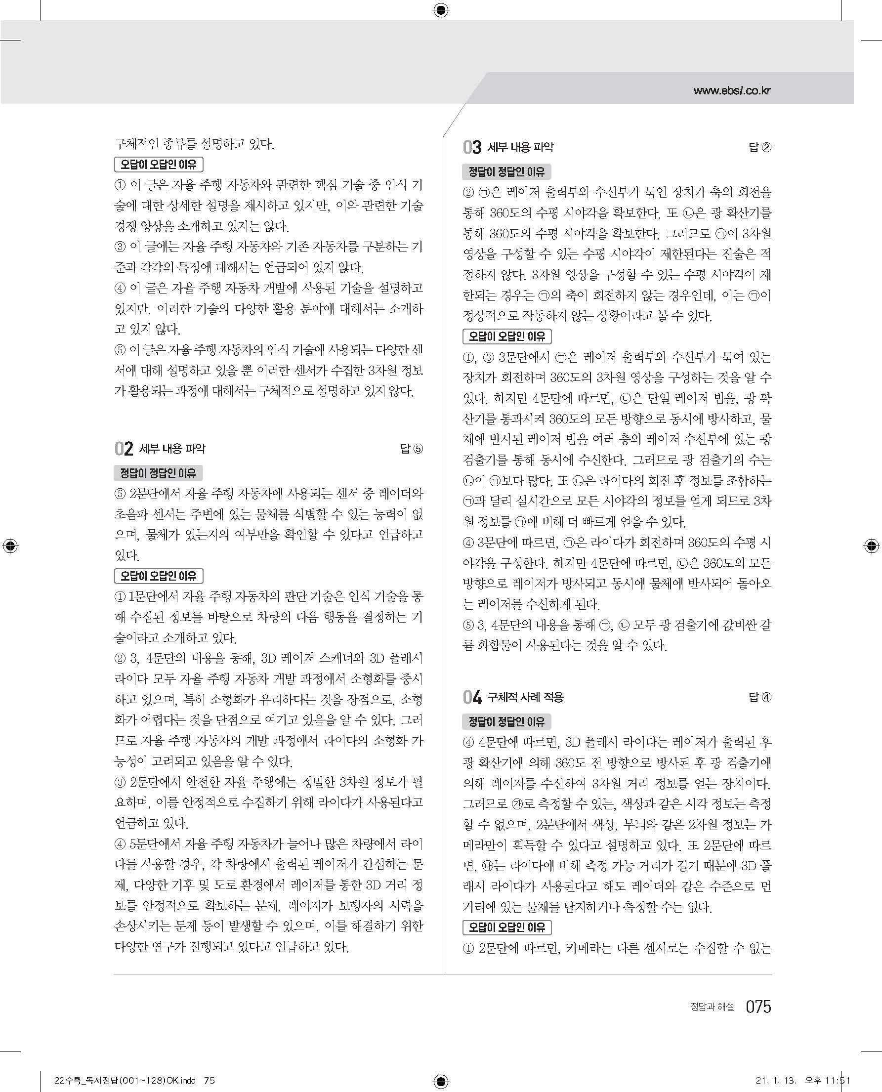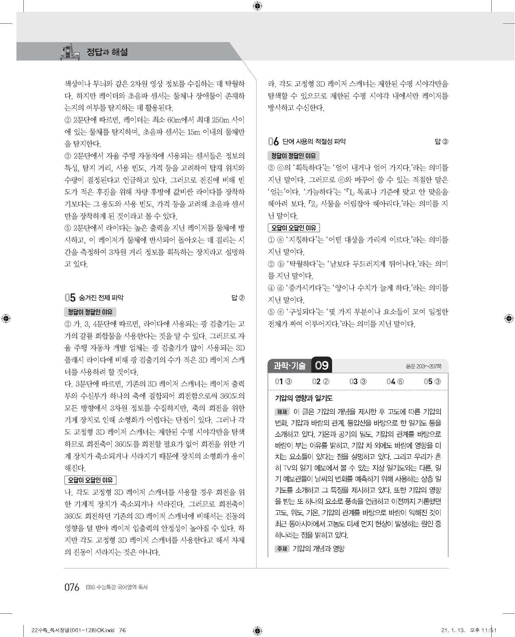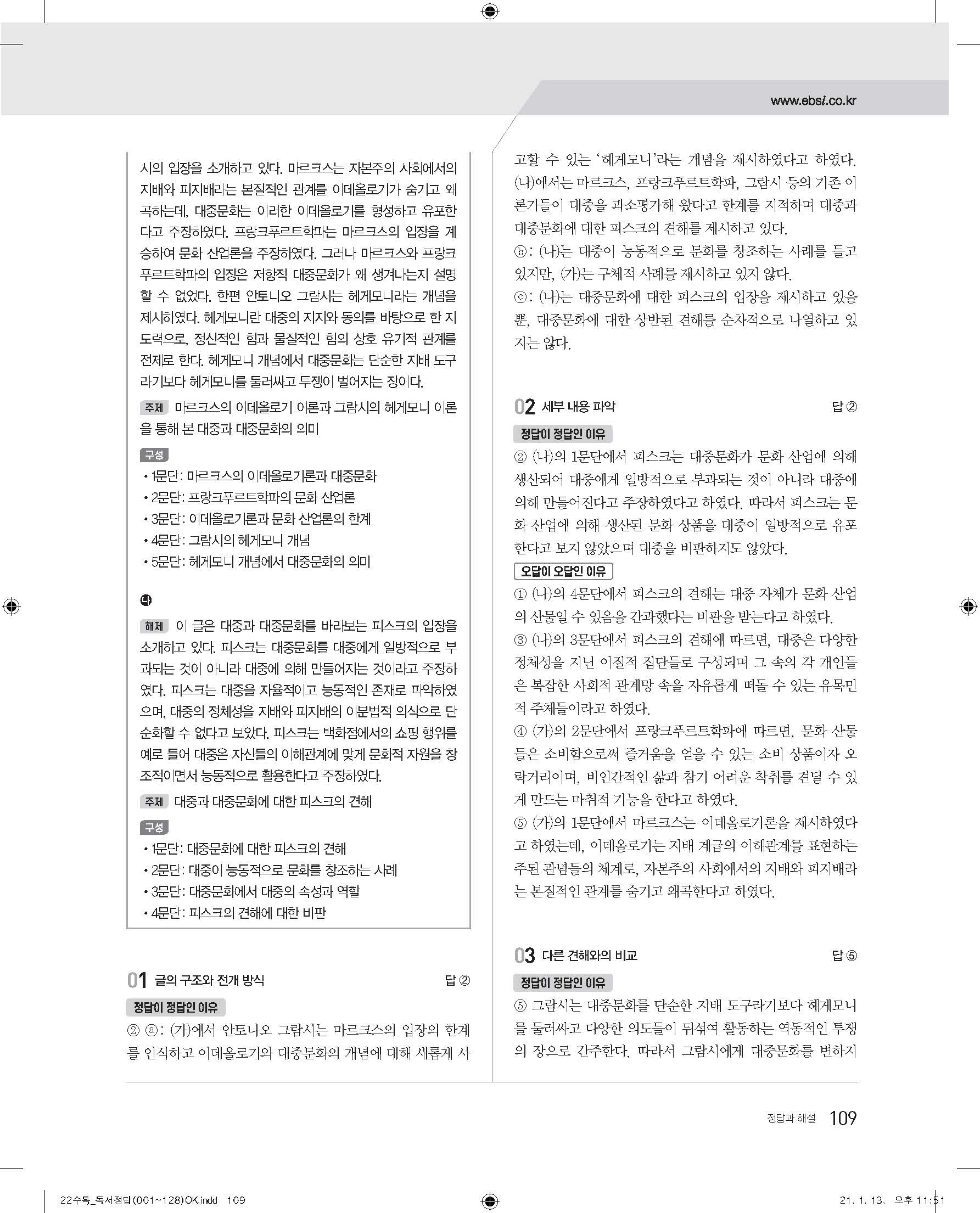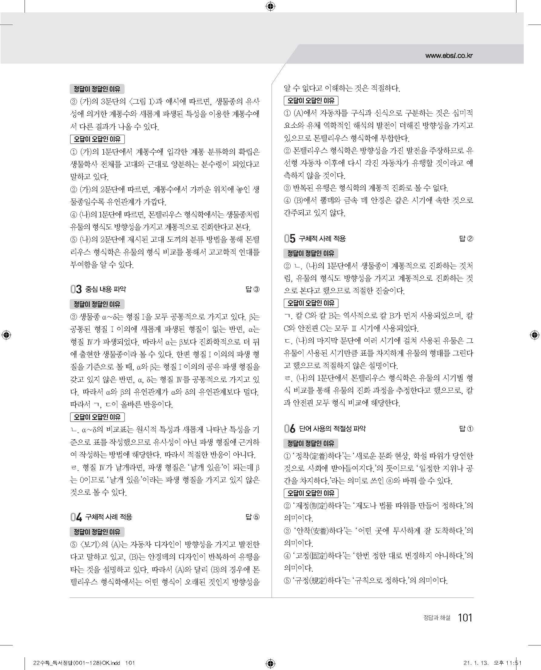 EBS 2022 수능특강 독서 사진답지 빠른답지 모바일최적화