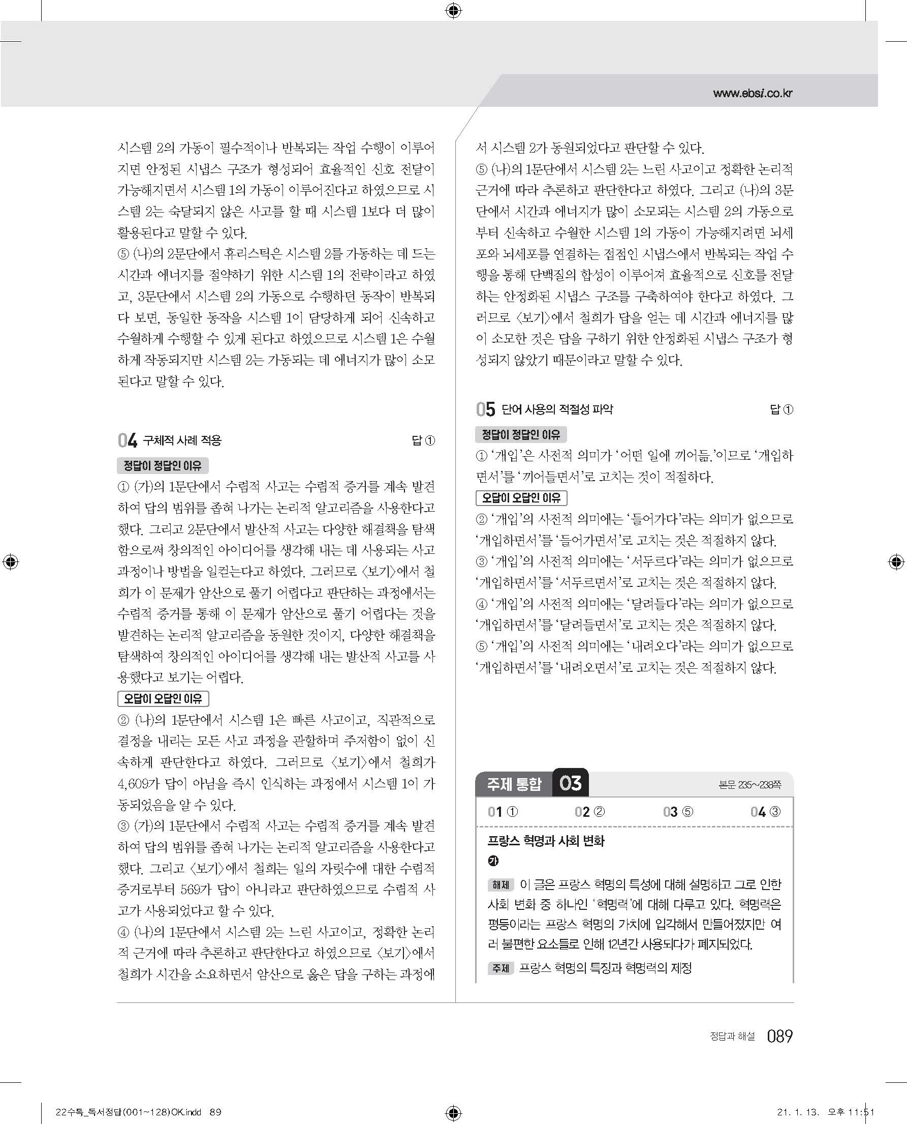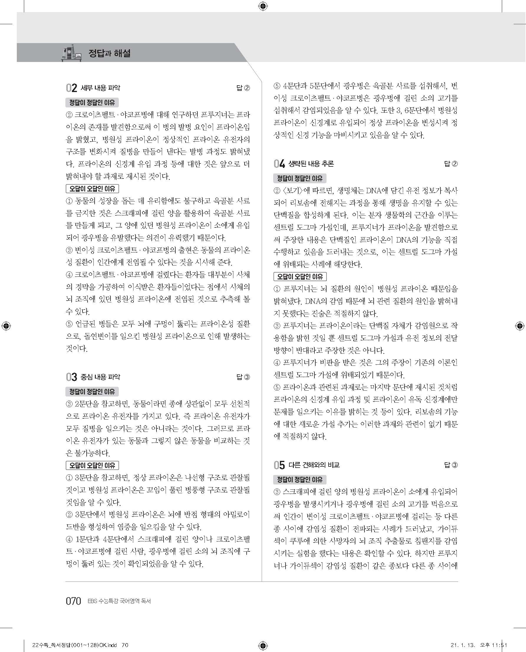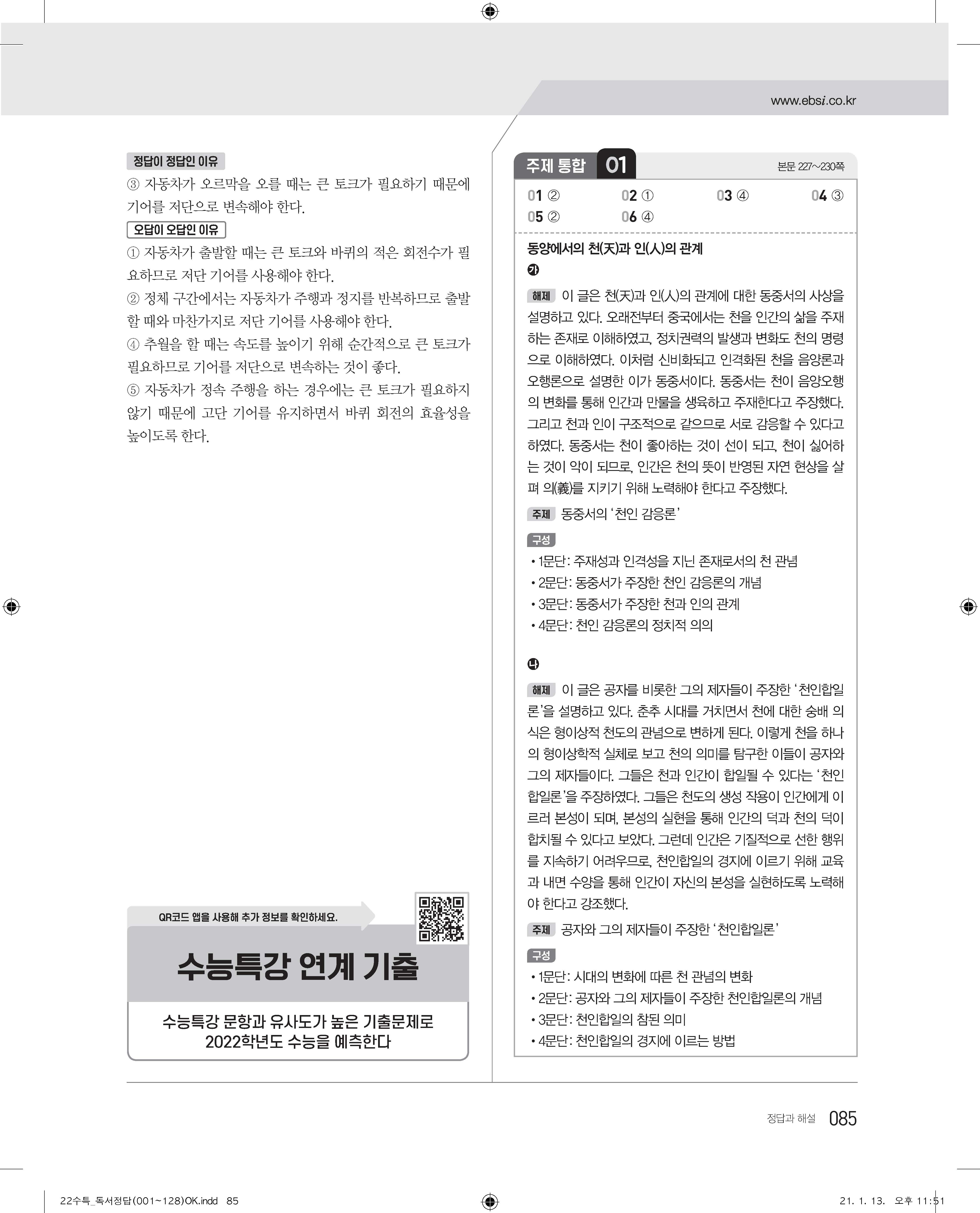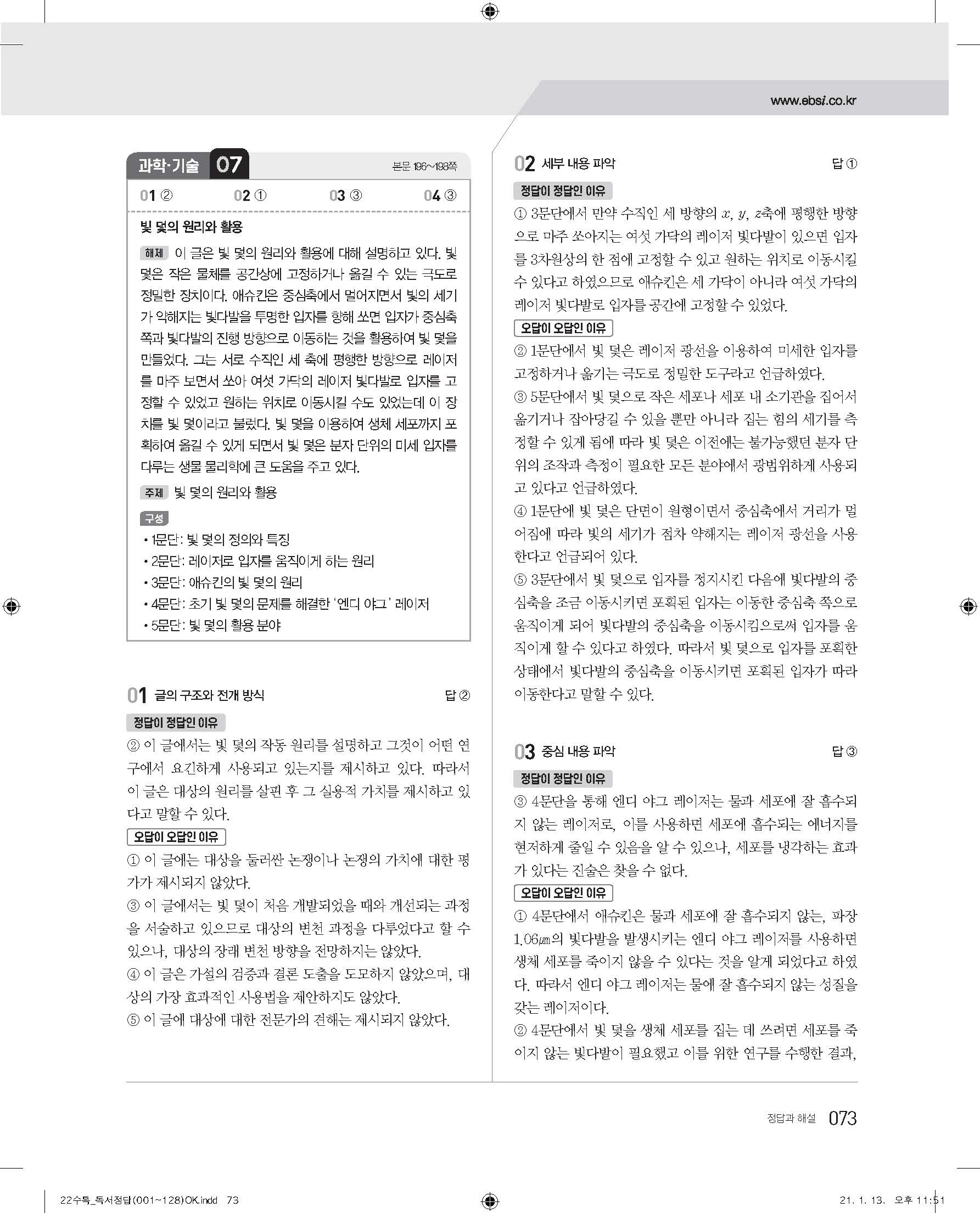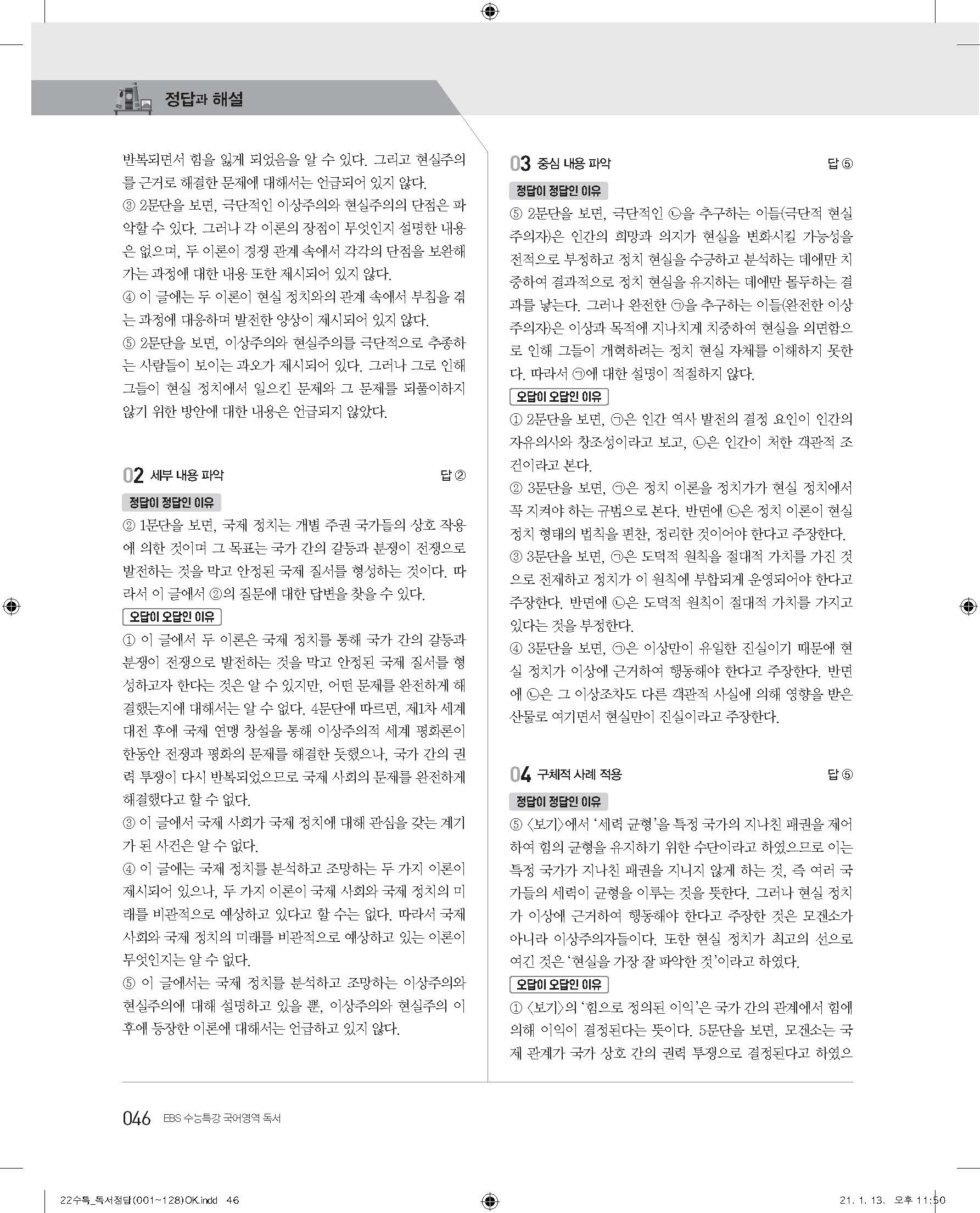 EBS 2022 수능특강 독서 사진답지 빠른답지 모바일최적화