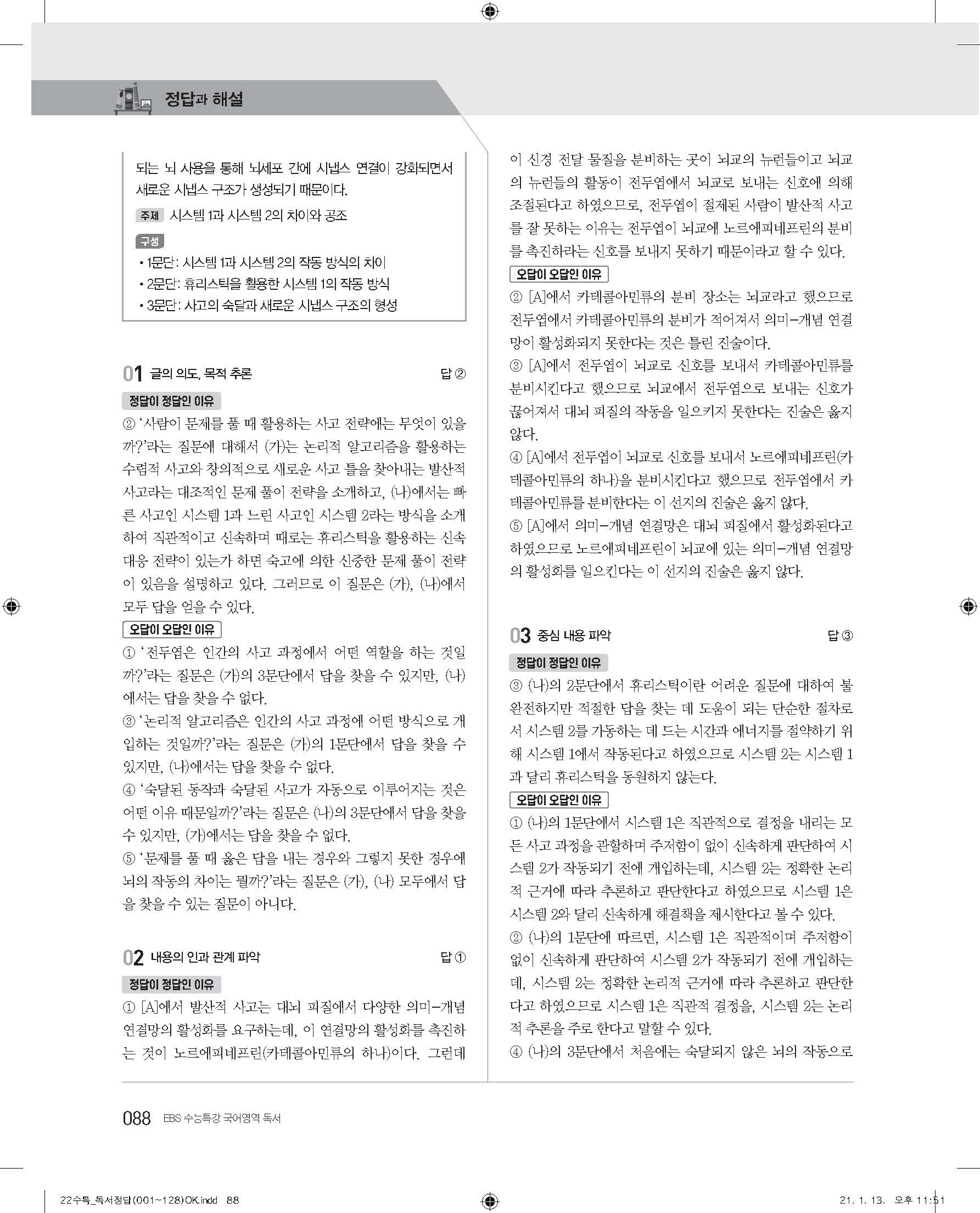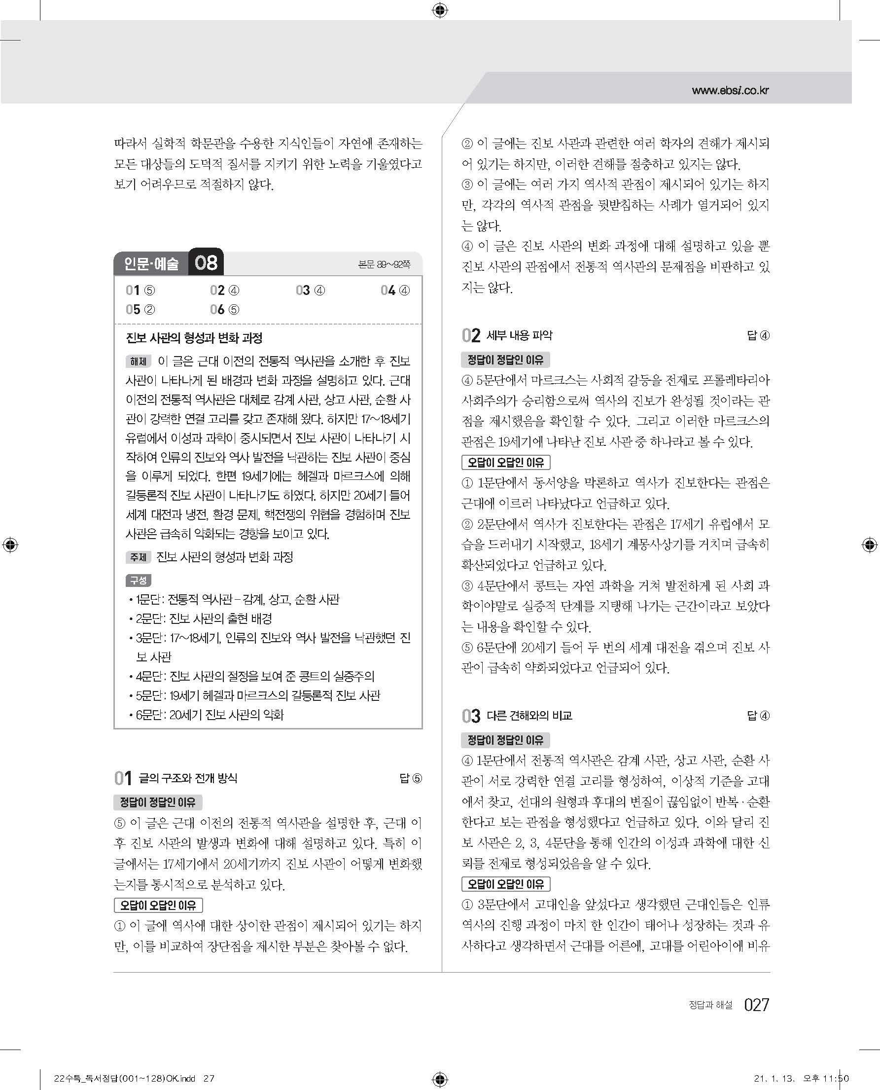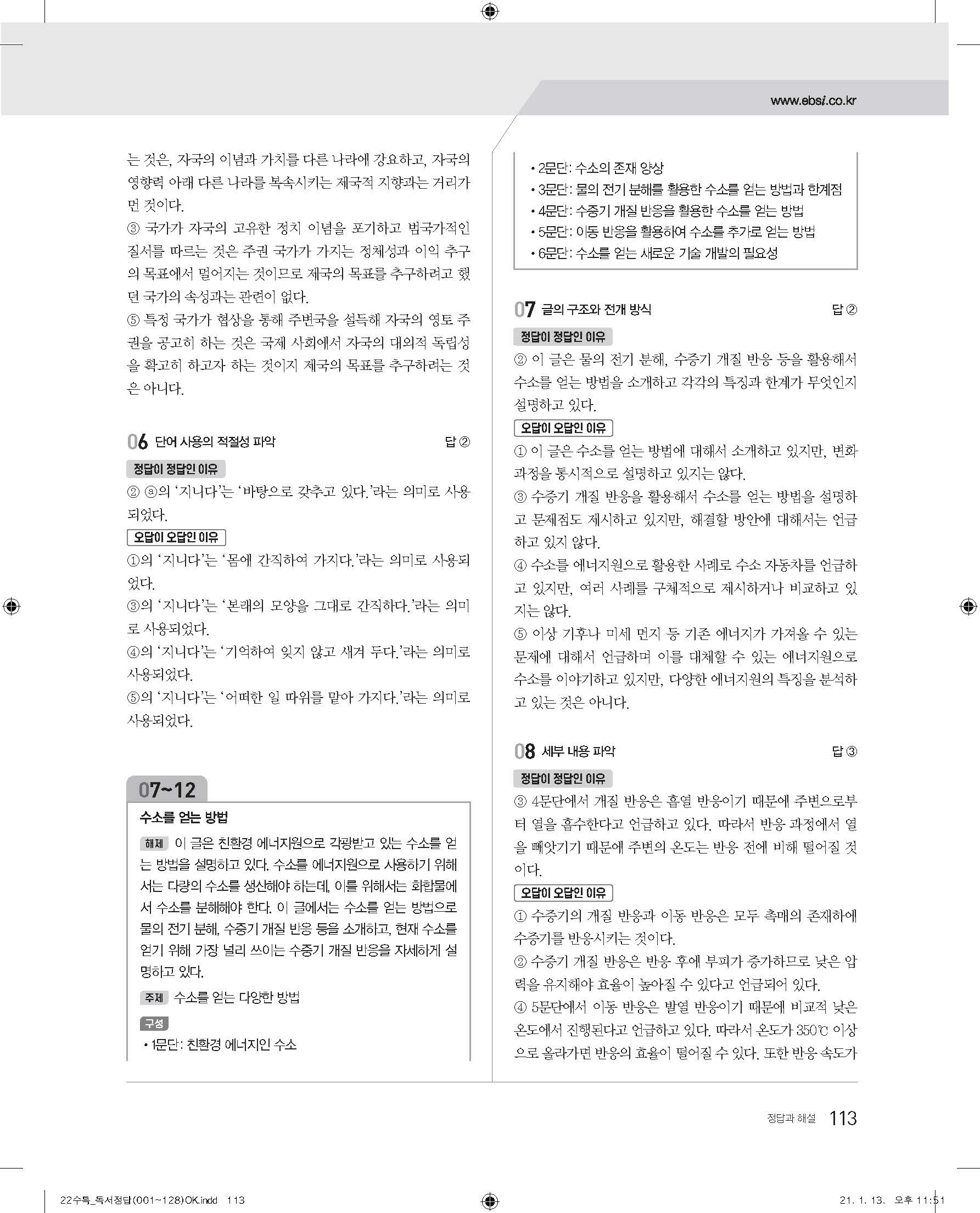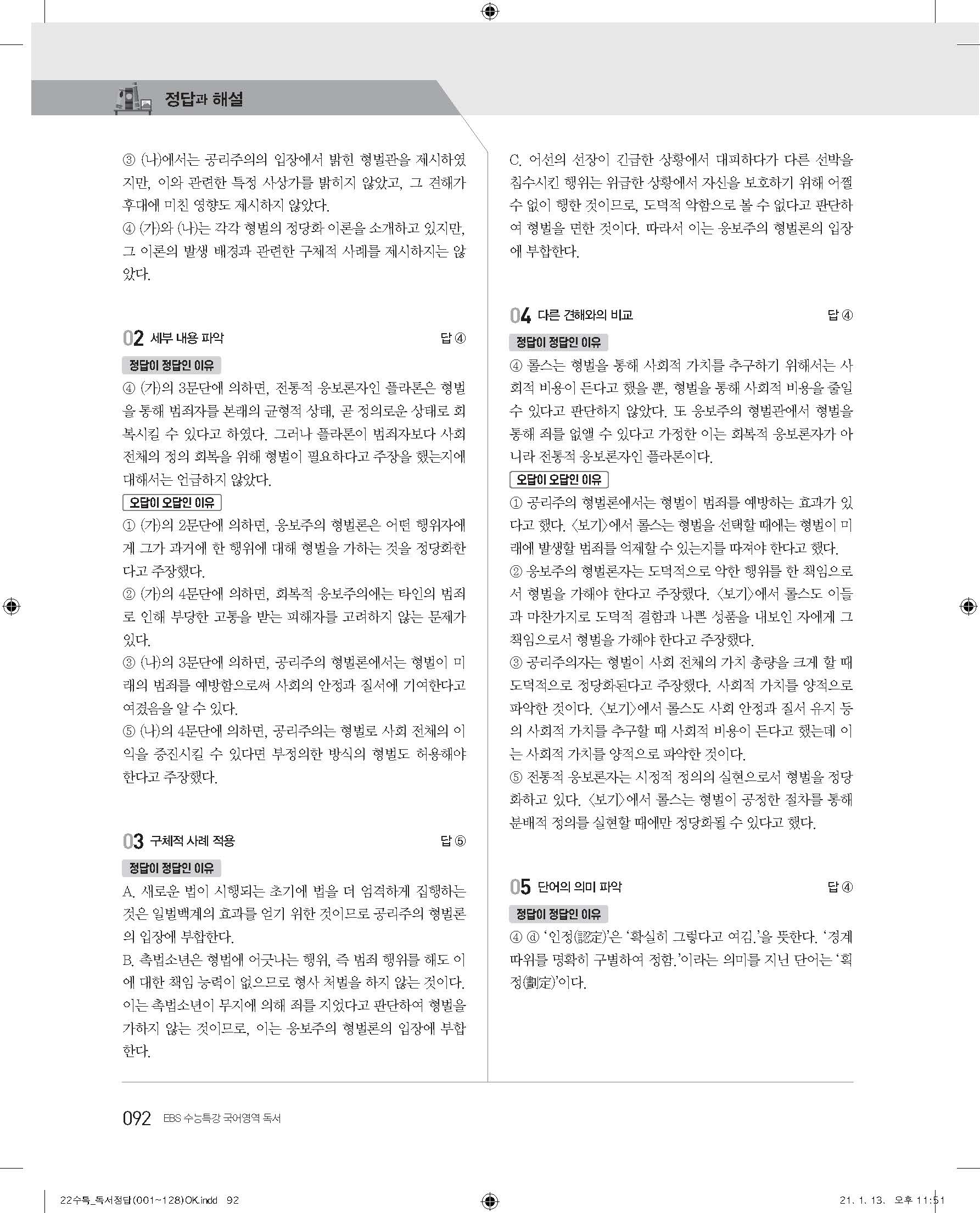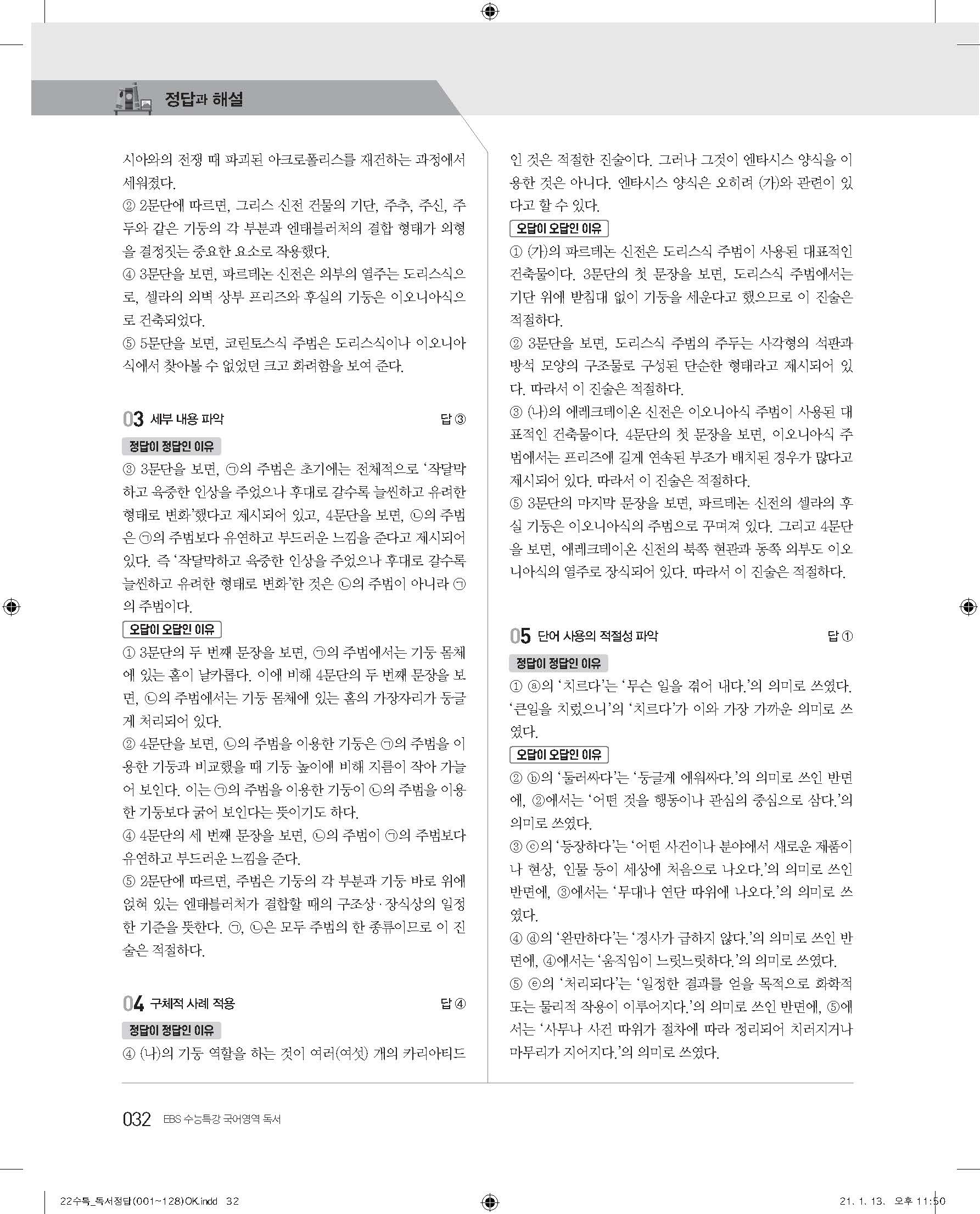 EBS 2022 수능특강 독서 사진답지 빠른답지 모바일최적화
