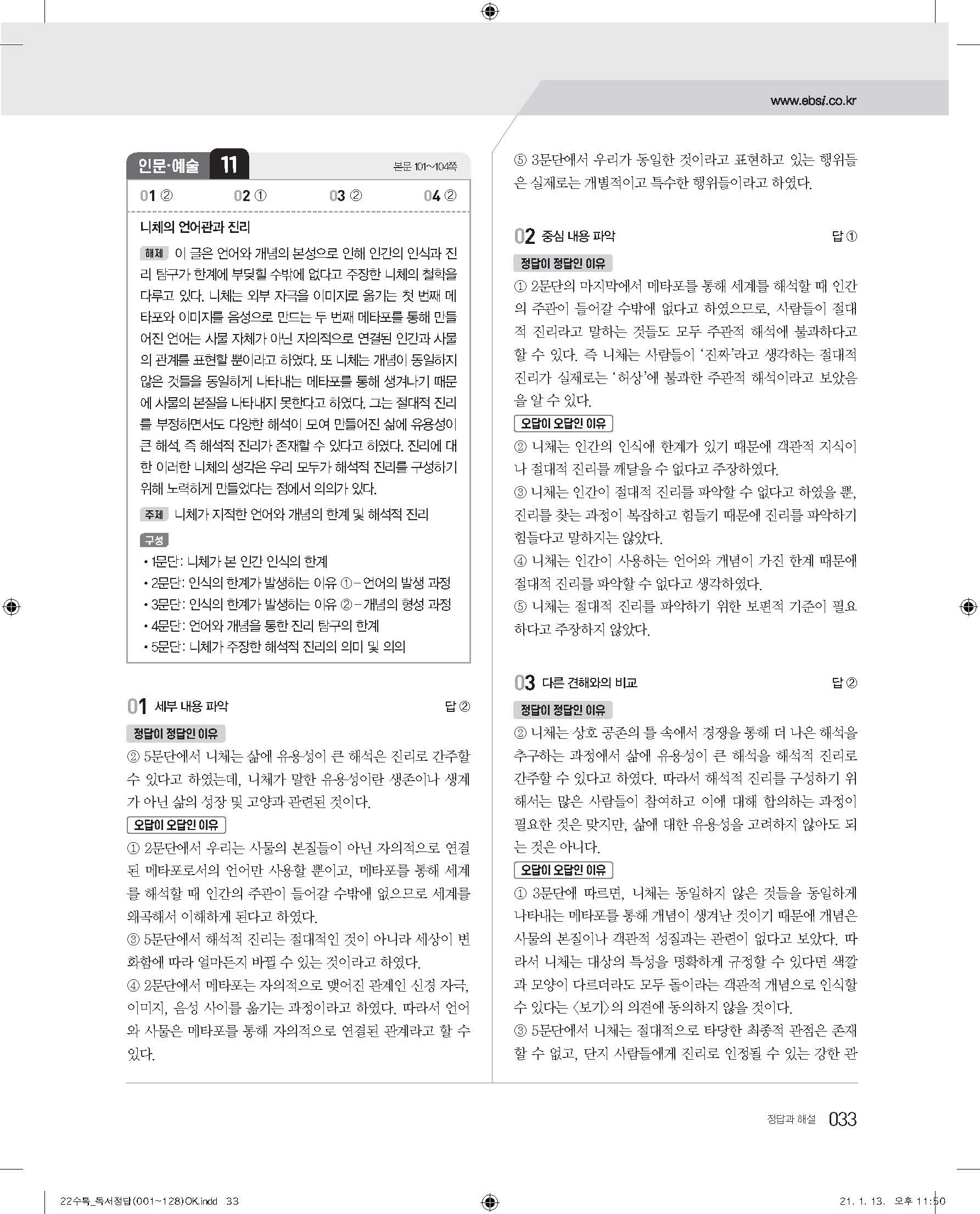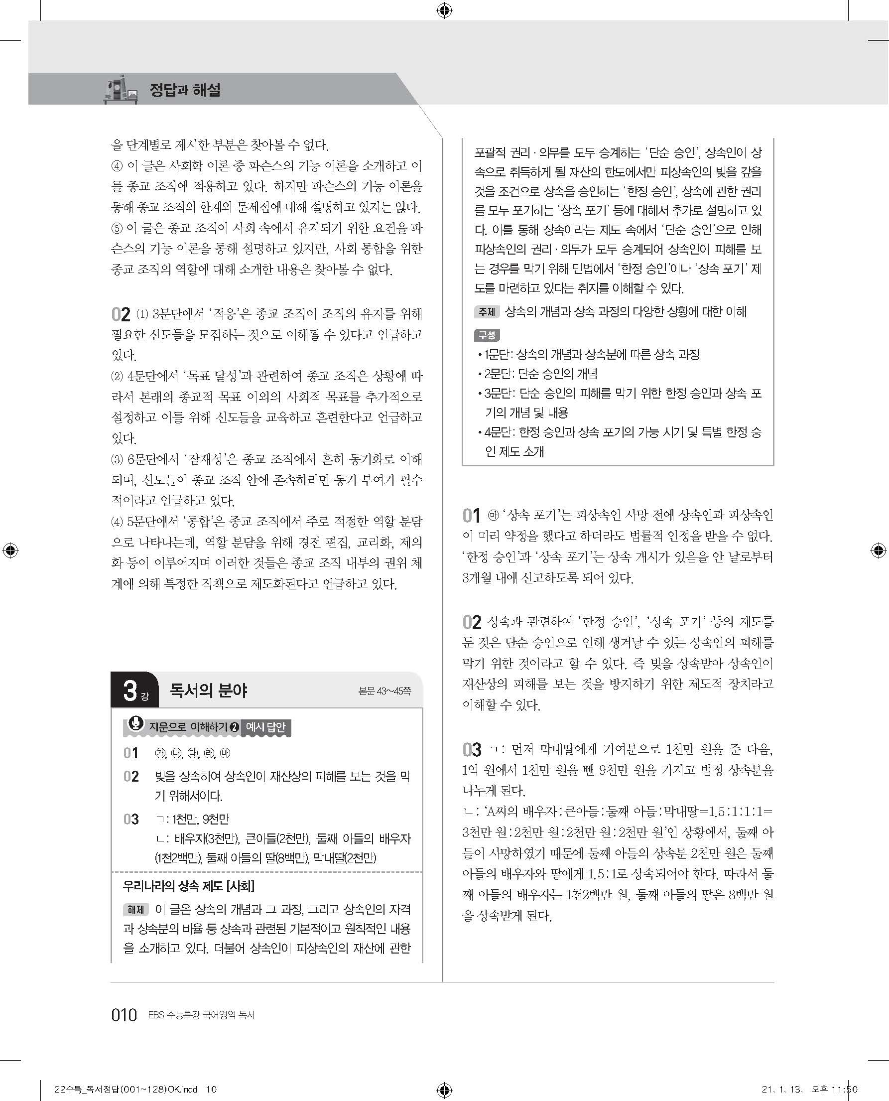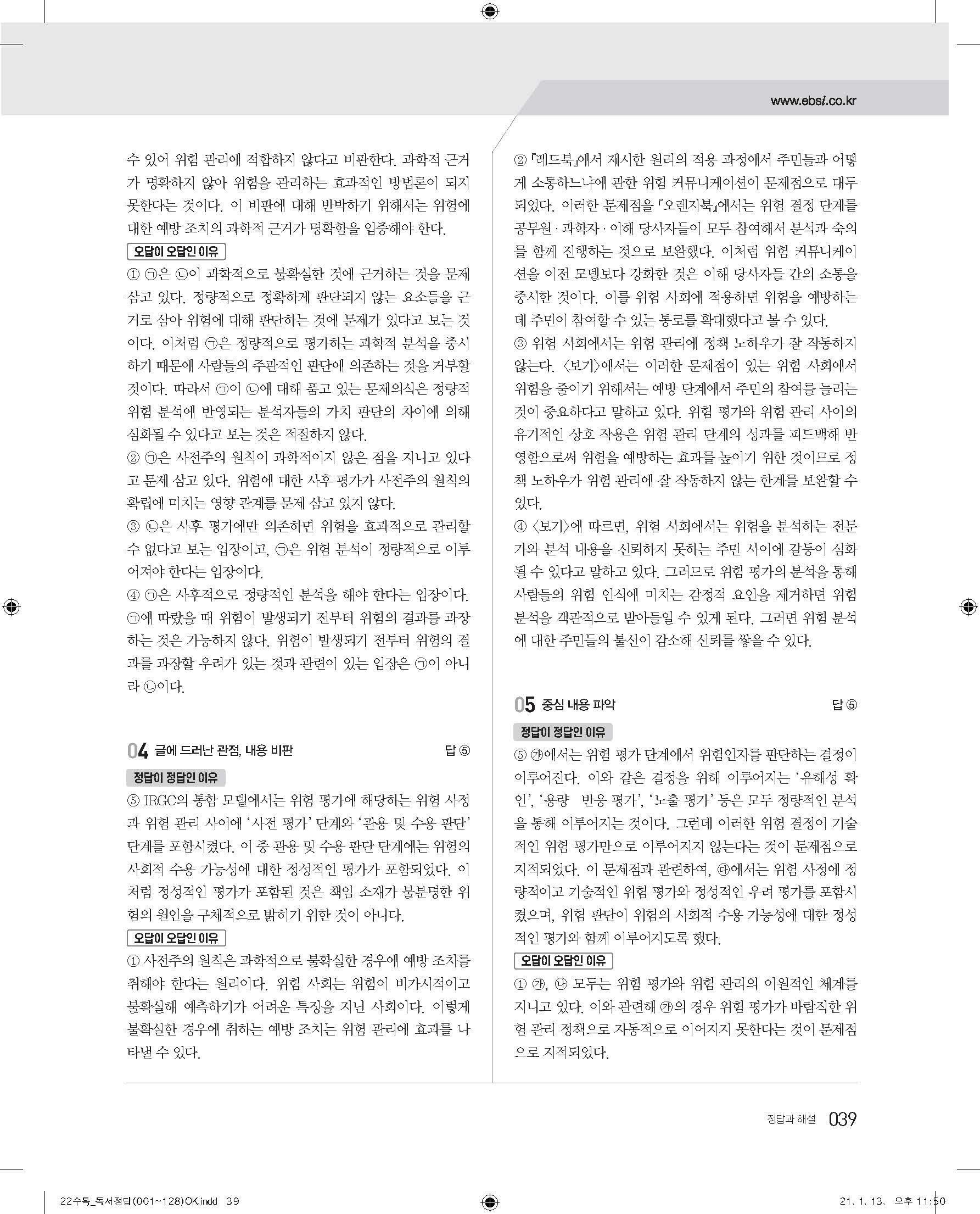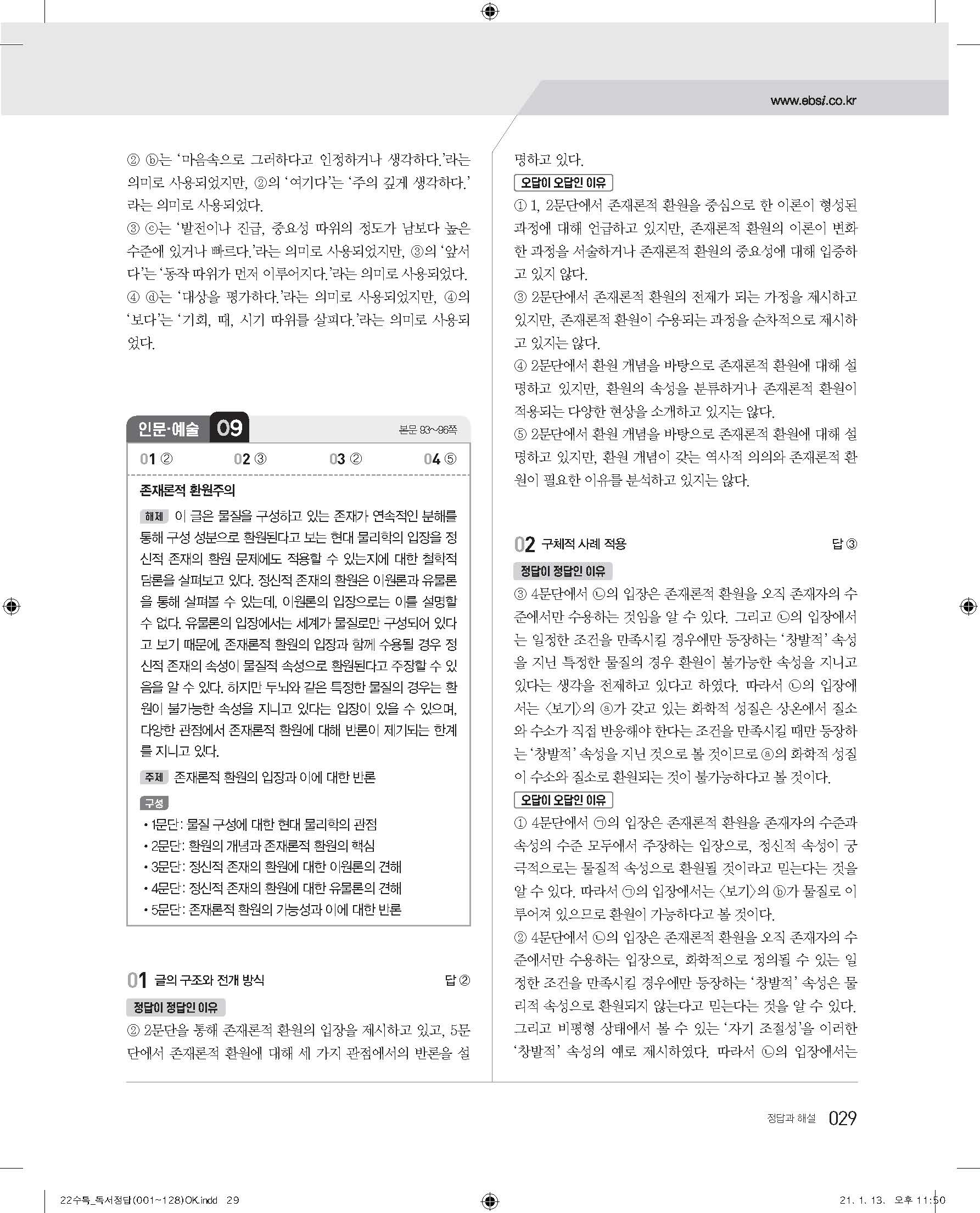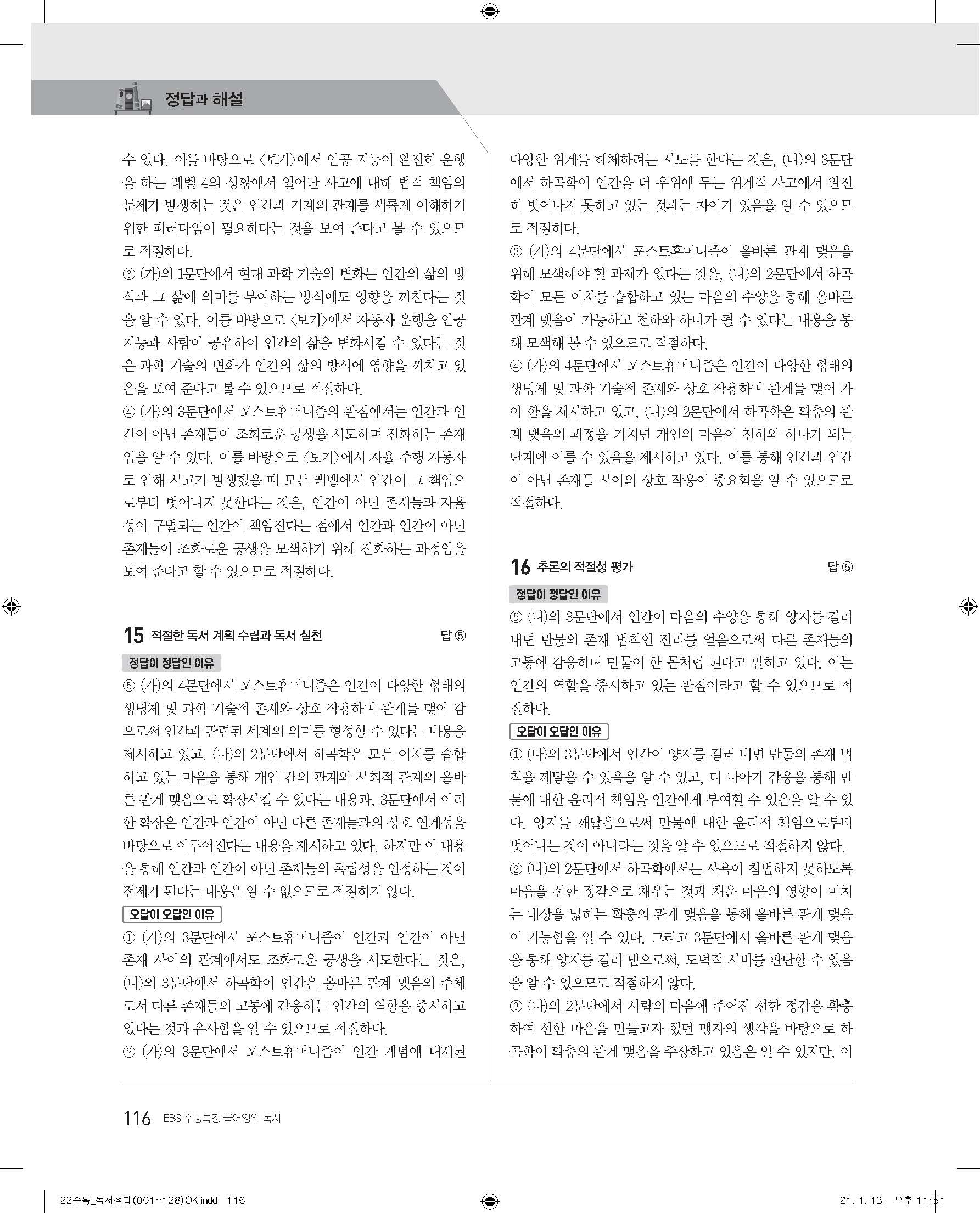 EBS 2022 수능특강 독서 사진답지 빠른답지 모바일최적화