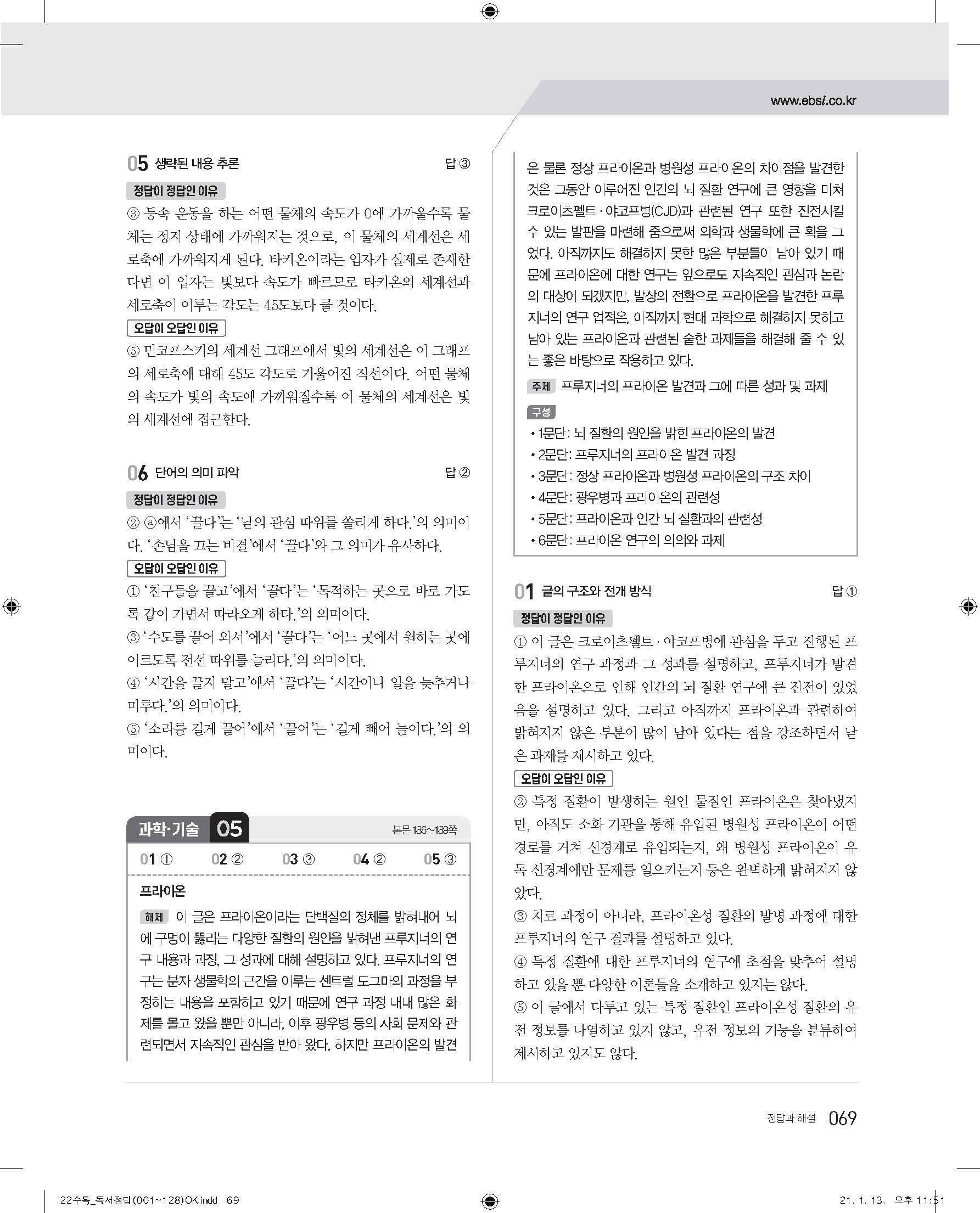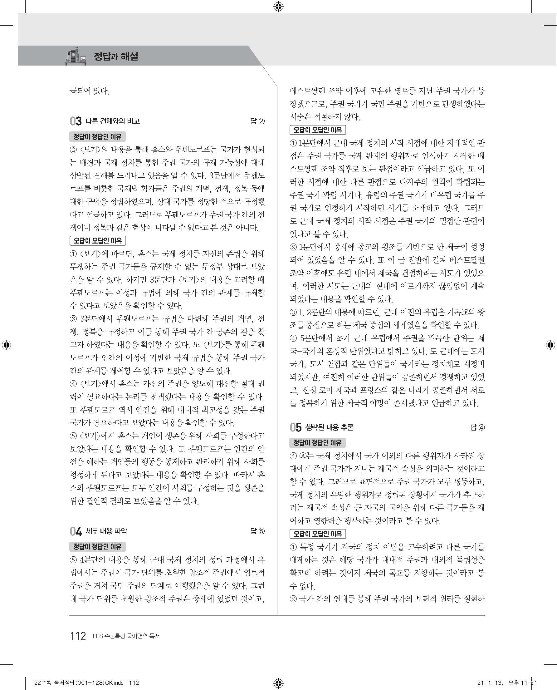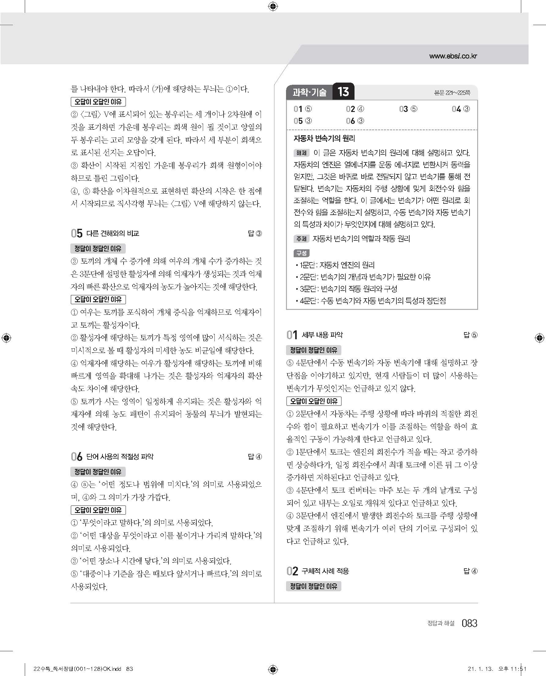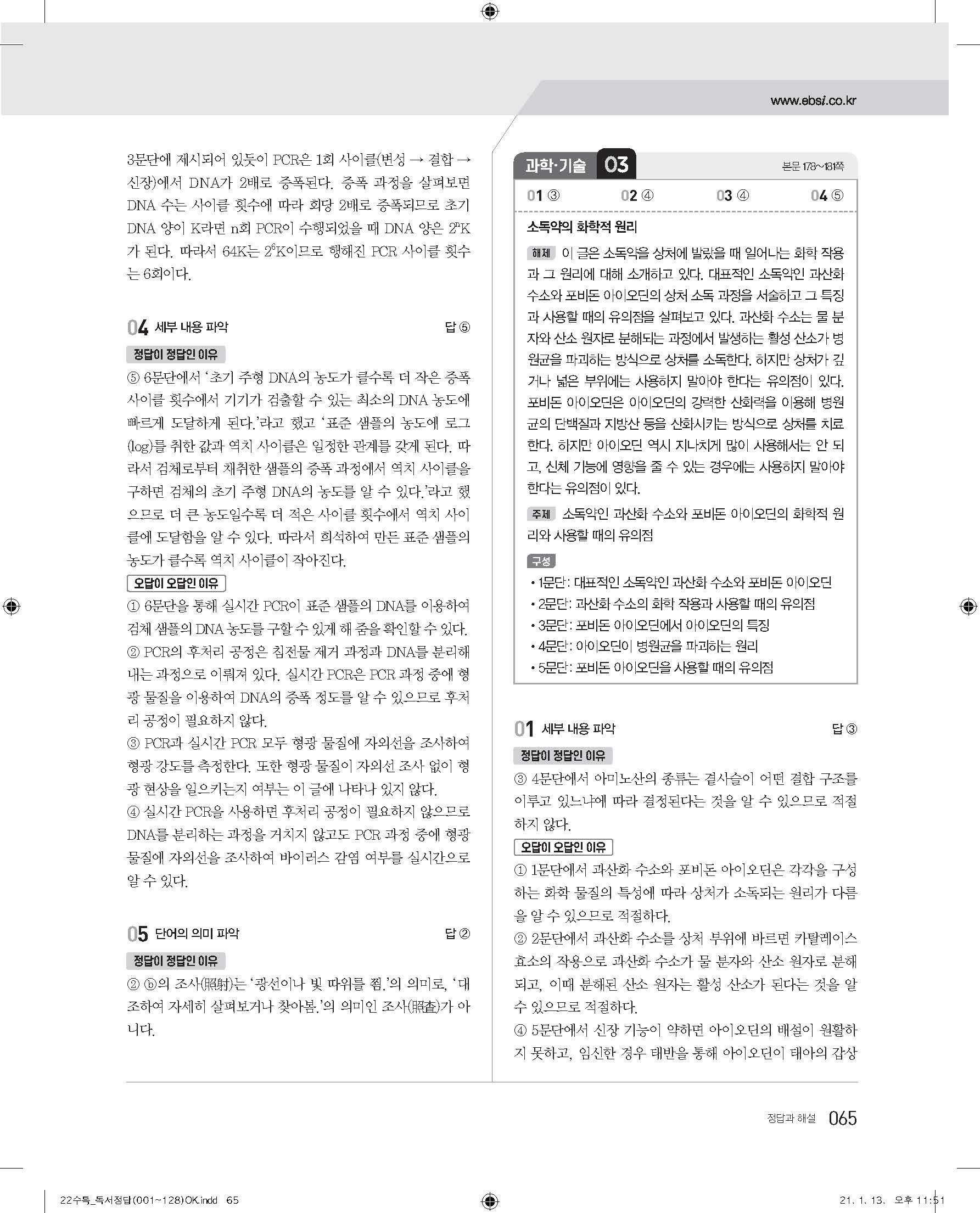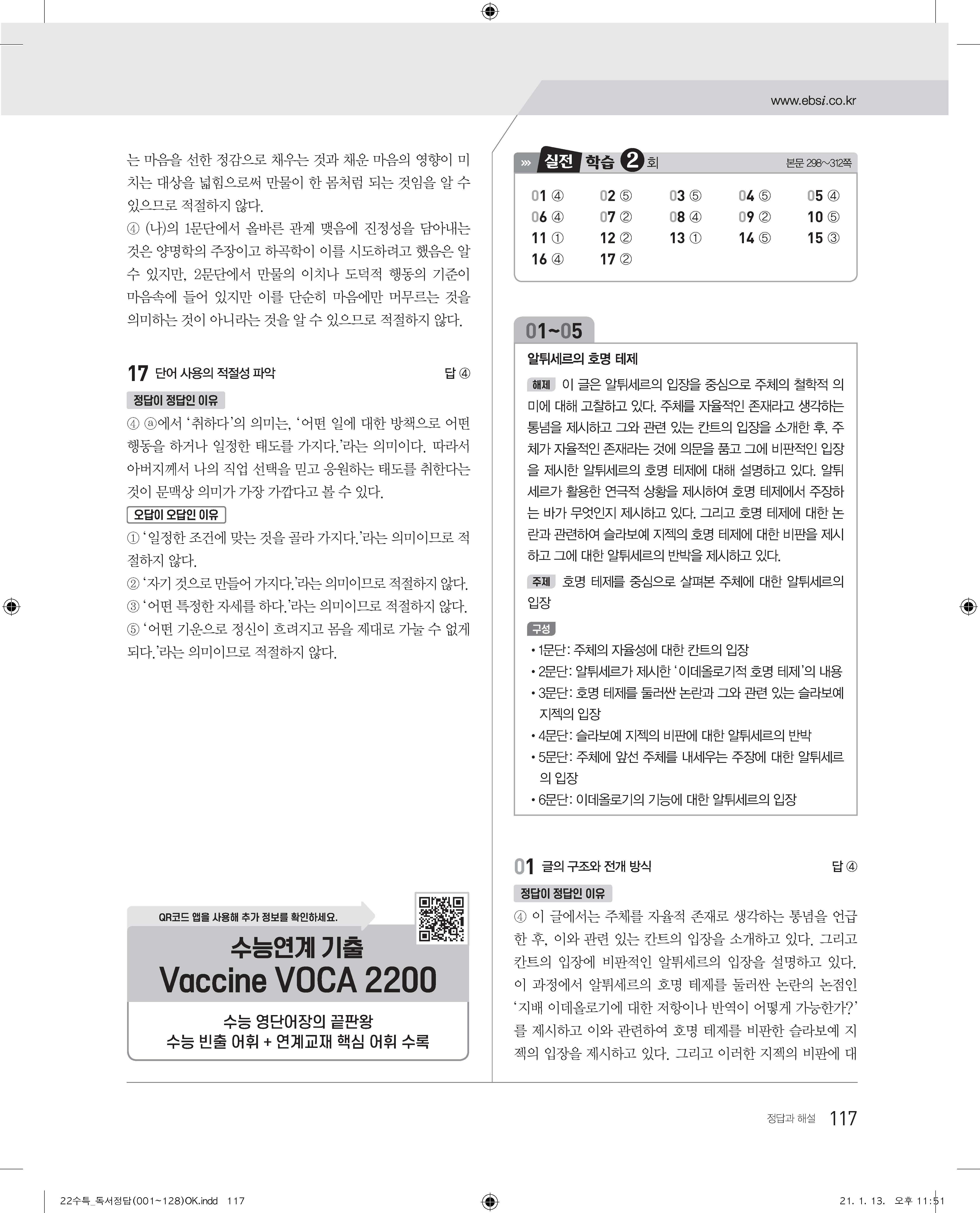 EBS 2022 수능특강 독서 사진답지 빠른답지 모바일최적화