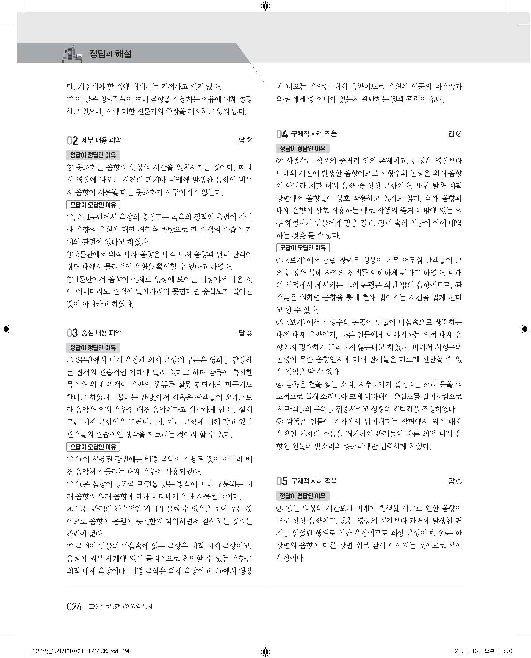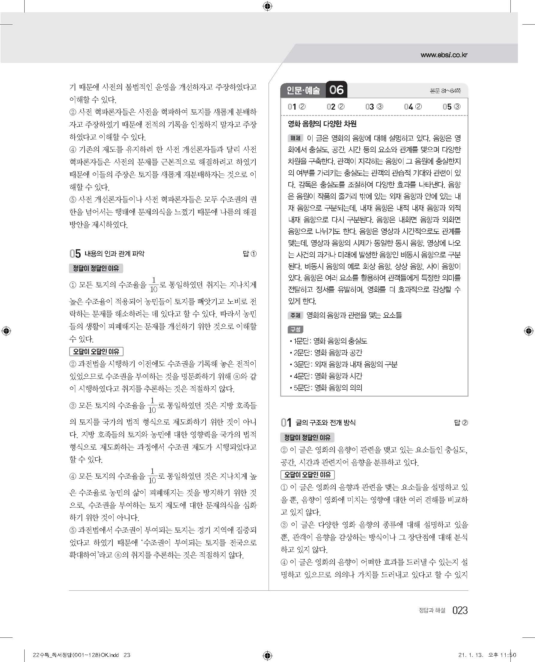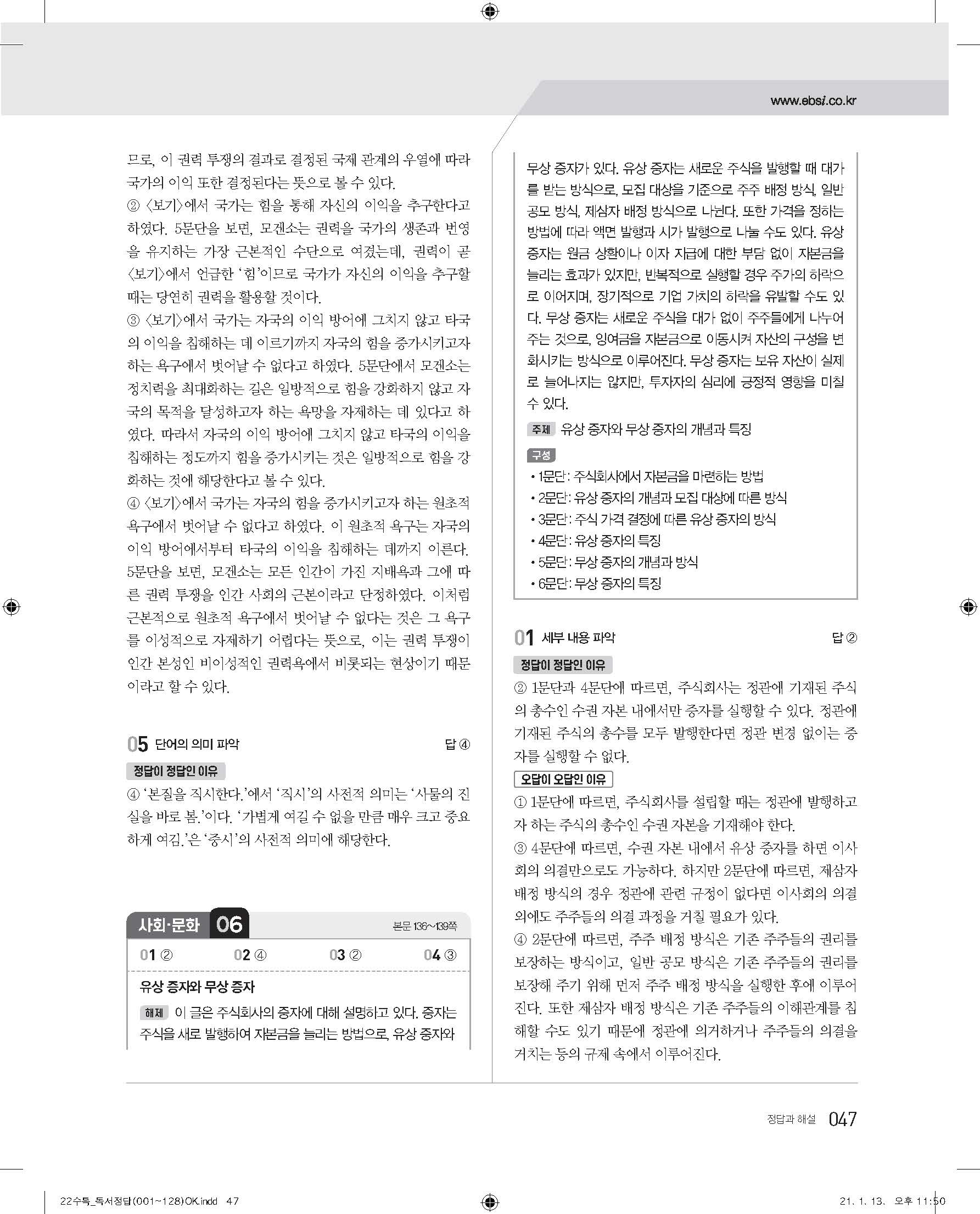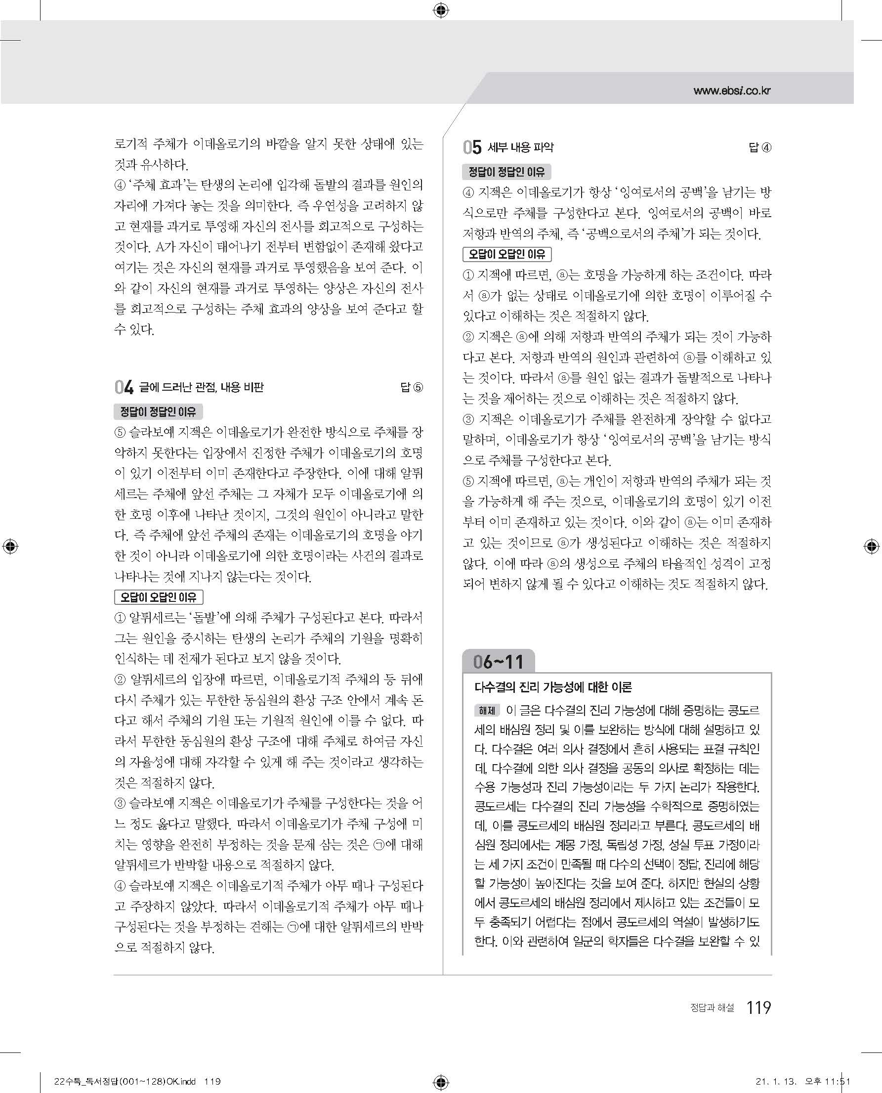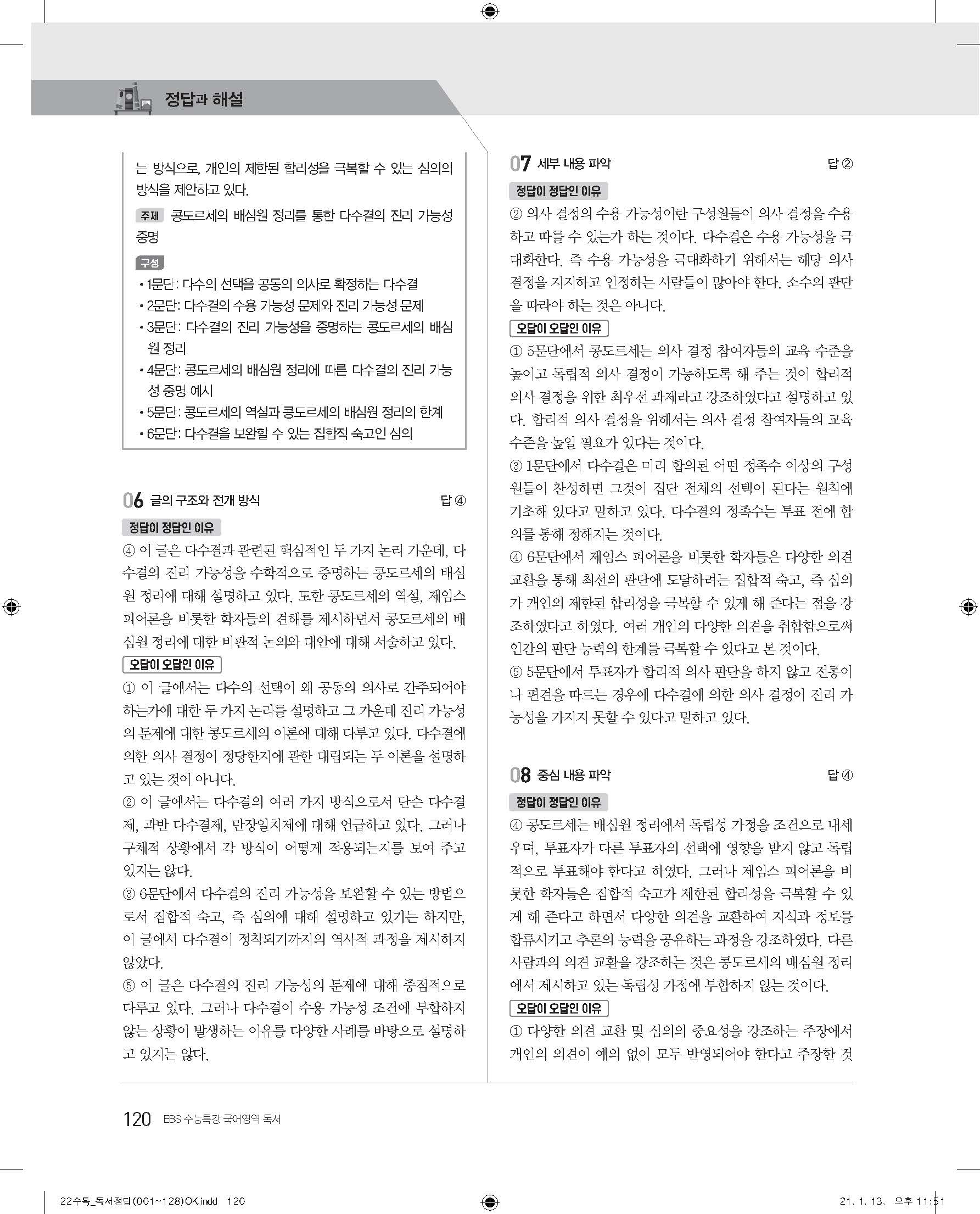 EBS 2022 수능특강 독서 사진답지 빠른답지 모바일최적화