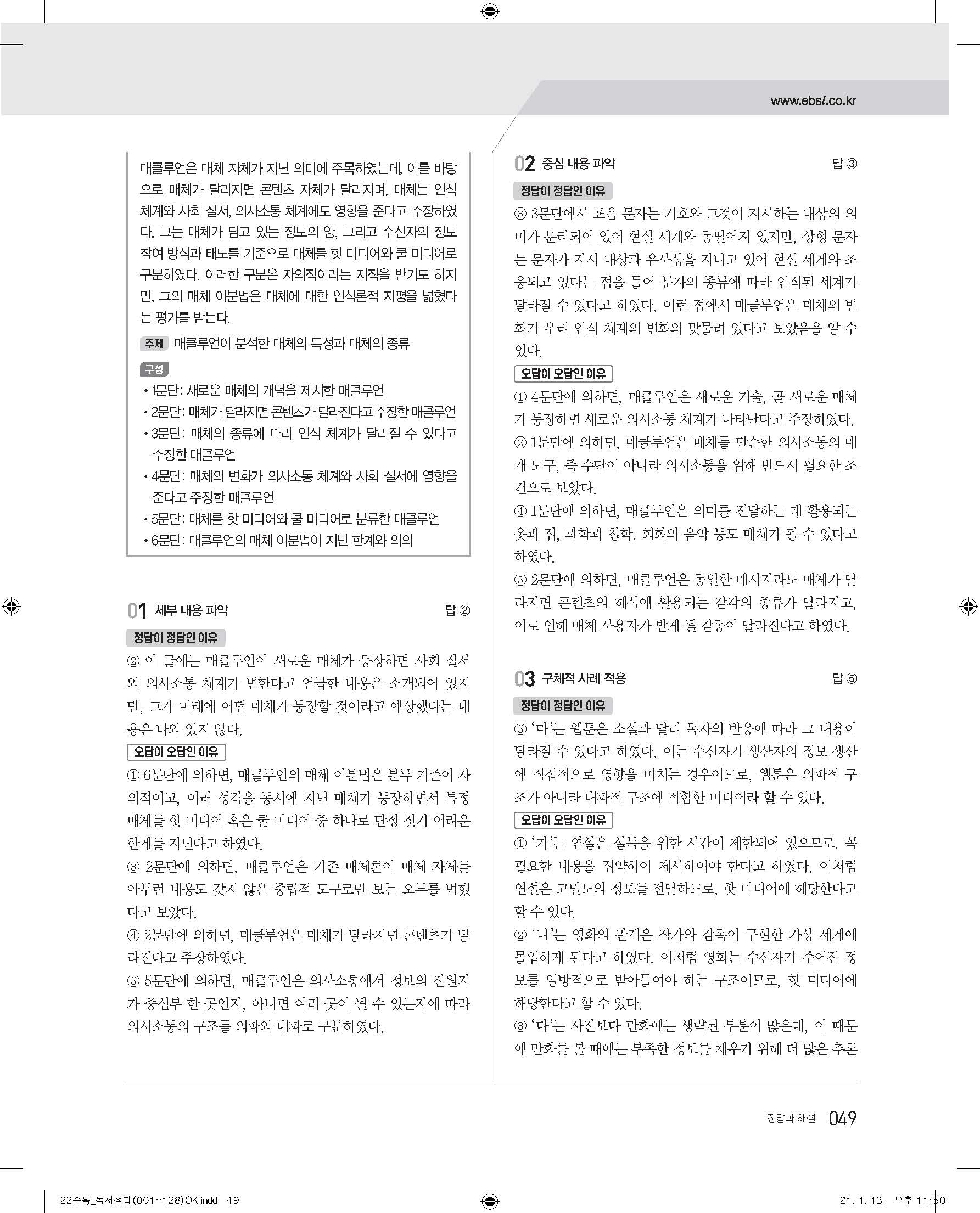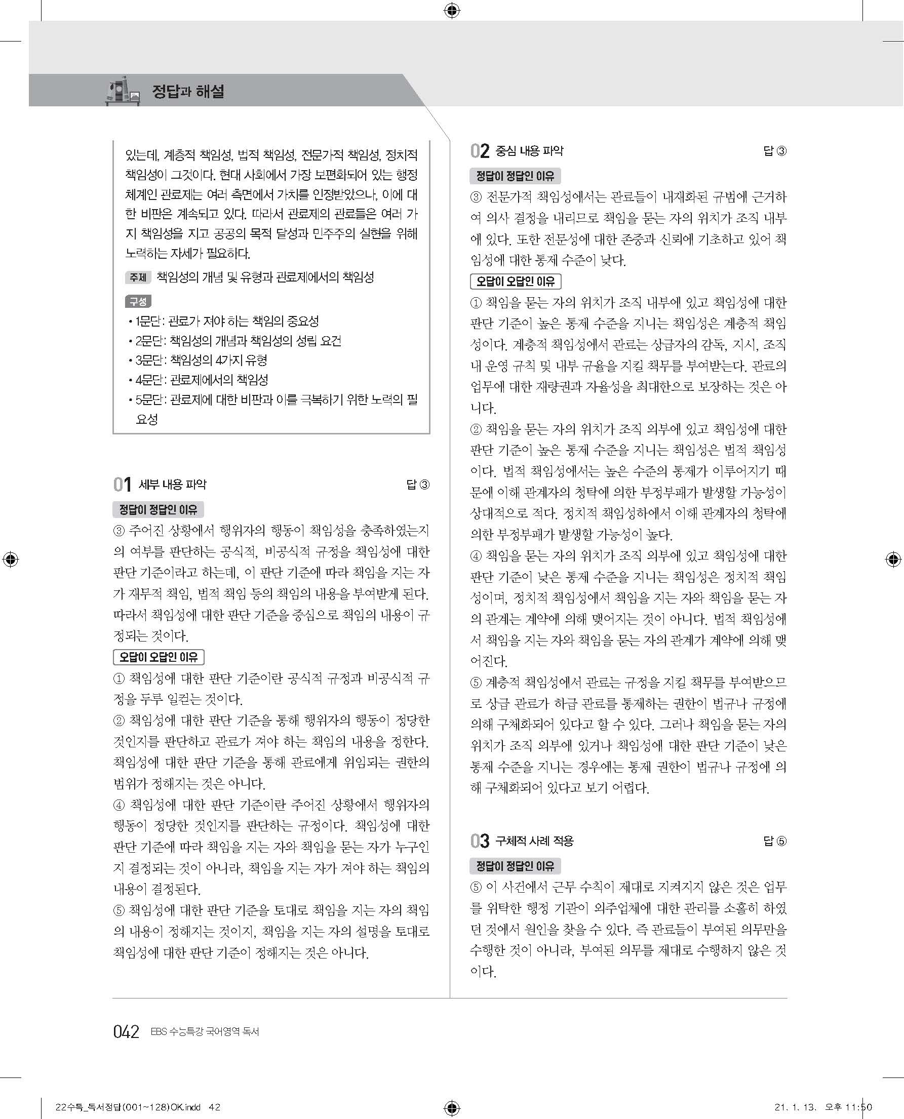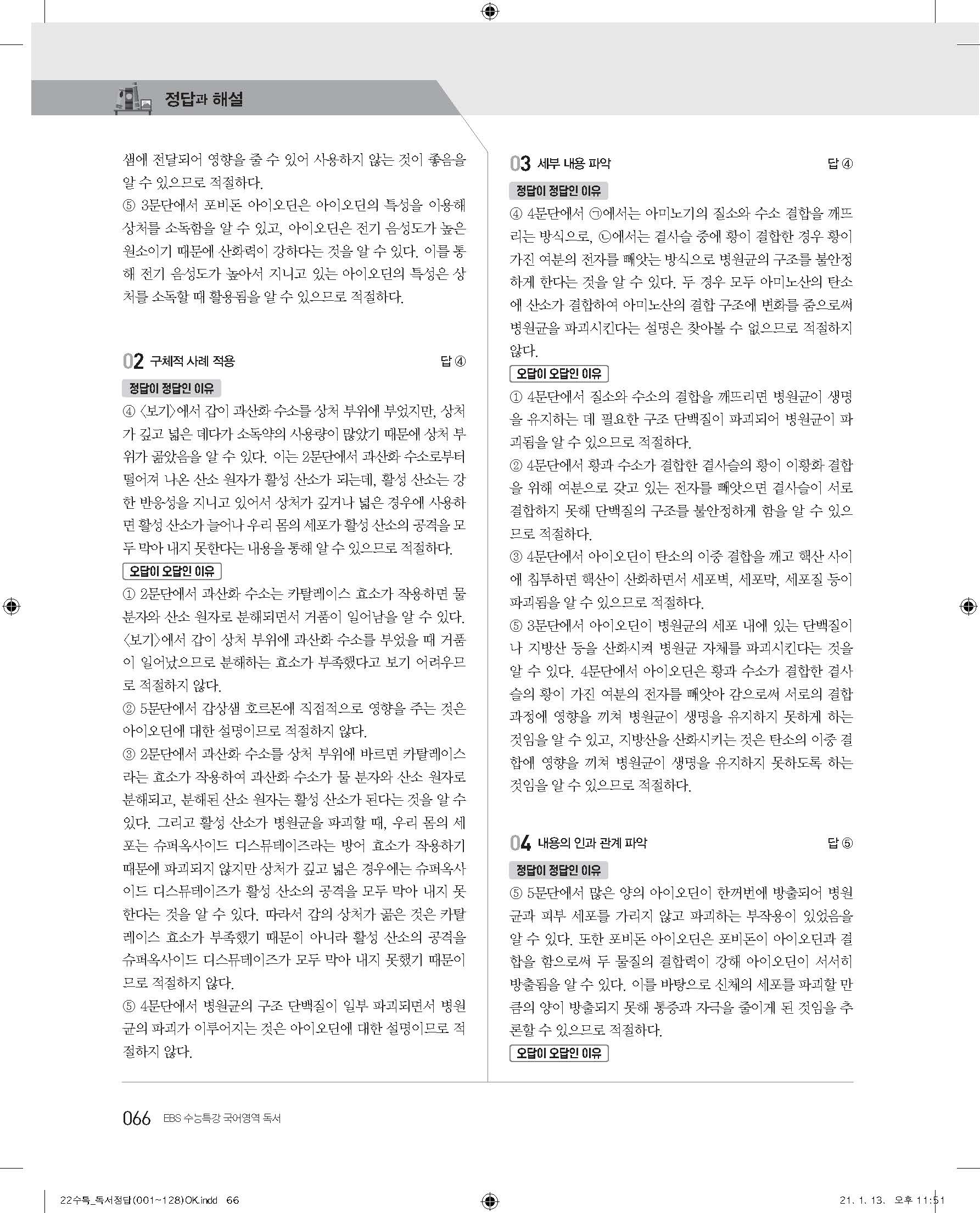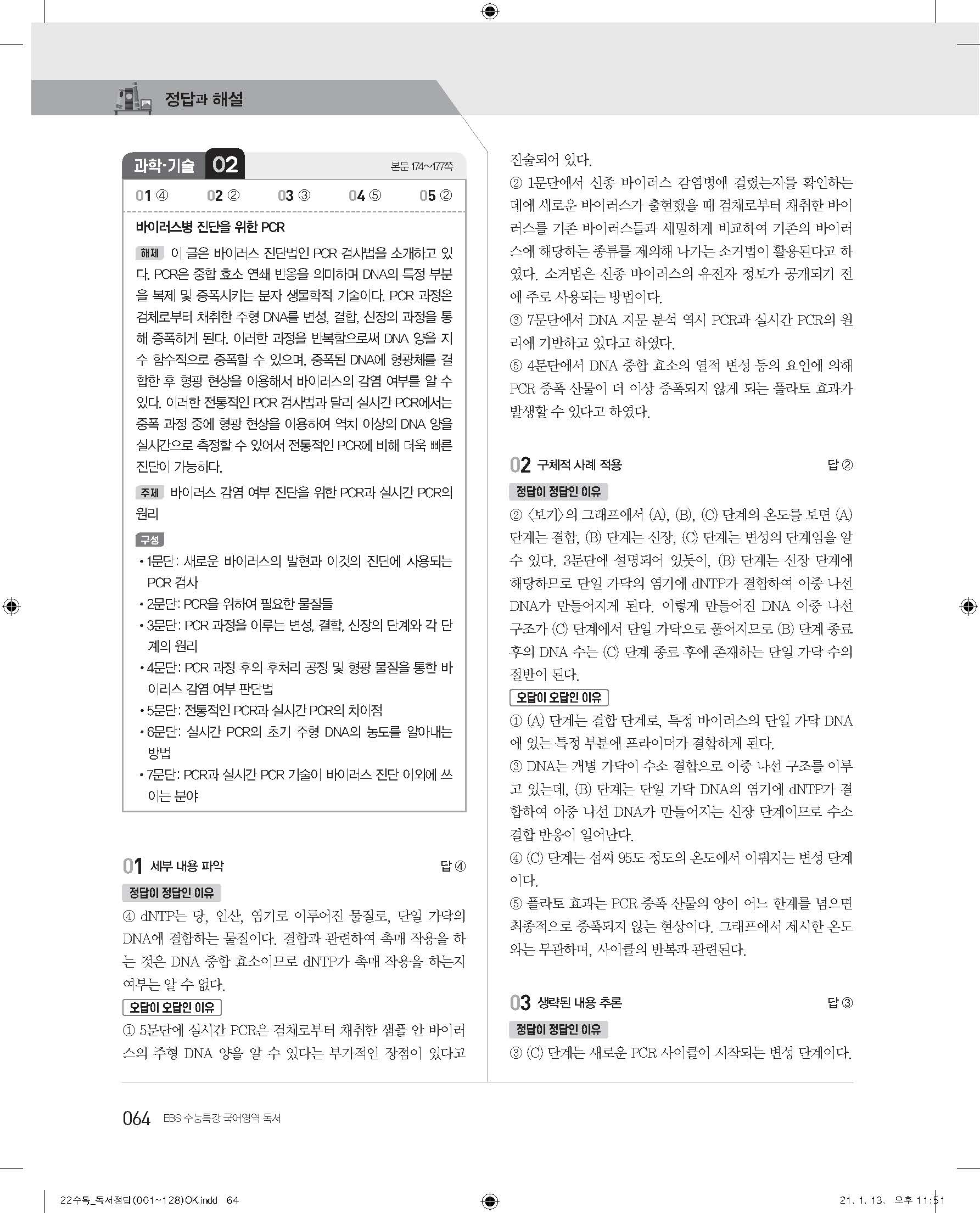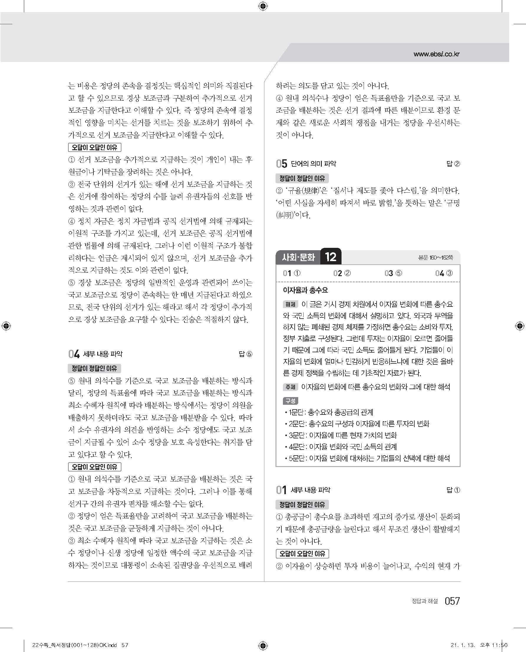 EBS 2022 수능특강 독서 사진답지 빠른답지 모바일최적화