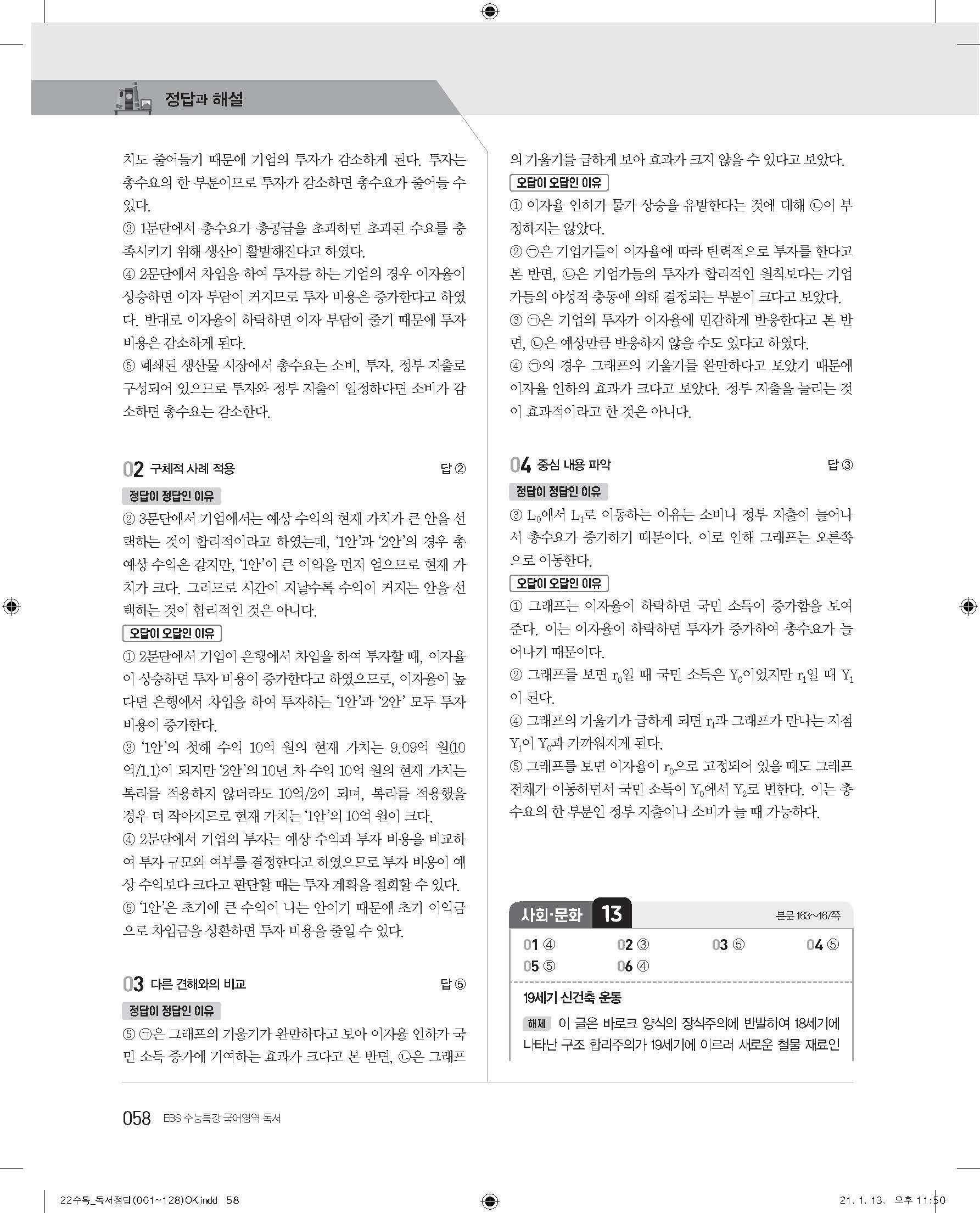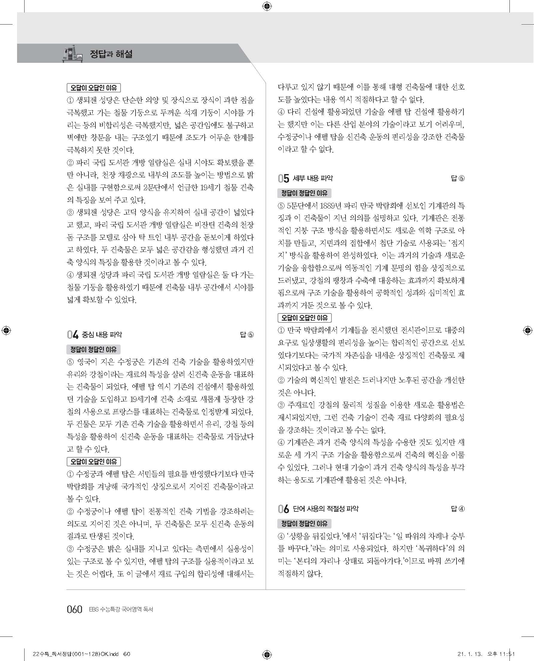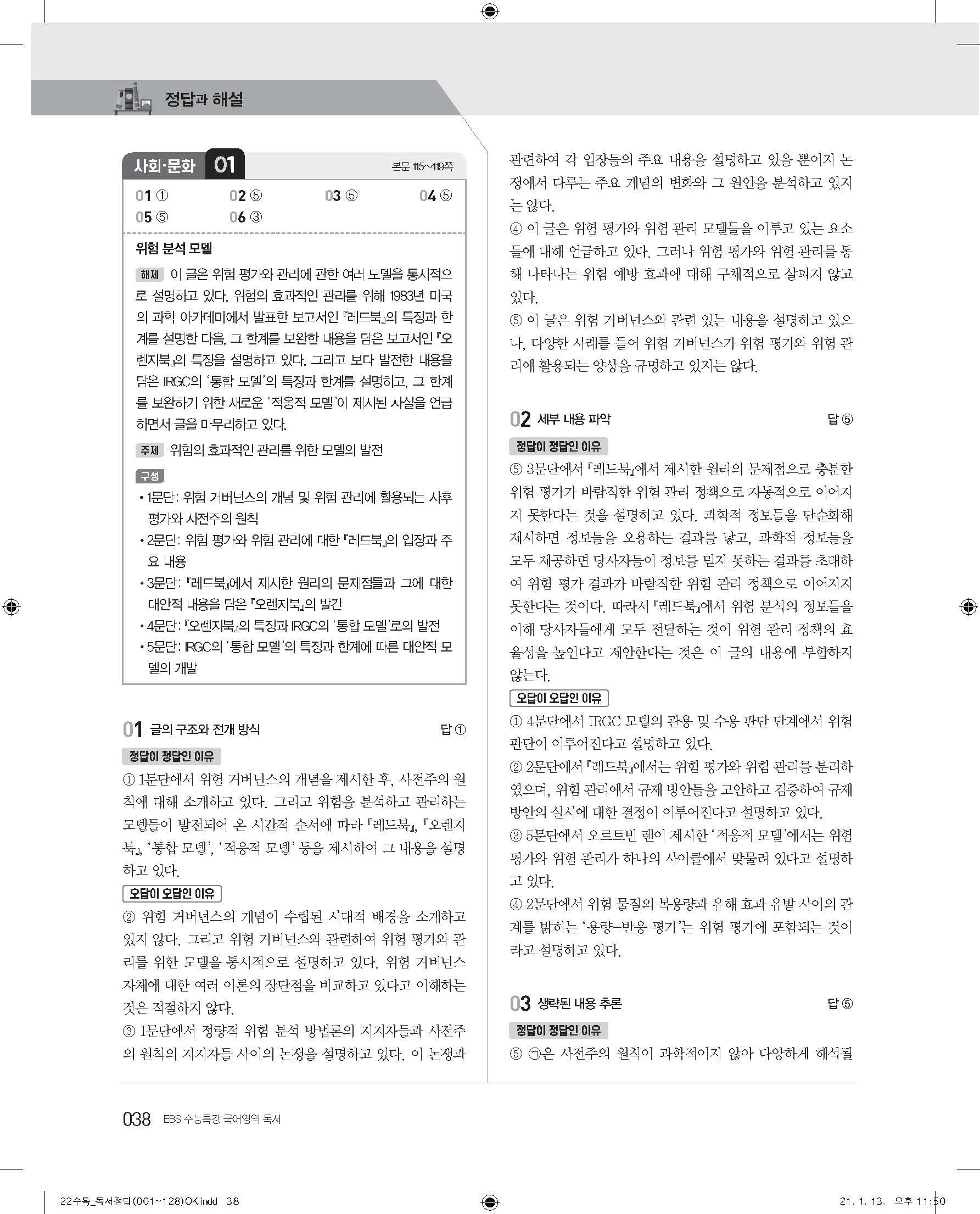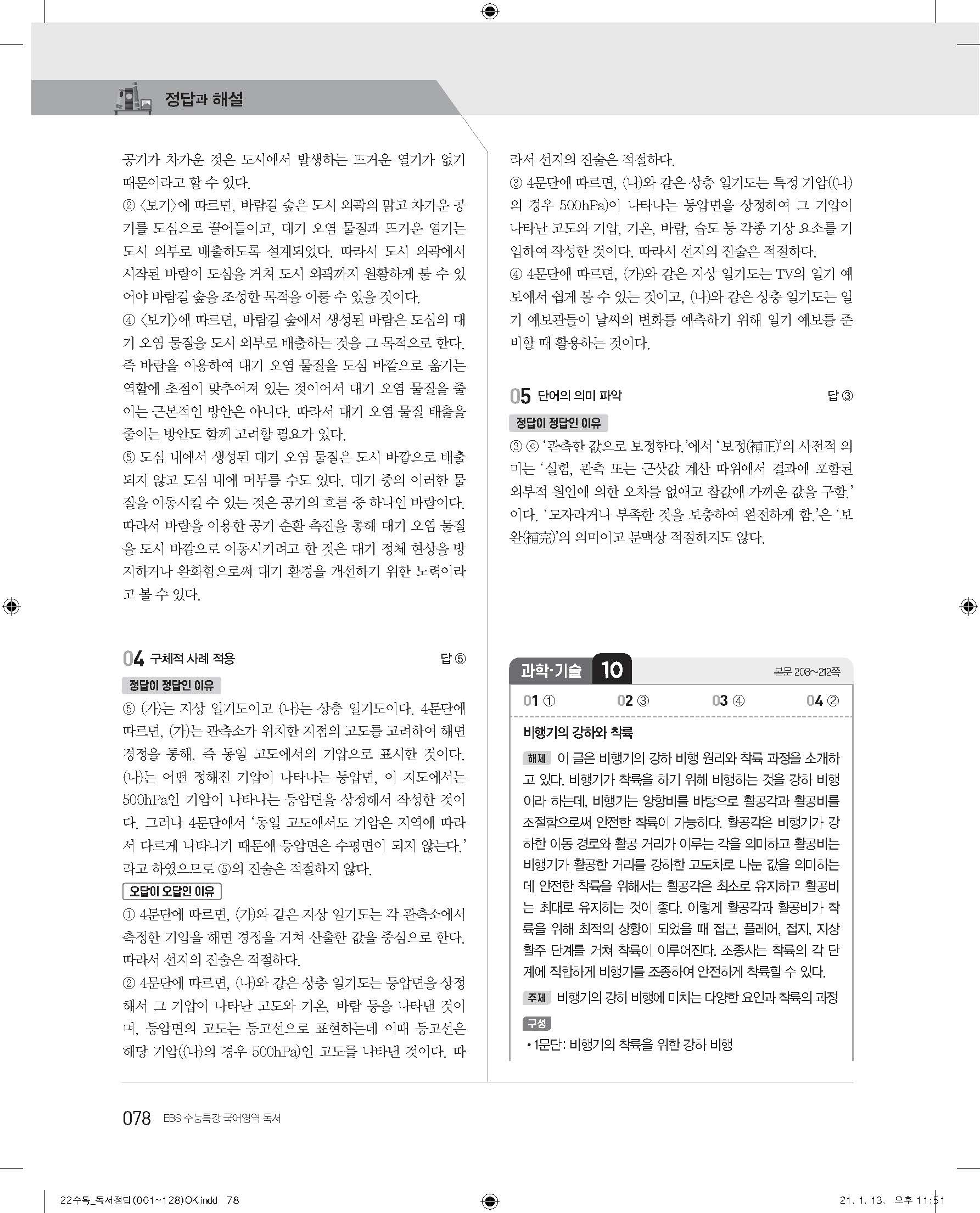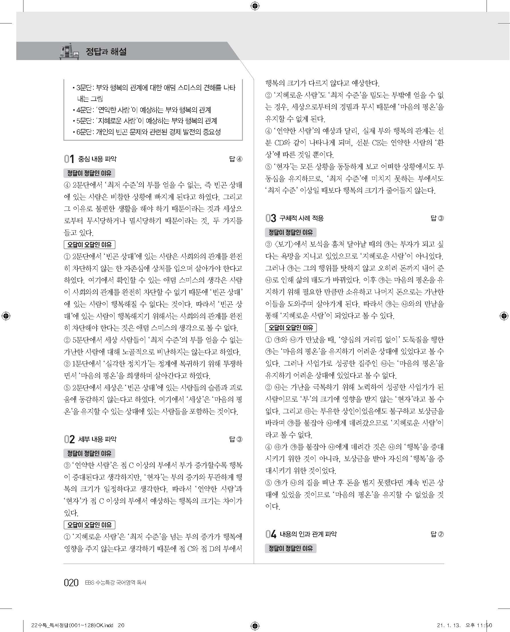 EBS 2022 수능특강 독서 사진답지 빠른답지 모바일최적화