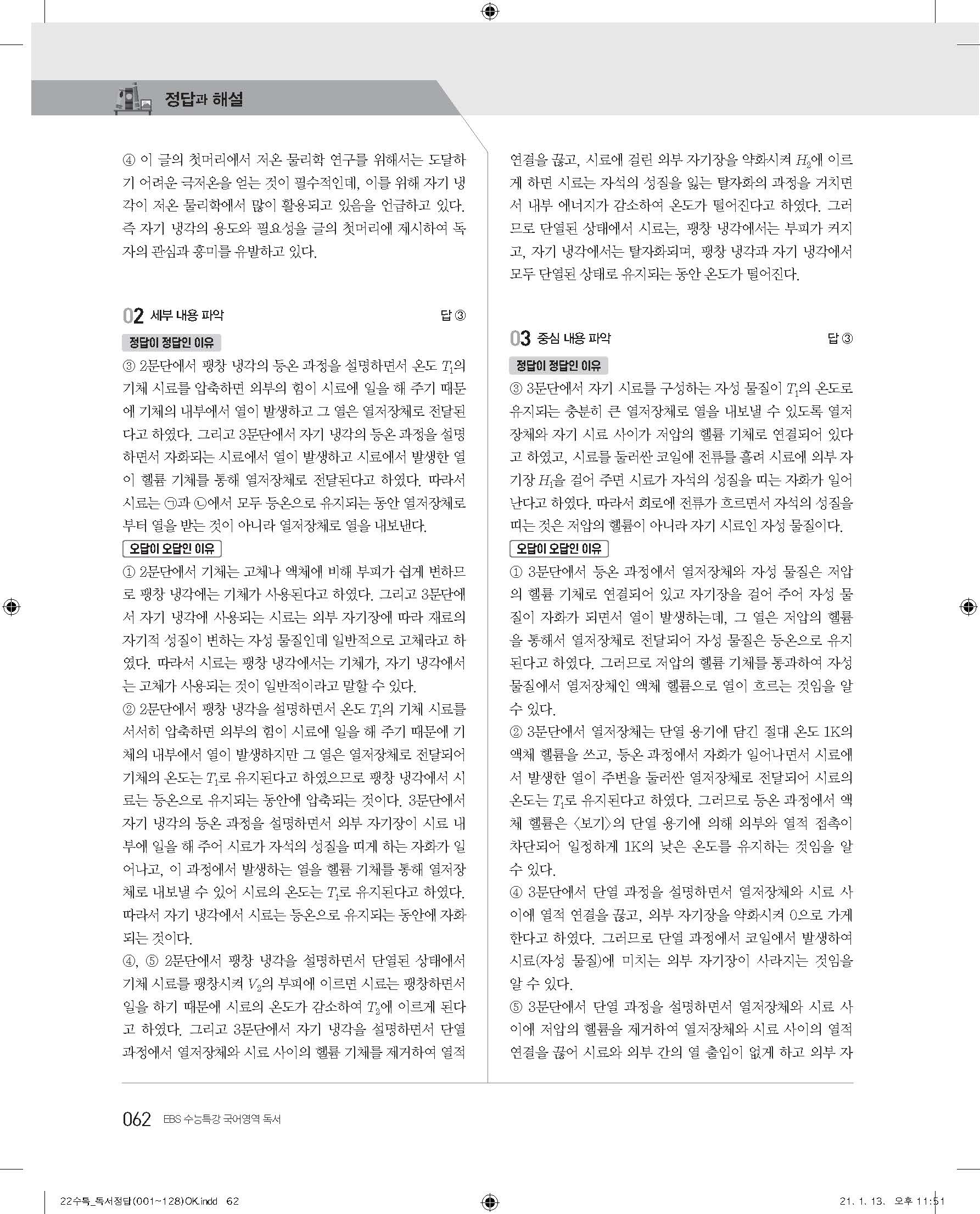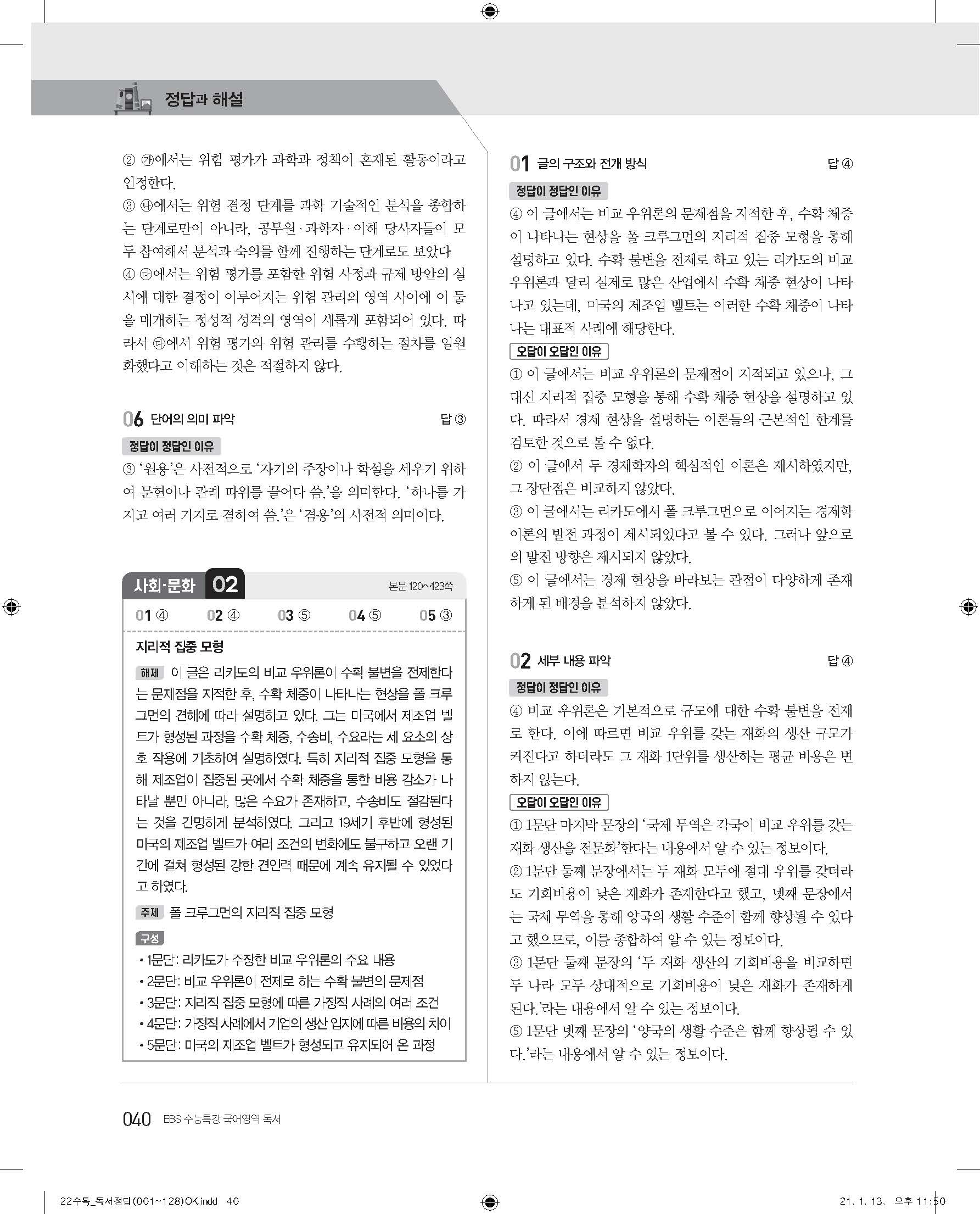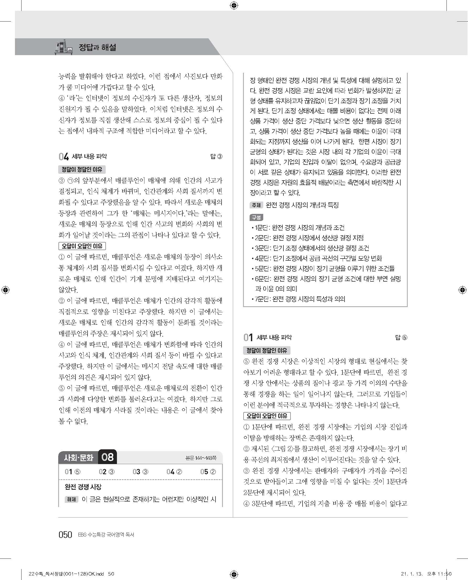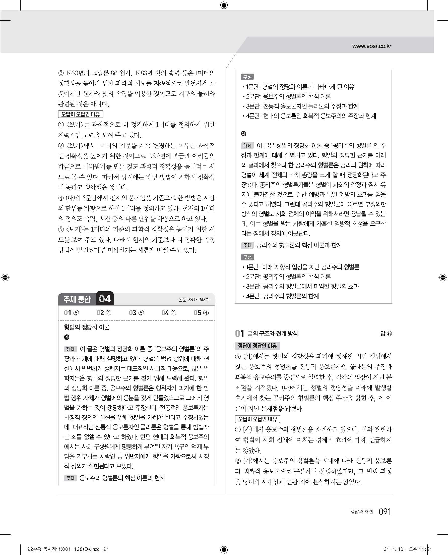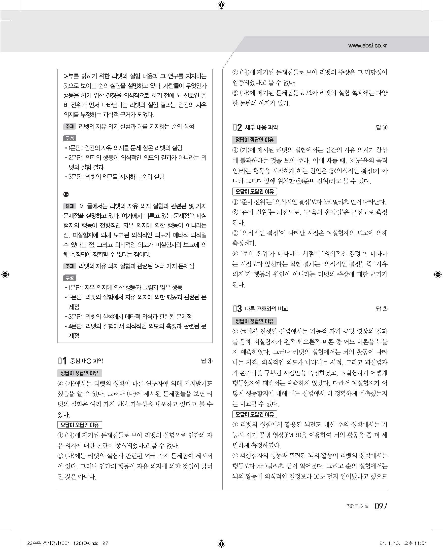 EBS 2022 수능특강 독서 사진답지 빠른답지 모바일최적화