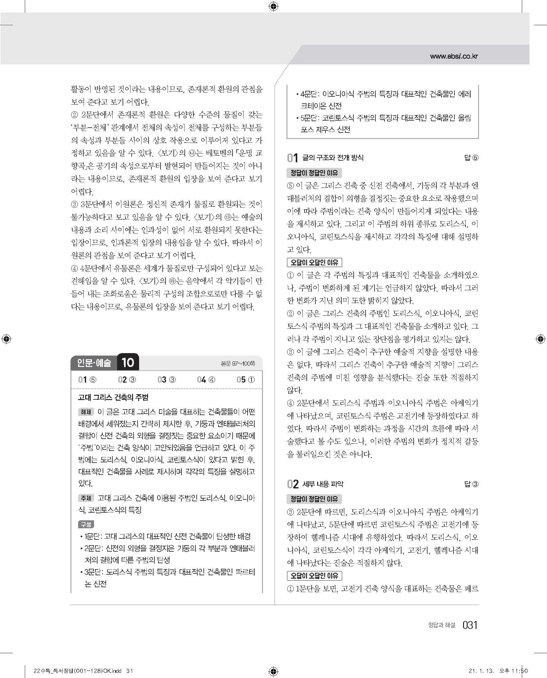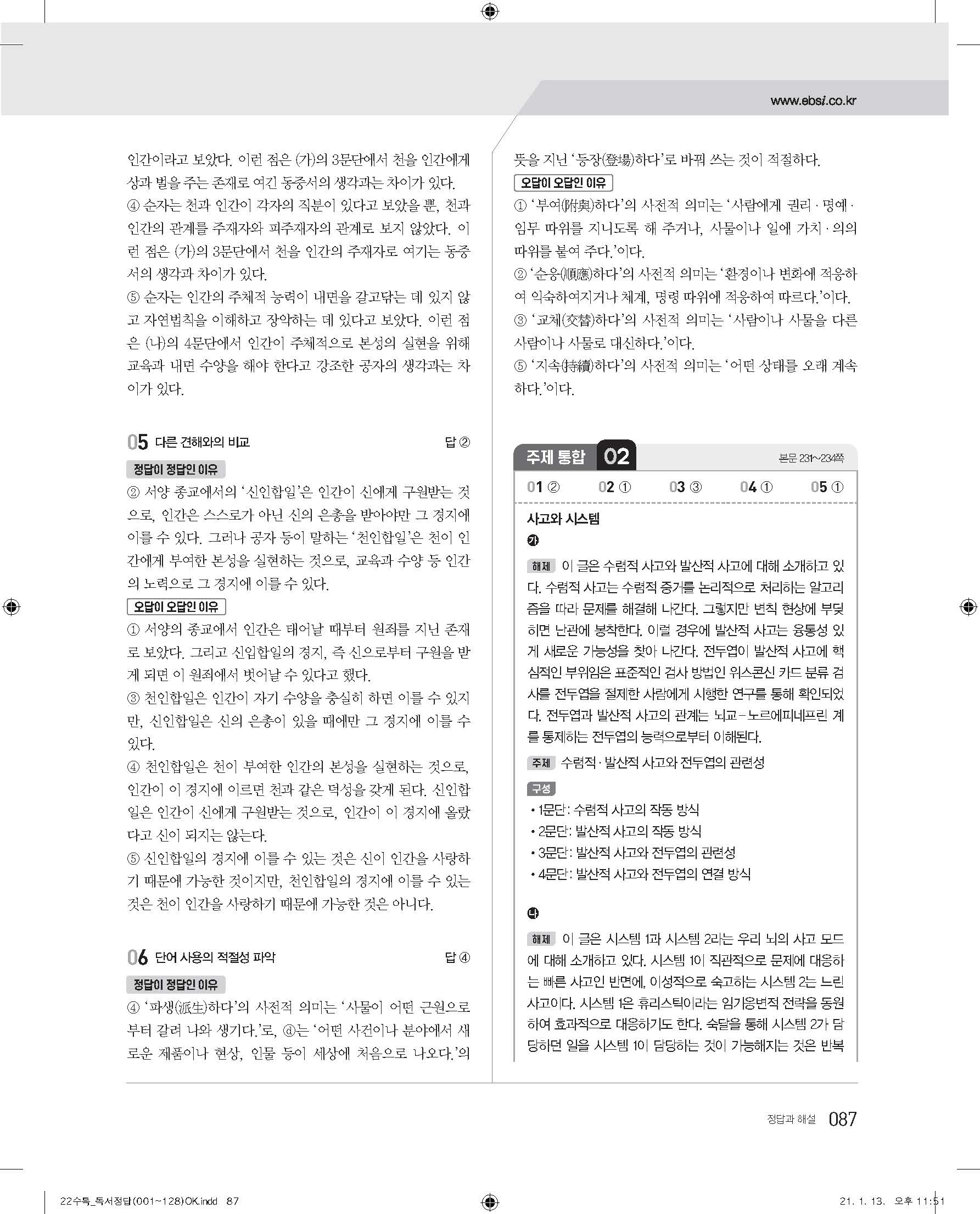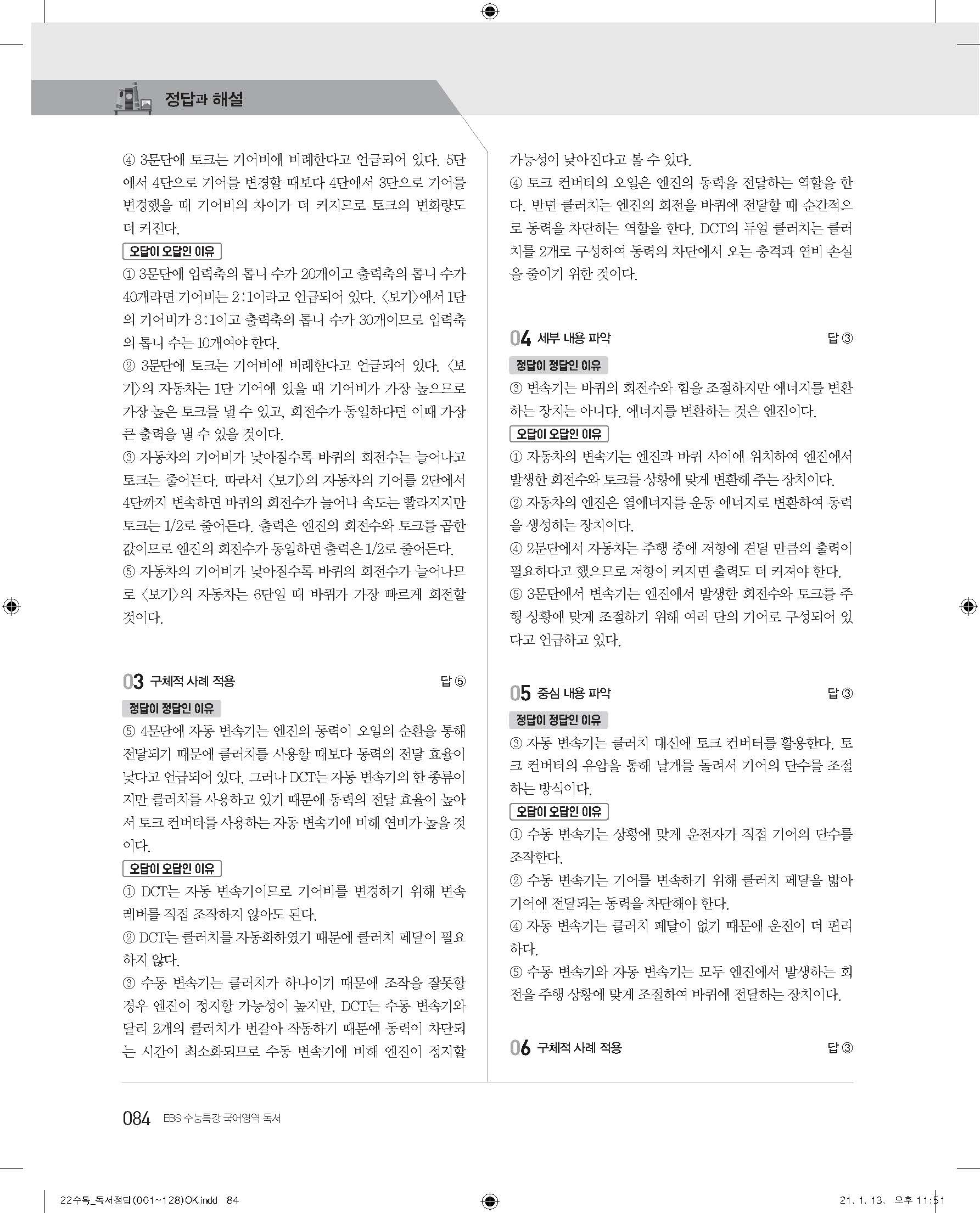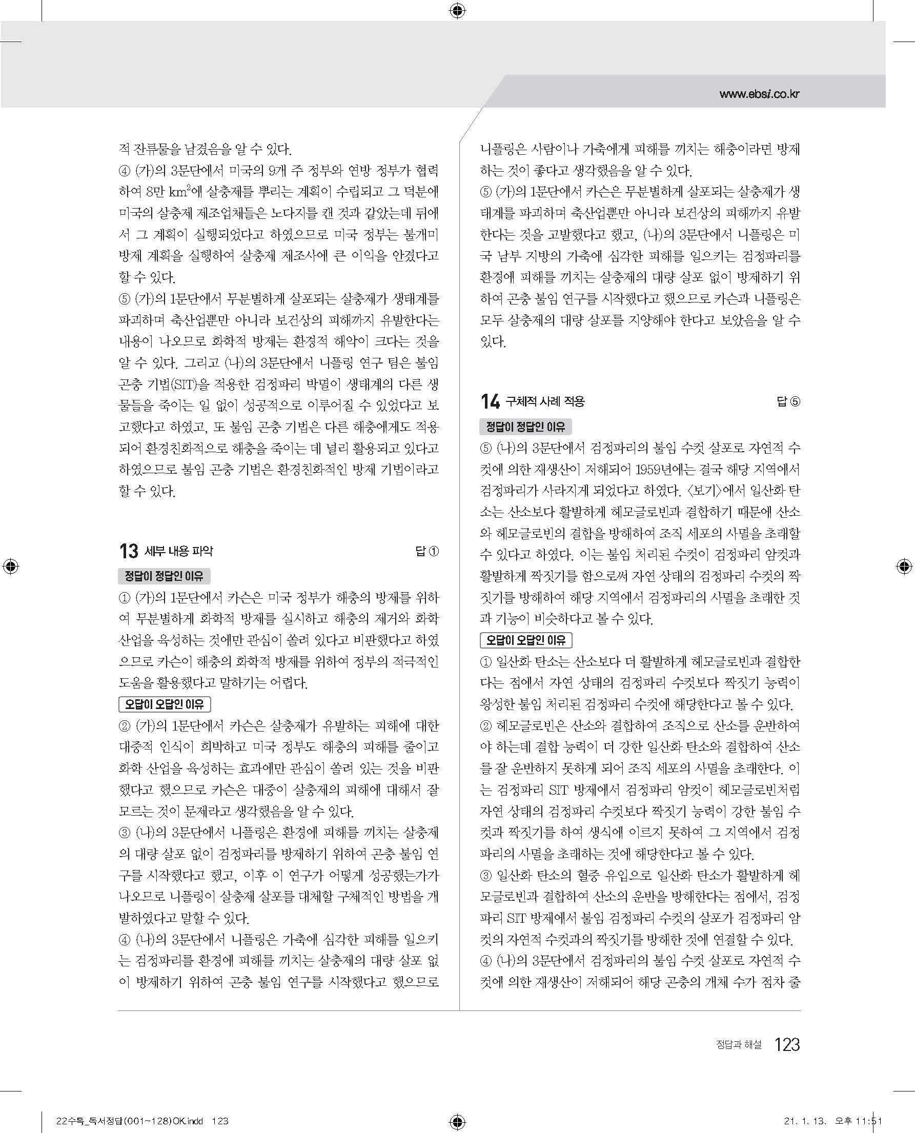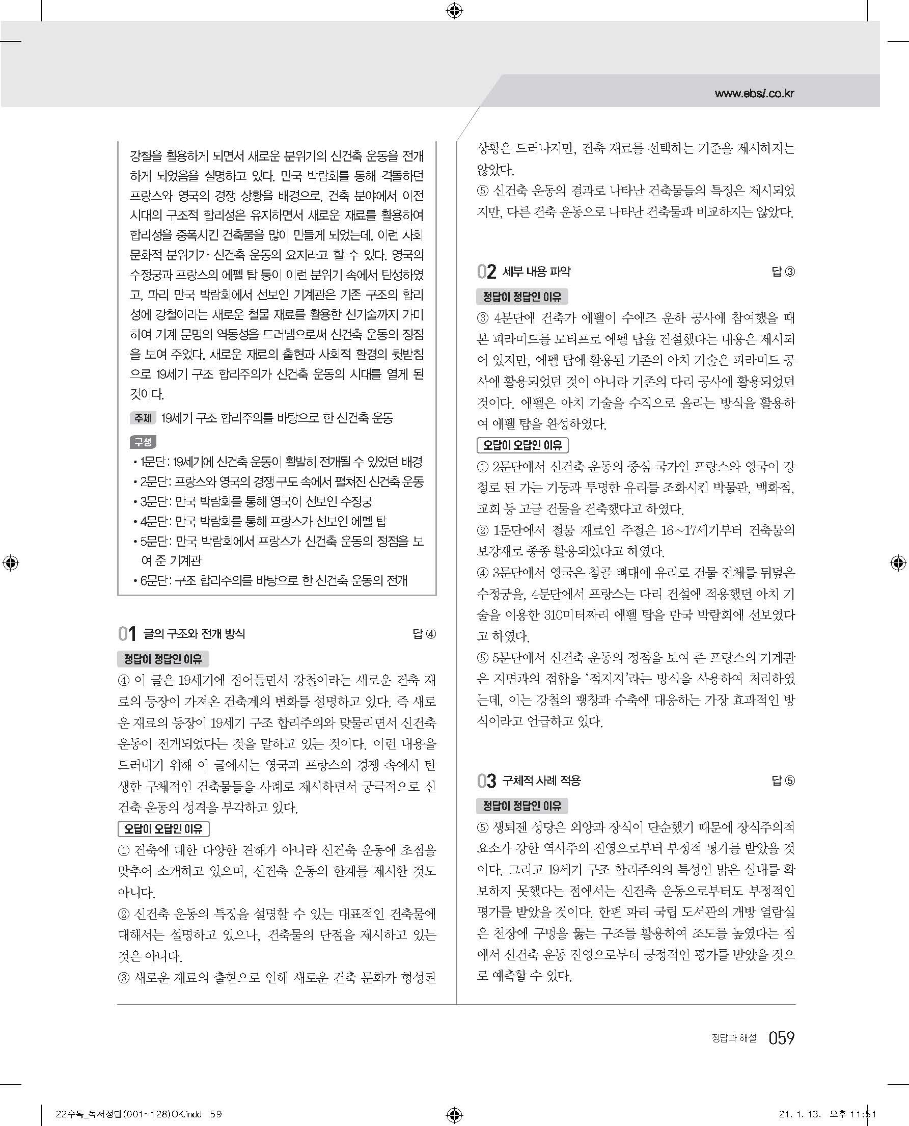 EBS 2022 수능특강 독서 사진답지 빠른답지 모바일최적화