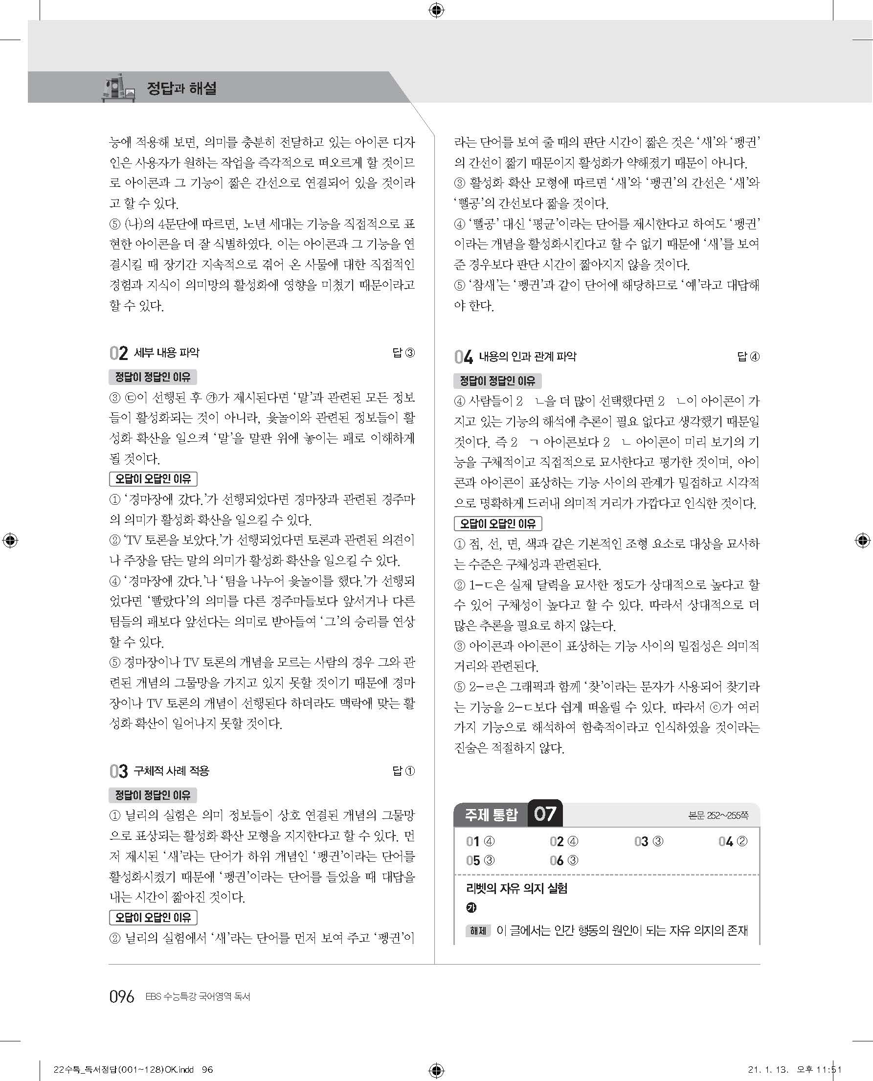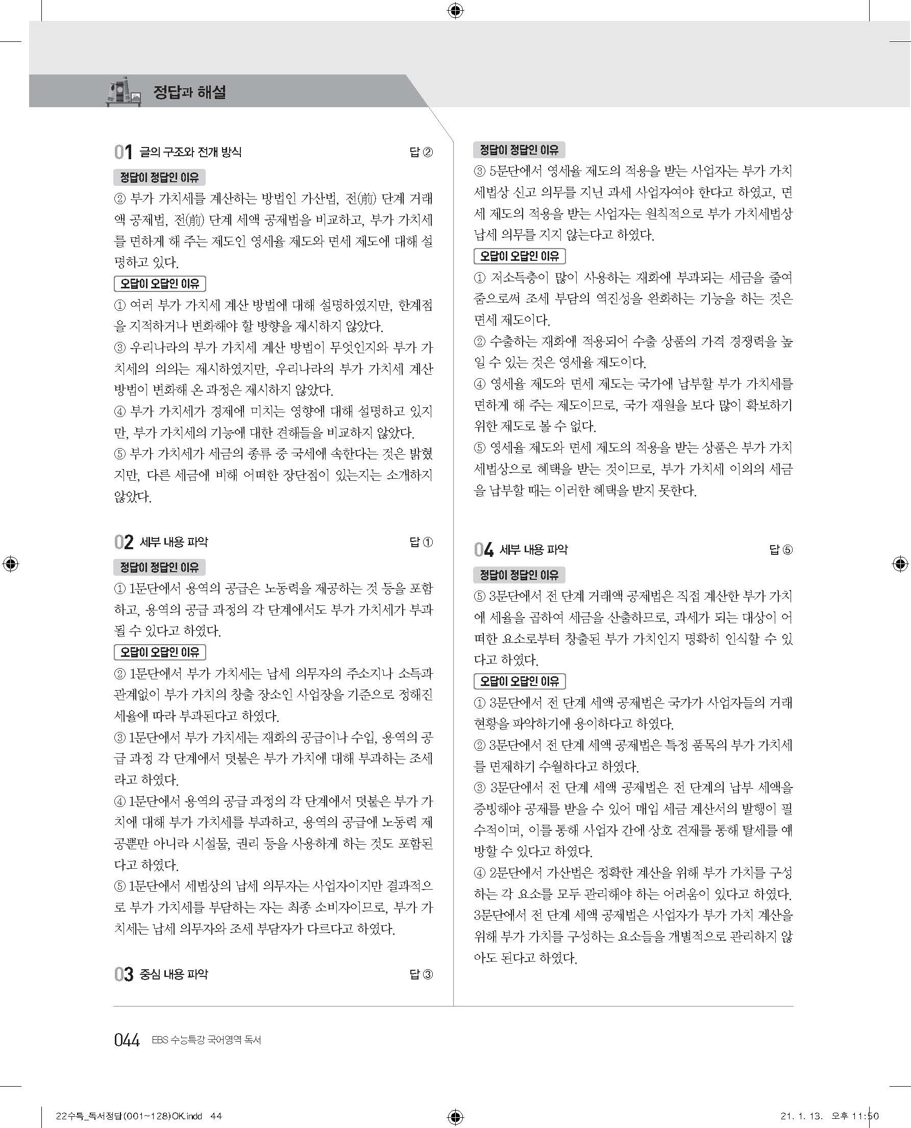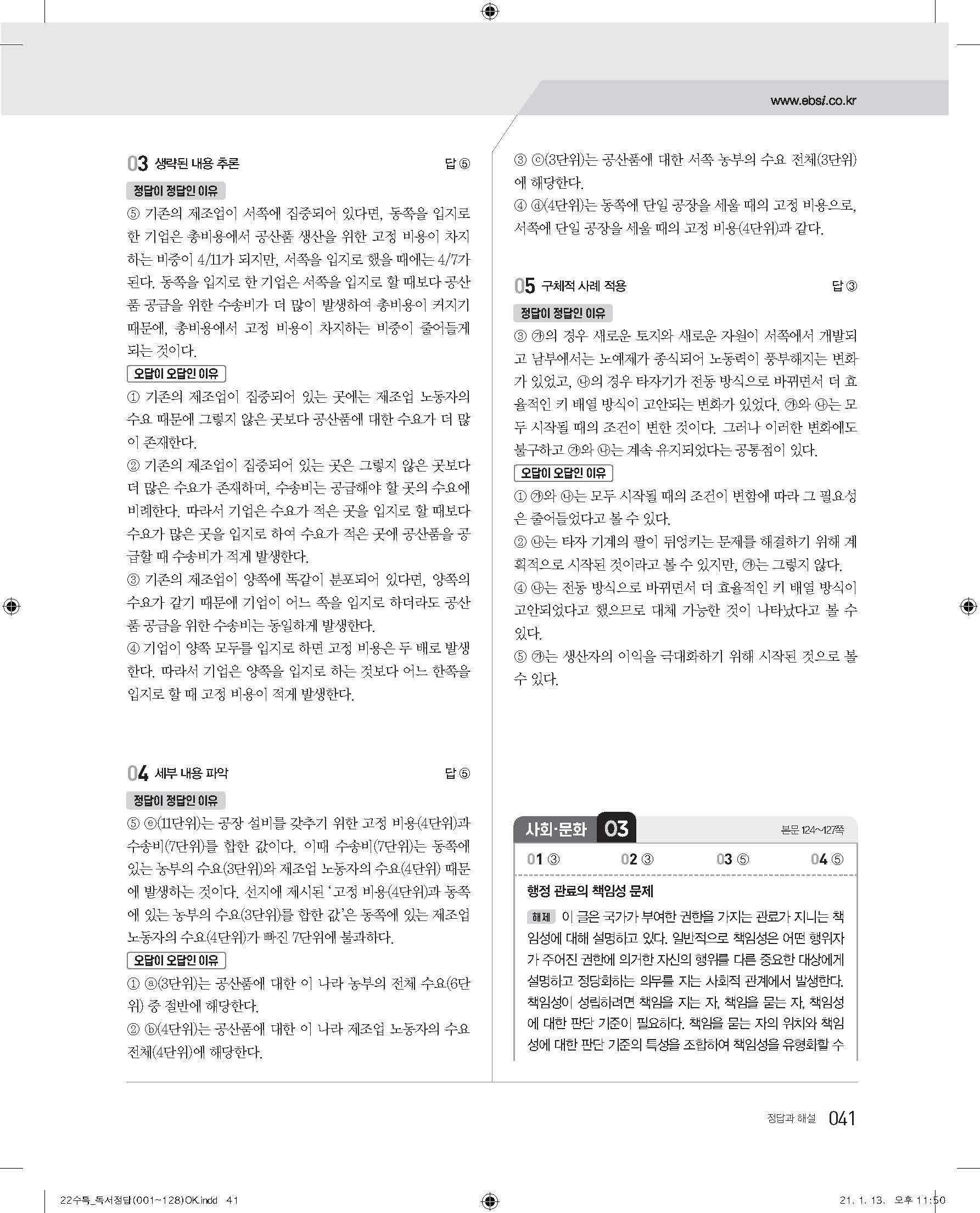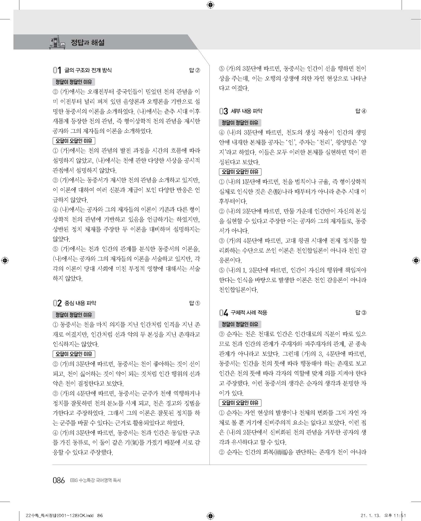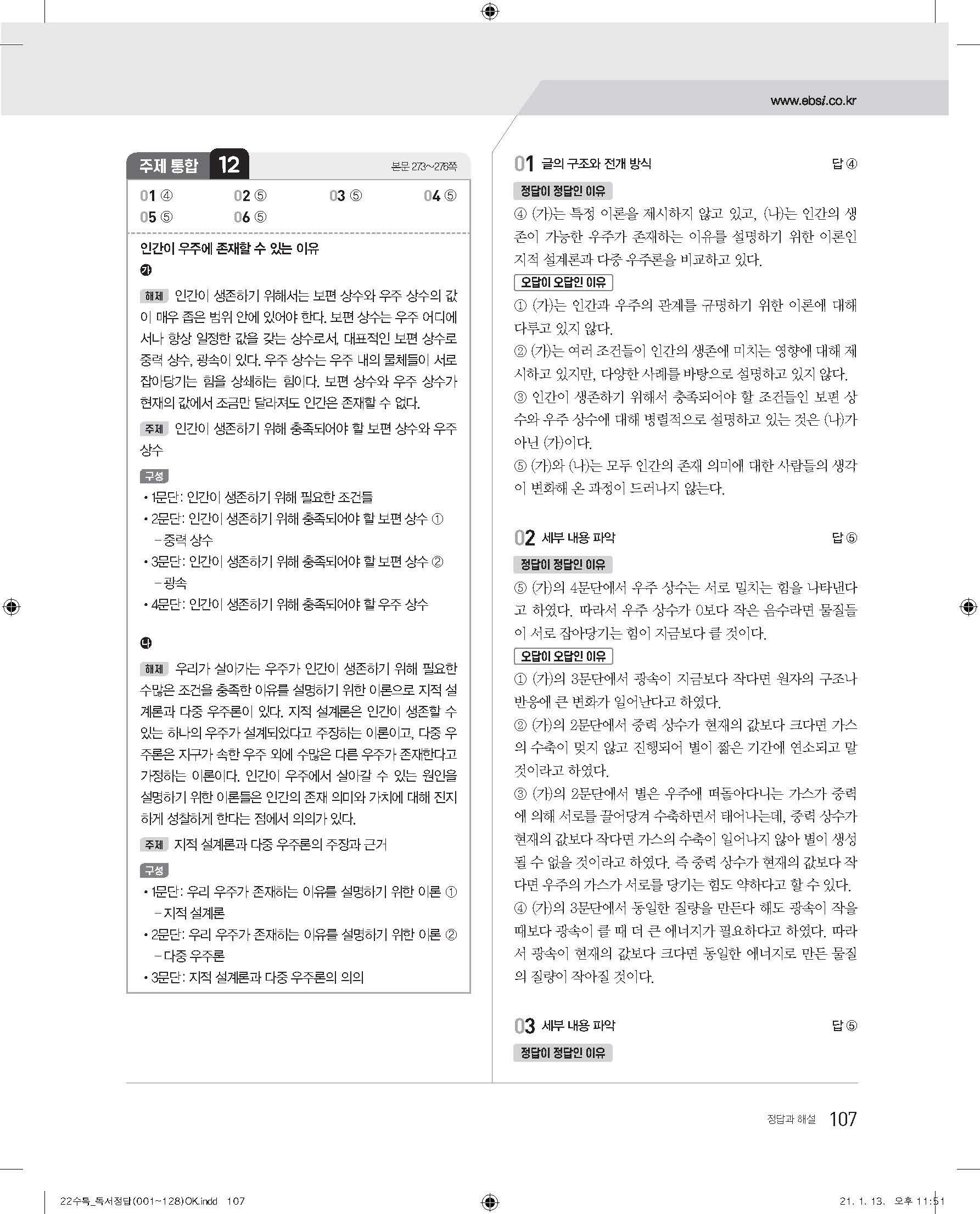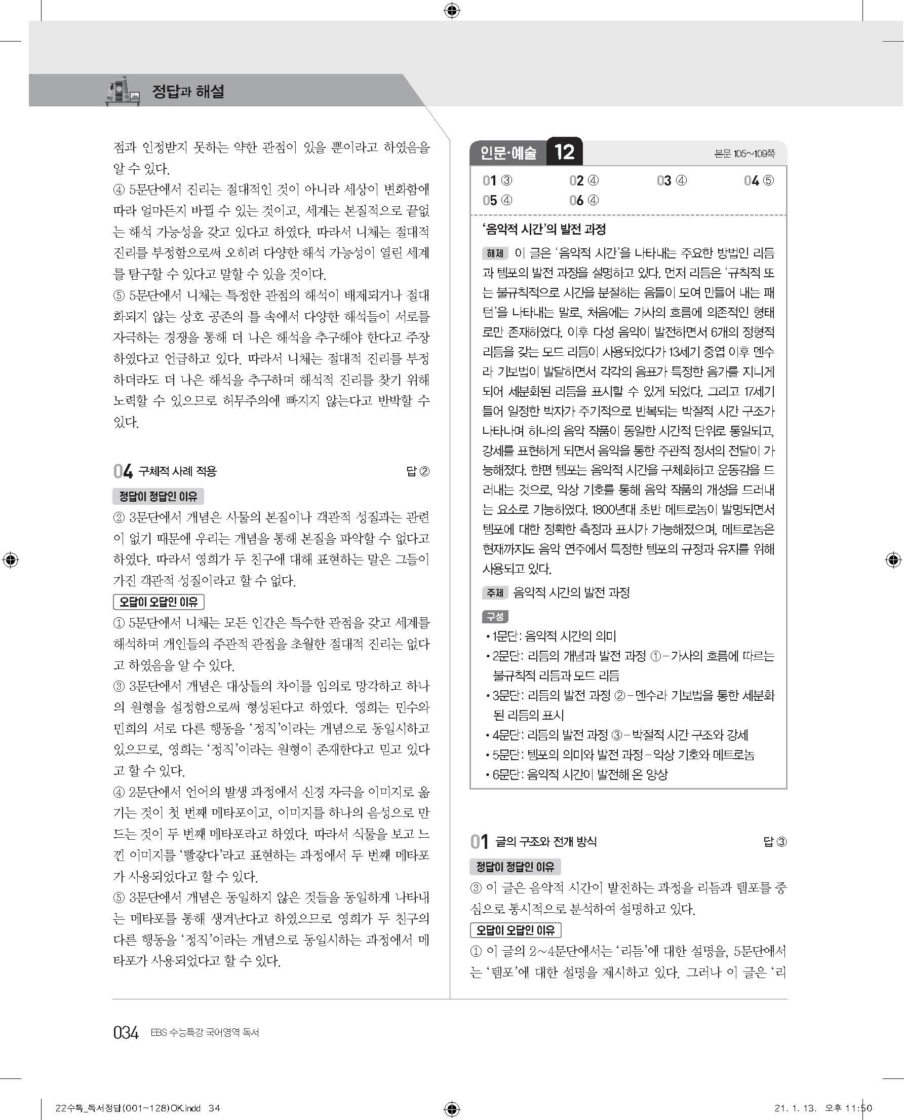 EBS 2022 수능특강 독서 사진답지 빠른답지 모바일최적화